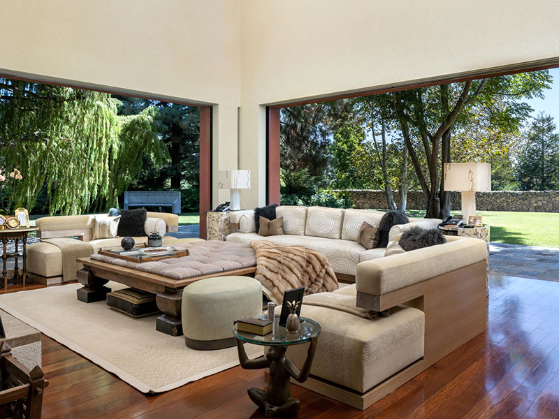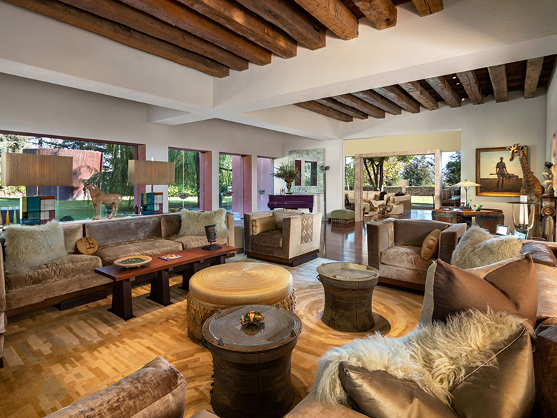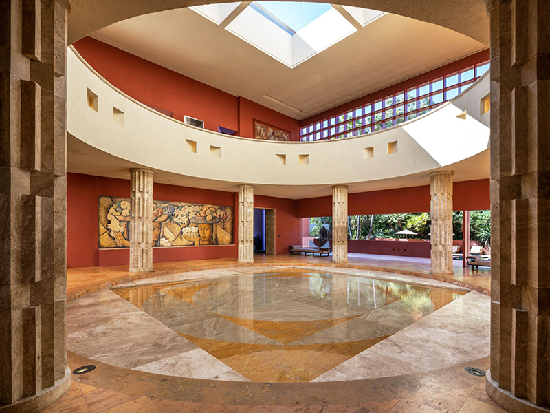Nestled on 4.5+ acres of lush gardens in the guard-gated enclave of Brentwood Circle, this architectural masterpiece by Ricardo Legorreta offers true paradise with seamless indoor-outdoor living throughout. Private compound showcasing a large motor court, reflection pool with travertine columns and stunning atrium entrance. Multiple living rooms with high-ceilings, open formal dining room and gourmet kitchen with top-of-the-line appliances. Ideal for entertaining with large flat lawns, pool/spa, endless decks and outdoor heated dining. Dual primary suites with den, walk-in closets & marble bathrooms and 3 additional en suite bedrooms. Amenities include a library, office, fitness center, wet/dry sauna and one-of-a-kind movie theater.
