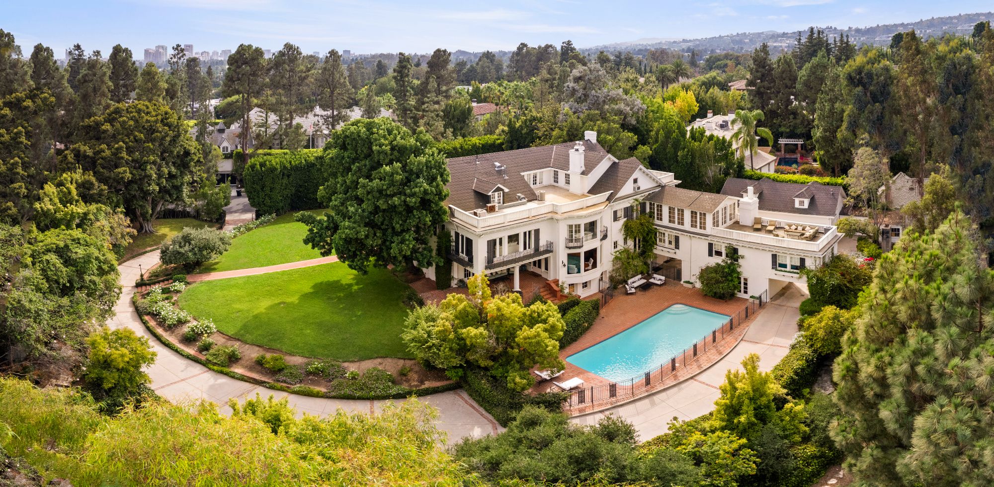 Iconic Beverly Hills Legacy EstateA Rare Opportunity to Own a Landmark Southern Colonial on Over 1.5 AcresSet behind gates on one of the most prestigious cul-de-sacs in Beverly Hills, this extraordinary Southern Colonial estate is a timeless masterpiece of elegance and grandeur. Originally built in 1911, the residence is a treasured part of Beverly Hills history graciously perched on a knoll and surrounded by 1.5 acres of verdant, manicured grounds with scenic treetop views.With over 8,400 square feet of living space, this grand estate seamlessly blends historic charm with modern luxury. The stately front facade is enhanced by a large covered veranda, leading to a sweeping entry foyer that introduces a series of stunning public roomseach with soaring ceilings, intricate moldings, and French doors that open to tranquil patios and gardens.Highlights include: A formal living room of exceptional scale, an incredible dining room with seating for 20. A large wood-paneled library rich in character and a gourmet kitchen featuring soapstone counters, custom cabinetry, Sub-Zero refrigeration, 60" Wolf range, double ovens, and dual dishwashersThe primary suite is a private sanctuary with high ceilings, a marble-clad bath, a cozy sitting area, and a fireplace. Additional accommodations include three generous en suite bedrooms, a den with fireplace, a separate staff wing, gym, playroom/bonus rooms, and a large guesthouse ideal for extended stays or entertaining.Outdoor amenities are equally impressive: expansive lawns, quiet patios, a sparkling pool, BBQ area, and mature landscaping offer an idyllic retreat in the heart of the city.This is more than just a home it's a legacy. A rare opportunity to own one of Beverly Hills' most iconic estates, rich in history and timeless in appeal.