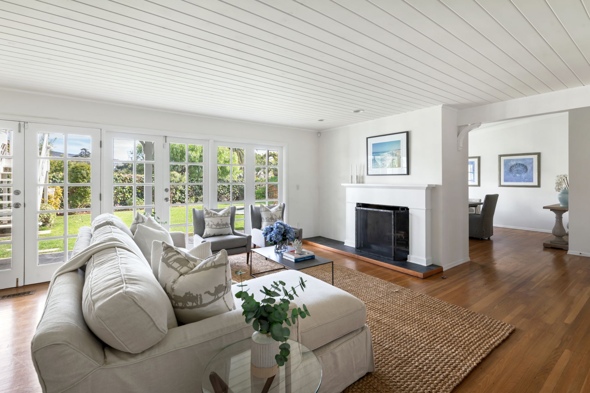 Spacious and light filled, this two story home is nestled on a peaceful street in the Marquez Knolls area of Pacific Palisades. The home features large living and dining rooms with fireplaces, and a kitchen which opens to a bright and airy great room. The five bedrooms and four baths are spread over two floors: three bedrooms and three baths downstairs and two bedrooms with one bath upstairs. Enjoy the beautiful views of the ocean, Santa Monica mountains, and city lights from the primary suite which opens to the large upper deck. Walls of windows overlooking the tranquil grassy backyard and pool, along with vaulted wooden ceilings blend to create a warm and inviting home.