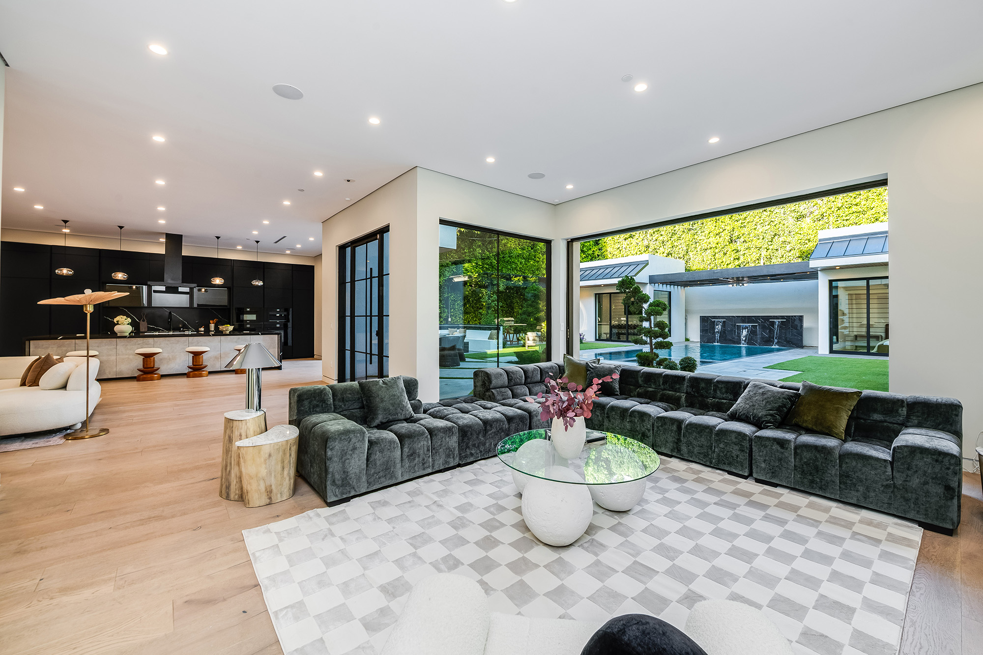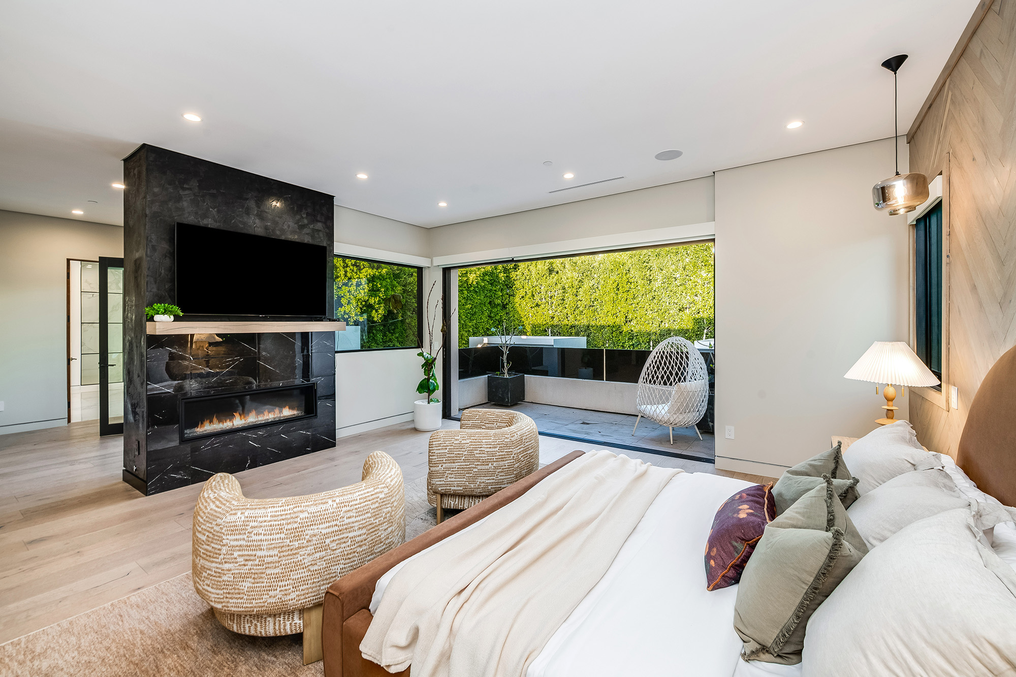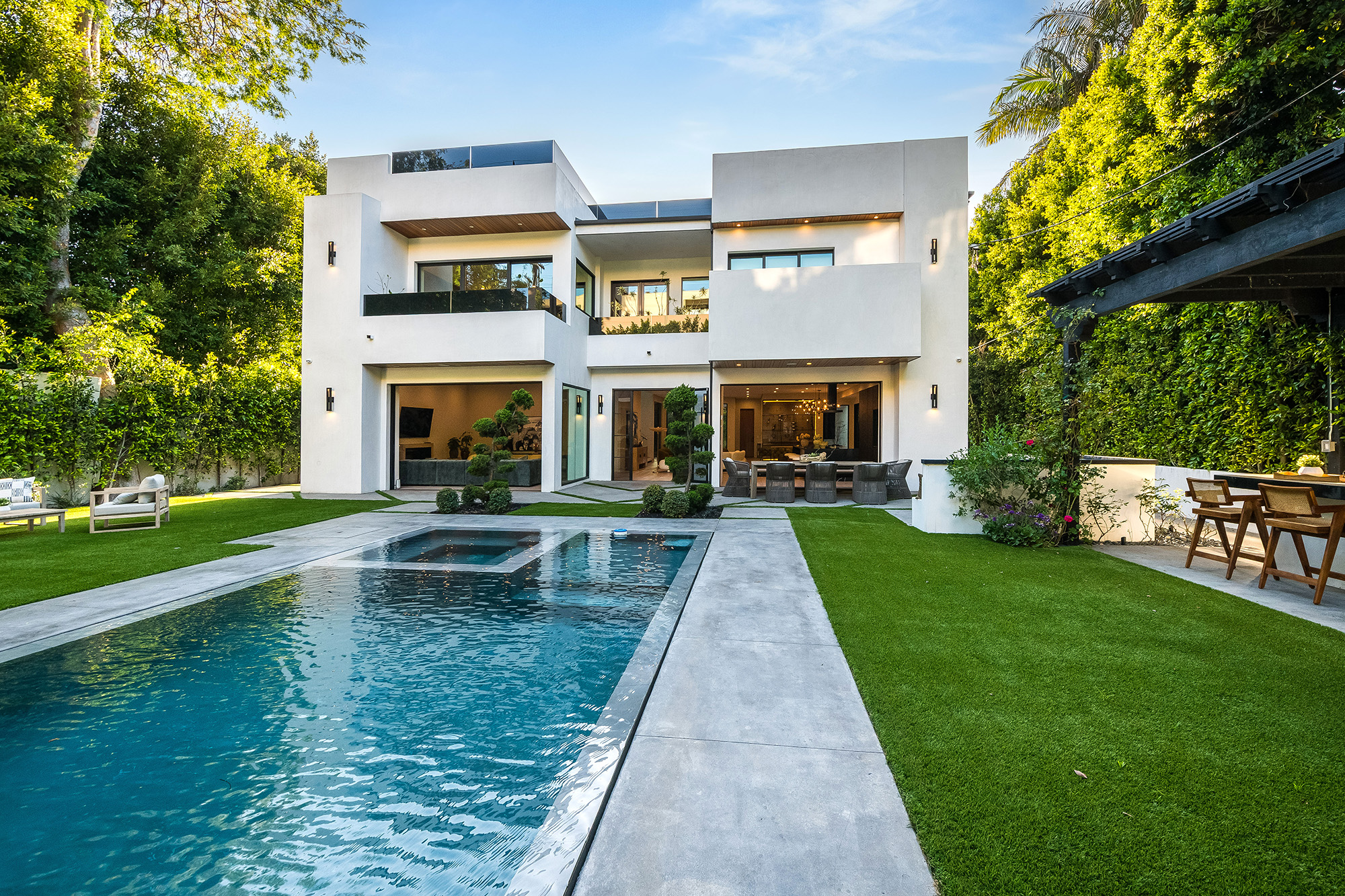 Stunning modern masterpiece in the heart of one of LA's most sought-after and highly coveted locations. At the pinnacle of luxury living, this striking, sleek, sophisticated, and state-of-the-art home is sure to impress even the most discerning clientele. Situated behind high hedges and tall gates, this one-of-a-kind, newly built mansion sits on a massive double lot, perched far back off the street. Greeted by two 250-year-old Sevillano Olive Trees and an ancient limestone fountain, with ample parking, the scale of the home is the first sign that this property is different from the rest. Boasting over 6,300 square feet of living space on an expansive 12,200+ square foot lot, with world-class designer finishes and, hands down, the best rooftop deck in LA. An entertainer's paradise, features of the home include a chef's kitchen with state-of-the-art appliances, mind-blowing indoor/outdoor living with a shimmering zero-edge infinity pool, top-tier privacy hedges, expansive open layout, soaring ceilings, a Hollywood-worthy home theater, fully integrated smart home technology, Lutron lighting, and a breathtaking primary suite with dual walk-in closets...and that's just to name a few! The list of amenities truly is endless, and this is one of those homes you simply have to see to believe.