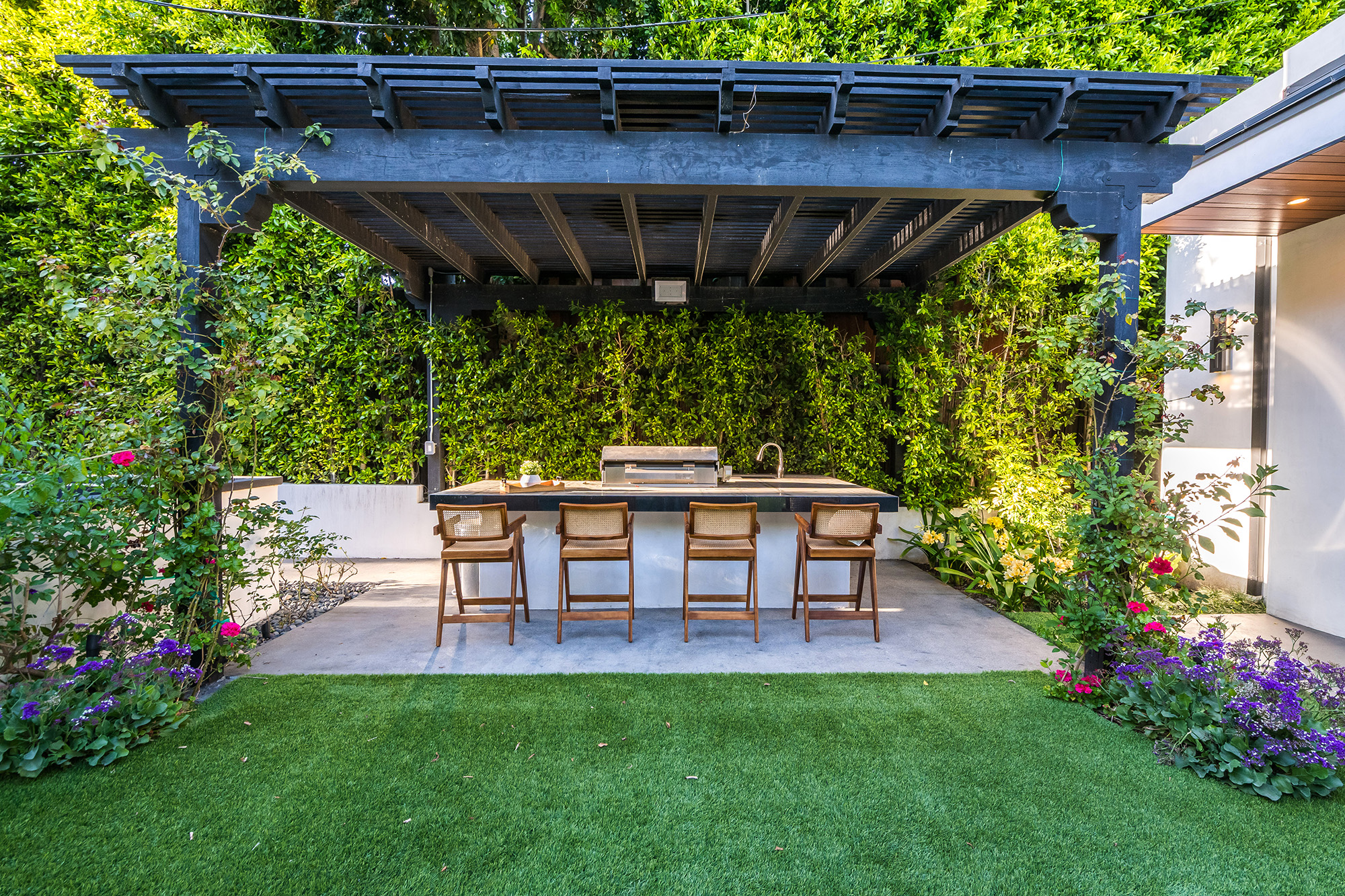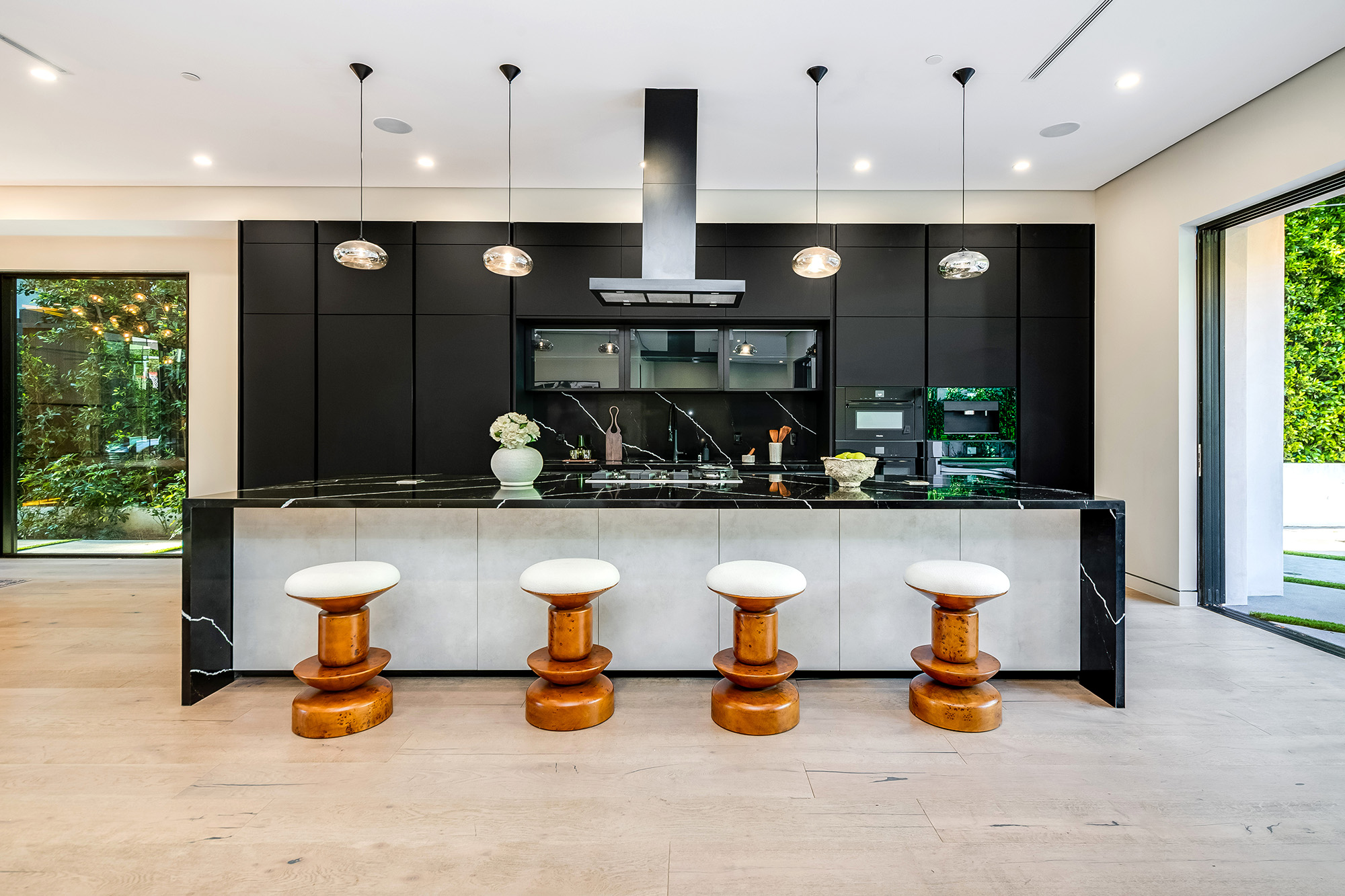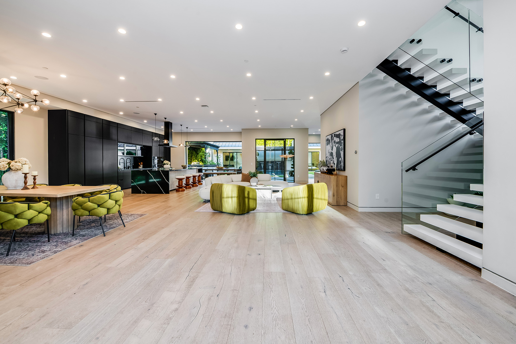 Stunning modern masterpiece in the heart of one of LA's most sought-after and highly coveted locations. At the pinnacle of luxury living, this striking, sleek, sophisticated, and state-of-the-art home is sure to impress even the most discerning clientele. Situated behind high hedges and tall gates, this one-of-a-kind, newly built mansion sits on a massive double lot, perched far back off the street. Greeted by two 250-year-old Sevillano Olive Trees and an ancient limestone fountain, with ample parking, the scale of the home is the first sign that this property is different from the rest. Boasting over 6,300 square feet of living space on an expansive 12,200+ square foot lot, with world-class designer finishes and, hands down, the best rooftop deck in LA. An entertainer's paradise, features of the home include a chef's kitchen with state-of-the-art appliances, mind-blowing indoor/outdoor living with a shimmering zero-edge infinity pool, top-tier privacy hedges, expansive open layout, soaring ceilings, a Hollywood-worthy home theater, fully integrated smart home technology, Lutron lighting, and a breathtaking primary suite with dual walk-in closets...and that's just to name a few! The list of amenities truly is endless, and this is one of those homes you simply have to see to believe.