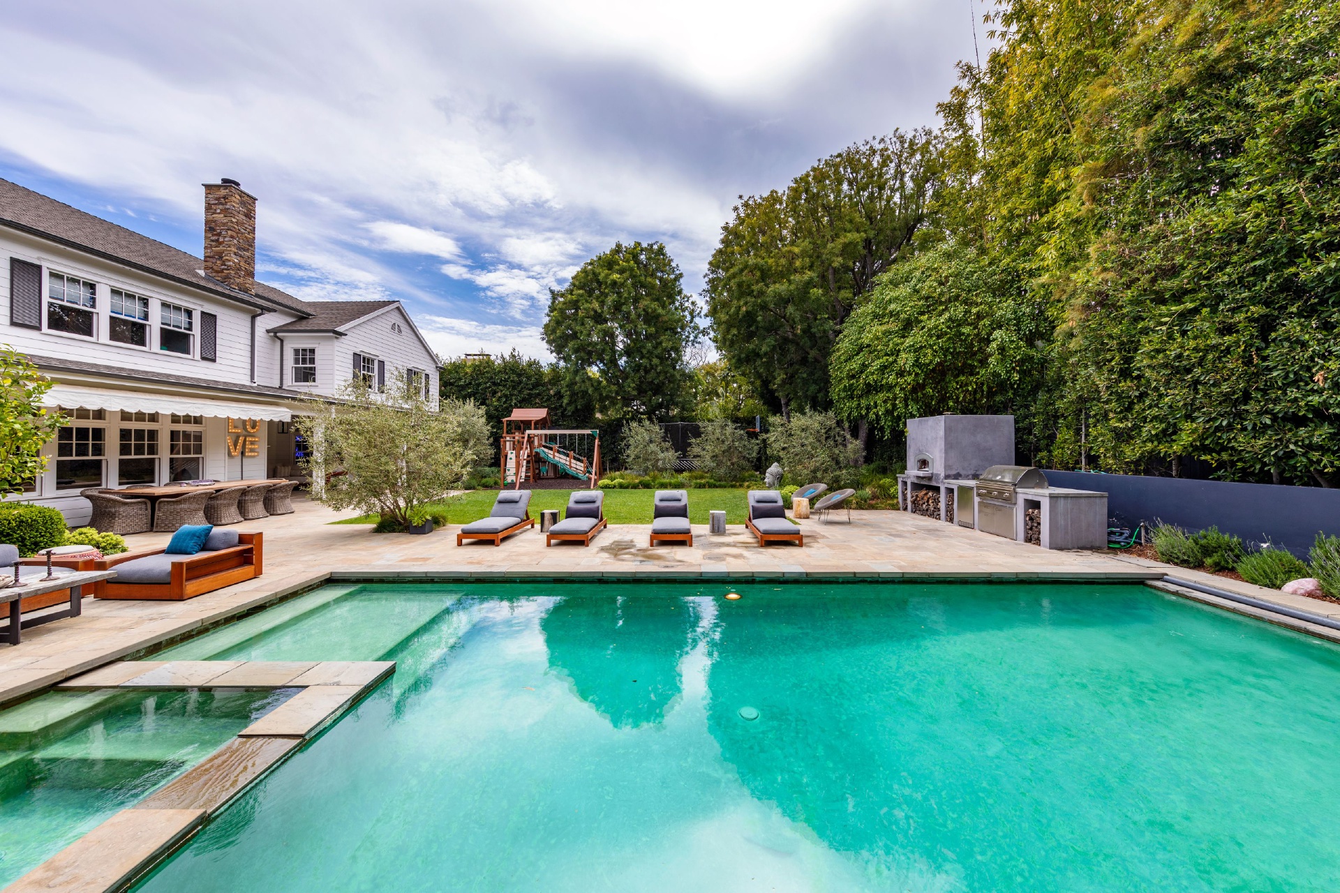 Nestled behind gates in the Pacific Palisades’ Rivieria neighborhood, this stylish transitional traditional estate is surrounded by manicured landscaping & mature trees to offer the upmost privacy. Minutes from The Riviera Country Club, polo field, Will Rogers beach, canyon hiking trails and the iconic Santa Monica pier with endless shopping, dining & entertainment. Equipped all the latest & greatest amenities, this exquisitely decorated home with interiors by Tracie Butler includes elegant living, dining & gourmet kitchen that blend seamlessly into your own private backyard paradise. Lush grounds with pool, spa, BBQ, zen hanging swing and poolside outdoor dining with fireplace. Exquisite master suite includes chic walk-in closets with vanity, magnificent bath with freestanding tub and garden views.