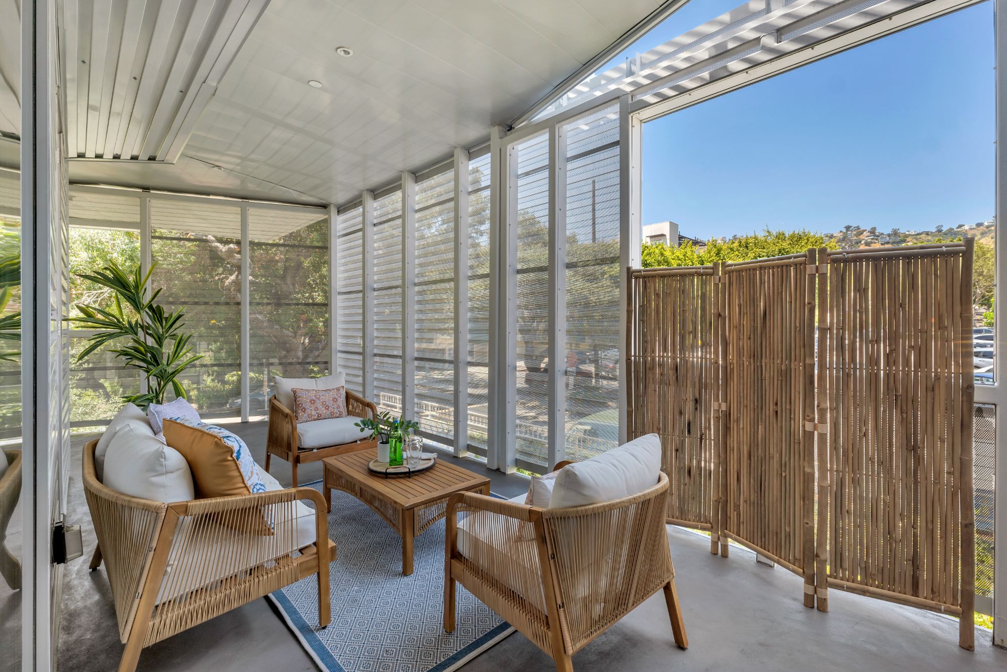 Come discover upscale modern living in this stunning architectural masterpiece located in a secured gated community in the heart of WEHO. Built in 2018, this elegant 2-bedroom, 2-bathroom residence features nearly 1,100 square feet of indoor / outdoor perfection, offering an impeccable blend of style and comfort. The open contemporary design is flush with high-end finishes throughout including a gourmet chef s kitchen area with mobile waterfall-style island, raw wood cabinetry and state-of-the-art Miele appliances. Both exquisite bedroom suites feature an abundance of natural light, walk-in wardrobes and luxurious ensuite bathrooms with hand-selected floor-to-ceiling marble slabs, lush wood vanities and TOTO porcelain sinks. Just outside the sun-soaked living room an expansive oversized private patio sits amongst the trees, providing the perfect location for enjoying a morning coffee or entertaining your guests. Additional features of this luxury condo include in unit laundry, extra storage in the garage, bike storage, 2 tandem parking spots, a fully equipped top-notch fitness center, gated entry, and two entertainment and lounging areas with stunning views of the surrounding Hollywood Hills. Situated in a prime West Hollywood location, this condo offers the ultimate in luxury and convenience and won t last long. Note: (MLS advertised square footage is per seller and includes the outdoor patio area. Assessor shows total interior square footage as 940 square feet.)