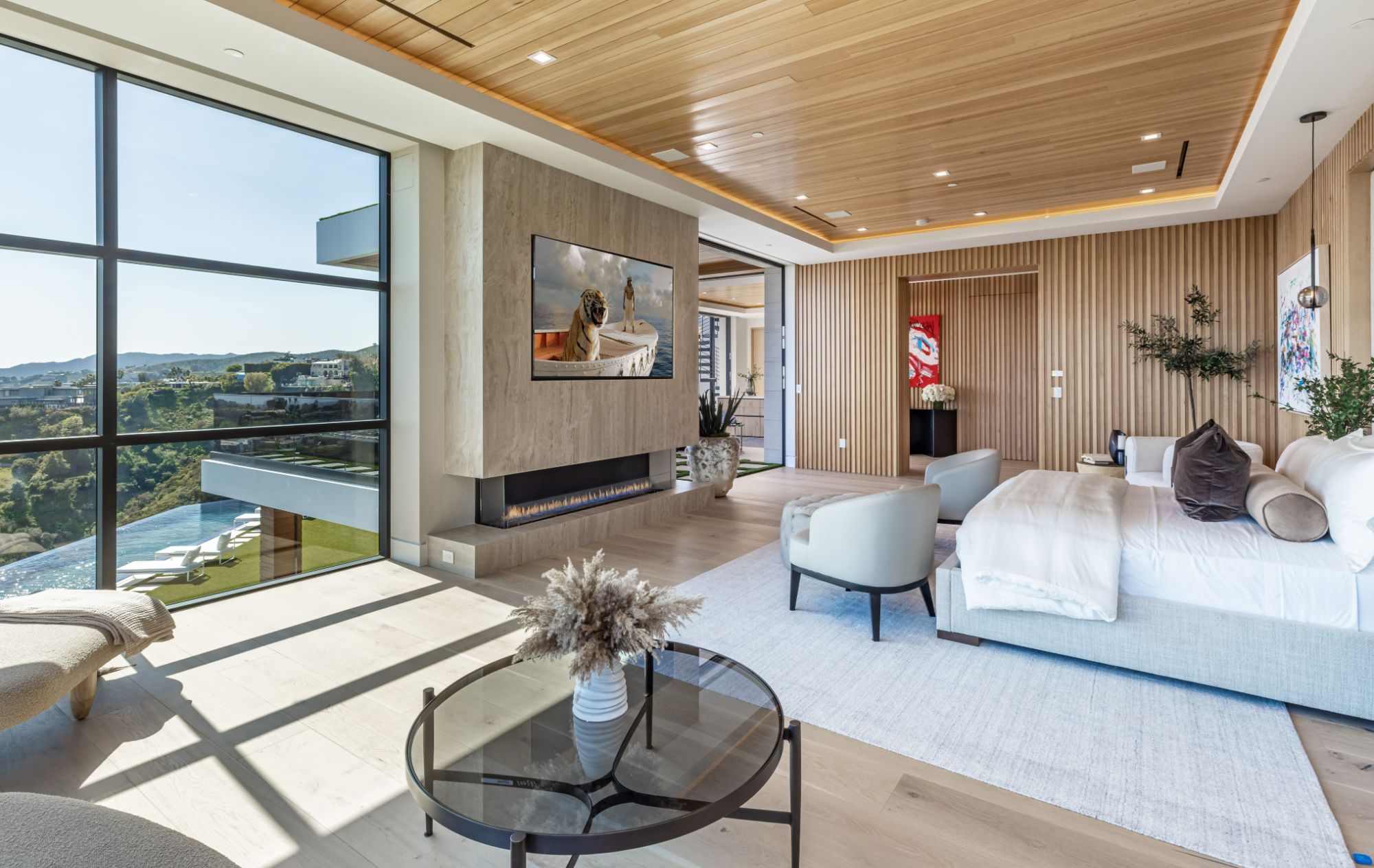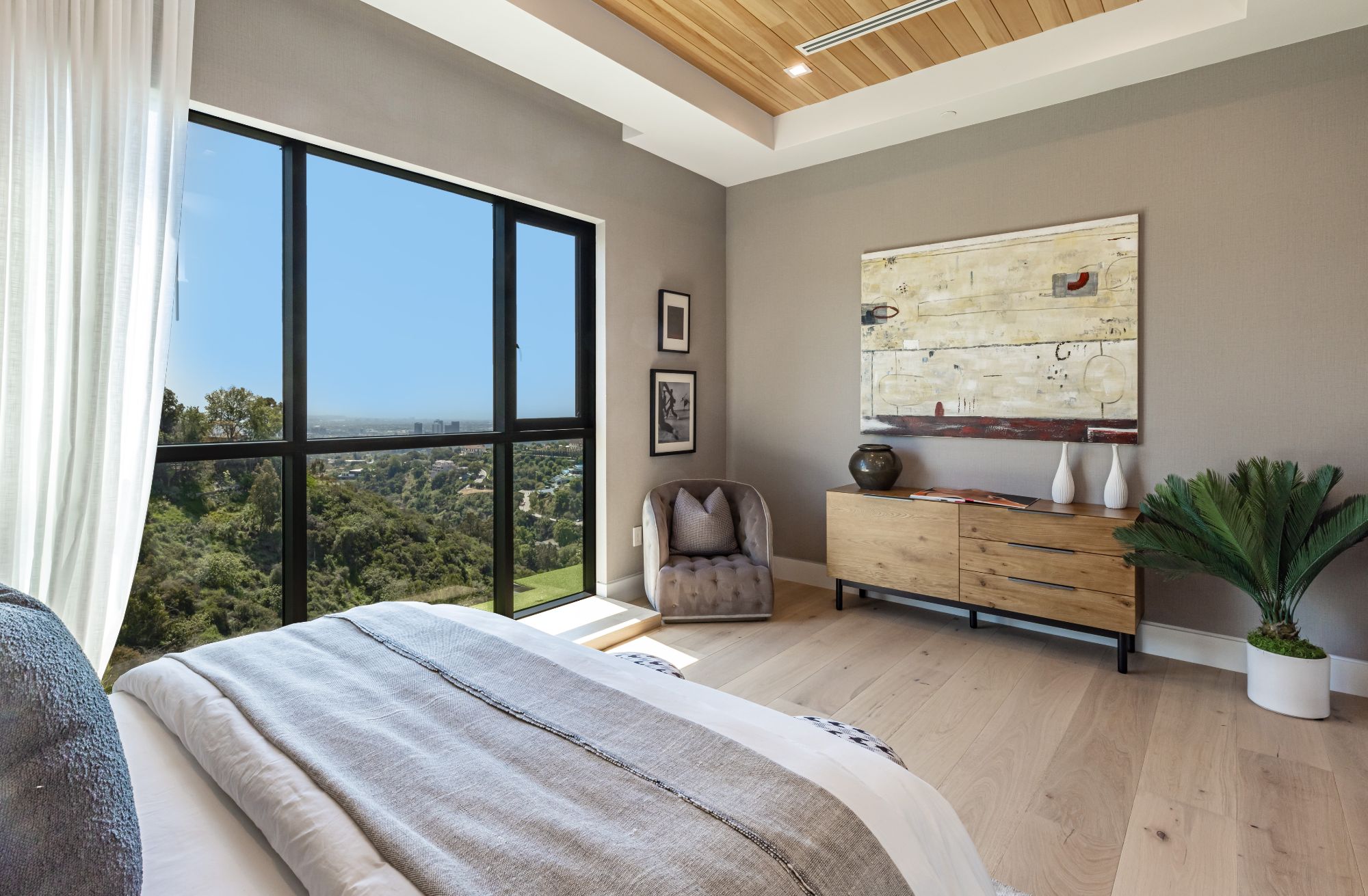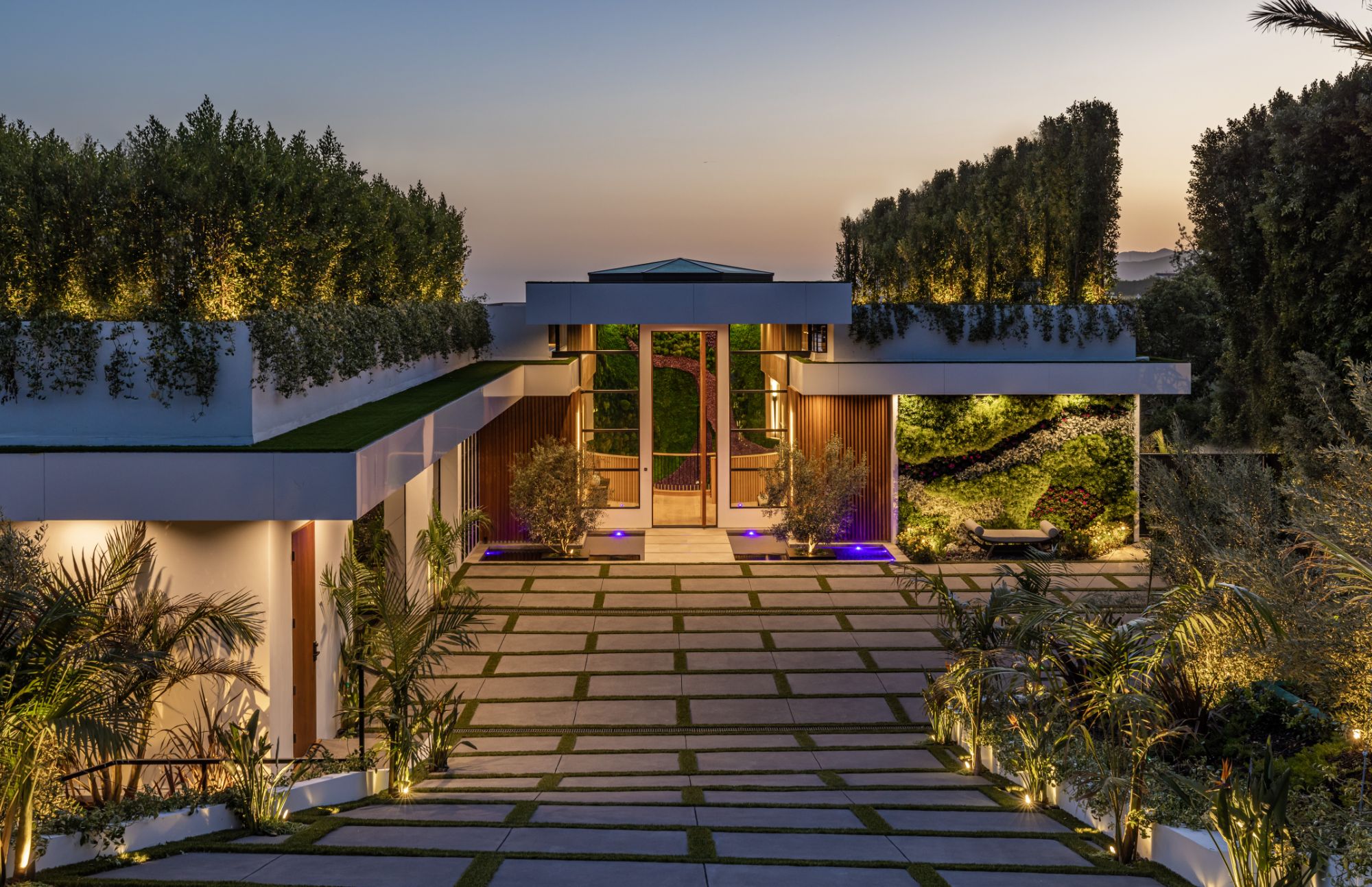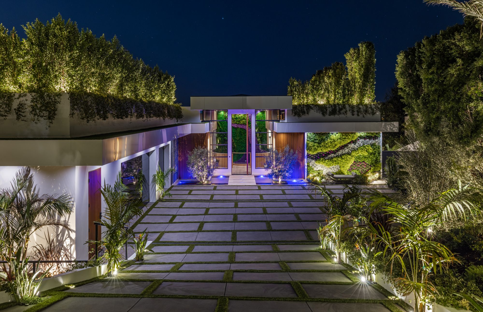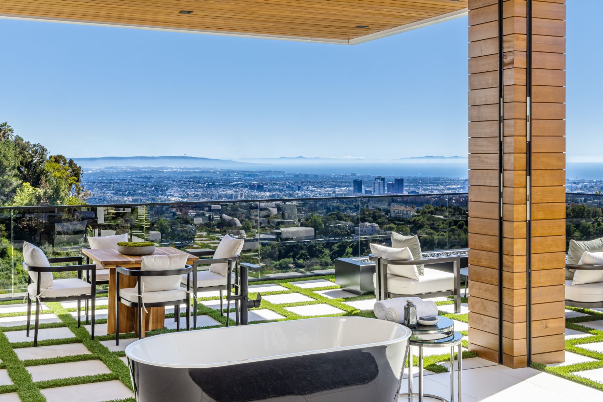 Welcome to Bel-Air Paradise, a brand-new estate, designed and built by the legendary Designer and Developer, Ramtin Ray Nosrati. Descend the private, gated driveway to this incredible oasis set in one of the most prestigious neighborhoods. The lush grounds and gated drive provide the utmost privacy and security. The oversized front door is flanked by walls of glass, wood, and a colorful living wall to create an unforgettable welcome. Step inside to experience the warm contemporary design, high-end finishes, show-stopping living wall, high ceilings, and panoramic ocean/city views. Automated Fleetwood glass doors open throughout the home to create a seamless indoor/outdoor lifestyle. The custom culinary center is a gourmand's dream, with state-of-the-art appliances, adjacent chef's prep area with restaurant-grade walk-in refrigerator, and oversized island. A travertine clad bar and stunning wine room with tasting area help to make this one of the most incredible homes for entertaining. The primary suite is complete with fireplace, wraparound deck with fire pit and sweeping views, spa-inspired bath with oversized rainwater shower, a Zen soaking tub, dual-sink vanity, and custom walk-in closet and dressing room. The latest and greatest amenities include a theater, gym, resort-style tropical landscaping, parking for 7 cars, smart-home system, and automated security. The outdoor oasis offers the perfect space for dining al fresco, outdoor kitchen with bar and flat-screen tv, flat grassy areas, spa, and a massive 80-foot zero-edge infinity-edge pool looking out to incredible city and ocean vistas. There is a large flat area that is perfect for adding a sports court, pickleball court, or tennis court. The outdoor space continues to the rooftop lounge with bar, large tv, fire pit, built-in BBQ, and putting green. Do not miss this opportunity to live at Bel-Air Paradise with jetliner views and incredible amenities in one of the most sought-after locations.