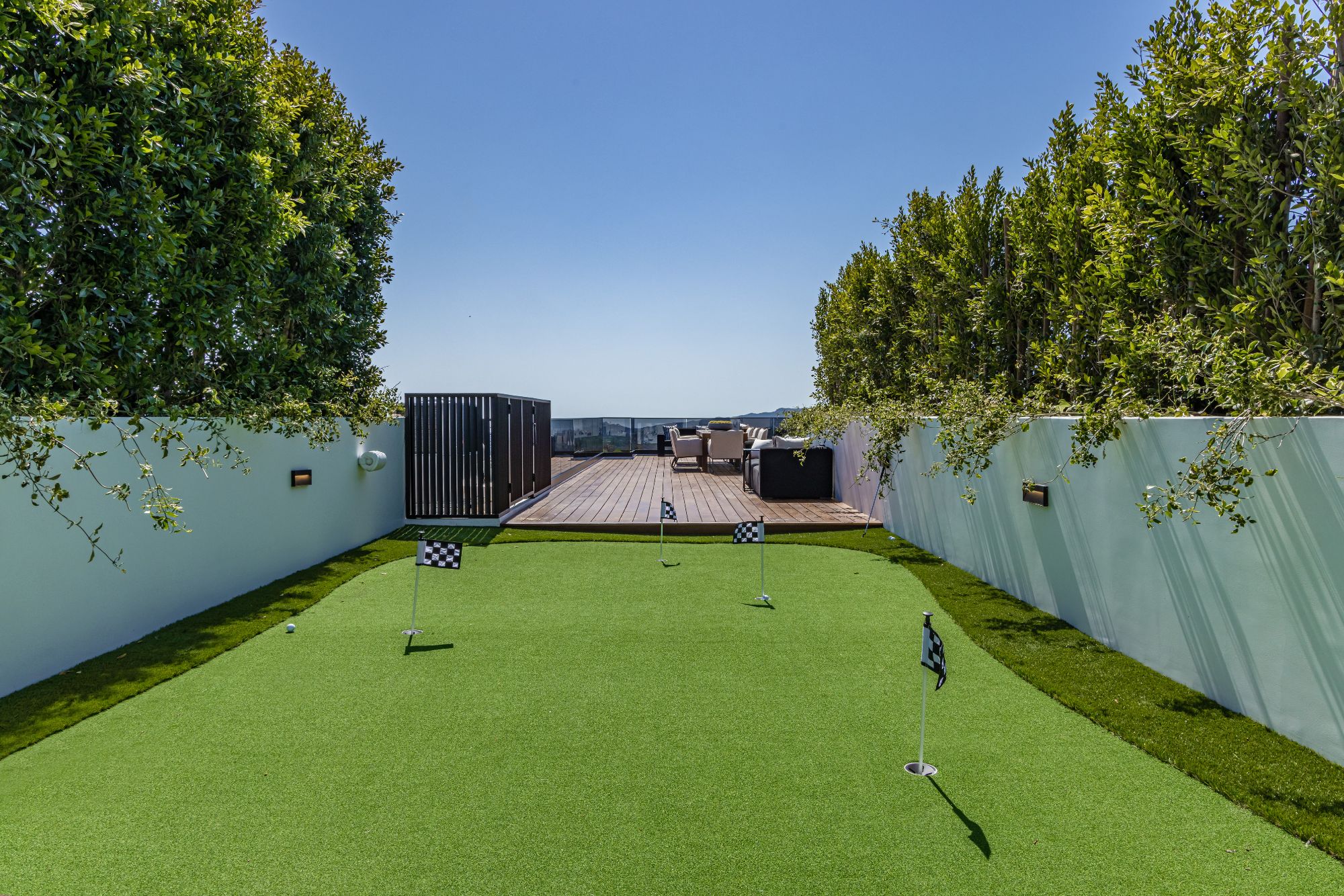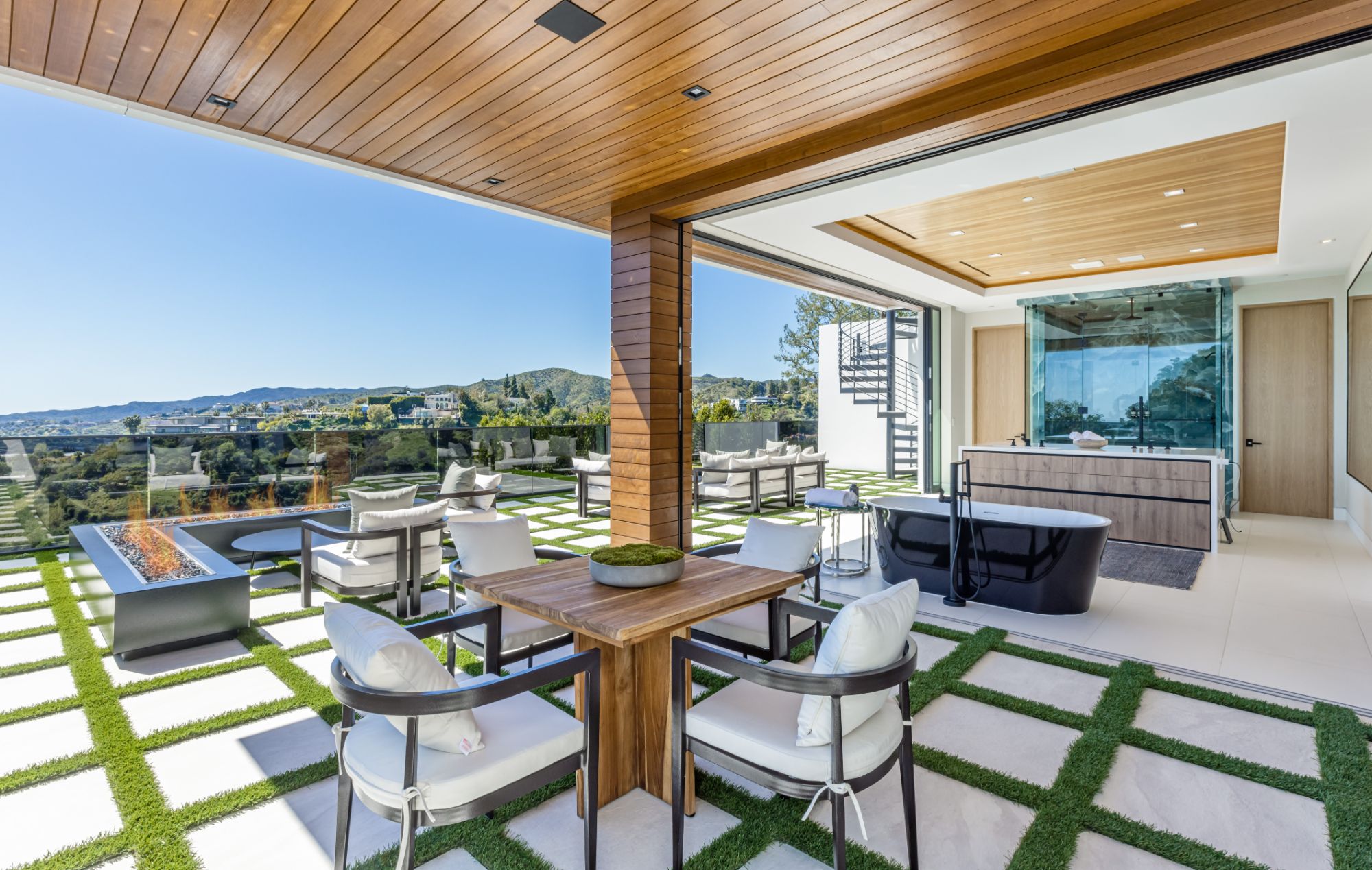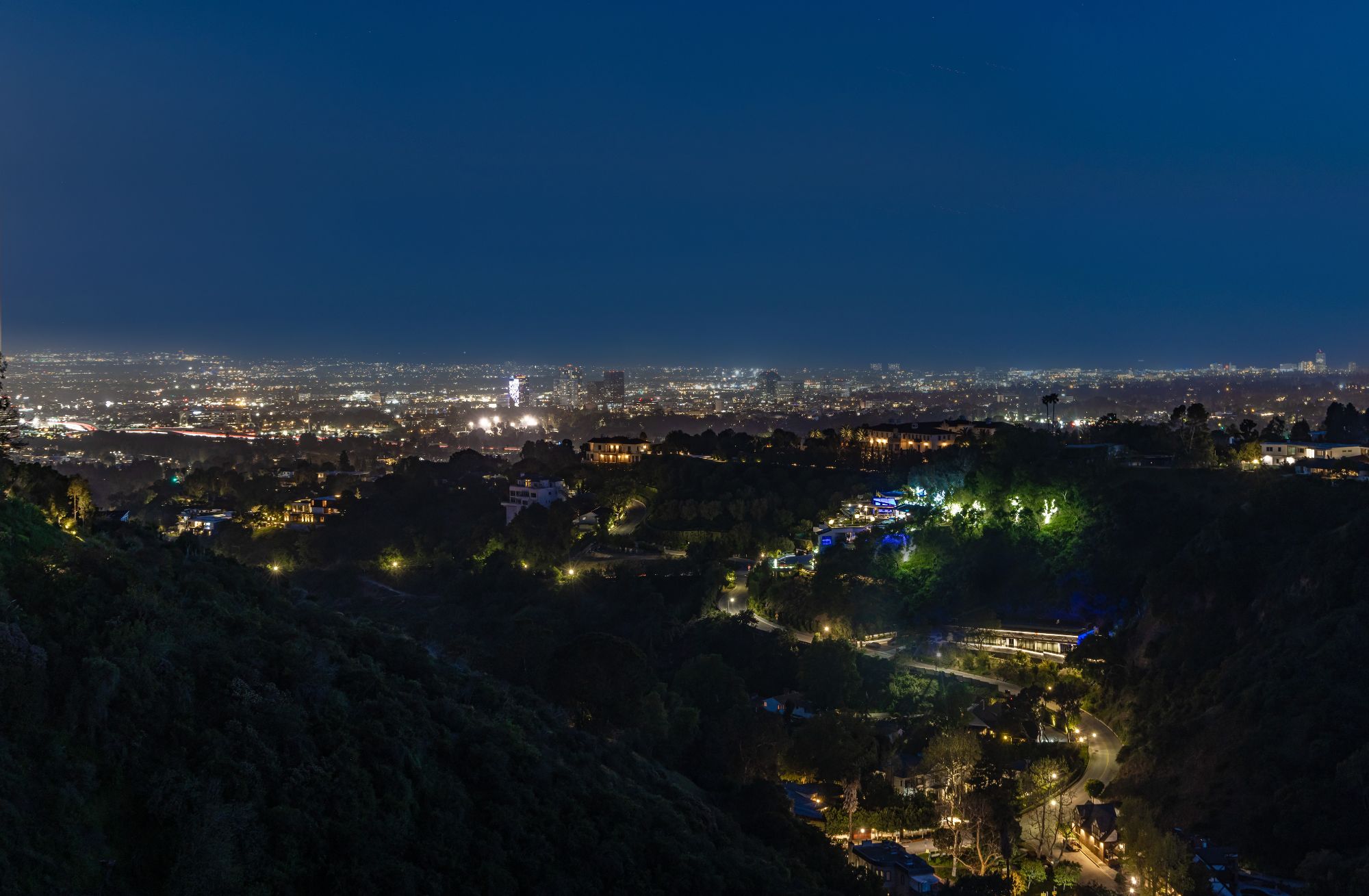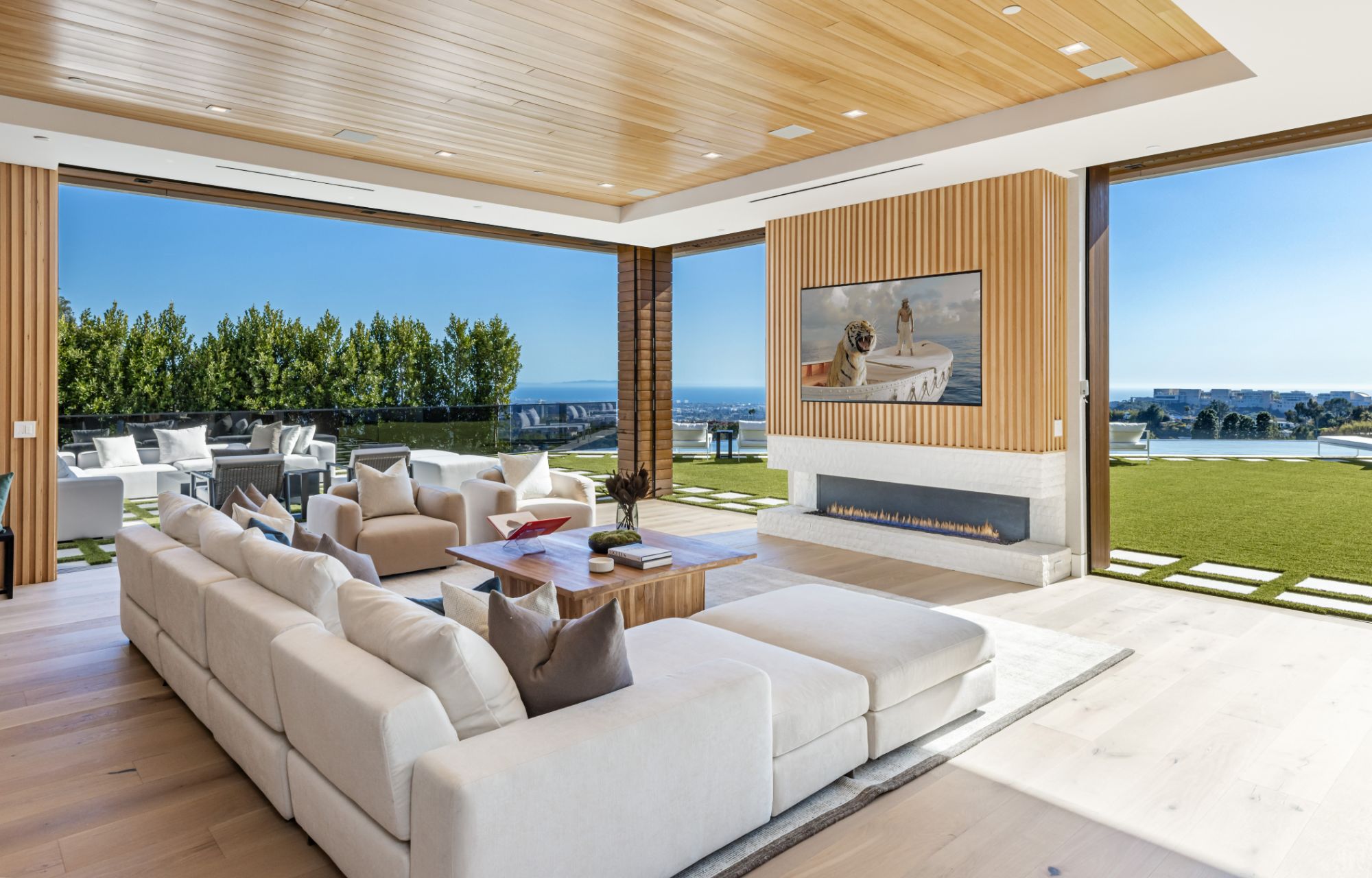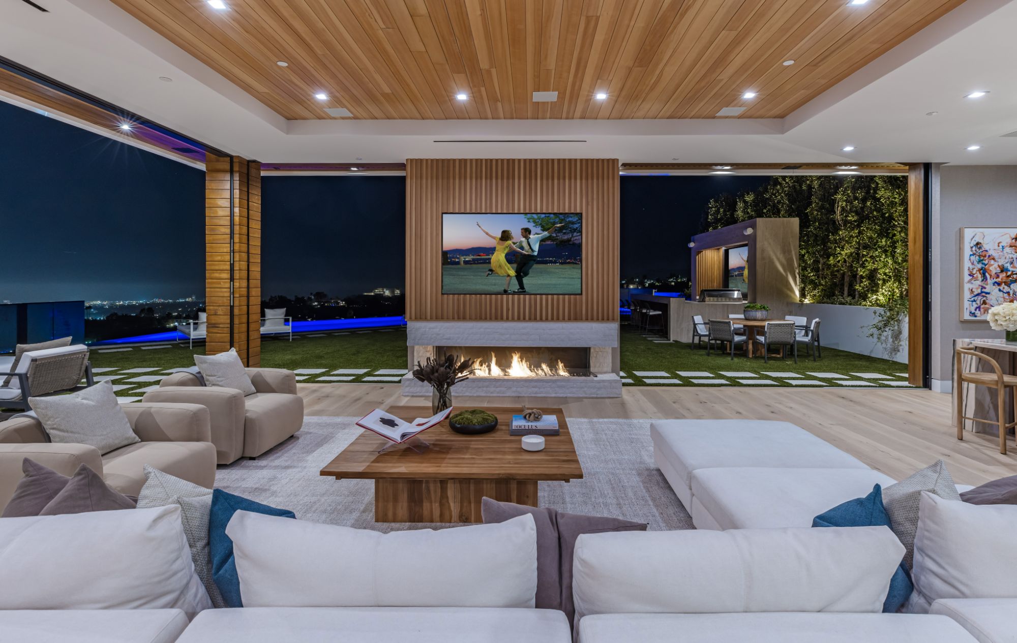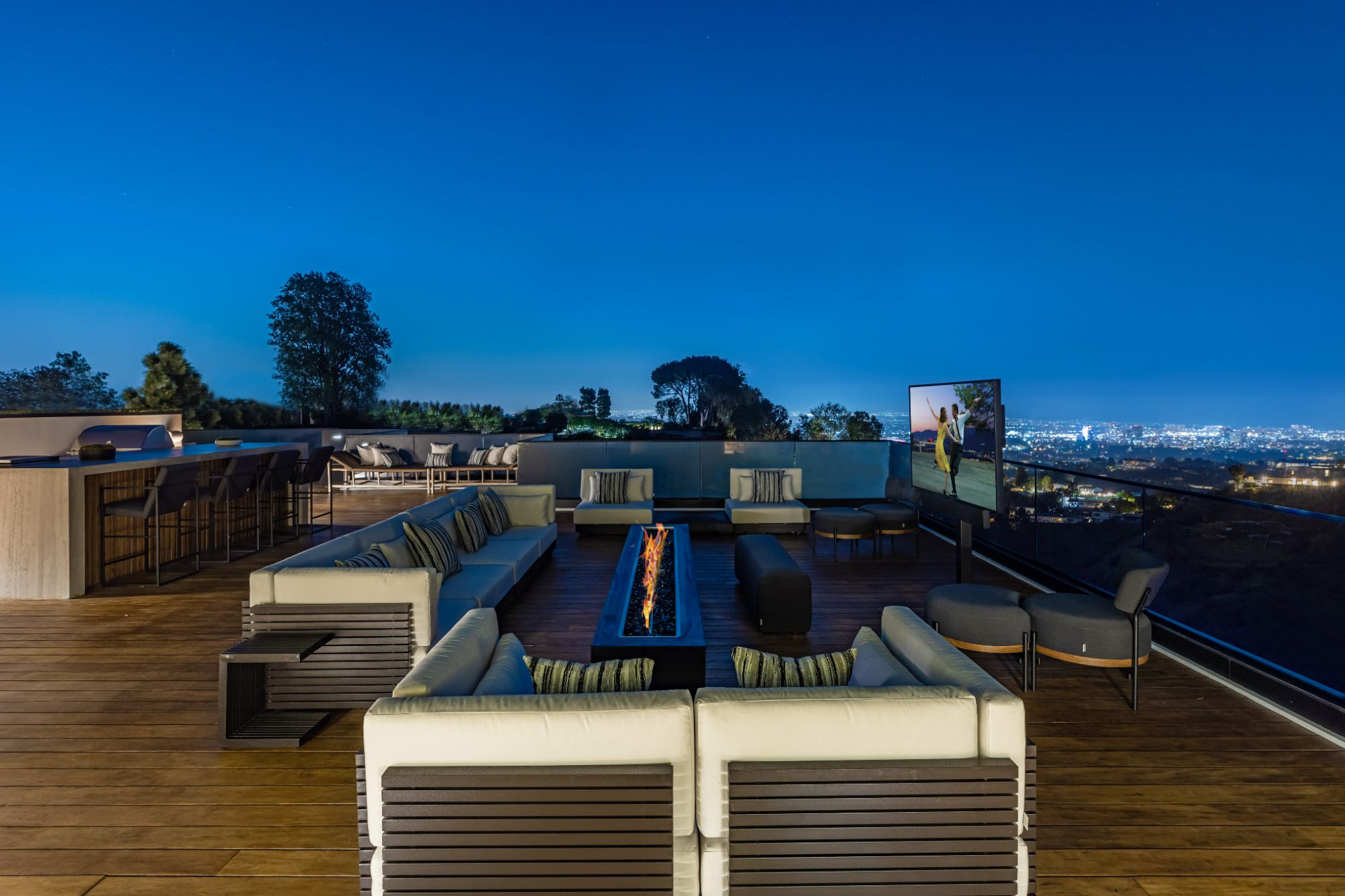 Welcome to Bel-Air Paradise, a brand-new estate, designed and built by the legendary Designer and Developer, Ramtin Ray Nosrati. Descend the private, gated driveway to this incredible oasis set in one of the most prestigious neighborhoods. The lush grounds and gated drive provide the utmost privacy and security. The oversized front door is flanked by walls of glass, wood, and a colorful living wall to create an unforgettable welcome. Step inside to experience the warm contemporary design, high-end finishes, show-stopping living wall, high ceilings, and panoramic ocean/city views. Automated Fleetwood glass doors open throughout the home to create a seamless indoor/outdoor lifestyle. The custom culinary center is a gourmand's dream, with state-of-the-art appliances, adjacent chef's prep area with restaurant-grade walk-in refrigerator, and oversized island. A travertine clad bar and stunning wine room with tasting area help to make this one of the most incredible homes for entertaining. The primary suite is complete with fireplace, wraparound deck with fire pit and sweeping views, spa-inspired bath with oversized rainwater shower, a Zen soaking tub, dual-sink vanity, and custom walk-in closet and dressing room. The latest and greatest amenities include a theater, gym, resort-style tropical landscaping, parking for 7 cars, smart-home system, and automated security. The outdoor oasis offers the perfect space for dining al fresco, outdoor kitchen with bar and flat-screen tv, flat grassy areas, spa, and a massive 80-foot zero-edge infinity-edge pool looking out to incredible city and ocean vistas. There is a large flat area that is perfect for adding a sports court, pickleball court, or tennis court. The outdoor space continues to the rooftop lounge with bar, large tv, fire pit, built-in BBQ, and putting green. Do not miss this opportunity to live at Bel-Air Paradise with jetliner views and incredible amenities in one of the most sought-after locations.