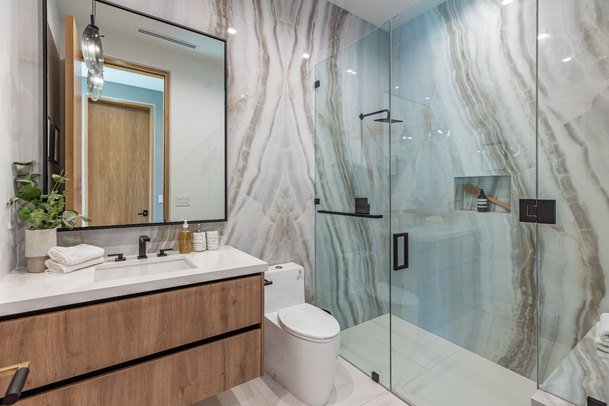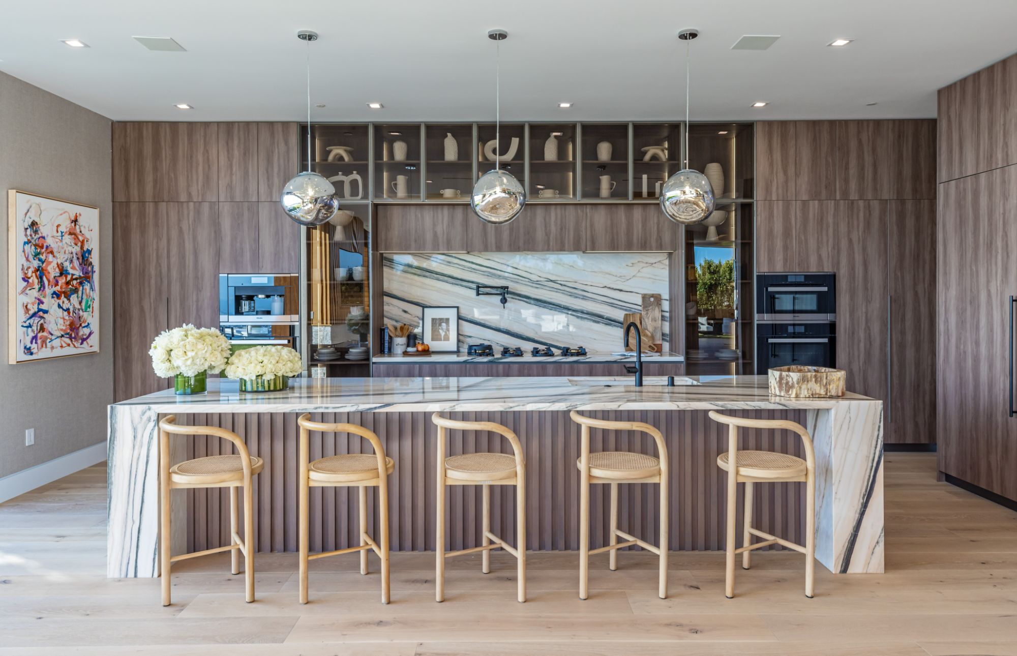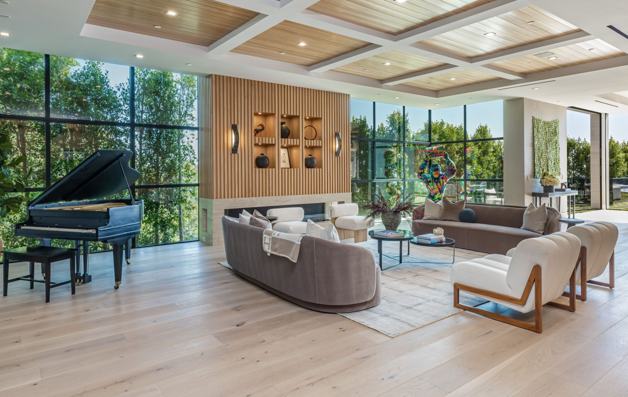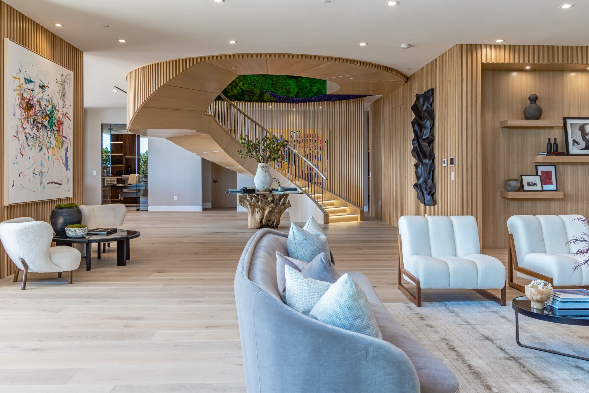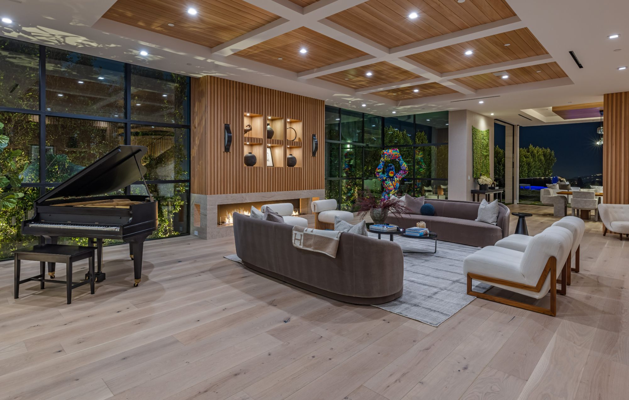 Welcome to Bel-Air Paradise, a brand-new estate, designed and built by the legendary Designer and Developer, Ramtin Ray Nosrati. Descend the private, gated driveway to this incredible oasis set in one of the most prestigious neighborhoods. The lush grounds and gated drive provide the utmost privacy and security. The oversized front door is flanked by walls of glass, wood, and a colorful living wall to create an unforgettable welcome. Step inside to experience the warm contemporary design, high-end finishes, show-stopping living wall, high ceilings, and panoramic ocean/city views. Automated Fleetwood glass doors open throughout the home to create a seamless indoor/outdoor lifestyle. The custom culinary center is a gourmand's dream, with state-of-the-art appliances, adjacent chef's prep area with restaurant-grade walk-in refrigerator, and oversized island. A travertine clad bar and stunning wine room with tasting area help to make this one of the most incredible homes for entertaining. The primary suite is complete with fireplace, wraparound deck with fire pit and sweeping views, spa-inspired bath with oversized rainwater shower, a Zen soaking tub, dual-sink vanity, and custom walk-in closet and dressing room. The latest and greatest amenities include a theater, gym, resort-style tropical landscaping, parking for 7 cars, smart-home system, and automated security. The outdoor oasis offers the perfect space for dining al fresco, outdoor kitchen with bar and flat-screen tv, flat grassy areas, spa, and a massive 80-foot zero-edge infinity-edge pool looking out to incredible city and ocean vistas. There is a large flat area that is perfect for adding a sports court, pickleball court, or tennis court. The outdoor space continues to the rooftop lounge with bar, large tv, fire pit, built-in BBQ, and putting green. Do not miss this opportunity to live at Bel-Air Paradise with jetliner views and incredible amenities in one of the most sought-after locations.