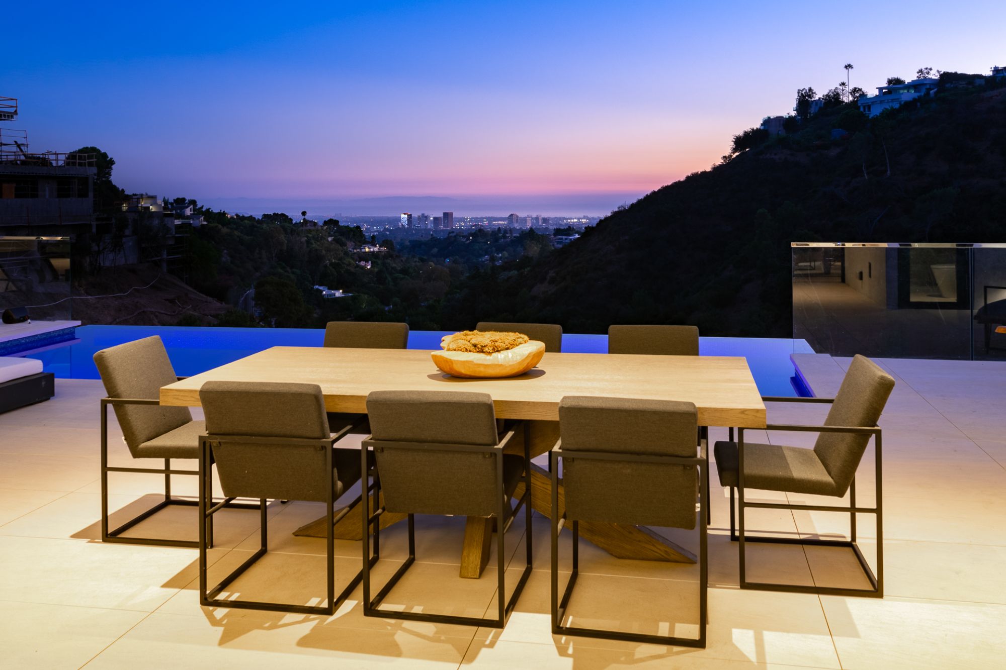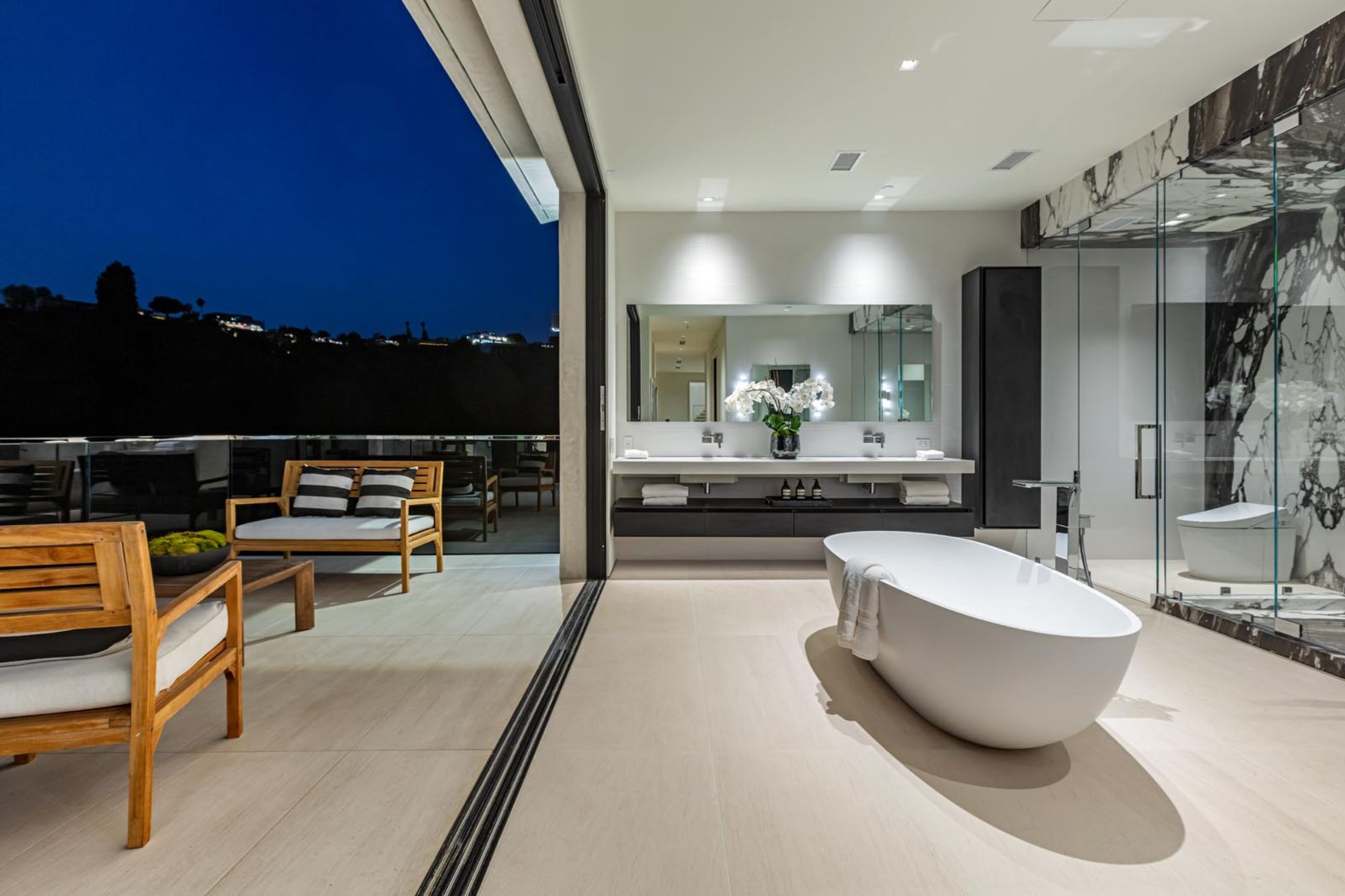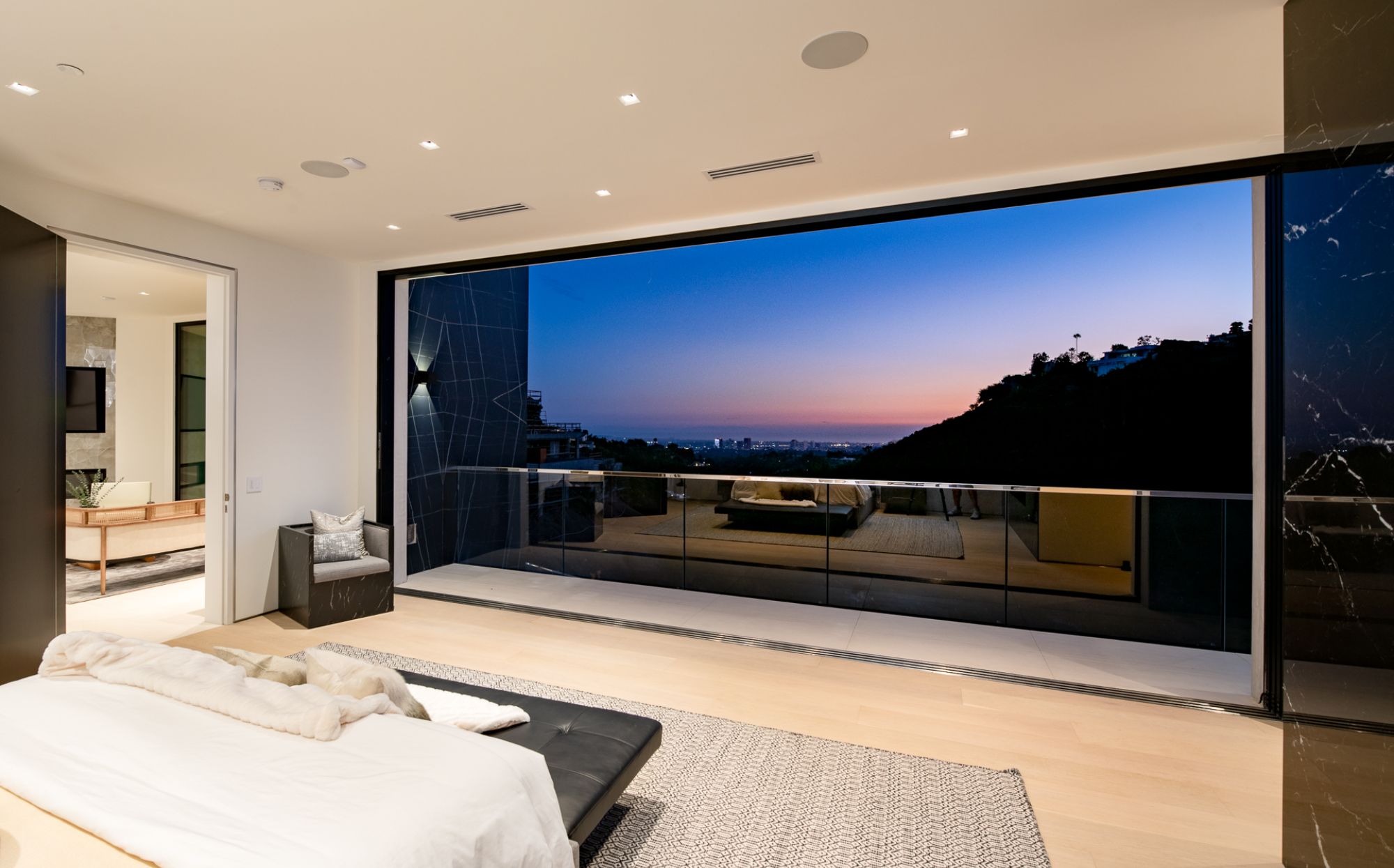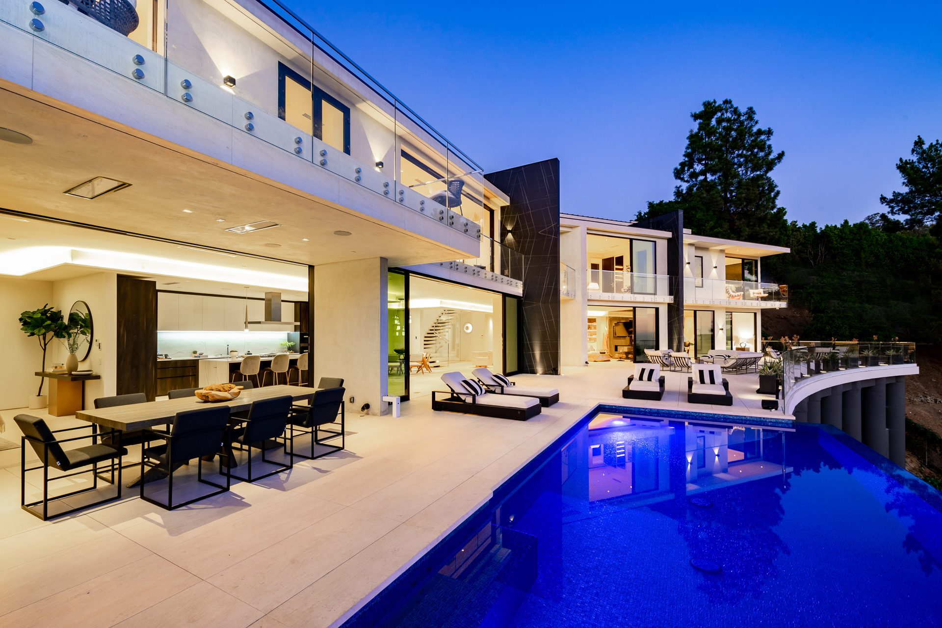 This brand-new organic contemporary masterpiece is a beautiful private retreat situated in prime Bel Air with explosive views stretching from lush canyon, glimmering city, all the way to the ocean. In a tranquil setting, elegant, open, expansive spaces where clean lines meet the finest finishes such as of the imported Italian marble from Antolini, beautiful Italian limestone floors, Oak wood floors, and Lutron Lighting system. with the most captivating indoor-outdoor flow, every main room of this exceptional residence soak up the sunlight and sweeping views with floor-to-ceiling Fleetwood doors open to outdoor entertainment spaces that include a 3,000-sqft patio with an infinity pool spilling to the skyline. The gorgeous Italian kitchen is custom designed by Aran Cucine and outfitted with Miele appliances. All 6 en-suite bedrooms have exceptional views. The elegant primary suite features a private balcony, and a luxurious bathroom with a soaking tub. Additional 5-star amenities include a theater, game lounge, wine cellar, home office, and plenty of space for a gym and second office. A rare opportunity to own an extraordinary home flawlessly designed to provide the most desirable lifestyle and entertainment in an exclusive community.
