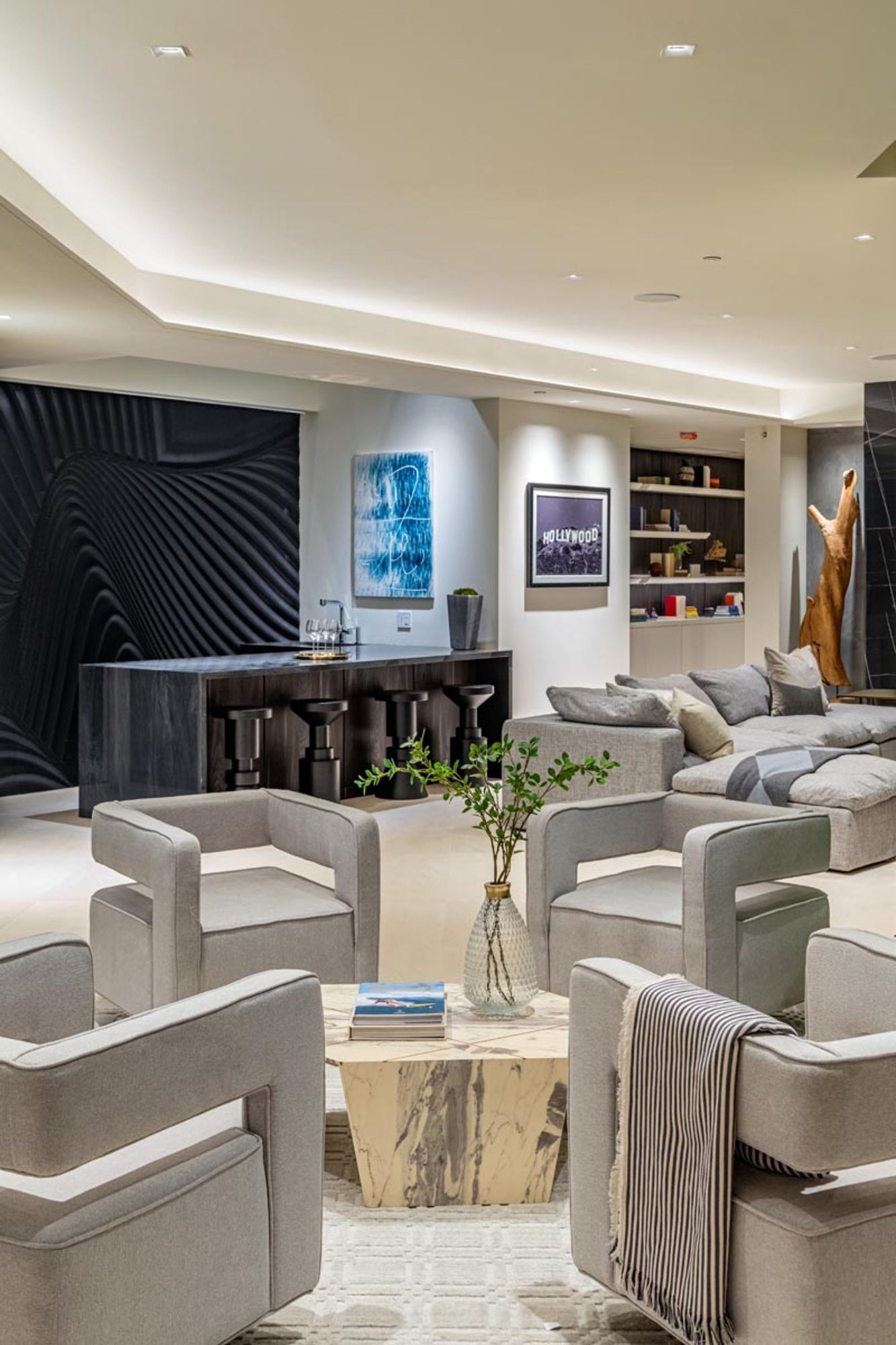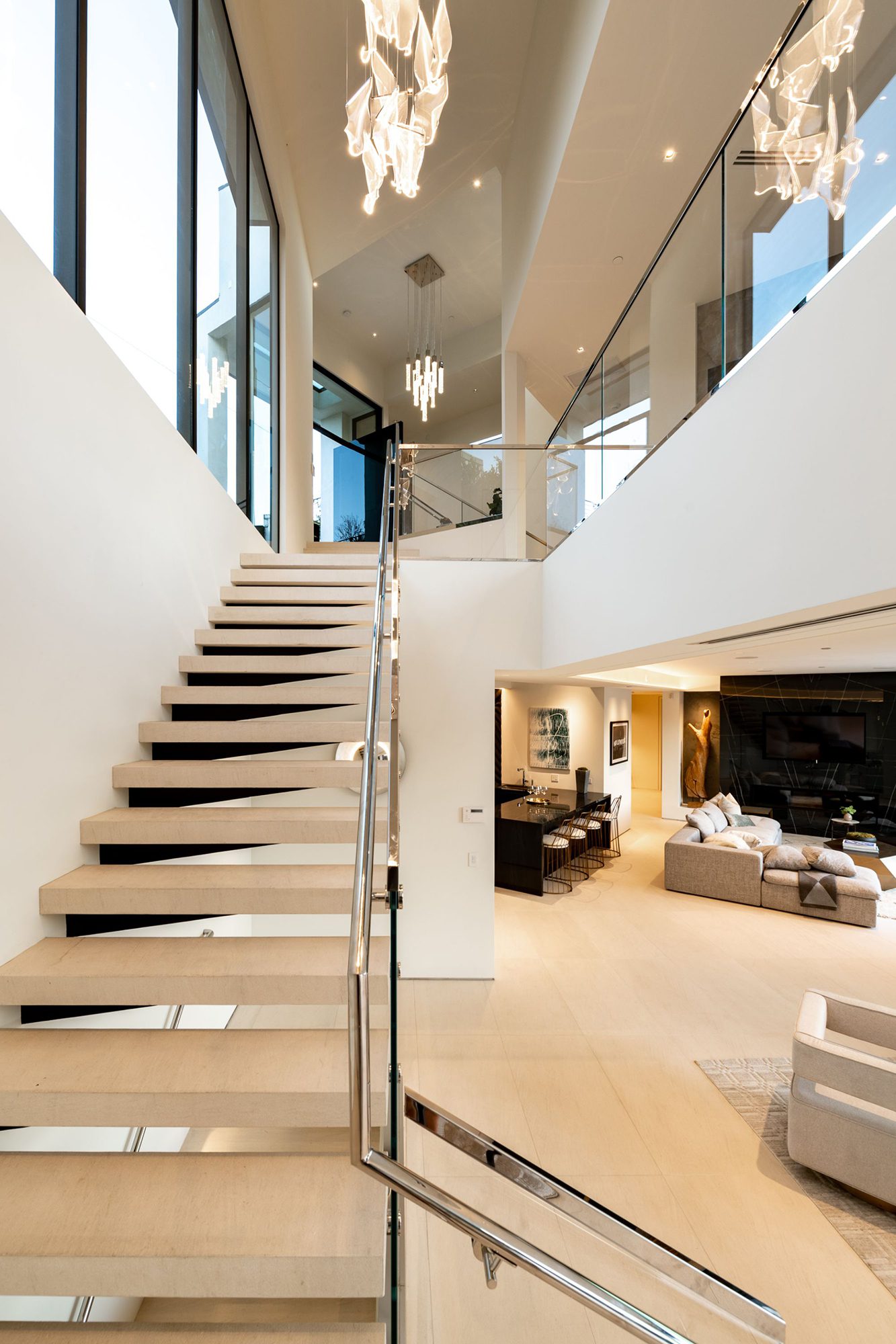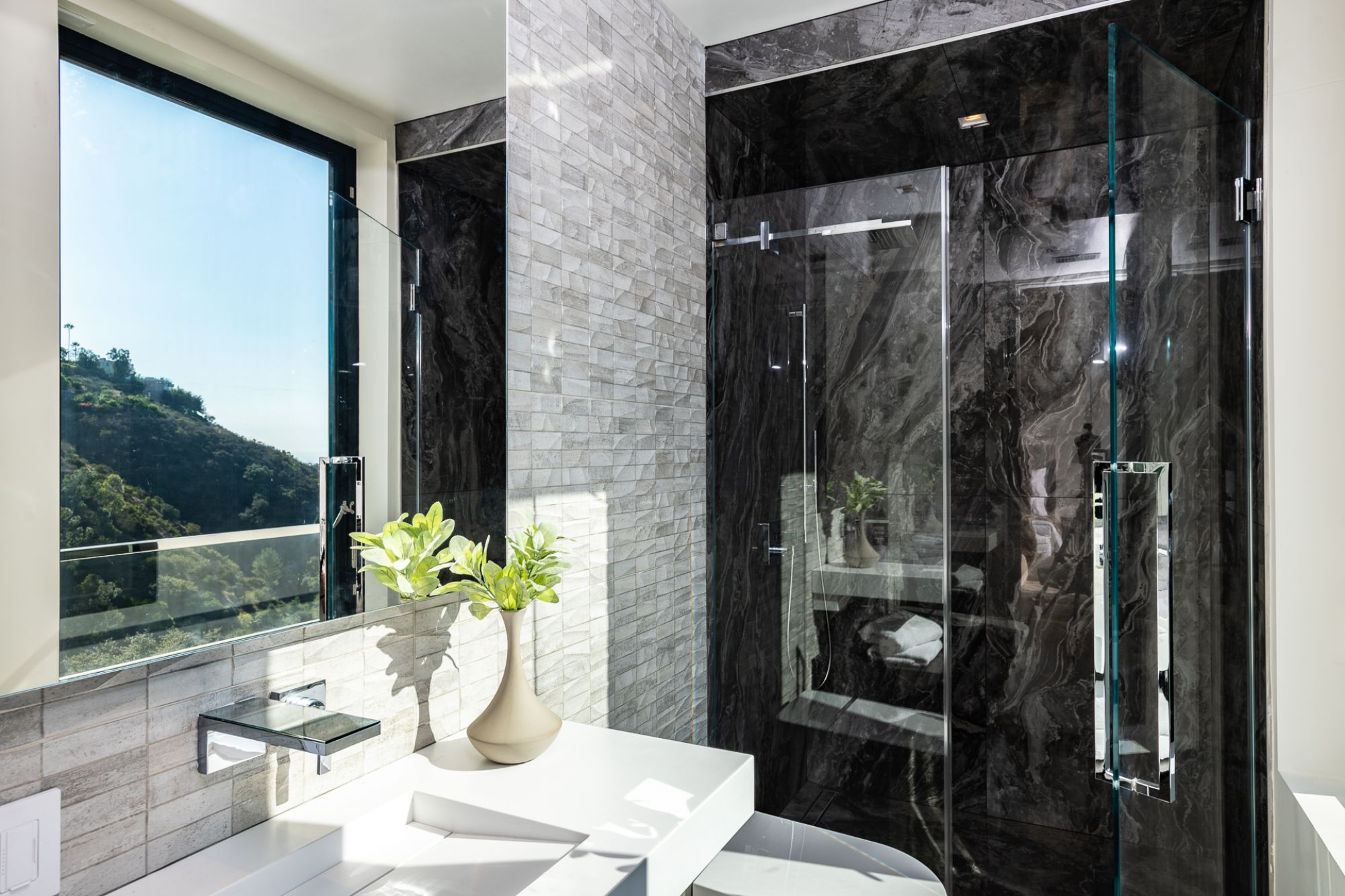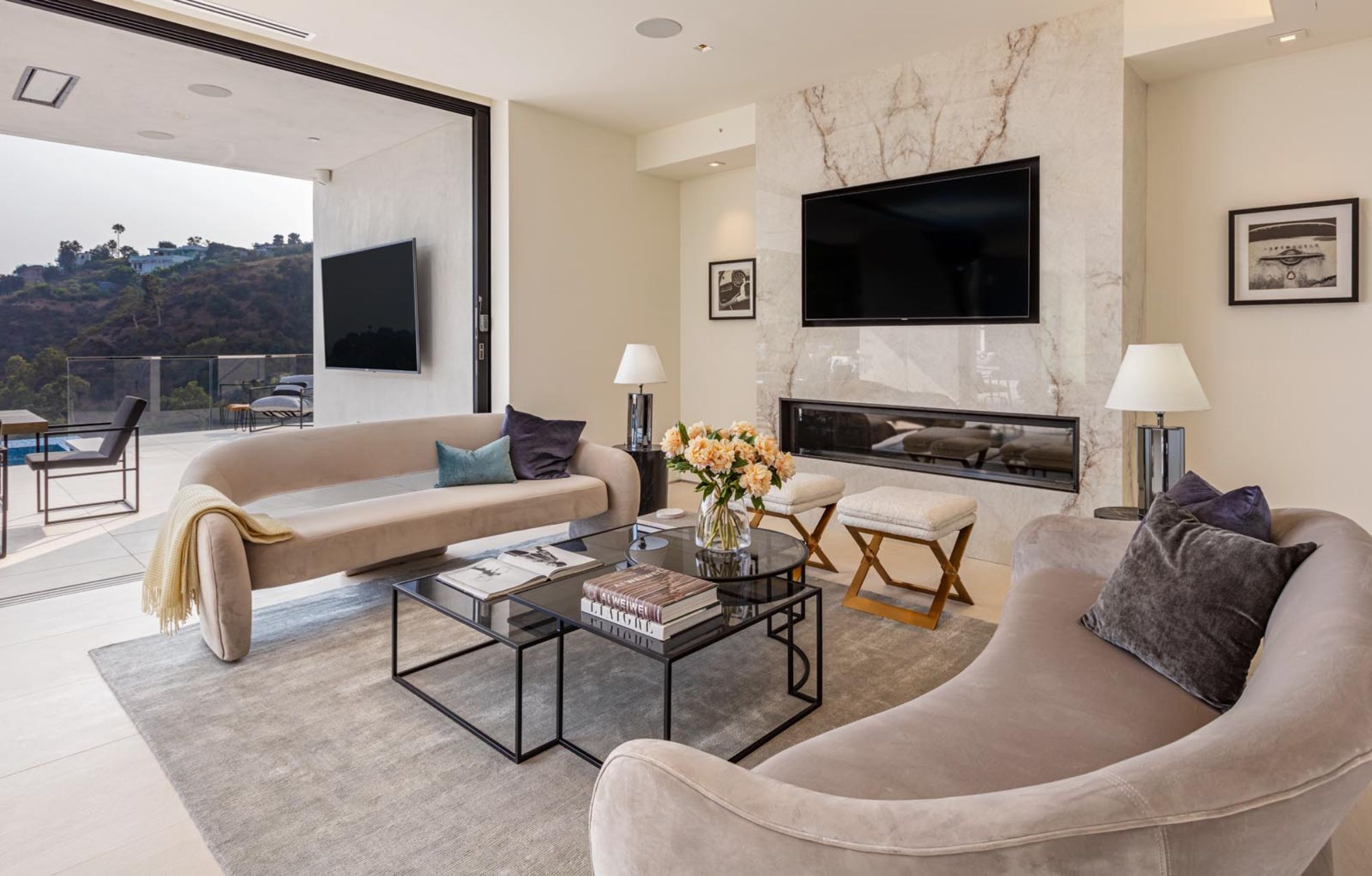 This brand-new organic contemporary masterpiece is a beautiful private retreat situated in prime Bel Air with explosive views stretching from lush canyon, glimmering city, all the way to the ocean. In a tranquil setting, elegant, open, expansive spaces where clean lines meet the finest finishes such as of the imported Italian marble from Antolini, beautiful Italian limestone floors, Oak wood floors, and Lutron Lighting system. with the most captivating indoor-outdoor flow, every main room of this exceptional residence soak up the sunlight and sweeping views with floor-to-ceiling Fleetwood doors open to outdoor entertainment spaces that include a 3,000-sqft patio with an infinity pool spilling to the skyline. The gorgeous Italian kitchen is custom designed by Aran Cucine and outfitted with Miele appliances. All 6 en-suite bedrooms have exceptional views. The elegant primary suite features a private balcony, and a luxurious bathroom with a soaking tub. Additional 5-star amenities include a theater, game lounge, wine cellar, home office, and plenty of space for a gym and second office. A rare opportunity to own an extraordinary home flawlessly designed to provide the most desirable lifestyle and entertainment in an exclusive community.