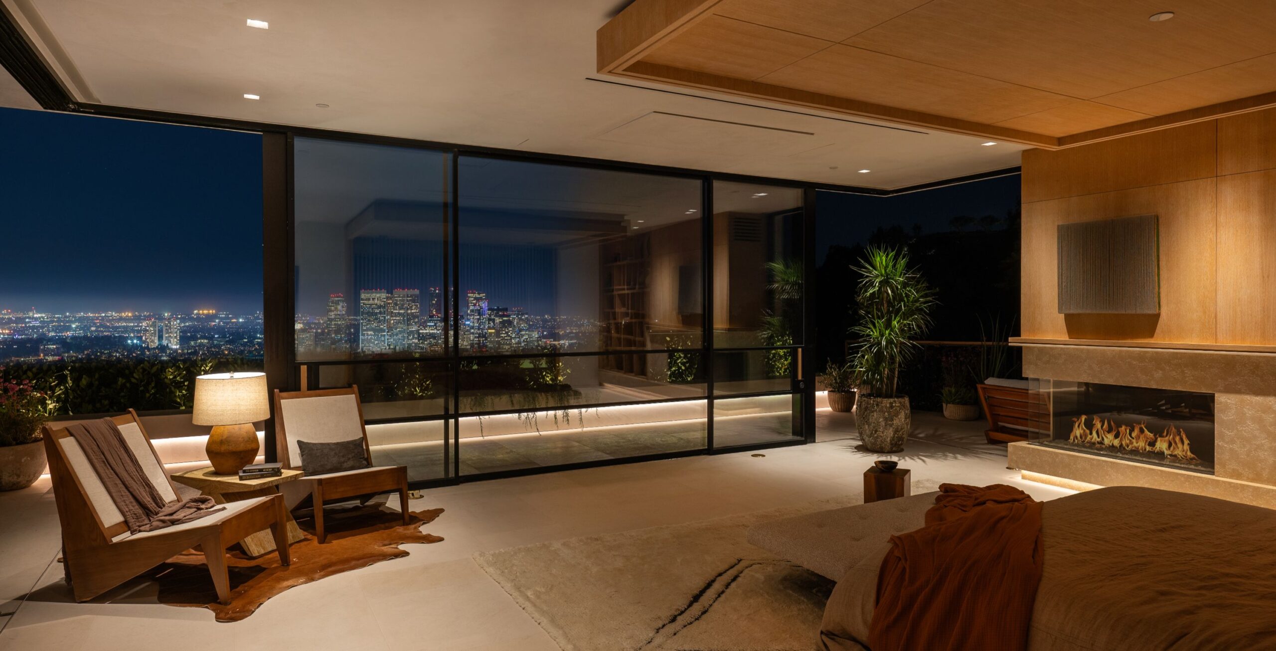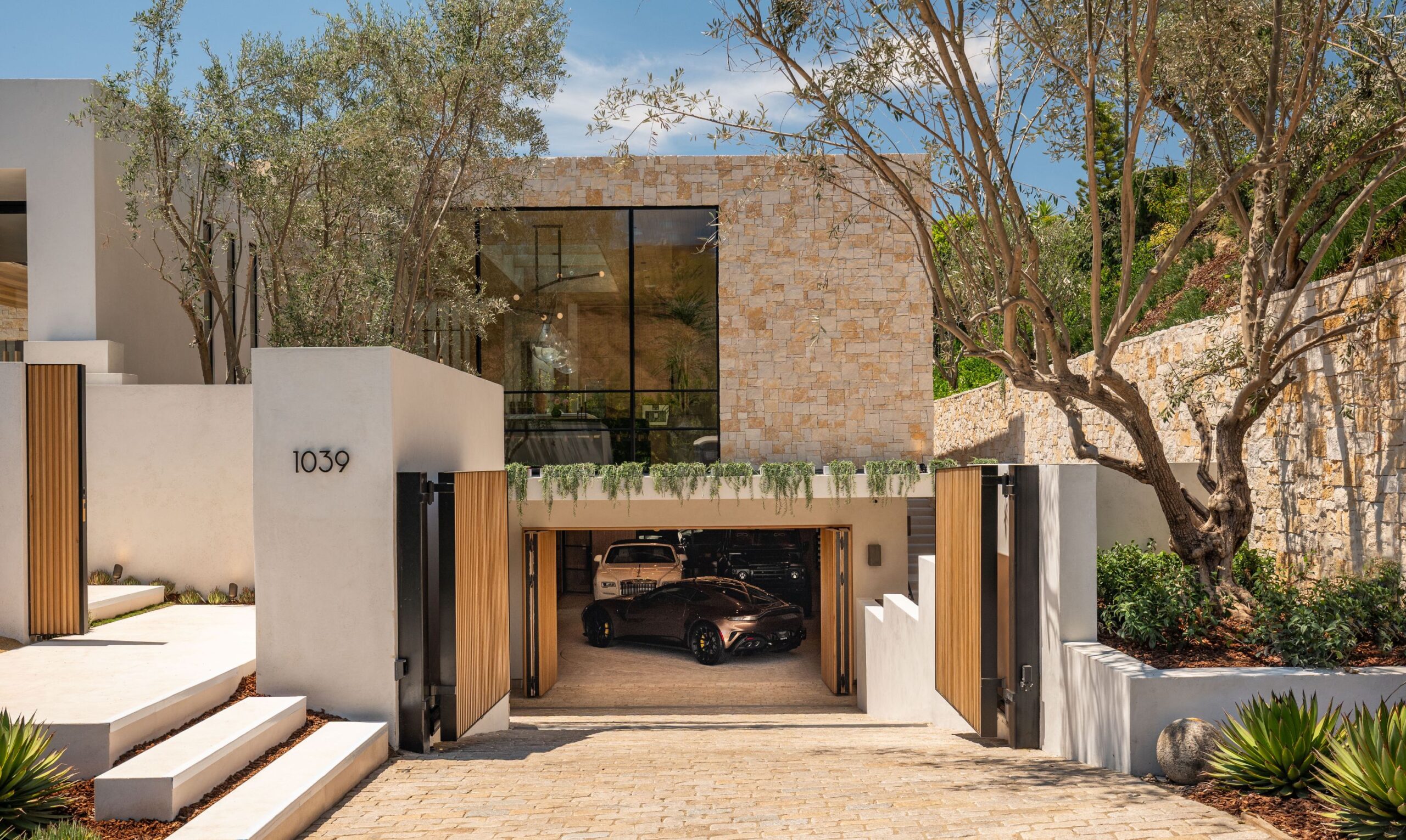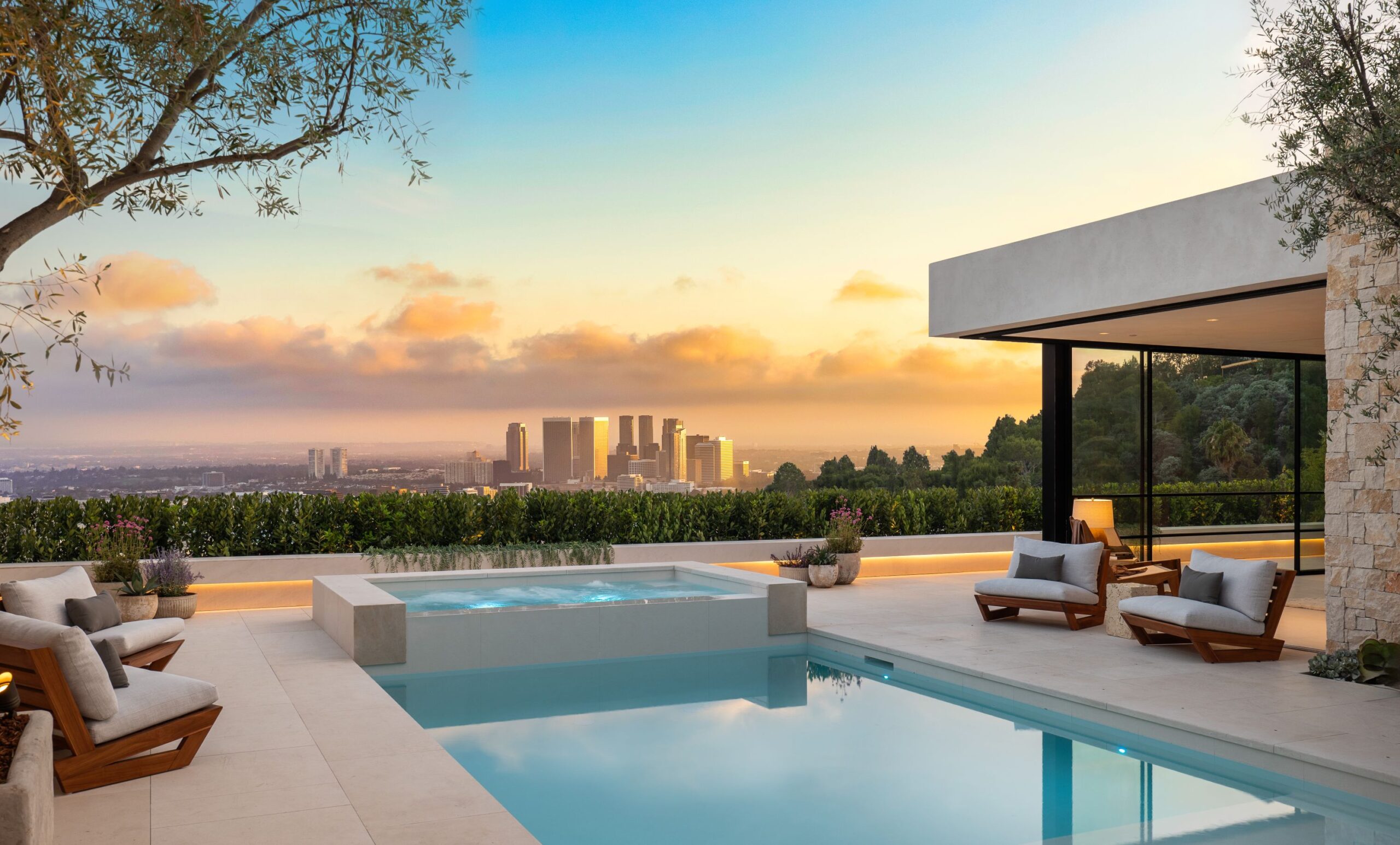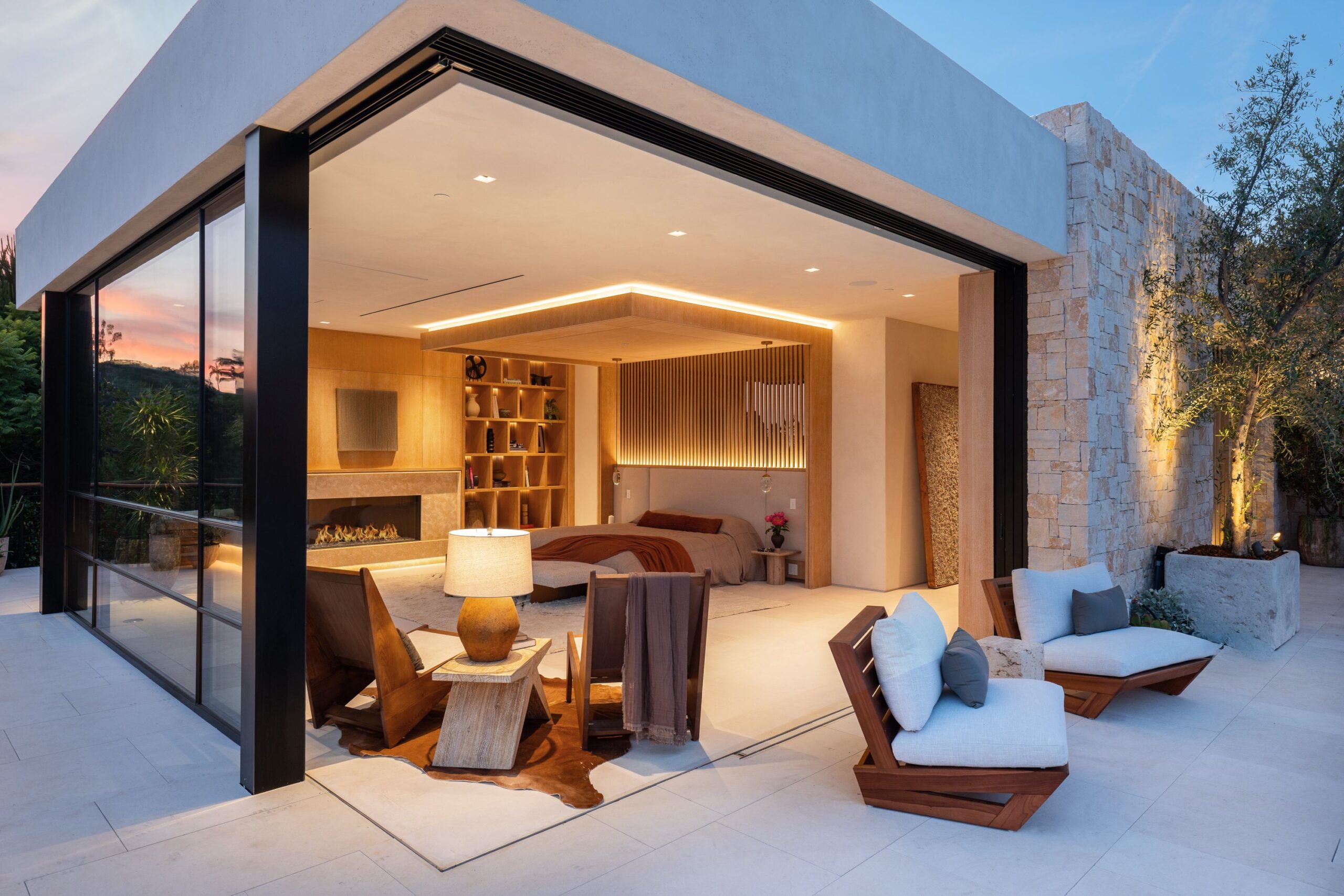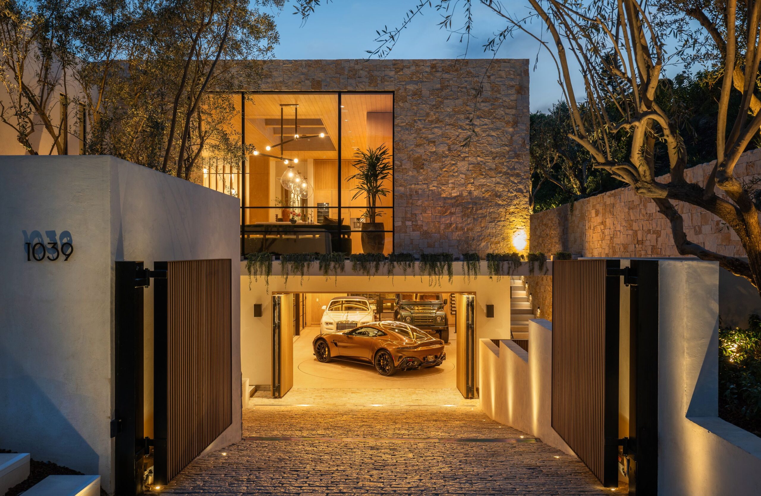 Experience timeless elegance in the exclusive Trousdale neighborhood of Beverly Hills. This organic estate designed by renowned designer Charles Infante, weaves his experience in film to create a narrative fit for entertainment and curated for elevated living in every possible way. Spanning 10,000 square feet, this architectural masterpiece showcases rich natural tones with Portuguese limestone, Italian Navona travertine, white oak paneling and floors, organic custom plaster walls, and motorized custom steel windows. Sleek lines perfectly frame cinematic city-to-ocean views. Inside, the main living spaces are open and airy, with walls of glass that fully pocket to create a seamless indoor/outdoor flow to the pool, spa, and patio. The expansive living room, dining area, and both the main and chef's kitchens are designed for grand scale living and entertaining. Four ensuite bedrooms offer refined comfort, in addition to a spacious, tranquil primary suite with motorized walls of glass, panoramic city views, and a spa-style bath. Luxurious amenities include a sleek gym with sauna, a temperature-controlled wine display, and an epic entertainment lounge with a sunken conversation pit, full bar, and state-of-the-art theater. The fully finished showcase garage features a car turntable; perfect for showcasing your collection. This is your moment to live above it all, in a home that sets the new standard for Trousdale living.