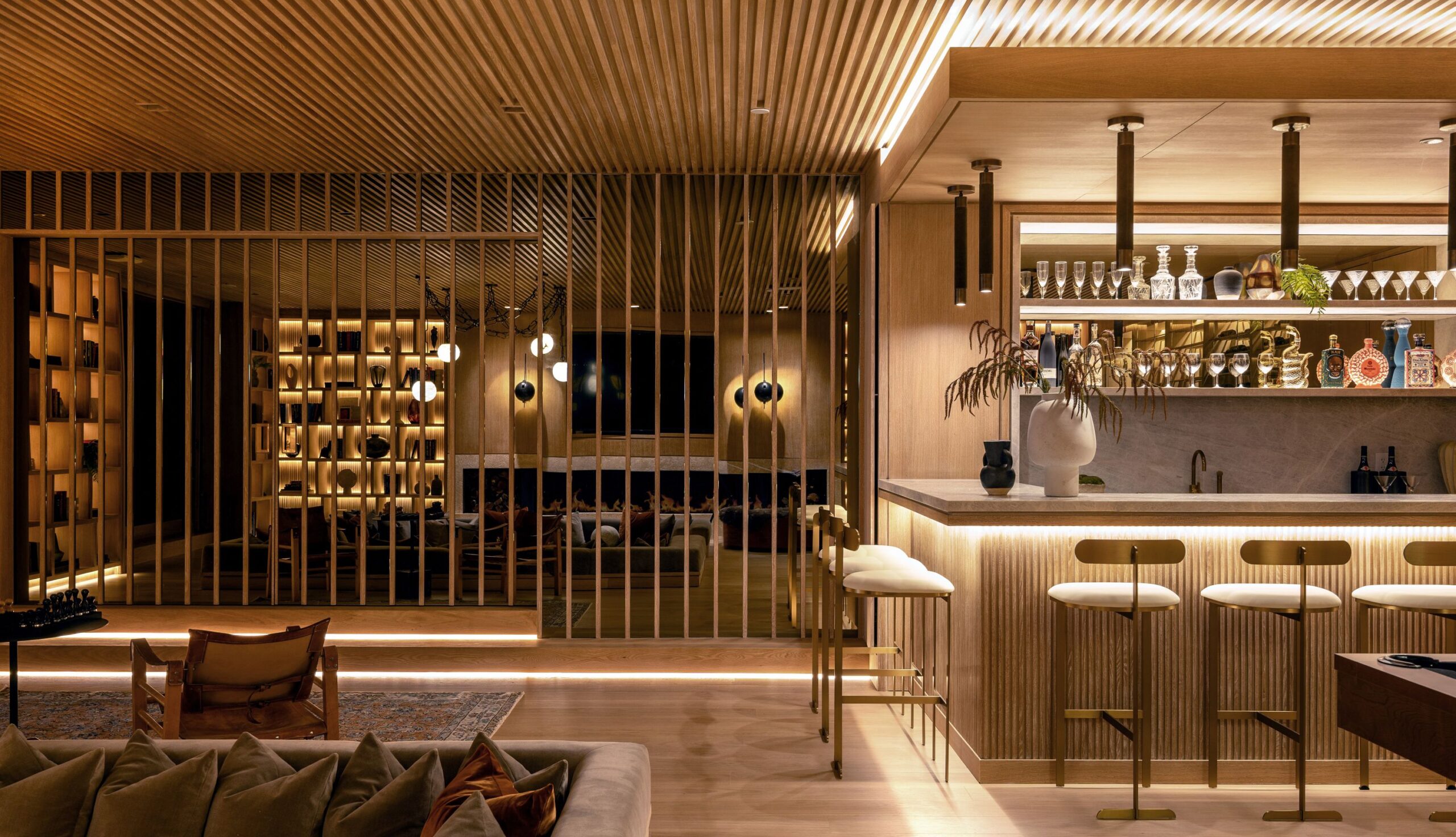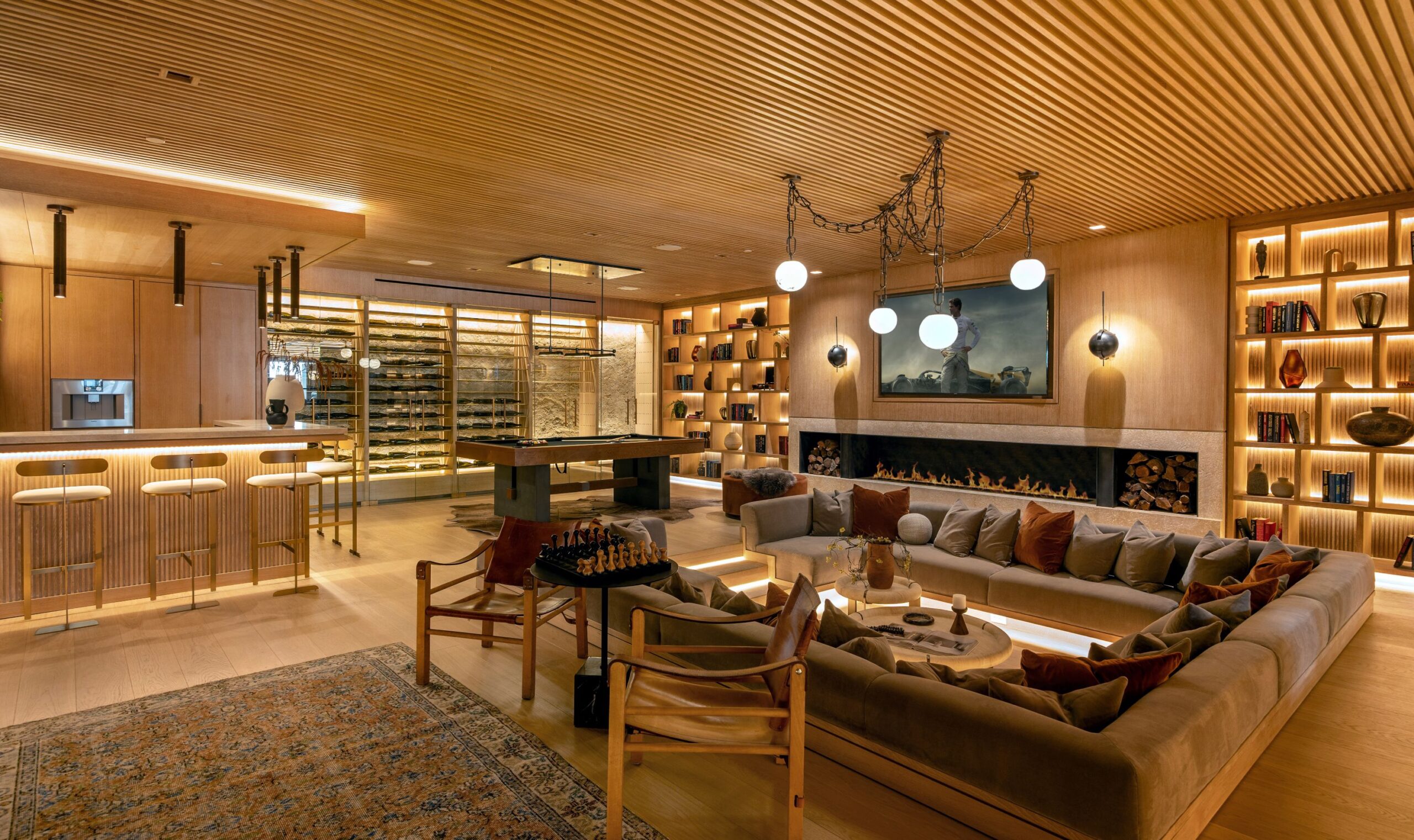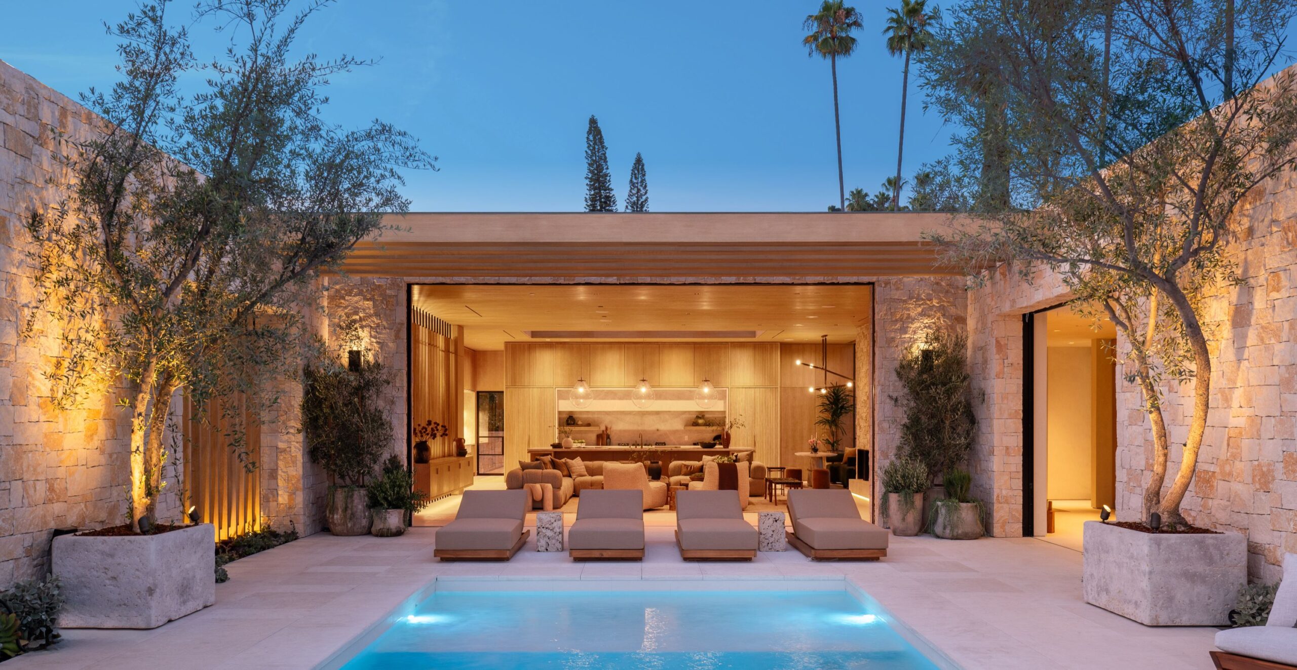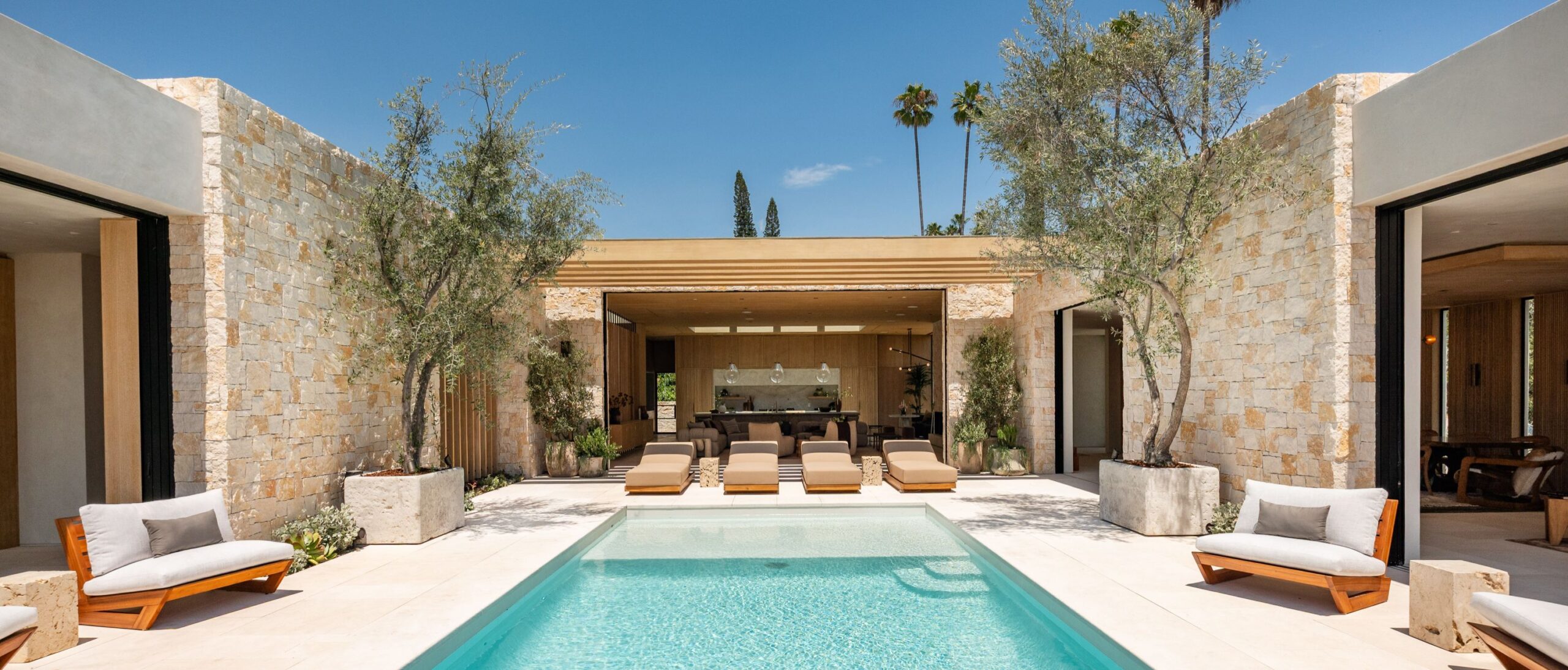 Experience timeless elegance in the exclusive Trousdale neighborhood of Beverly Hills. This organic estate designed by renowned designer Charles Infante, weaves his experience in film to create a narrative fit for entertainment and curated for elevated living in every possible way. Spanning 10,000 square feet, this architectural masterpiece showcases rich natural tones with Portuguese limestone, Italian Navona travertine, white oak paneling and floors, organic custom plaster walls, and motorized custom steel windows. Sleek lines perfectly frame cinematic city-to-ocean views. Inside, the main living spaces are open and airy, with walls of glass that fully pocket to create a seamless indoor/outdoor flow to the pool, spa, and patio. The expansive living room, dining area, and both the main and chef's kitchens are designed for grand scale living and entertaining. Four ensuite bedrooms offer refined comfort, in addition to a spacious, tranquil primary suite with motorized walls of glass, panoramic city views, and a spa-style bath. Luxurious amenities include a sleek gym with sauna, a temperature-controlled wine display, and an epic entertainment lounge with a sunken conversation pit, full bar, and state-of-the-art theater. The fully finished showcase garage features a car turntable; perfect for showcasing your collection. This is your moment to live above it all, in a home that sets the new standard for Trousdale living.
