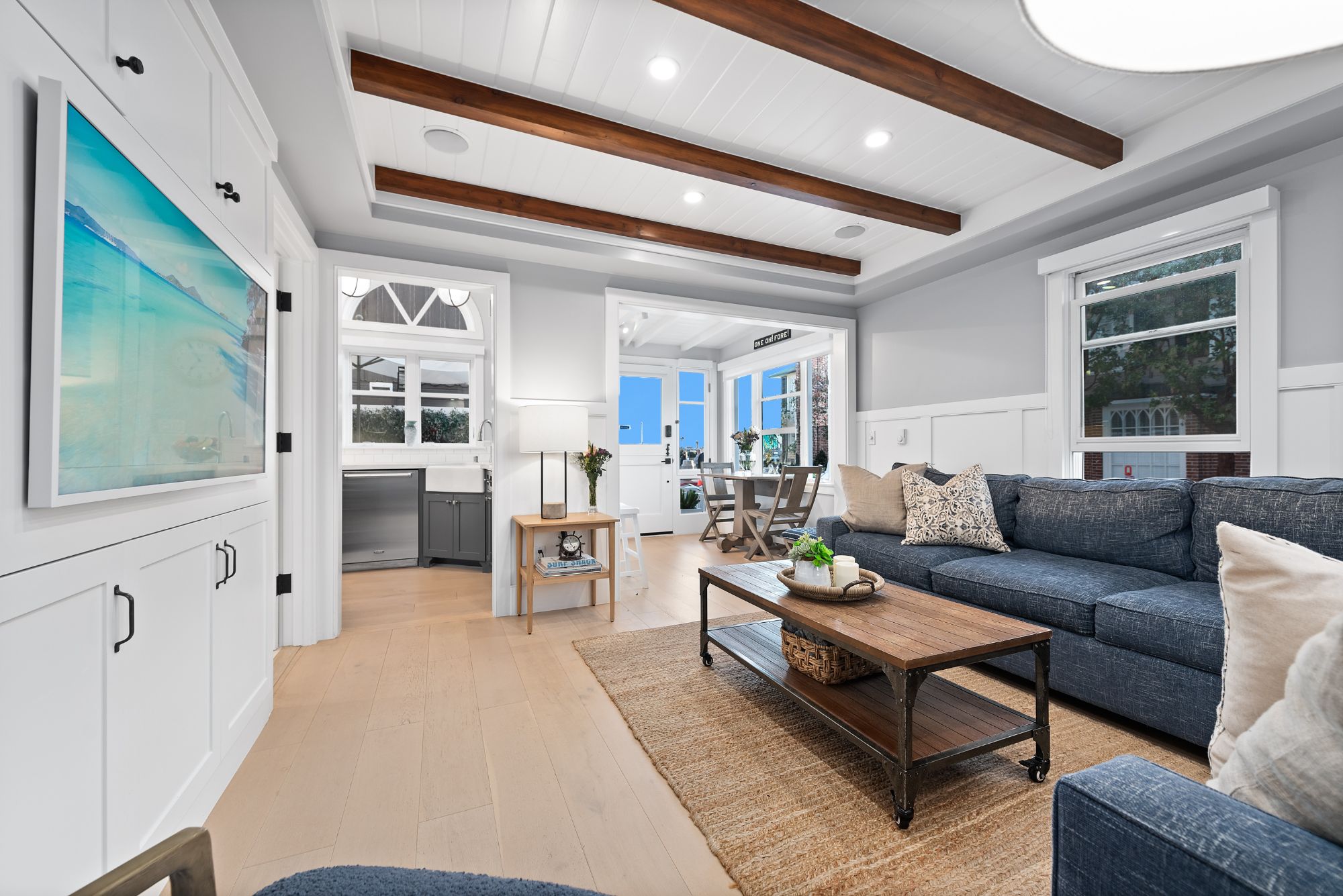 The epitome of coastal luxury, nestled on Balboa Island in Newport Beach. Boasting breathtaking harbor views from both levels, this lavish 2-bedroom, 2-bath residence comes complete with an exclusive short-term rental permit, offering an unparalleled investment prospect. Enjoying a coveted position as the only rear home on the South Bayfront that offers a panoramic view of Newport Bay. This home was meticulously renovated in 2023 and features a separate upstairs entrance, affording total privacy and the flexibility for separate living quarters if desired. Every aspect of the property has been thoughtfully redesigned, showcasing impeccable craftsmanship and upscale finishes, including top-of-the-line Wolf appliances, new countertops, hardwood flooring, an upstairs kitchenette, and an updated exterior with a striking metal roof. Outside, an inviting outdoor living space beckons, offering unparalleled bay views and an ideal setting for relaxation and entertainment. Conveniently located a few feet away from the bay and a block away from Marine Ave., the heart of Balboa Island. Live in a vibrant community boasting a gourmet market, charming boutiques, and renowned dining establishments. Embark on a journey of coastal opulence in this iconic and historic destination, where dreams of seaside living become a reality.