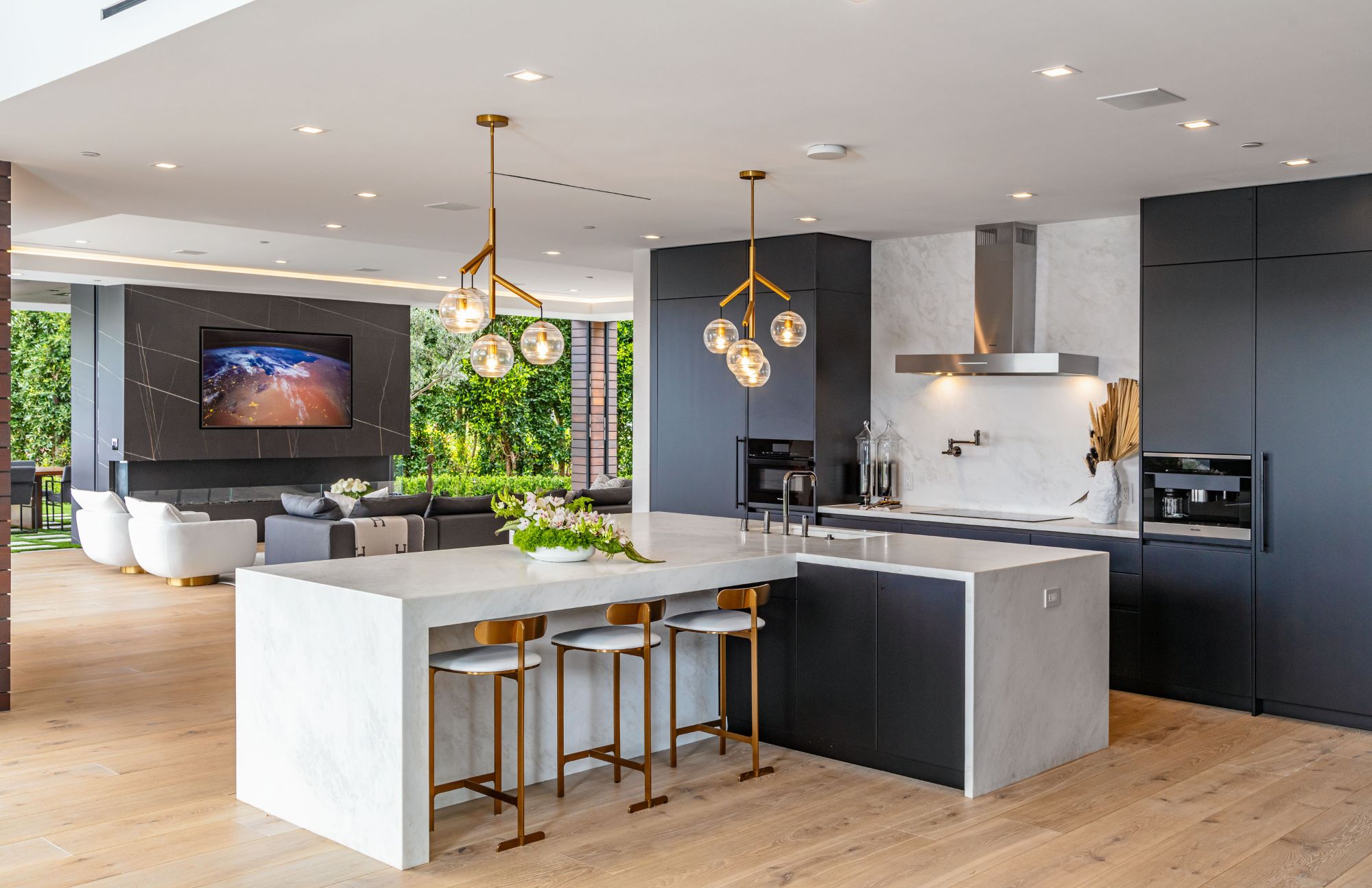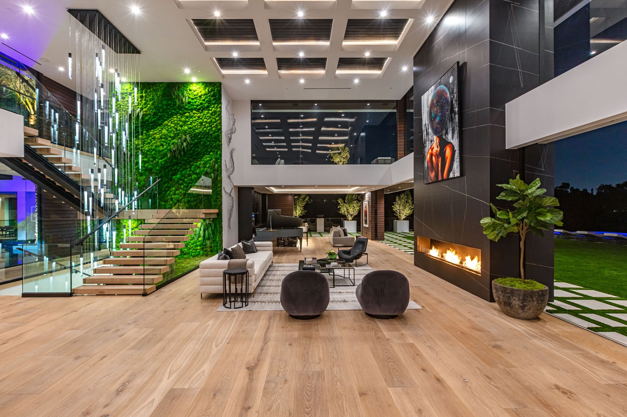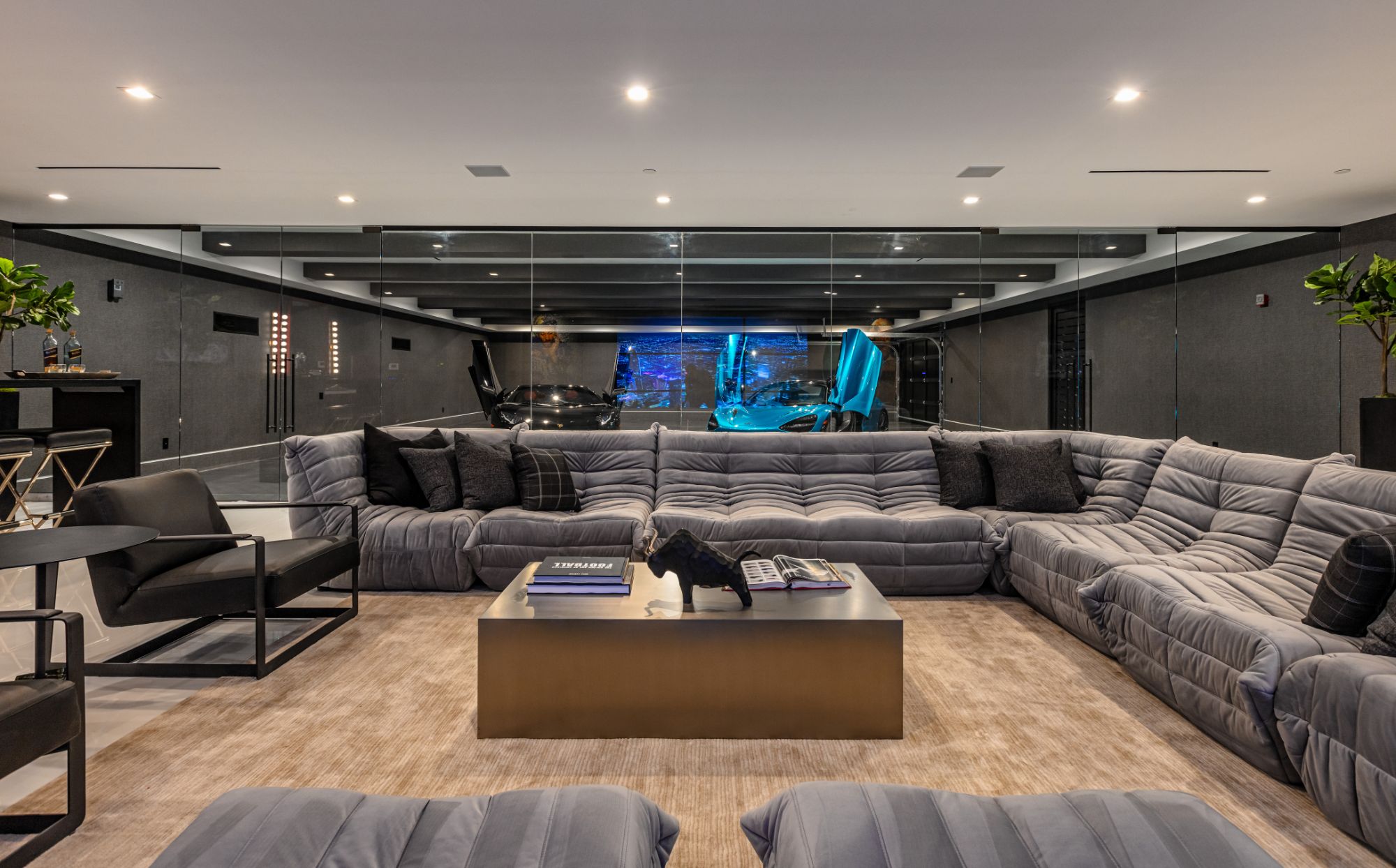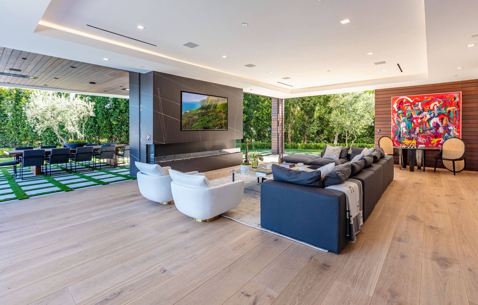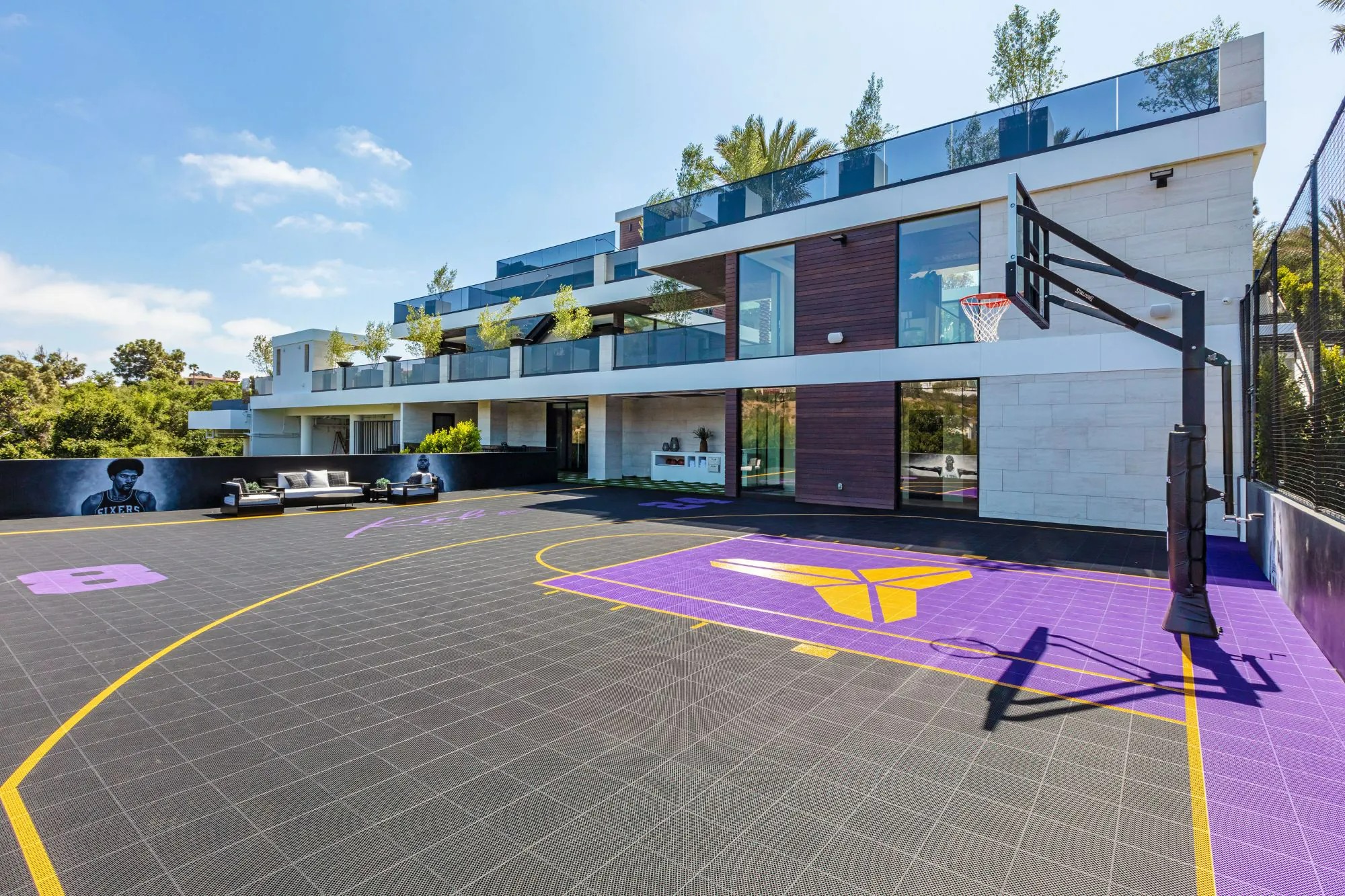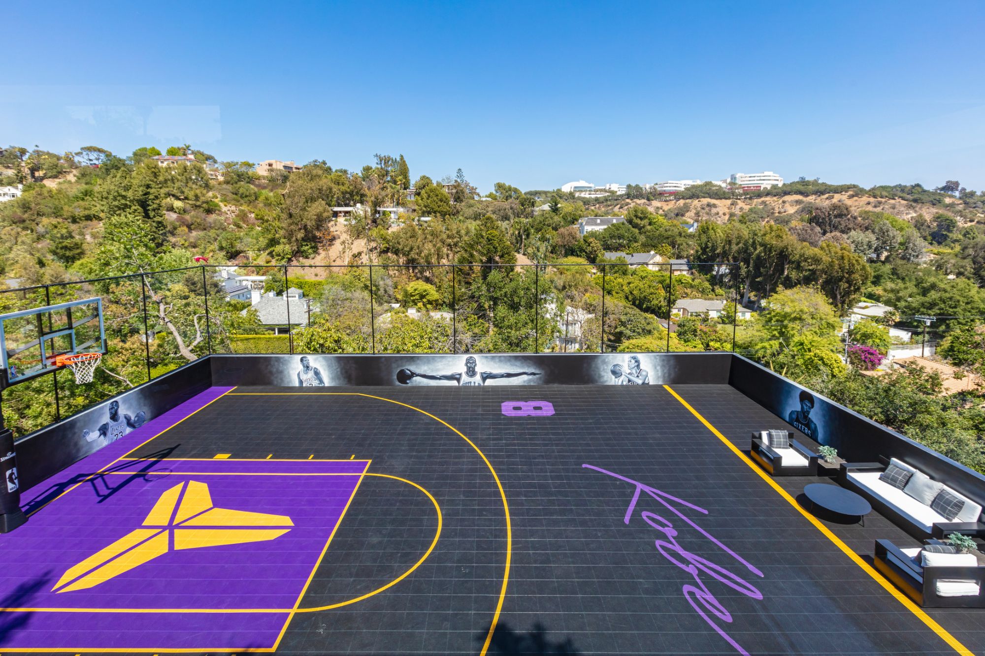 The Brentwood Oasis is a one-of-a-kind project to LA on over 1.2 acres of land. Towering gracefully above dazzling city lights, this newly built smart home has sweeping picturesque vistas throughout (including unobstructed Getty, city & ocean views), flat over approx. 30,000SF exterior living, water features & vast array of rare amenities for effortless resort-style living. The gated compound sits on a private cul de sac in exclusive Brentwood, N. of Sunset. Automobile showroom separated by floor-to-ceiling glass walls that open to an expansive lounge anchored by a 9-TV media wall, bar & barbershop. State-of-the-art gym w/sports simulator room, indoor pool & spa. Exterior lower level w/Kobe Bryant inspired NBA-sized basketball half court, outdoor seating & gym overlooking the city. Amenities include modern office, open-concept kitchen, 1000-gallon dual sided aquarium, prep kitchen, double height living room, 2-story guest house, balconies, city view putting green, 30' living wall, 26' chandelier, hotel-like primary w/spa bath & boutique worthy closets, & so much more. Outdoor oasis thru automatic glass pocket doors w/verdant lawn, cabana w/custom TV, bar, pizza oven, infinity edge pool w/Baja seating & spa, inviting sun-soaked relaxation year-round.