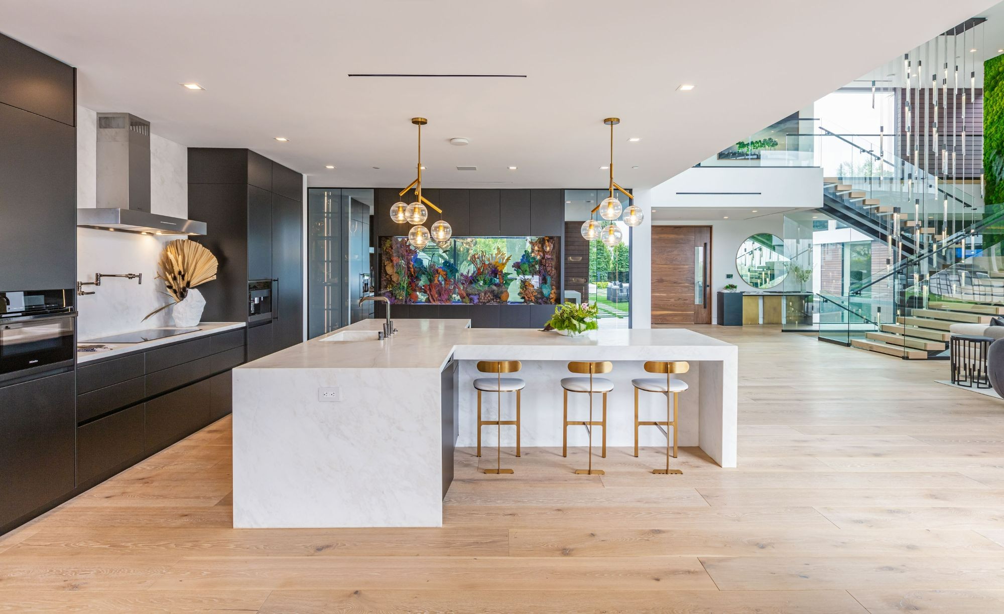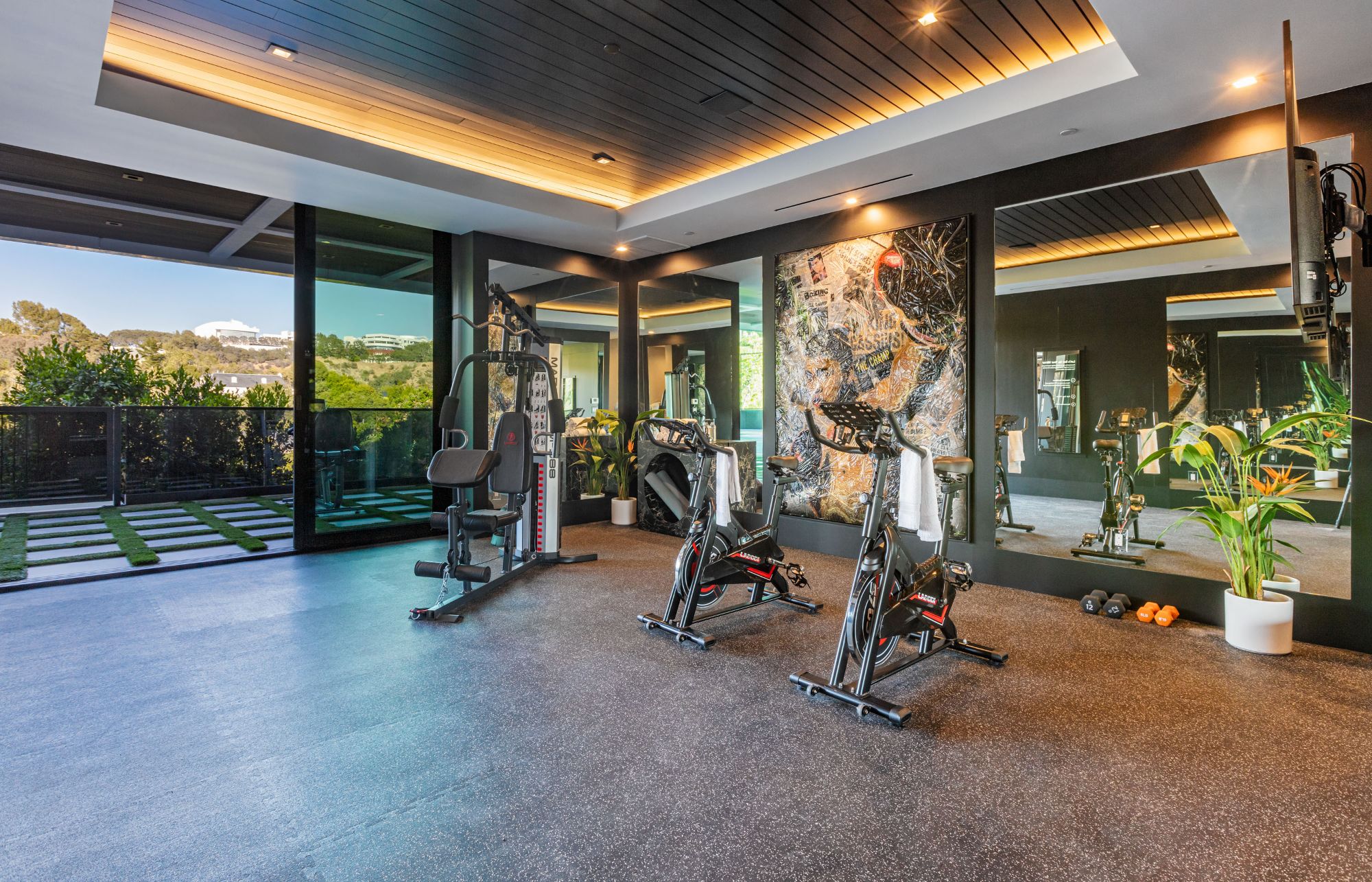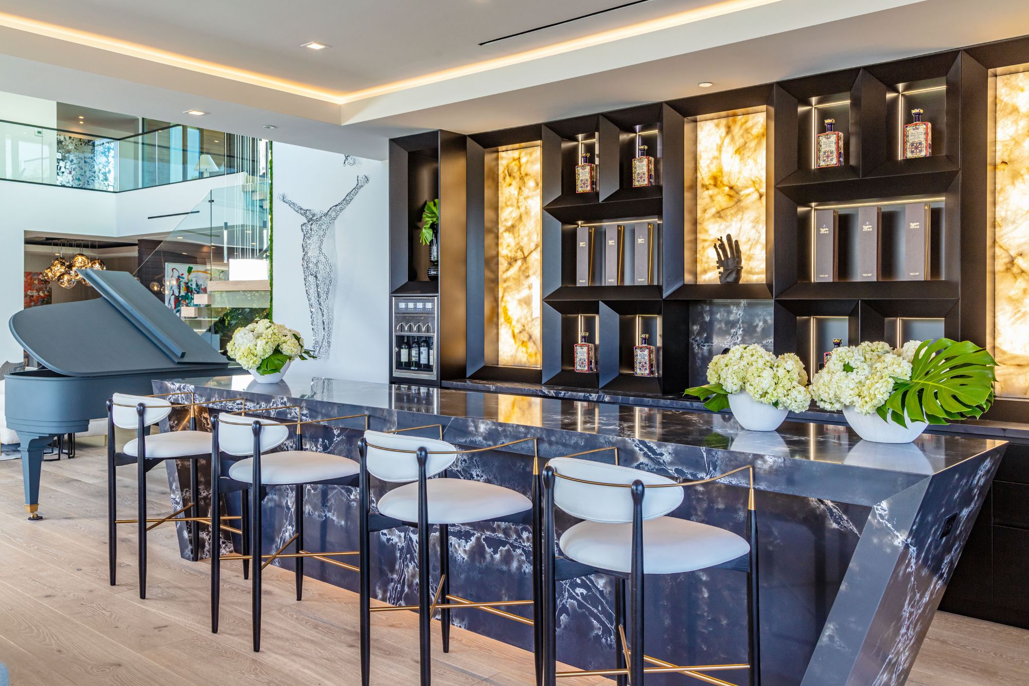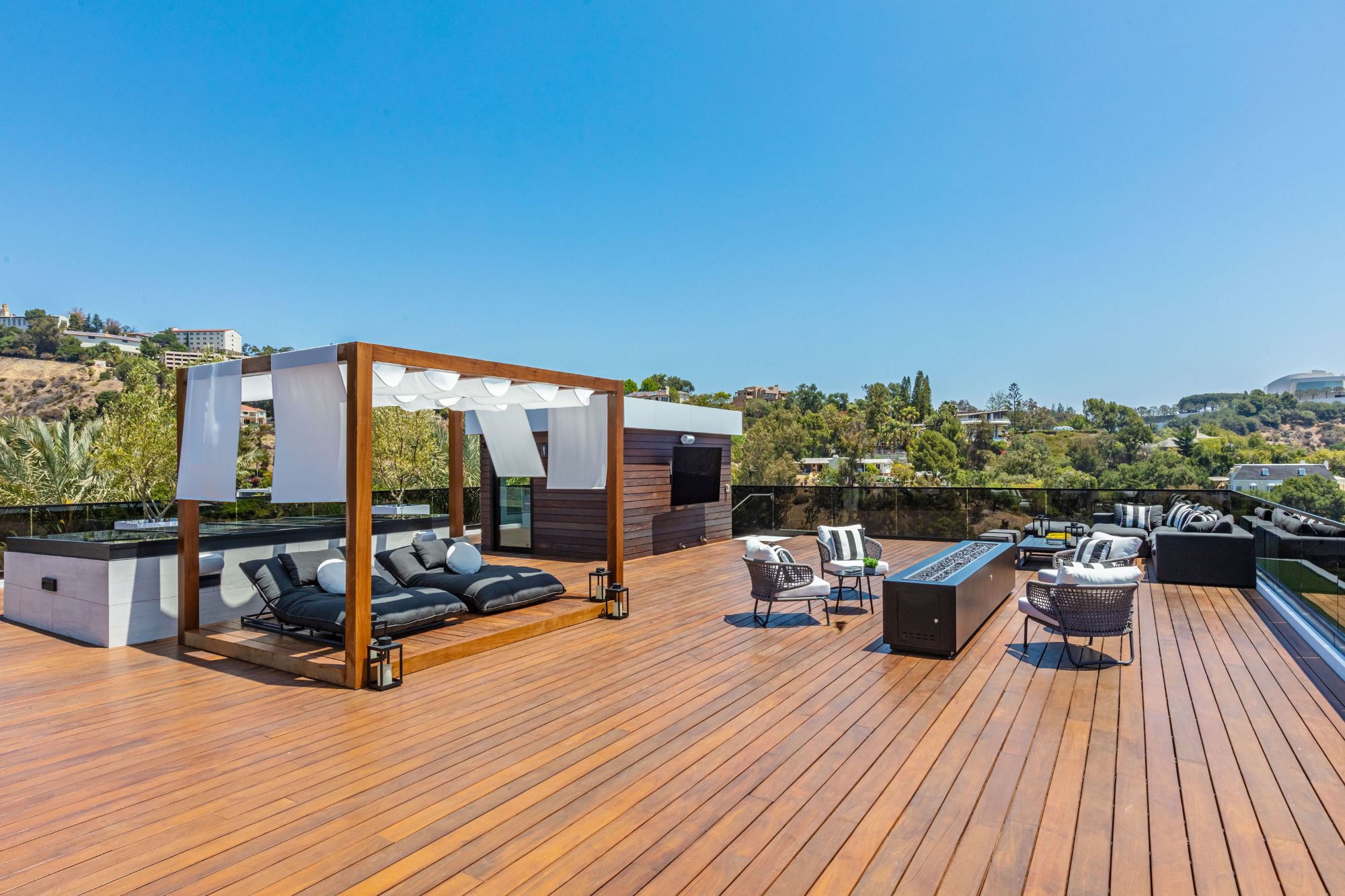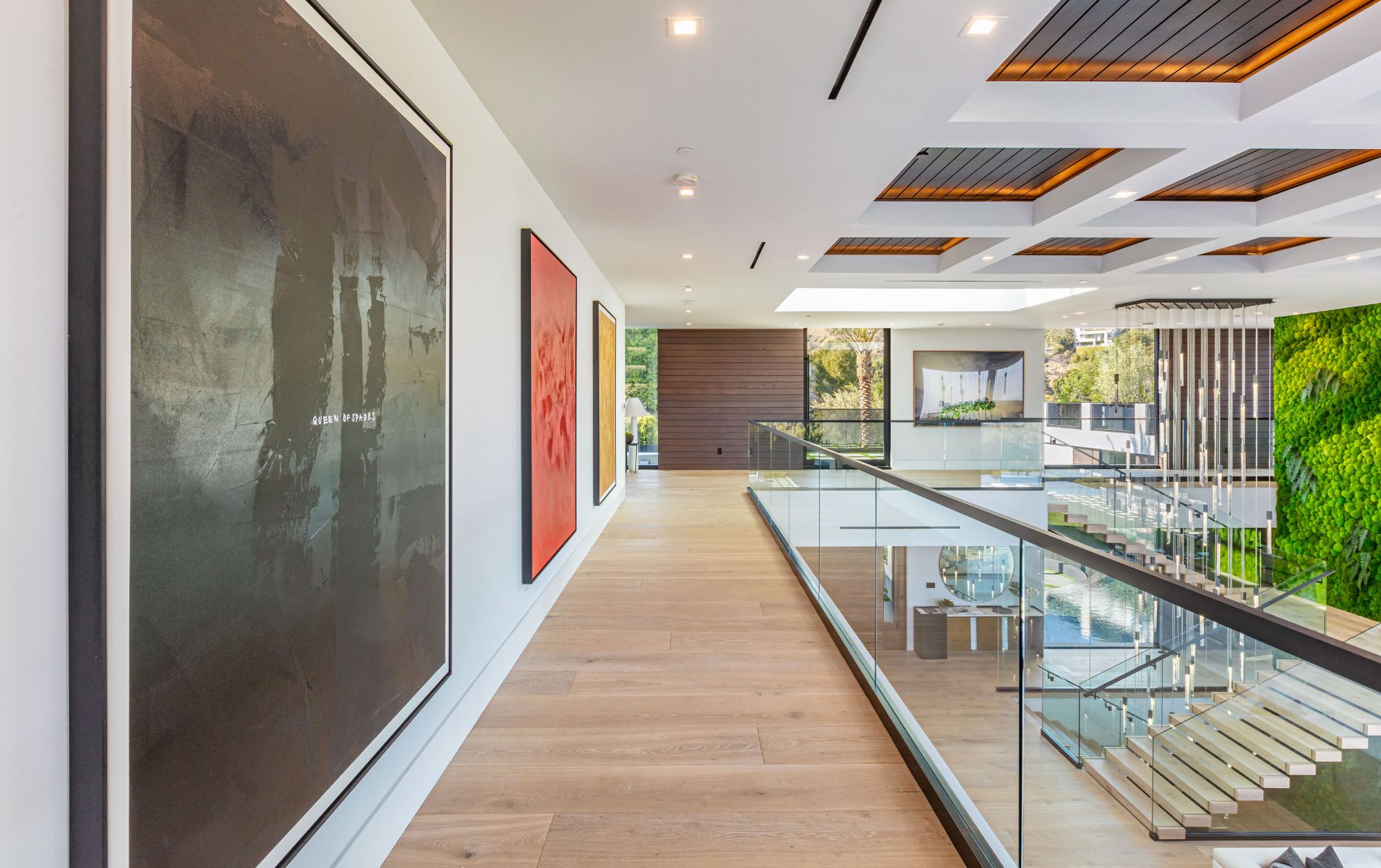 The Brentwood Oasis is a one-of-a-kind project to LA on over 1.2 acres of land. Towering gracefully above dazzling city lights, this newly built smart home has sweeping picturesque vistas throughout (including unobstructed Getty, city & ocean views), flat over approx. 30,000SF exterior living, water features & vast array of rare amenities for effortless resort-style living. The gated compound sits on a private cul de sac in exclusive Brentwood, N. of Sunset. Automobile showroom separated by floor-to-ceiling glass walls that open to an expansive lounge anchored by a 9-TV media wall, bar & barbershop. State-of-the-art gym w/sports simulator room, indoor pool & spa. Exterior lower level w/Kobe Bryant inspired NBA-sized basketball half court, outdoor seating & gym overlooking the city. Amenities include modern office, open-concept kitchen, 1000-gallon dual sided aquarium, prep kitchen, double height living room, 2-story guest house, balconies, city view putting green, 30' living wall, 26' chandelier, hotel-like primary w/spa bath & boutique worthy closets, & so much more. Outdoor oasis thru automatic glass pocket doors w/verdant lawn, cabana w/custom TV, bar, pizza oven, infinity edge pool w/Baja seating & spa, inviting sun-soaked relaxation year-round.