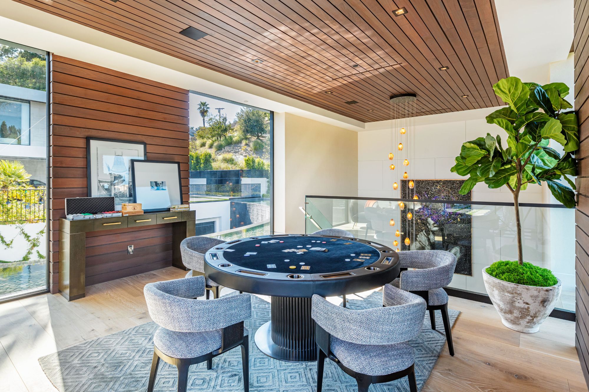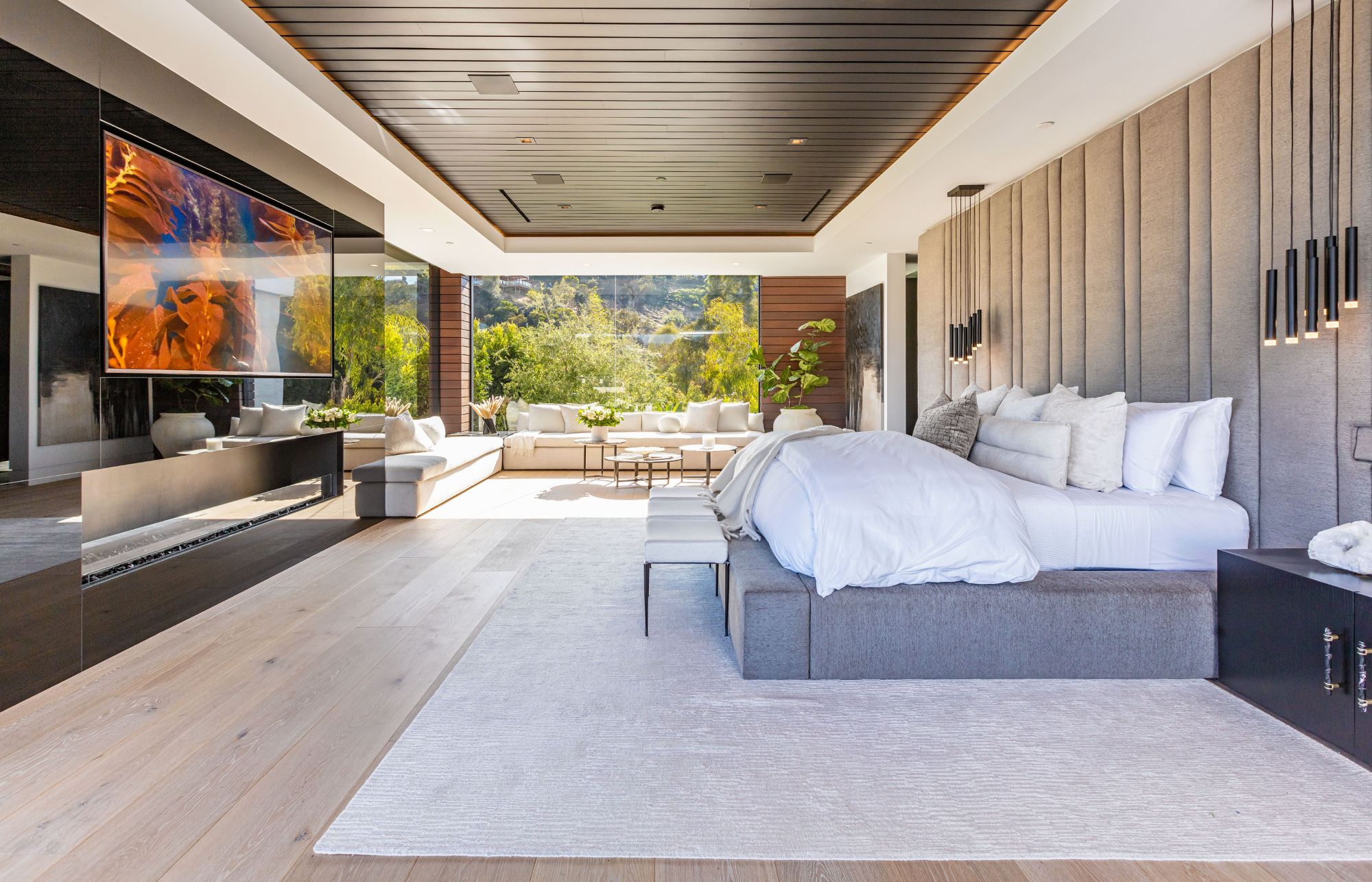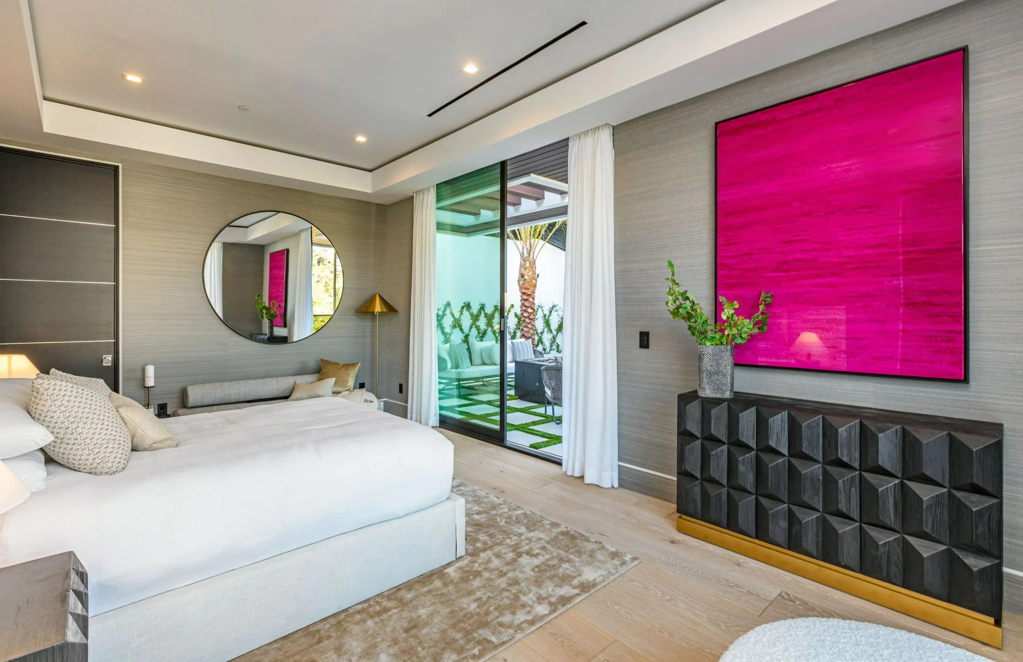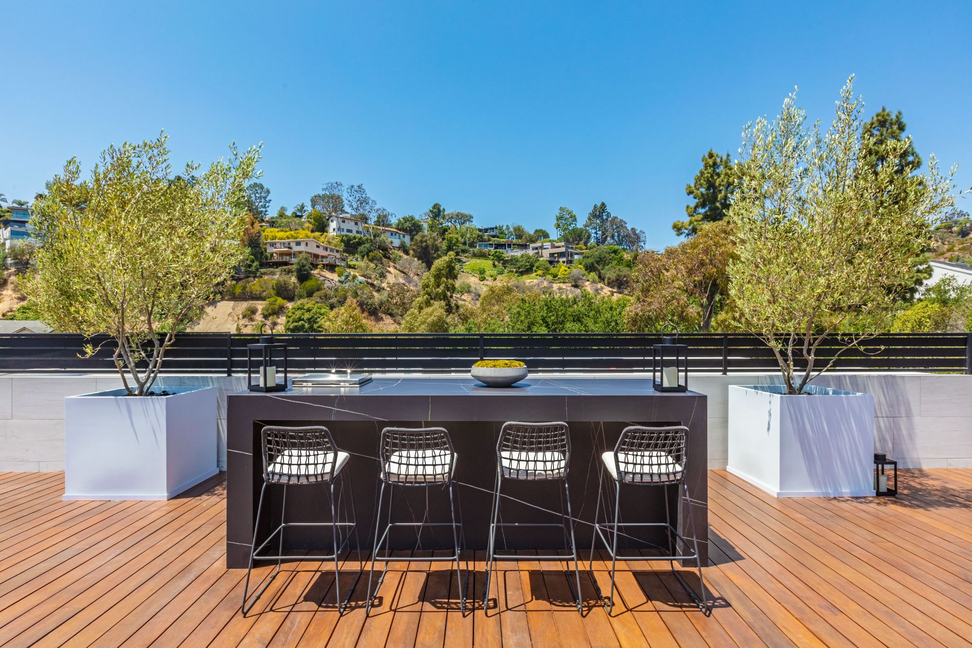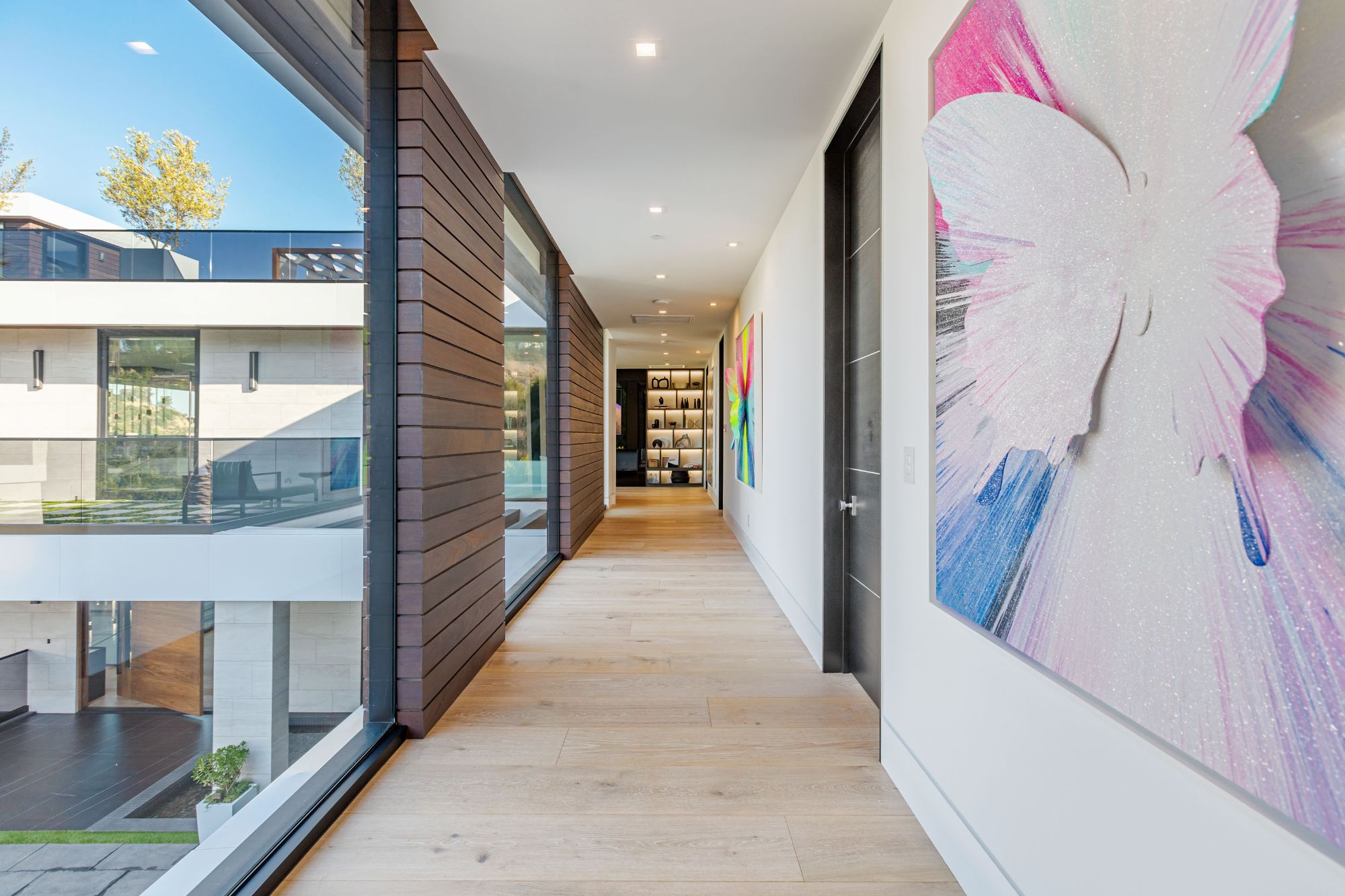 The Brentwood Oasis is a one-of-a-kind project to LA on over 1.2 acres of land. Towering gracefully above dazzling city lights, this newly built smart home has sweeping picturesque vistas throughout (including unobstructed Getty, city & ocean views), flat over approx. 30,000SF exterior living, water features & vast array of rare amenities for effortless resort-style living. The gated compound sits on a private cul de sac in exclusive Brentwood, N. of Sunset. Automobile showroom separated by floor-to-ceiling glass walls that open to an expansive lounge anchored by a 9-TV media wall, bar & barbershop. State-of-the-art gym w/sports simulator room, indoor pool & spa. Exterior lower level w/Kobe Bryant inspired NBA-sized basketball half court, outdoor seating & gym overlooking the city. Amenities include modern office, open-concept kitchen, 1000-gallon dual sided aquarium, prep kitchen, double height living room, 2-story guest house, balconies, city view putting green, 30' living wall, 26' chandelier, hotel-like primary w/spa bath & boutique worthy closets, & so much more. Outdoor oasis thru automatic glass pocket doors w/verdant lawn, cabana w/custom TV, bar, pizza oven, infinity edge pool w/Baja seating & spa, inviting sun-soaked relaxation year-round.