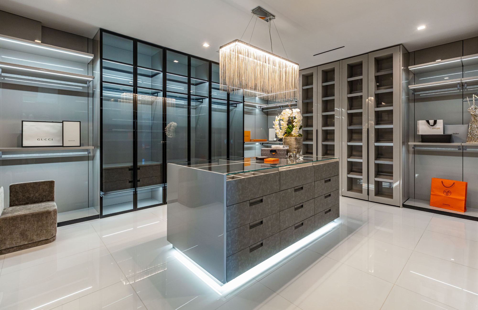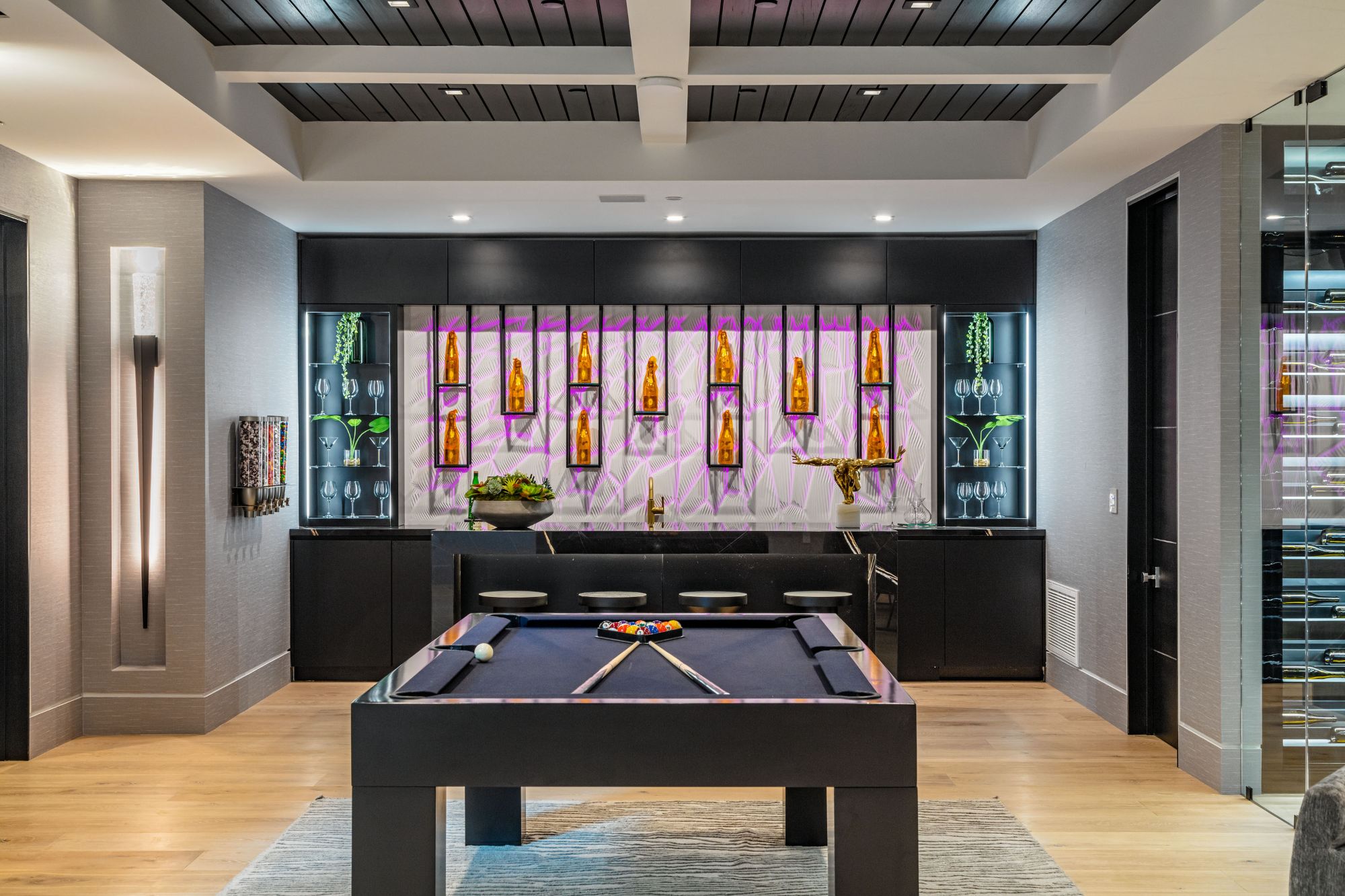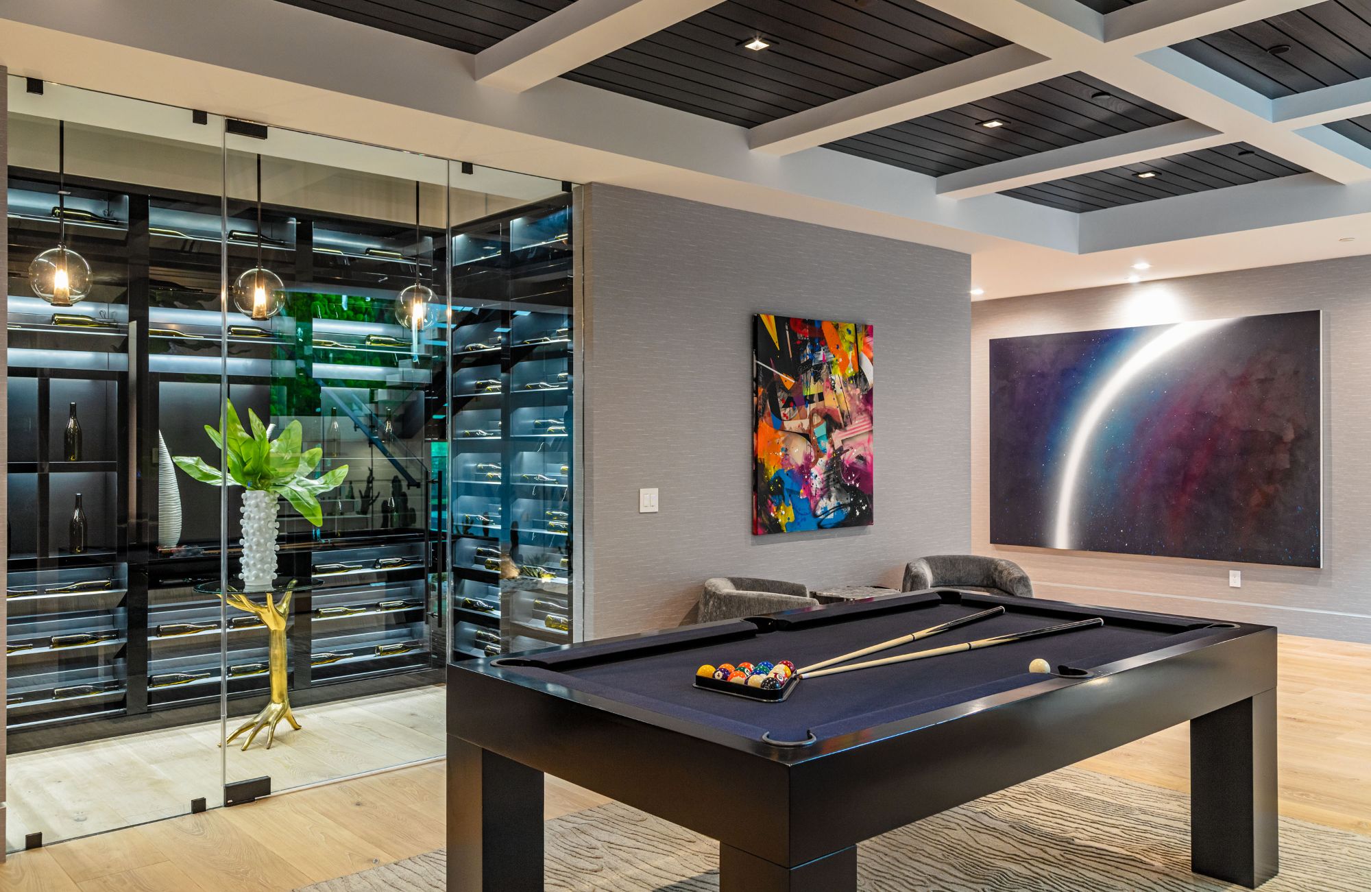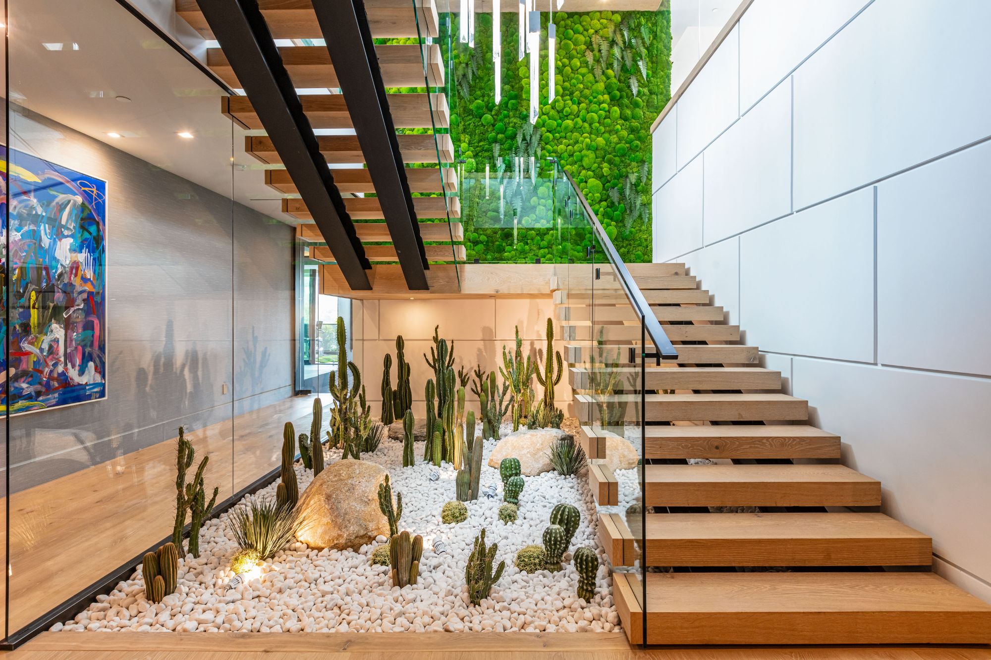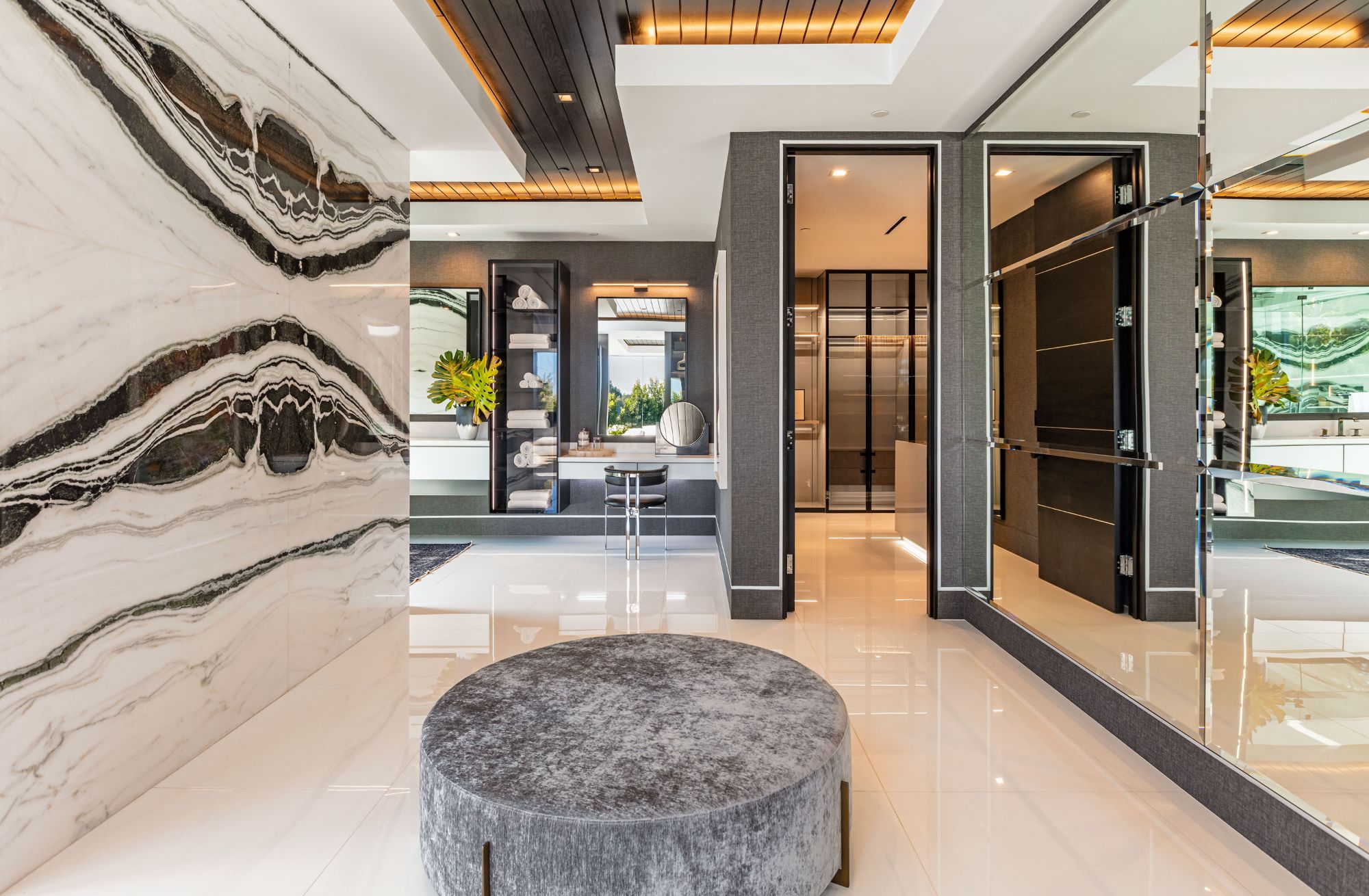 The Brentwood Oasis is a one-of-a-kind project to LA on over 1.2 acres of land. Towering gracefully above dazzling city lights, this newly built smart home has sweeping picturesque vistas throughout (including unobstructed Getty, city & ocean views), flat over approx. 30,000SF exterior living, water features & vast array of rare amenities for effortless resort-style living. The gated compound sits on a private cul de sac in exclusive Brentwood, N. of Sunset. Automobile showroom separated by floor-to-ceiling glass walls that open to an expansive lounge anchored by a 9-TV media wall, bar & barbershop. State-of-the-art gym w/sports simulator room, indoor pool & spa. Exterior lower level w/Kobe Bryant inspired NBA-sized basketball half court, outdoor seating & gym overlooking the city. Amenities include modern office, open-concept kitchen, 1000-gallon dual sided aquarium, prep kitchen, double height living room, 2-story guest house, balconies, city view putting green, 30' living wall, 26' chandelier, hotel-like primary w/spa bath & boutique worthy closets, & so much more. Outdoor oasis thru automatic glass pocket doors w/verdant lawn, cabana w/custom TV, bar, pizza oven, infinity edge pool w/Baja seating & spa, inviting sun-soaked relaxation year-round.
