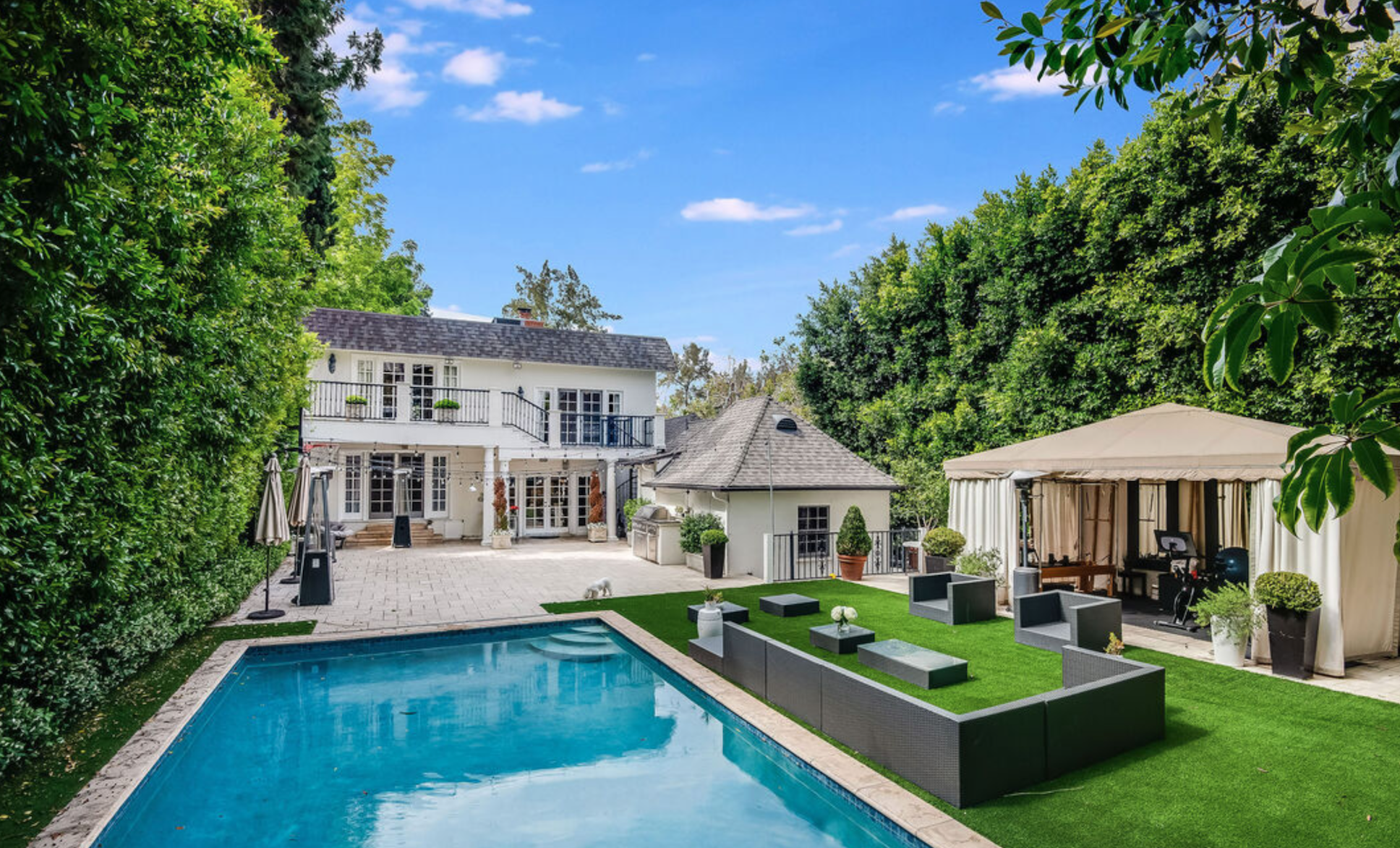 Stunning Traditional in the heart of one of LA's most desirable and sought after neighborhoods. Beautifully maintained, this 7 bedroom turnkey property will impress even the most discerning clientele. The nearly 10,000 sq ft lot boasts massive luxurious flat back yard with sparkling pool, waterfall spa, outdoor gym, and massive outdoor entertaining space perfect for large families and lavish gatherings. A true entertainer's paradise! Once inside the home enjoy large well appointed living spaces including formal living room, family room with 5-star restaurant style bar, and oversized dinning room ideal for entertaining. Incredible 7 bedroom layout includes luxurious primary suite boasting huge walk-in closet with island, junior primary bedroom, upstairs home office/library, and guest house plus maids room in basement with it's own separate entrance - ideal for live-in maid, home office, or therapy office. The perfect home for a large family or work from home needs. Truly a must see property in a truly A+ location.