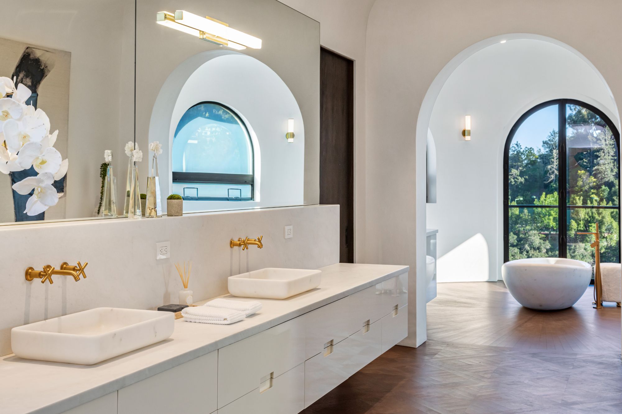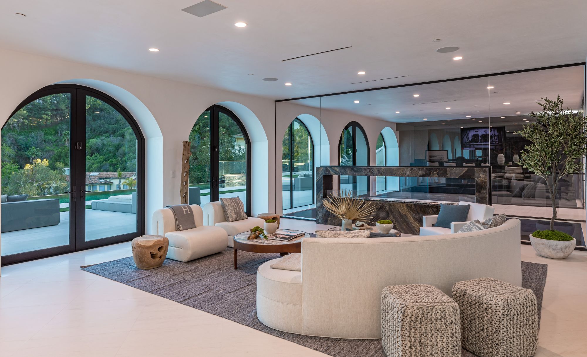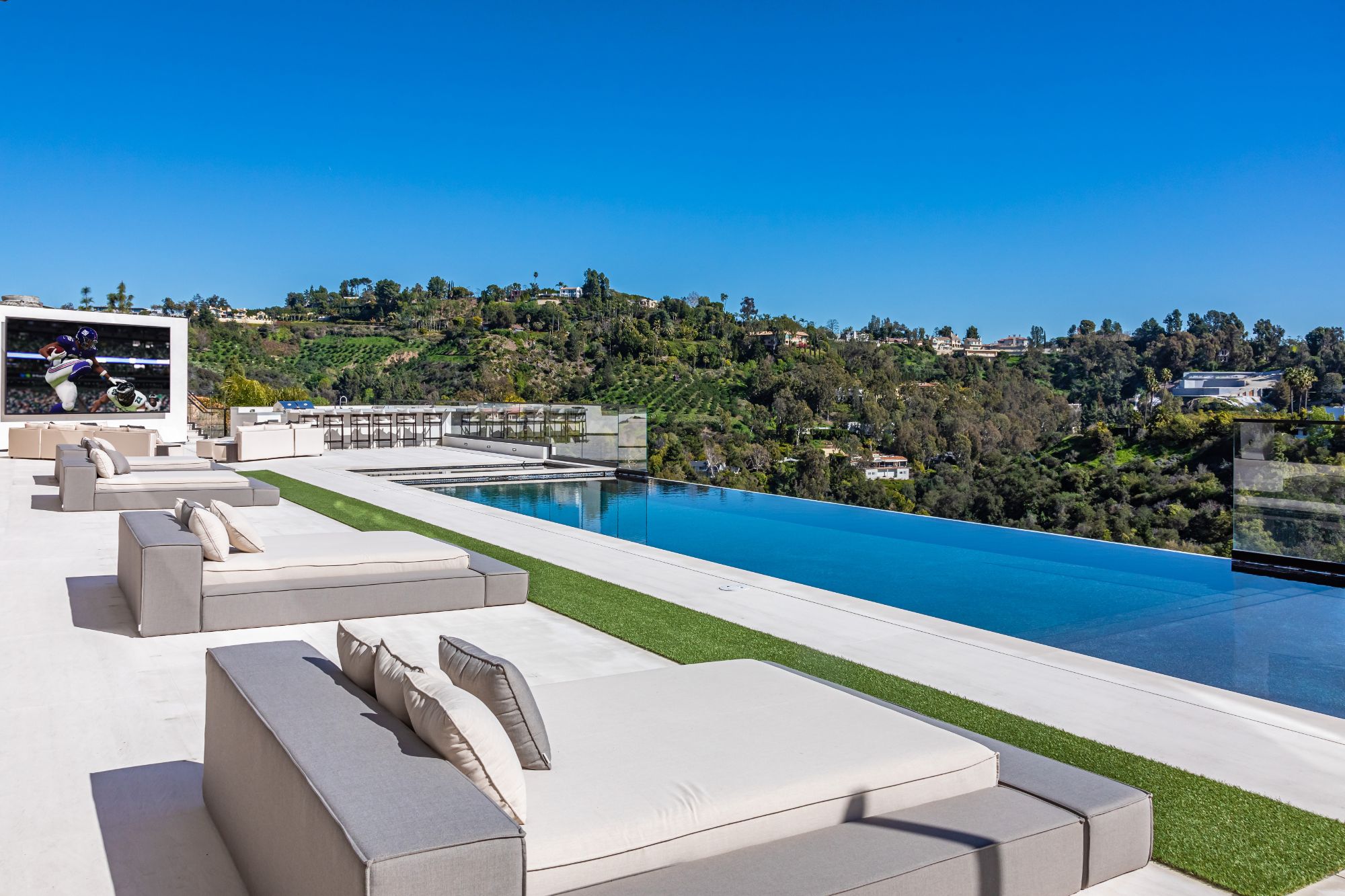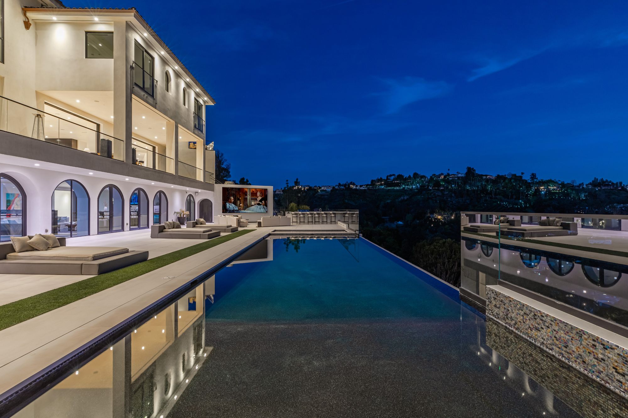 Rising above the Hotel Bel Air in the heart of the most exclusive neighborhood in the world, The Estate on Somma is a modern Spanish Revival masterpiece that redefines luxury living. Undoubtedly one of the most spectacular private residences in the world, this masterfully constructed work of art spans 40,000 square feet and features 8 bedrooms, 21 bathrooms, and an endless array of awe-inspiring amenities. Impressive and unforgettable, this extraordinary estate encompasses a private oasis that fulfills every desire for luxury. Neighbors include some of world's most famous and accomplished icons, however, The Estate is undoubtedly the Star of the neighborhood. Proving the developer's commitment to excellence, 10,000 square feet was acquired from the neighbor to redesign the approach. In fact, every detail of this majestic mansion was carefully considered to deliver a life of luxury beyond compare. Upon entering, the grand scale and panoramic views will take your breath away. A sweeping staircase winds down like a sculpture and evokes a feeling of power and prominence. Floor to ceiling glass pocket doors frame panoramic views and flood the open floor plan with light and warmth. Luxurious details are mesmerizing and revealed at every turn. A chef's dream kitchen stuns with arched windows, high-end appliances, St. Laurent marble, and a massive island. Large scale living rooms have soaring ceilings and dramatic floor to ceiling windows that reveal bird's-eye views of the Bel Air landscape. Friends and family will cherish an invite and can be comfortably hosted in 8 large and luxurious bedrooms. Defining entertainer's dream, The Estate features amenities that rival the finest resorts in the world including a 36-person theater, multiple kitchens, six bars, a professional basketball court, 1200 bottle wine cellar with a wine tasting room, and recording studio. A monumental auto gallery is incredible, and custom designed to showcase an entire car collection. The luxurious wellness center astonishes with a 75' indoor pool, sauna, steam room, hair salon and fitness studio. Outdoors, park-like grounds feature multi-level terraces, a jaw-dropping infinity edge pool/spa, weather-proof Samsung wall, and a kitchen for entertaining. No expense was spared to deliver this legacy property to the most discerning buyer. The floors have been newly sanded and stained, and the addition of a beautiful portico by the pool elevates the outdoor living experience. Circadian Rhythm lighting, and a technologically advanced smart home system with a state-of-the-art security system provides safety and convenience. With ample accommodations for staff including maid's quarters, and a security room, this extraordinary estate is nothing short of legendary.