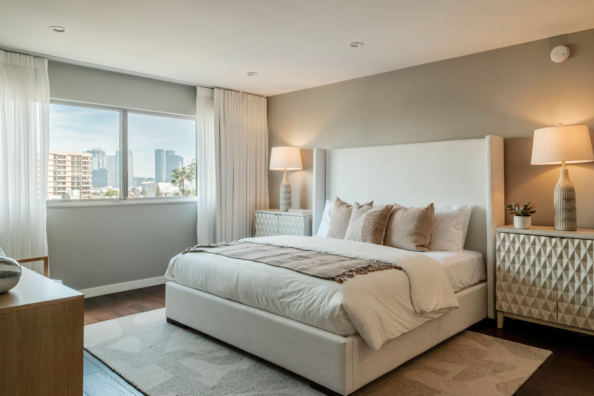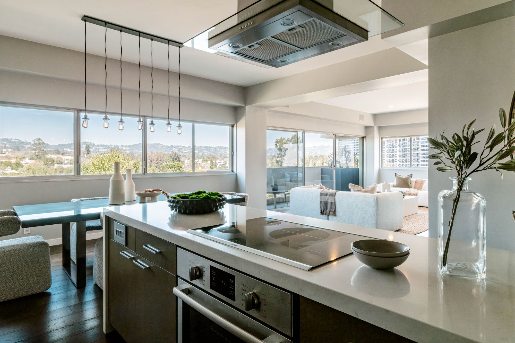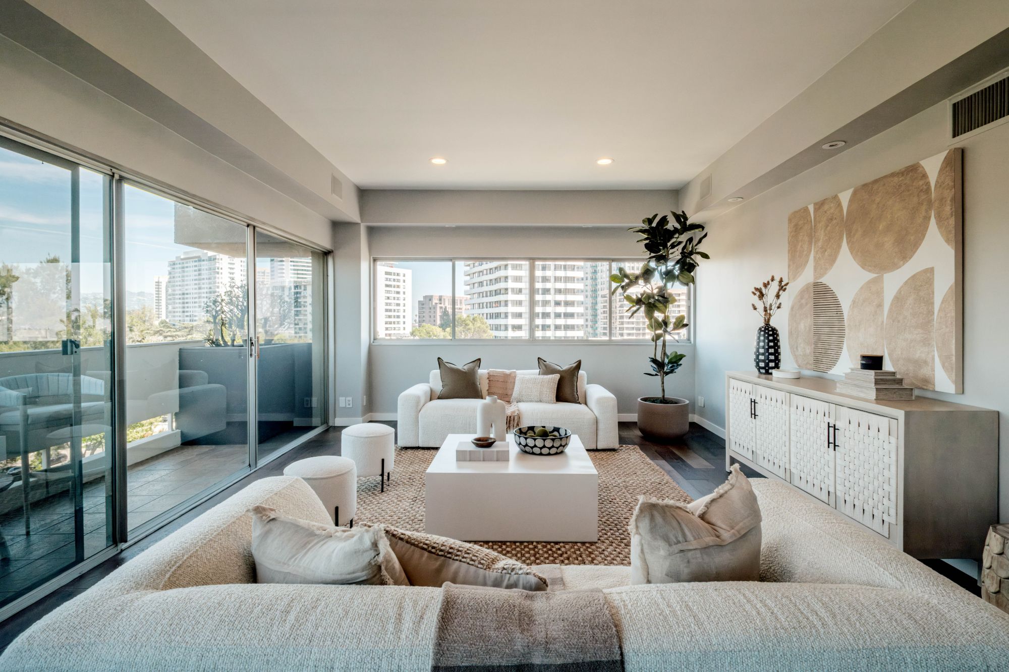 Step into this bright, spacious, and updated contemporary condo, conveniently located in the prestigious Crown Towers on the Wilshire Corridor. Designed for modern living, this bright and spacious two bed/two bath unit boasts explosive city and treetop views. The open-concept kitchen features custom walnut cabinetry, sleek Caesarstone countertops, and premium Bosch appliances. The turnkey residence offers the perfect blend of style, comfort, and functionality. The living and dining areas are illuminated by gallery lighting, an elegant Restoration Hardware fixture, and built-in Polk surround sound speakers, perfect for entertaining. The primary suite offers new custom drapes, a generously sized walk-in closet, and an ensuite bath with dual vanity sinks and custom walnut cabinetry. The guest bedroom/office is equally well-appointed with custom Roman shades, built-in bookshelves, and a thoughtfully designed closet system. Located in the full-service Crown Towers building, this move-in-ready condo delivers effortless style, comfort, and convenience in one of LA's most sought-after neighborhoods.