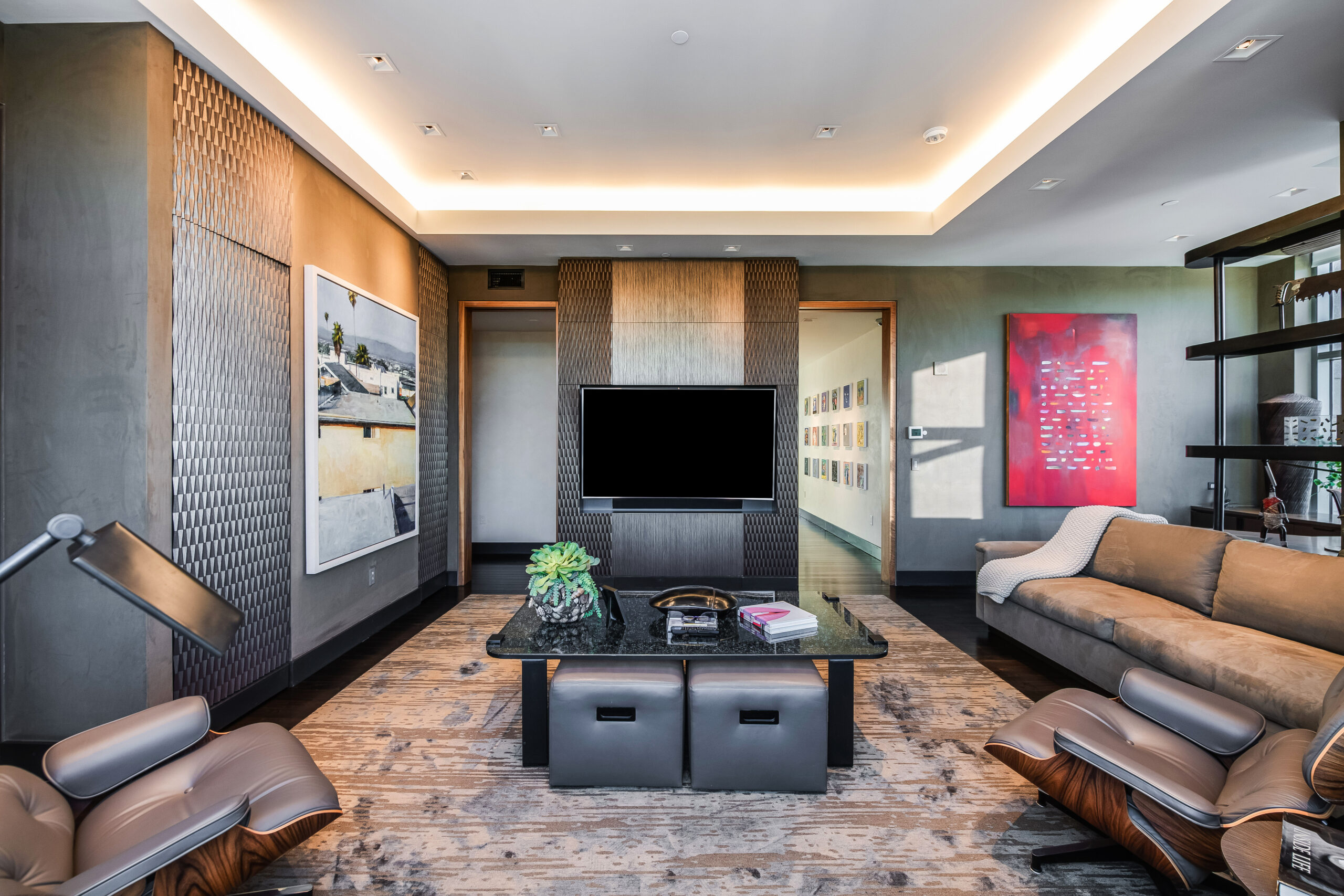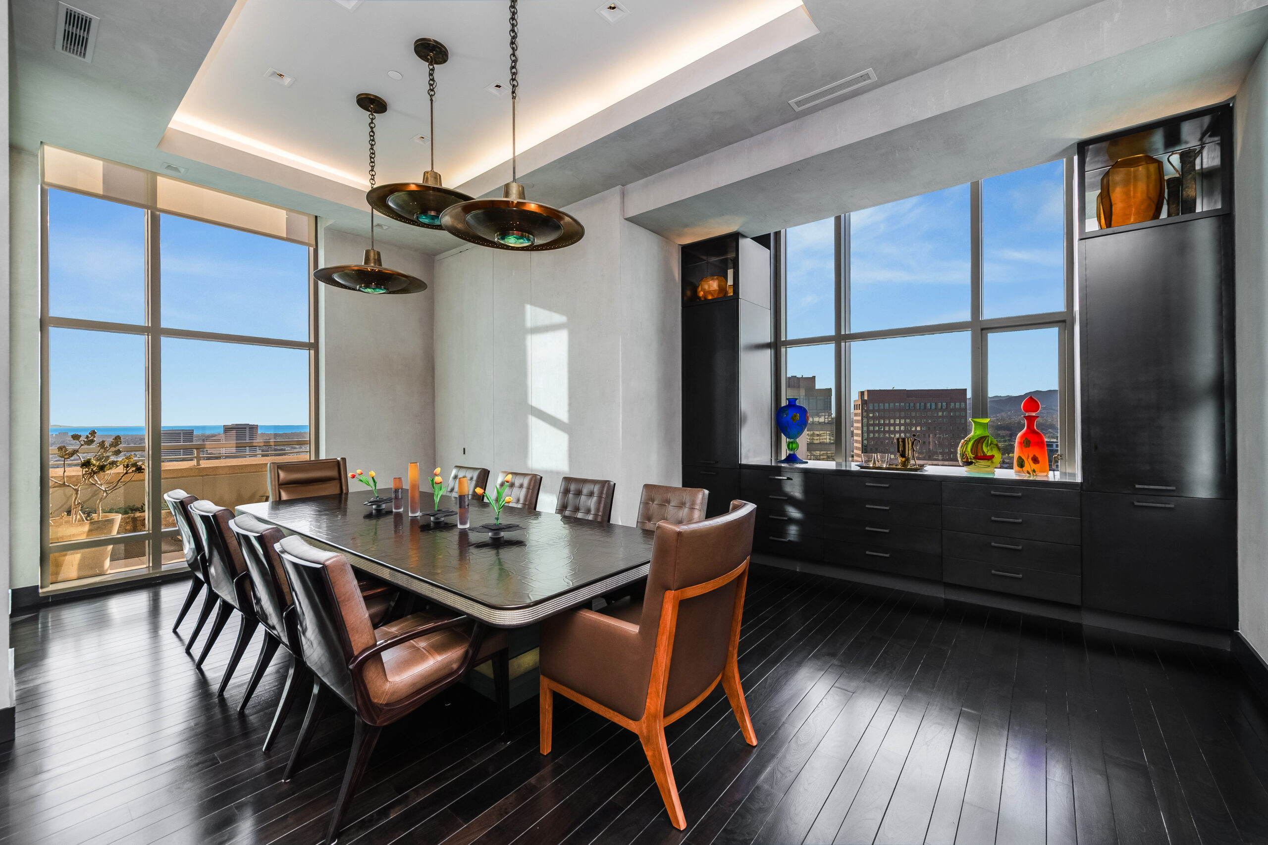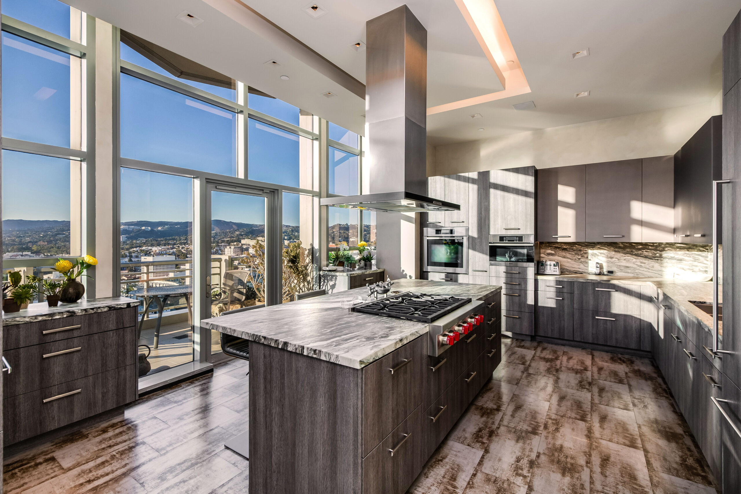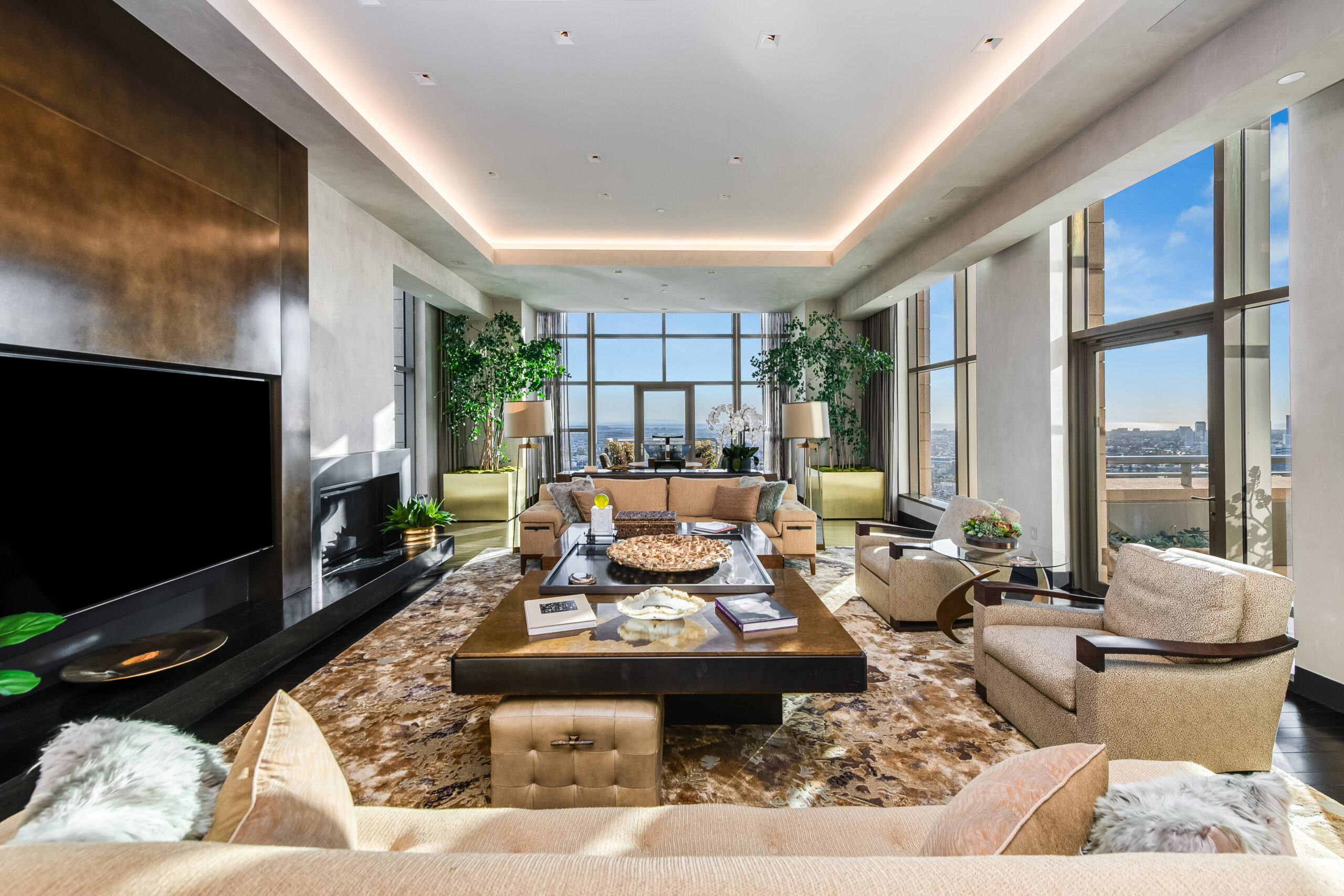 Don't miss this once-in-a-lifetime opportunity! This is one of the most exciting, dynamic residences in Los Angeles. This dramatic half-floor, south-facing Penthouse spans nearly 5,200 sq.ft., blending sleek, modern design with flawless, like-new condition. From every room, soak in jaw-dropping, 270-degree views of the glittering city, ocean, coastline, and lush hillsides. Step off your private elevator and be wowed by soaring 10 to 12-foot ceilings and floor-to-ceiling windows that flood the space with natural light and endless vistas. The vibe is chic, inviting, and serene - perfect for both relaxation and entertaining. The 3-bedroom + den, 4.5-bath layout offers generous space, unmatched style, and ultimate tranquility. Designed by acclaimed architect Randy Patton of Patton Design Studios, the interiors are nothing short of spectacular. Features include custom walnut doors, massive walls for artwork, exquisite Blackman Cruz lighting, NANZ hardware, walnut floors, and rare marble finishes - every detail is meticulously crafted. The open, flowing floor plan seamlessly connects the expansive living and dining areas, ideal for both grand soires and intimate dinners. The private wing hosts the ultra-spacious primary suite, complete with two opulent bathrooms, oversized walk-in closets, and custom built-ins. Adjoining the suite is a peaceful den, perfect for yoga, meditation, or a home office. On the opposite wing, two large bedroom suites offer their own stunning views, with the second bedroom currently configured as a media room plus office. The third bedroom includes a cozy sitting area, office space, and generous walk-in closet. The chef's kitchen is a showstopper, with a sleek center island, a large banquette for casual dining, and a delightful veranda for al fresco meals. The expansive terrace invites you to bask in the California sun while taking in panoramic mountain and ocean views. A powder room, large laundry room, 3 parking spaces, a storage unit, and a private wine locker round out this extraordinary offering. Living at The Carlyle means embracing a 5-star lifestyle with 24/7 valet parking and exceptional amenities. Indulge in a beautiful main lobby with Fendi Casa decor and a striking Chihuly chandelier, enjoy concierge service, on-site management, a fitness center, resort-style pool and spa, meeting rooms, and elegant party spaces. With low HOA dues covering building earthquake insurance, water, and gas, Penthouse 23 is the epitome of luxury, value, and convenience. Located along the prestigious Wilshire Corridor, you are just minutes from the best dining, shopping, and entertainment that LA has to offer - Beverly Hills, UCLA, SoFi Stadium, The Getty, and more. This is your chance to live in one of LA's finest residences.