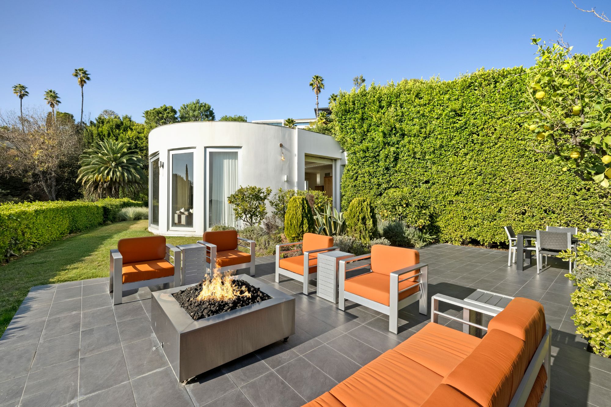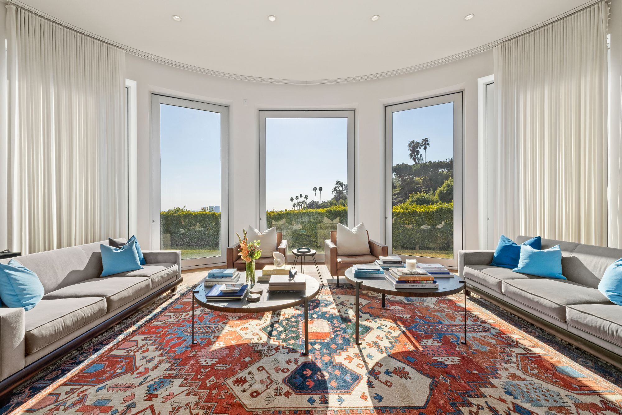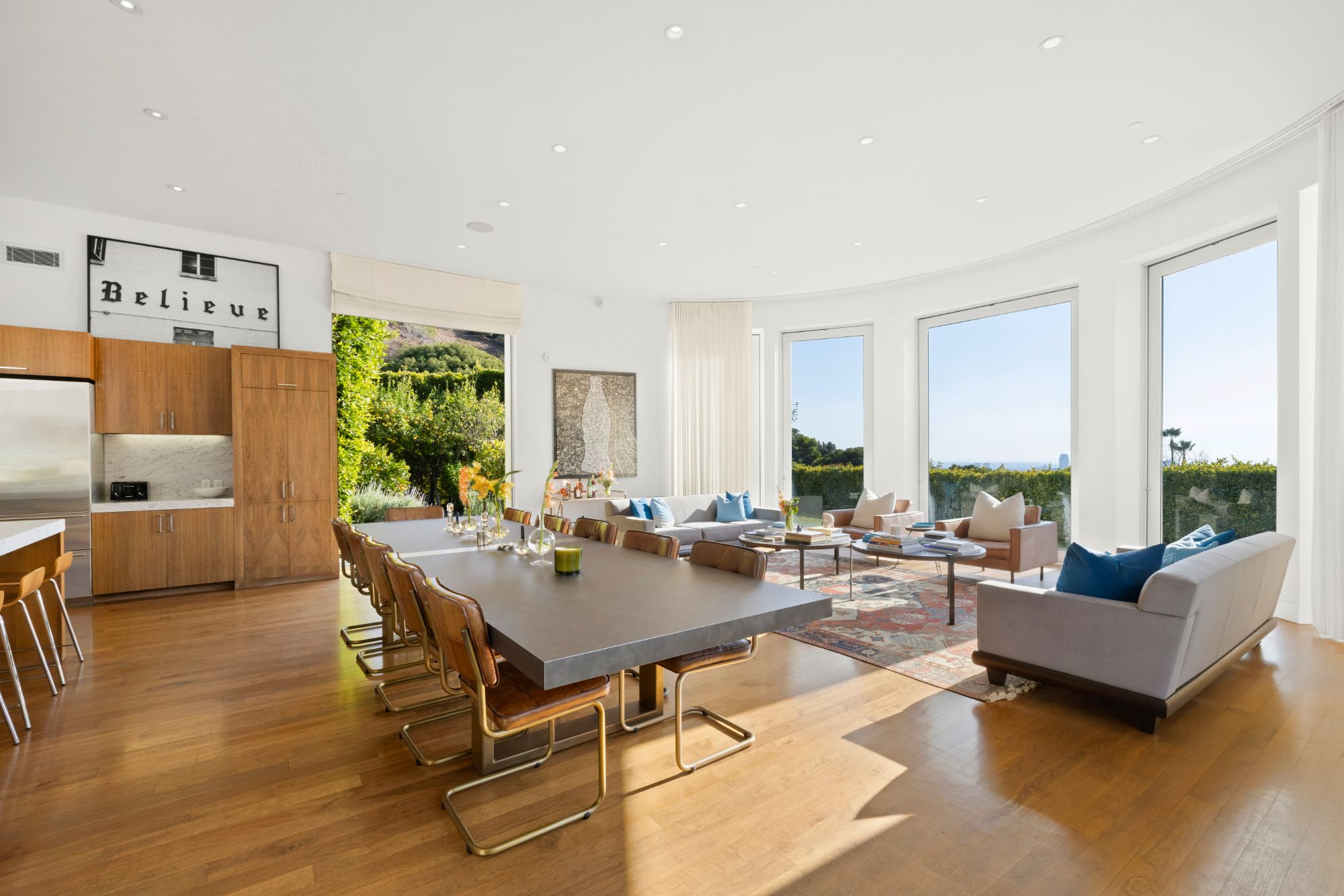 Perched in the exclusive Trousdale Estates of Beverly Hills, this iconic residence, originally designed by legendary architect Wallace Neff in 1956 for comedy great Groucho Marx, is a masterpiece of mid-century sophistication with modern enhancements. Behind private gates and lush hedges, a grand motor court welcomes you with space for over 10 cars, leading to a spacious three-car garage. A striking blend of Neff's signature horizontal lines, curved forms, and expansive glass walls defines the home's timeless exterior. Inside, terrazzo and walnut flooring set the stage for a refined yet inviting ambiance, while soaring ceilings create an open, airy feel throughout. At the heart of the estate, a state-of-the-art chef's kitchen, complete with an oversized island, flows effortlessly into a sunlit family room, where curved walls frame breathtaking city and ocean vistas. A sophisticated office, library, or home theater, wrapped in rich walnut paneling, provides a secluded retreat for work or entertainment. Set on an expansive 32,300 sq ft lot, the outdoor spaces are nothing short of spectacular. A heated pool and spa invite relaxation, while the tiled patio and fire pit offer the perfect setting for alfresco dining under the stars. Towering palm and lemon trees provide a lush backdrop, and a versatile sports court is ready for pickleball, basketball, or endless outdoor fun. A rare opportunity to own a true architectural gem in one of Beverly Hills' most sought-after enclaves.