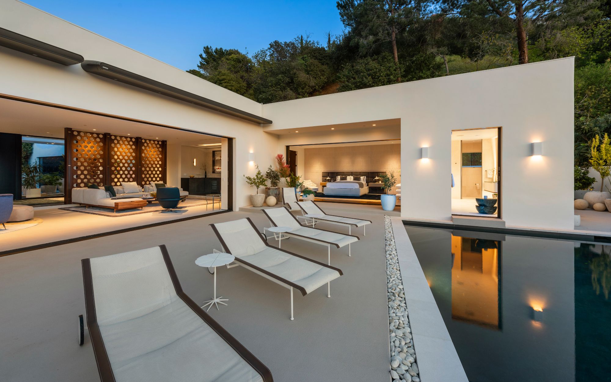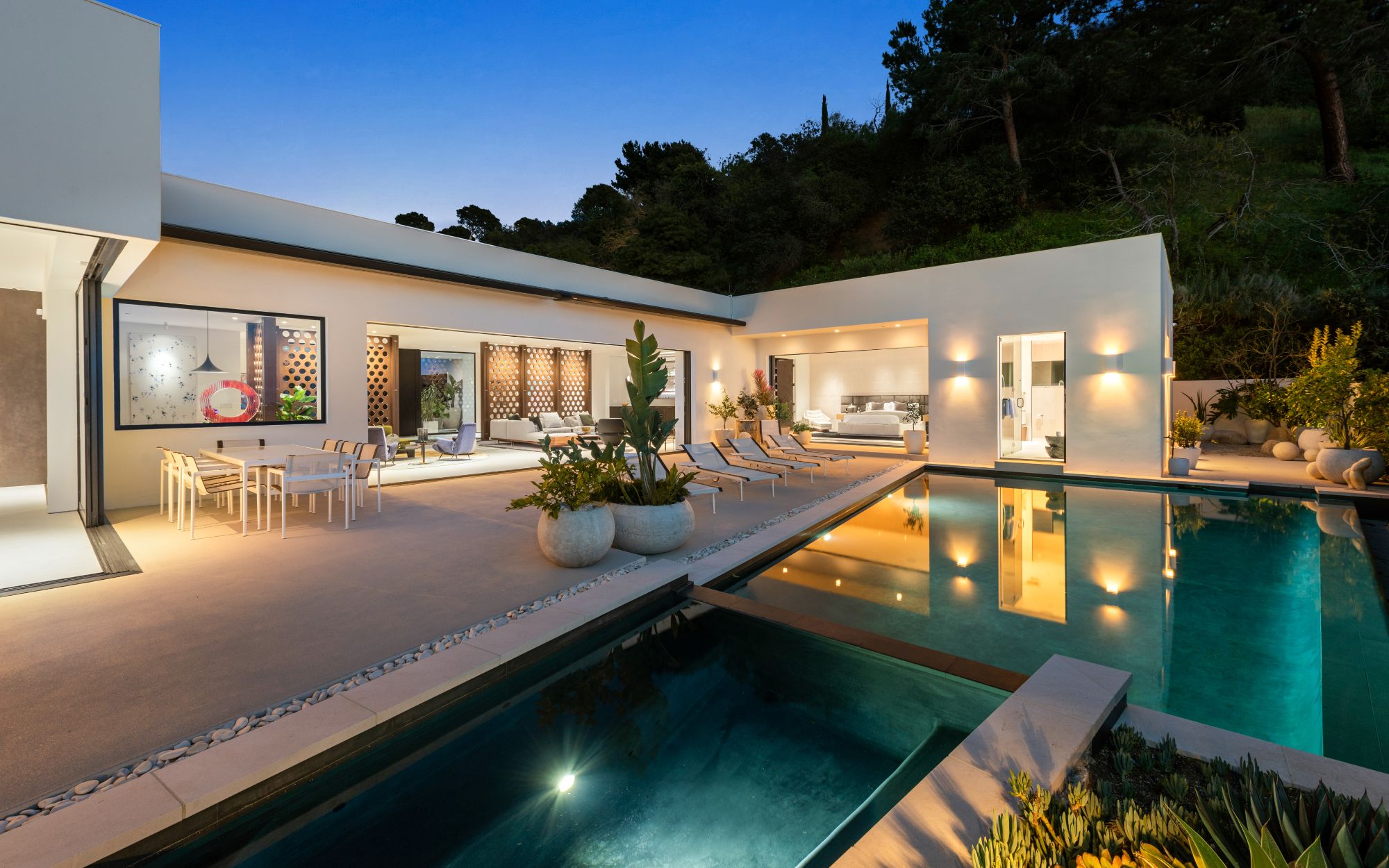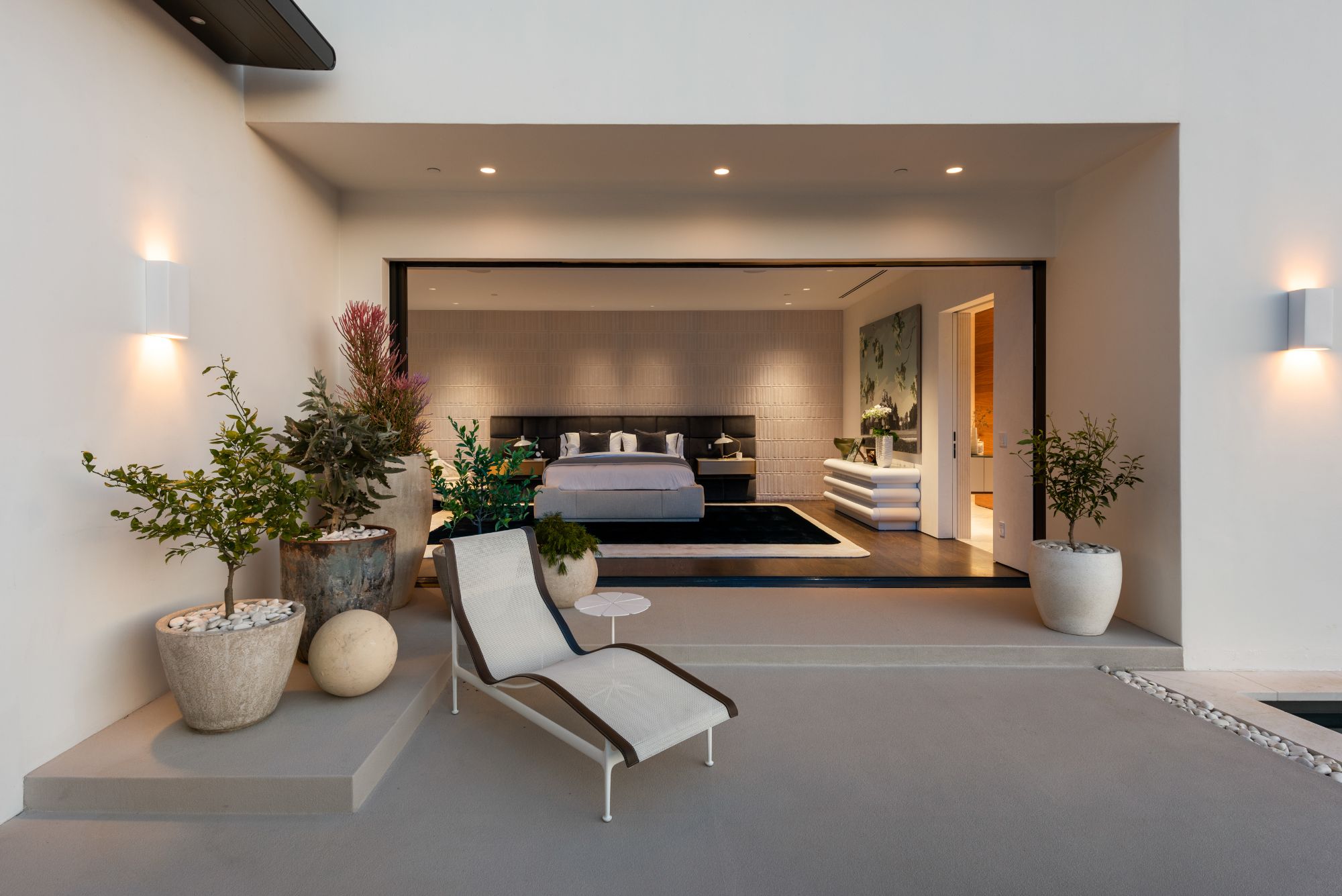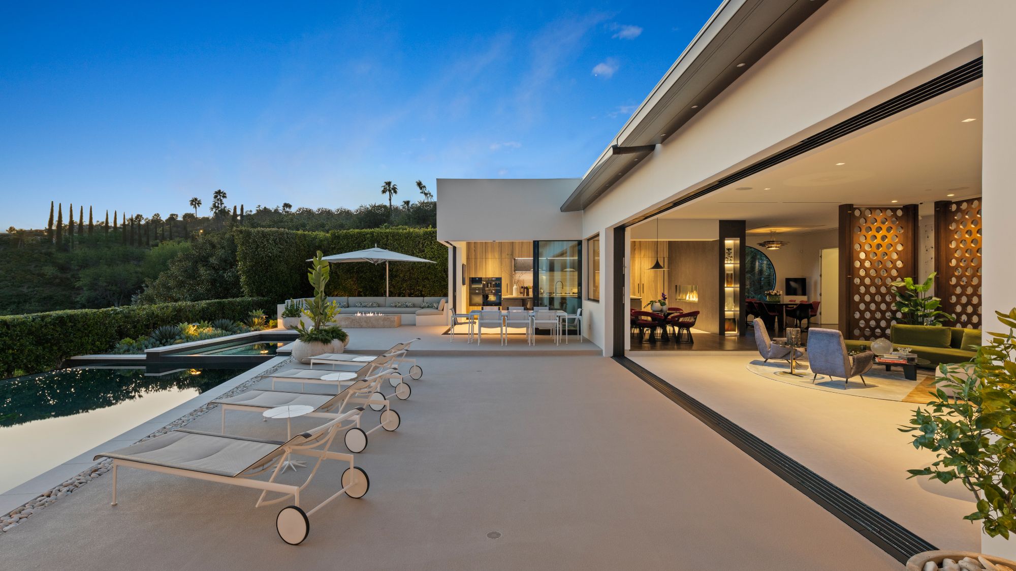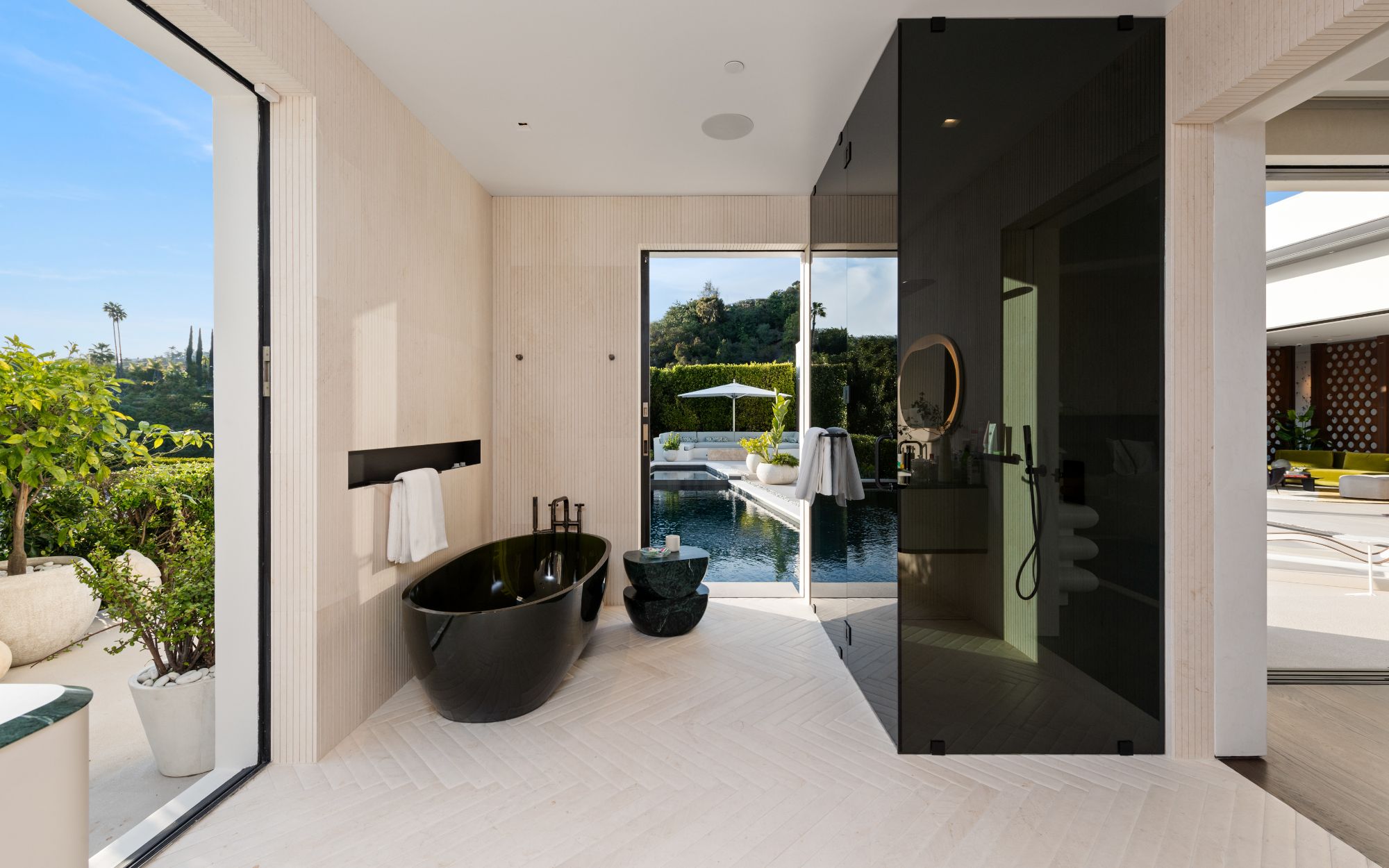 This beautiful modern estate has been completely rebuilt in every detail, chic and sophisticated. Situated on an exceptionally large 25,000 SF lot with expansive views from Beverly Hills to the ocean. Quintessential Hollywood style and a grand entryway lead to a living room w/floor-to-ceiling sliders that open to a Slim Aarons picturesque backyard & pool. A master suite fit for the most discerning buyers: Featuring a luxurious bathroom w/his and hers sinks & free standing dark green lucite tub, a walk-in-closet, bar and private lounge. Infinity pool with spa and impressive outdoor fire pit area perfect for indoor/outdoor entertaining. Many dreamed of a lifestyle as sweet as this. You were born in the right time & earned it. Don't miss out on one of the most stylistic, effortlessly beautiful homes in Trousdale.