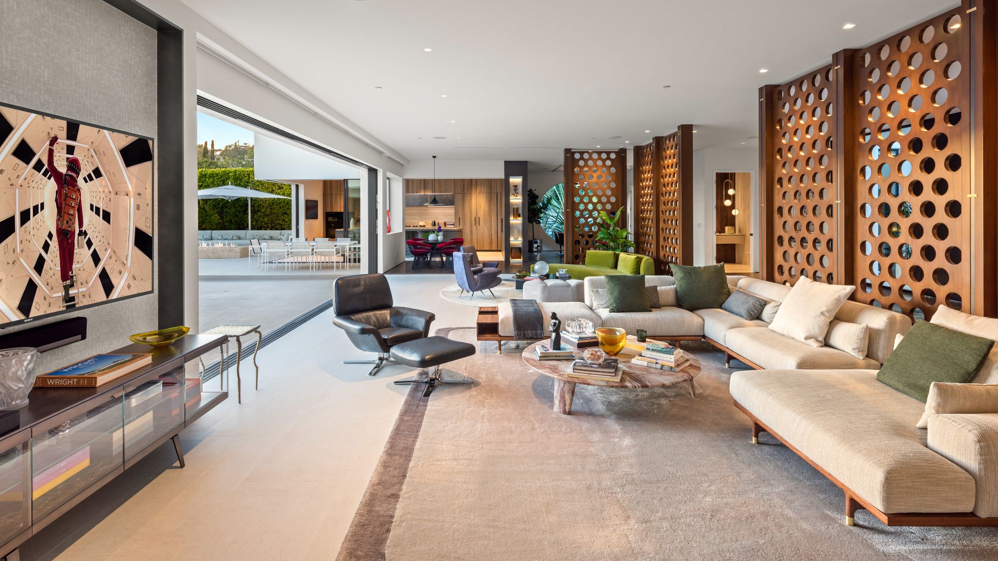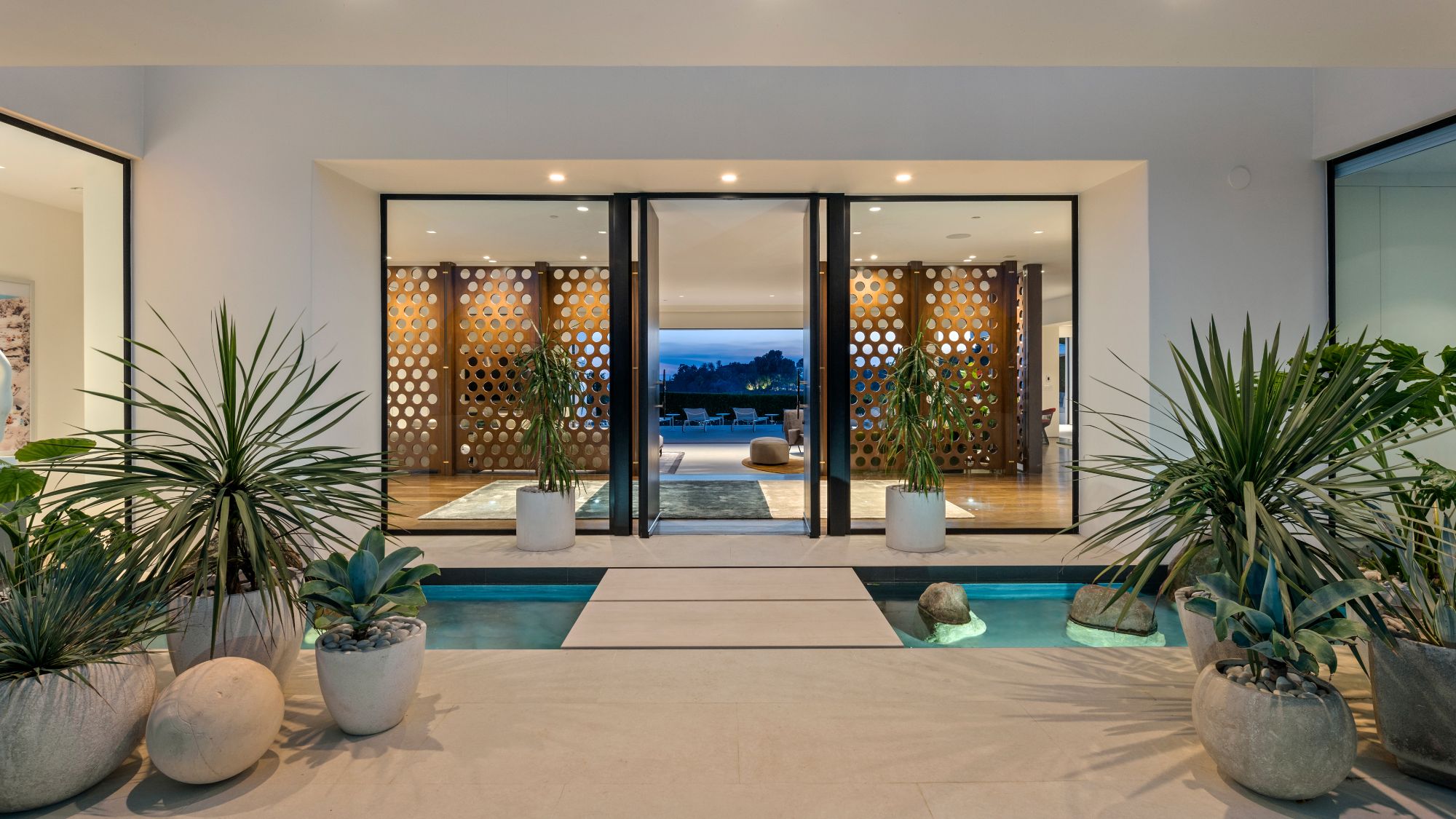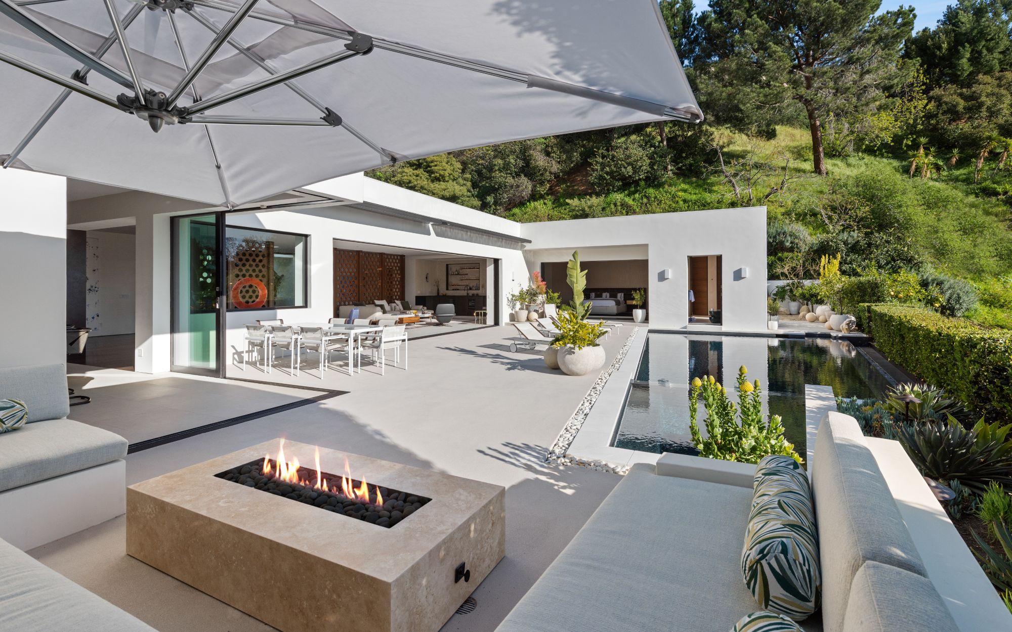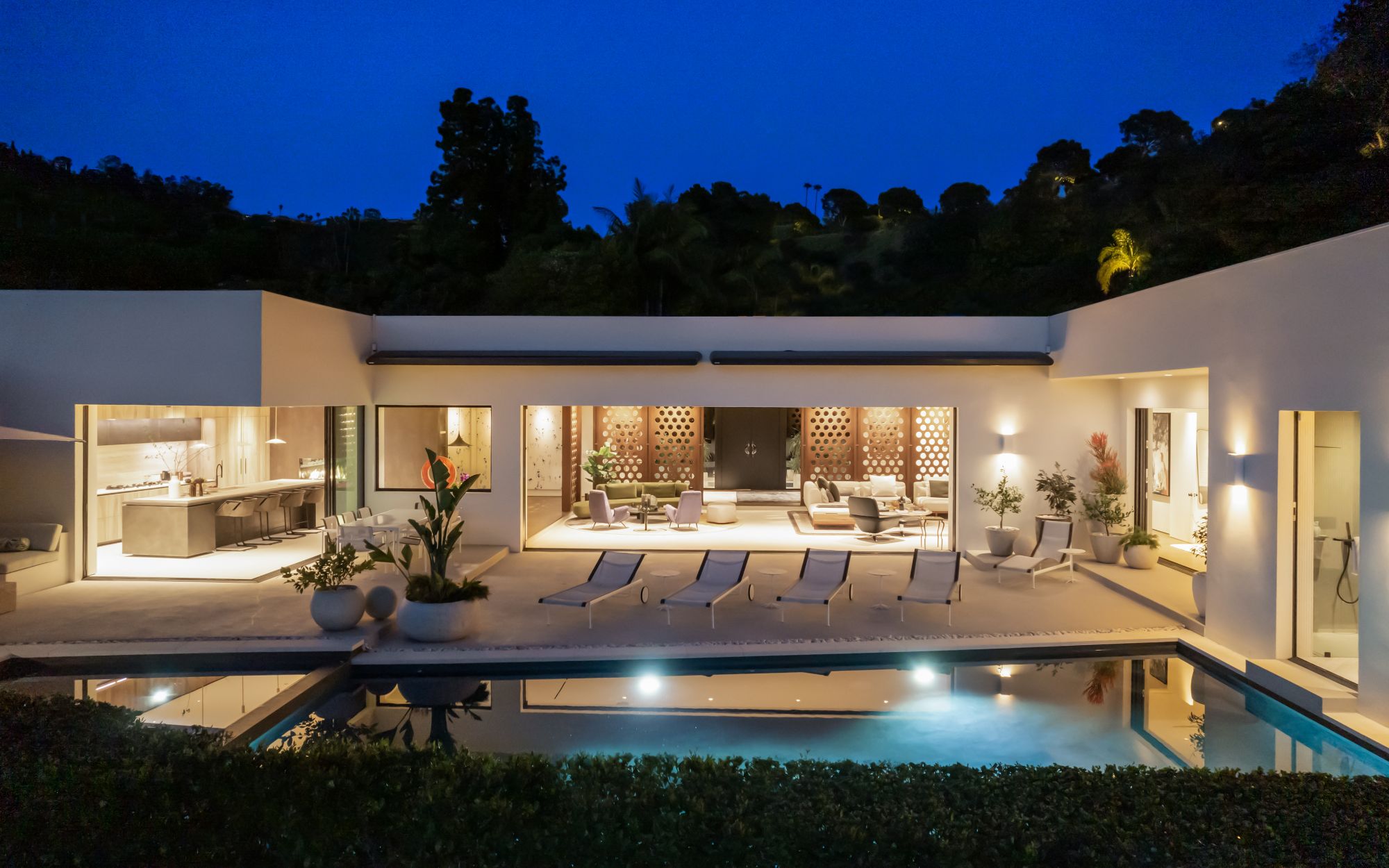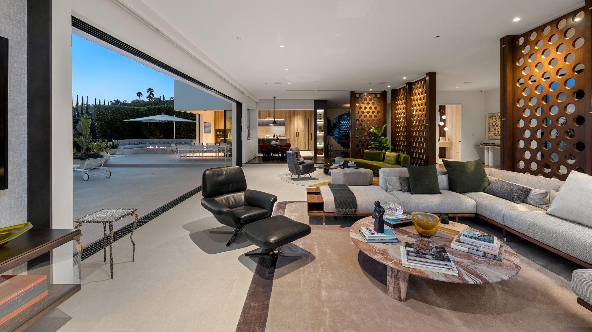 This beautiful modern estate has been completely rebuilt in every detail, chic and sophisticated. Situated on an exceptionally large 25,000 SF lot with expansive views from Beverly Hills to the ocean. Quintessential Hollywood style and a grand entryway lead to a living room w/floor-to-ceiling sliders that open to a Slim Aarons picturesque backyard & pool. A master suite fit for the most discerning buyers: Featuring a luxurious bathroom w/his and hers sinks & free standing dark green lucite tub, a walk-in-closet, bar and private lounge. Infinity pool with spa and impressive outdoor fire pit area perfect for indoor/outdoor entertaining. Many dreamed of a lifestyle as sweet as this. You were born in the right time & earned it. Don't miss out on one of the most stylistic, effortlessly beautiful homes in Trousdale.