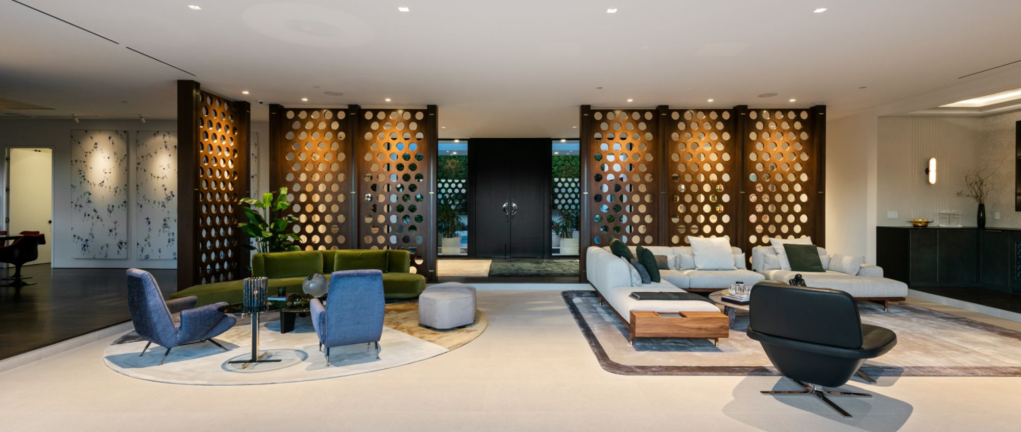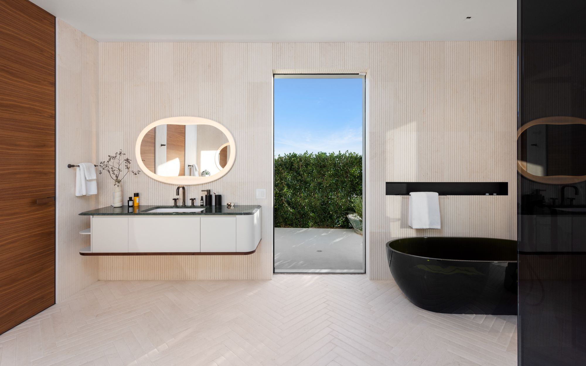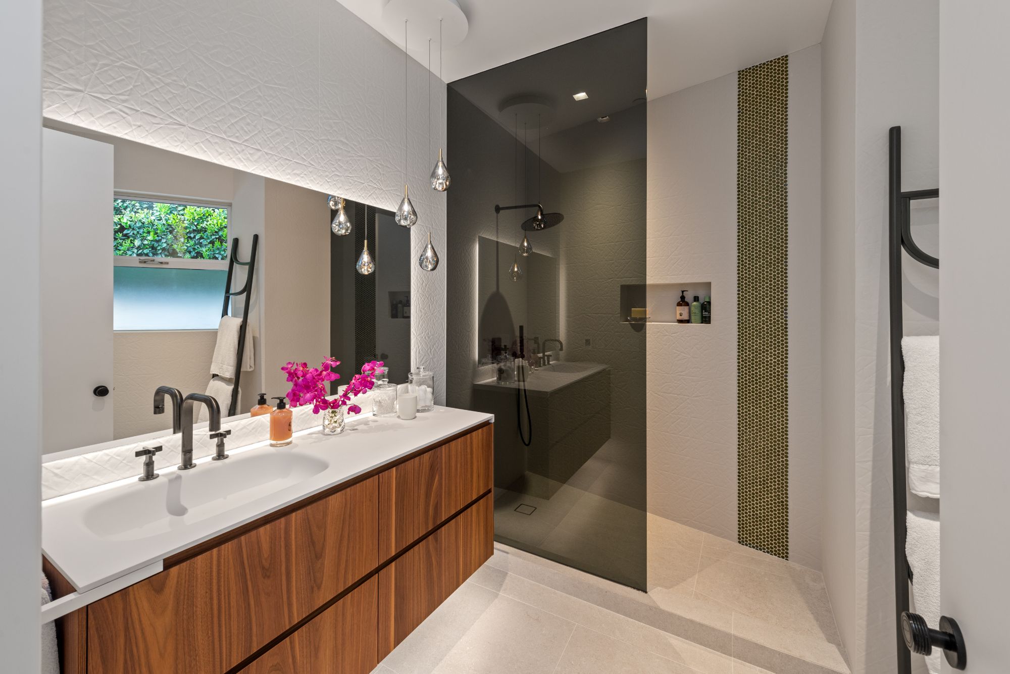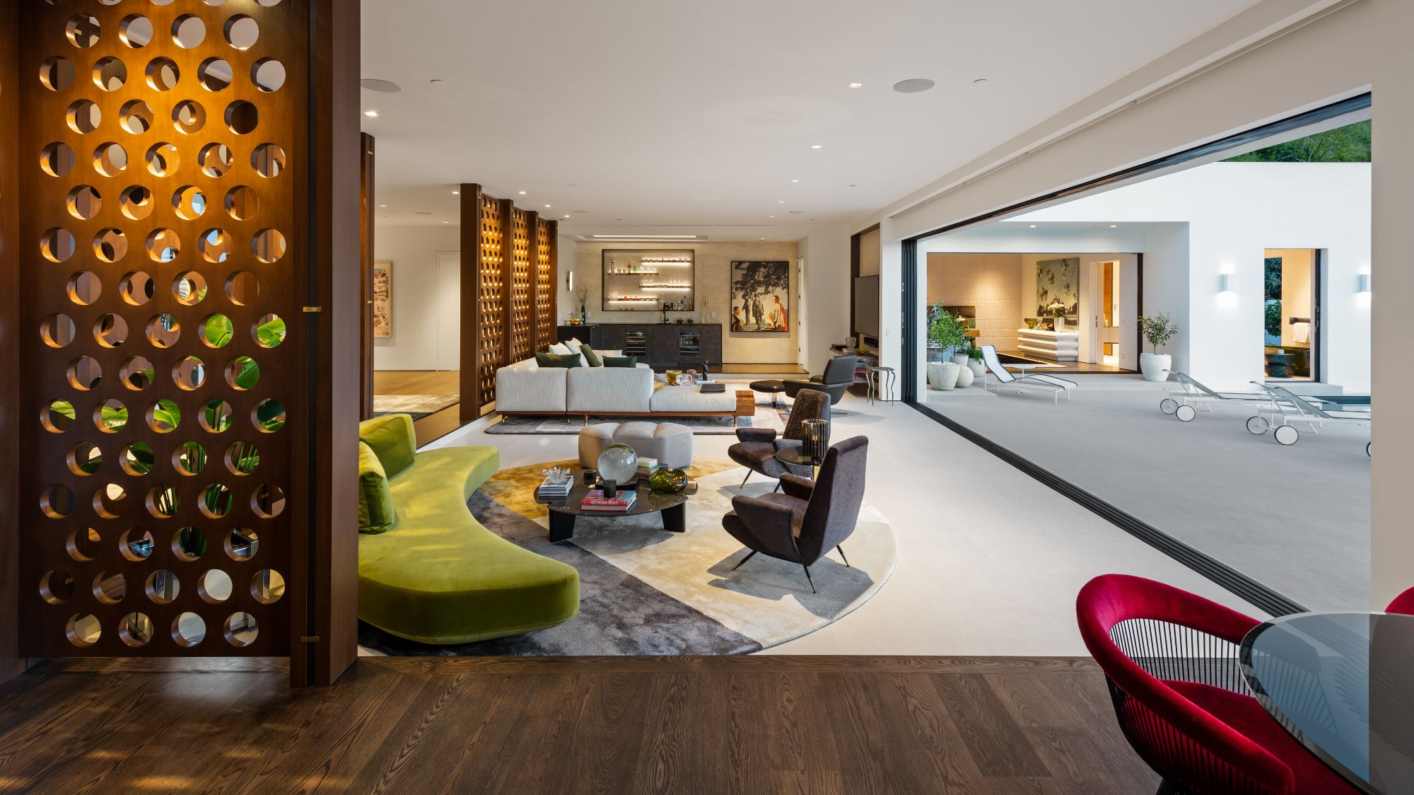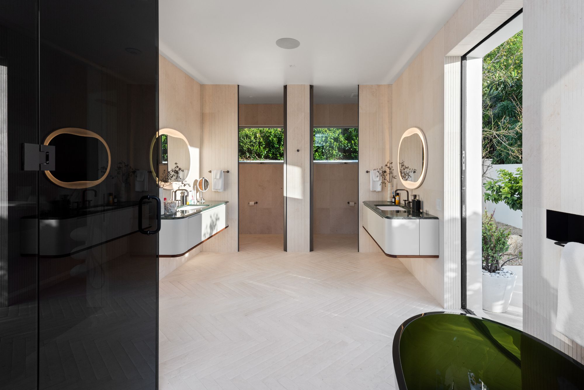 This beautiful modern estate has been completely rebuilt in every detail, chic and sophisticated. Situated on an exceptionally large 25,000 SF lot with expansive views from Beverly Hills to the ocean. Quintessential Hollywood style and a grand entryway lead to a living room w/floor-to-ceiling sliders that open to a Slim Aarons picturesque backyard & pool. A master suite fit for the most discerning buyers: Featuring a luxurious bathroom w/his and hers sinks & free standing dark green lucite tub, a walk-in-closet, bar and private lounge. Infinity pool with spa and impressive outdoor fire pit area perfect for indoor/outdoor entertaining. Many dreamed of a lifestyle as sweet as this. You were born in the right time & earned it. Don't miss out on one of the most stylistic, effortlessly beautiful homes in Trousdale.