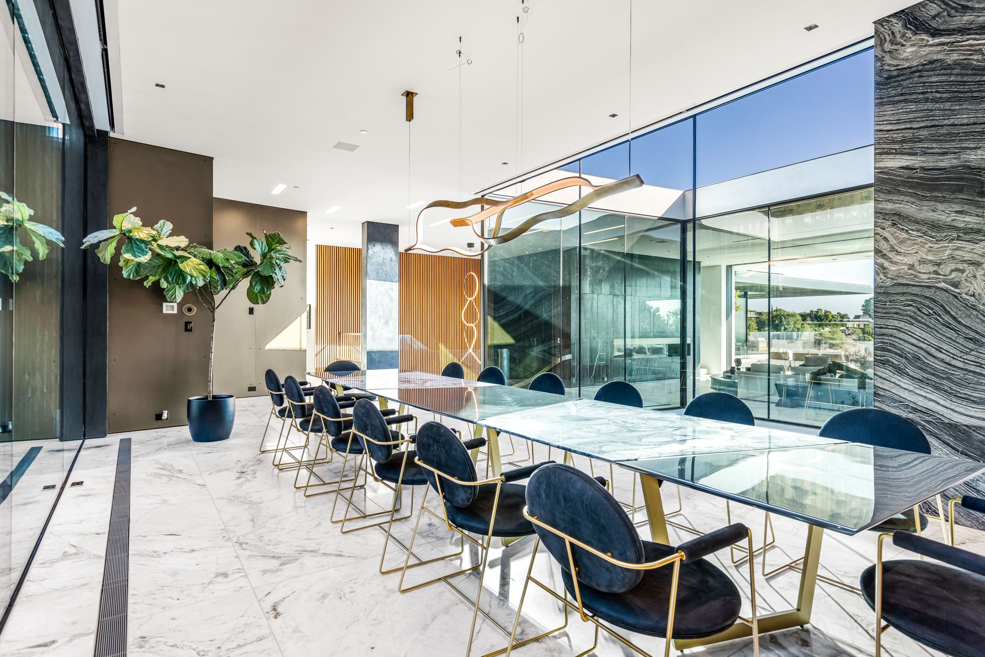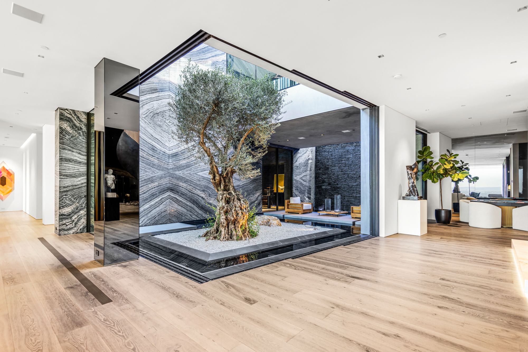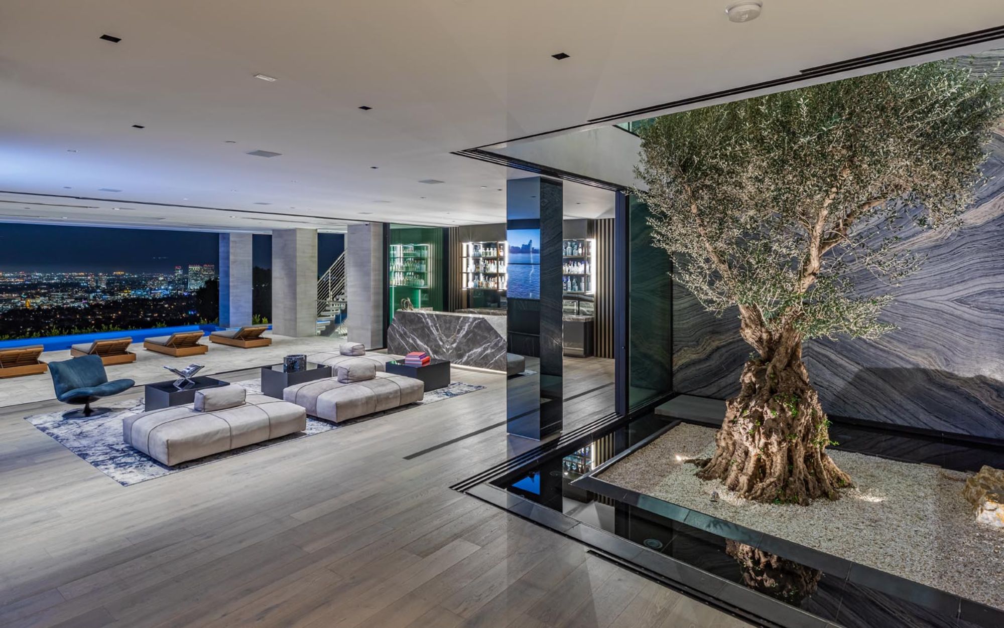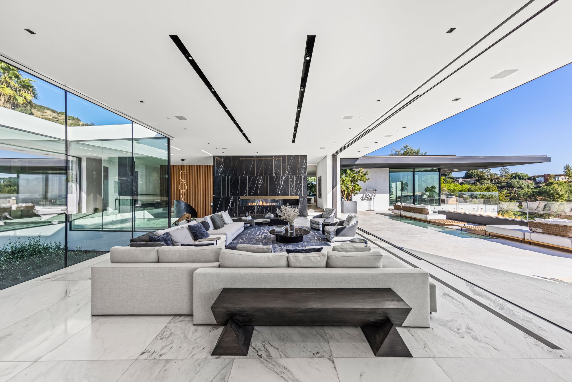 Iconic architectural home designed by Luxford Group and world-renowned SAOTA. This 18,000+ SF masterpiece boasts the only permitted daylight basement in Trousdale Estates. Modern stone bridge leads you over water & into a dramatic foyer. The great room, with marble details inspired by the rhythmic keys of a piano, introduces you to the first of many panoramic views. Main kitchen includes state-of-the-art Gaggenau appliances, Dada cabinetry, and 14ft leathered marble island. Butlers' kitchen, with separate entrance, has 16 burner Viking stove. Primary Suite offers custom finishes, dual baths, designer closet & stunning views from private deck. Additional 6 ensuite bedrooms create endless space for family/guests to relax. Down the Venetian plastered spiral staircase a 20ft cascading water wall is the background to a 150yr old Mediterranean Olive Tree from Italy. A 2,000 bottle wine cellar, wellness center & gym, office, and home theater make this an entertainer's paradise. This home is the epitome of luxury and is set in one of the most exclusive enclaves of Beverly Hills.