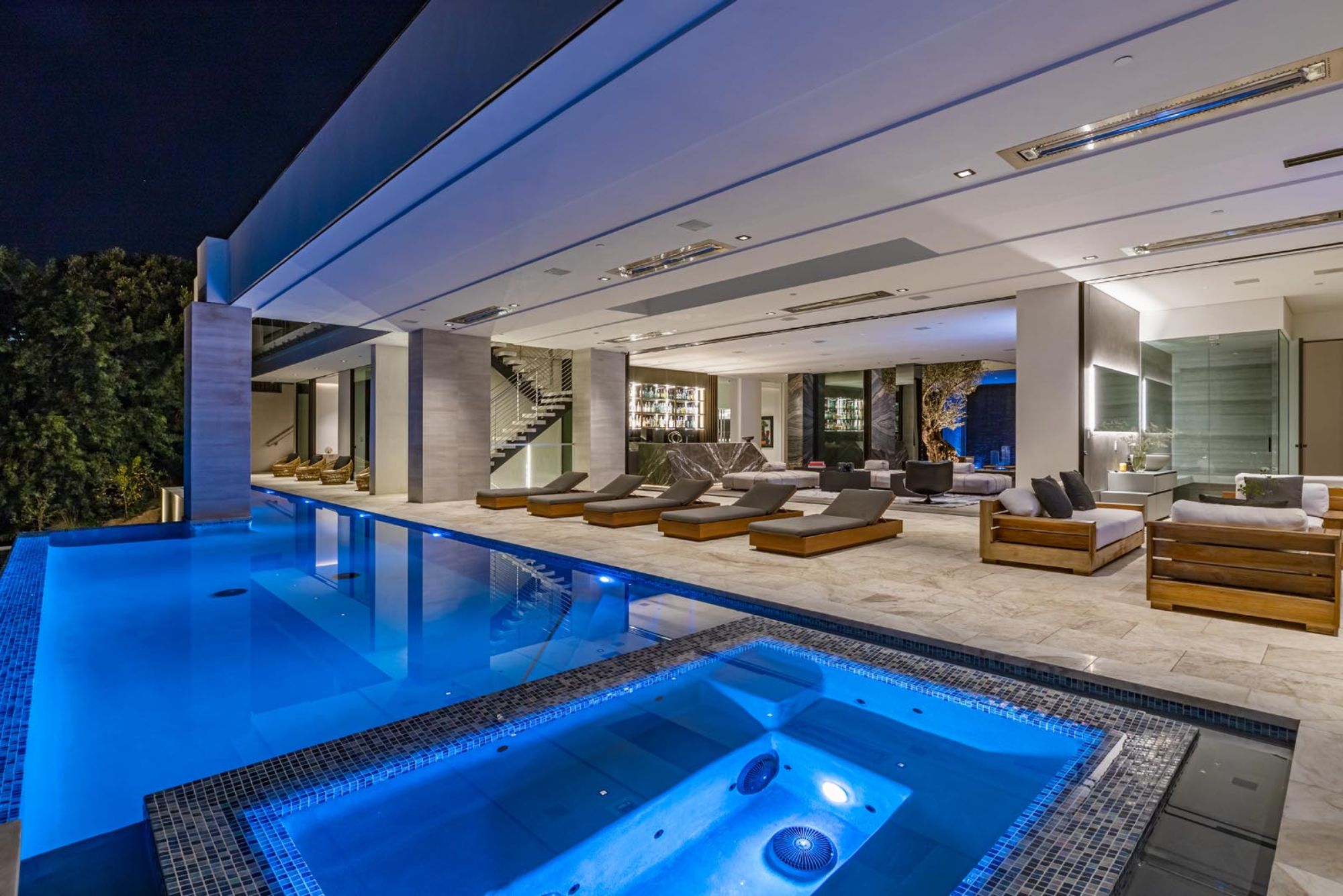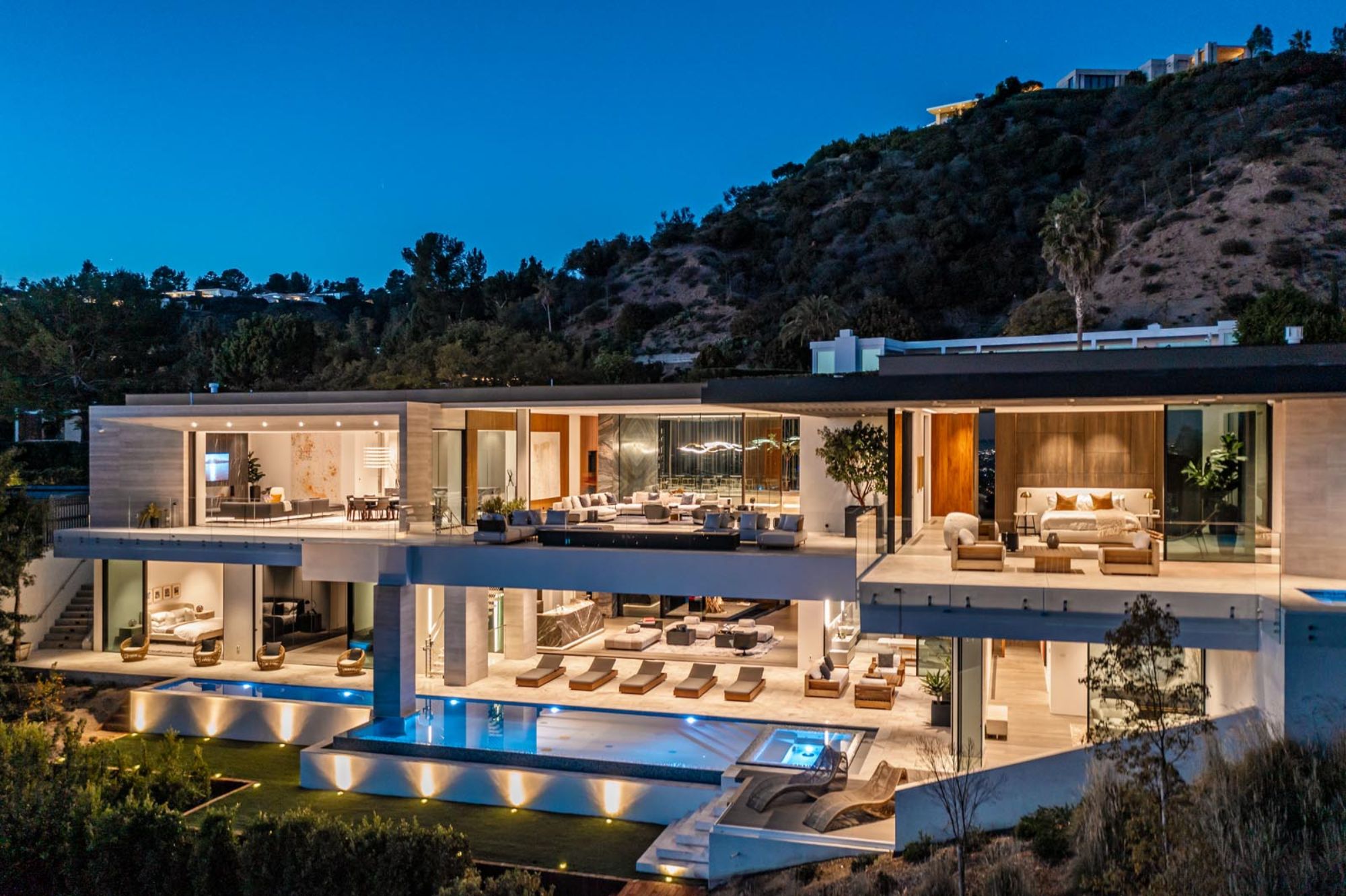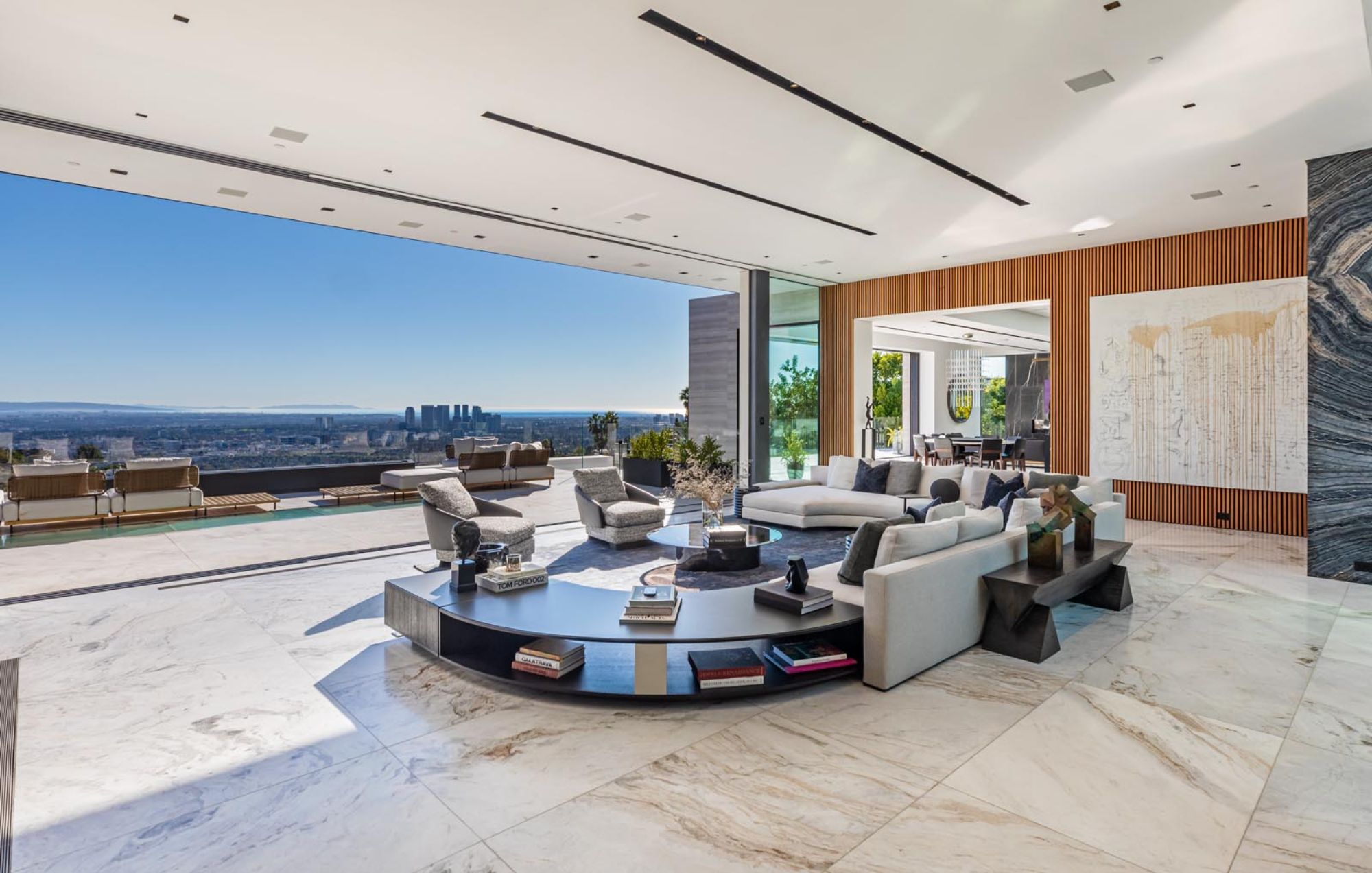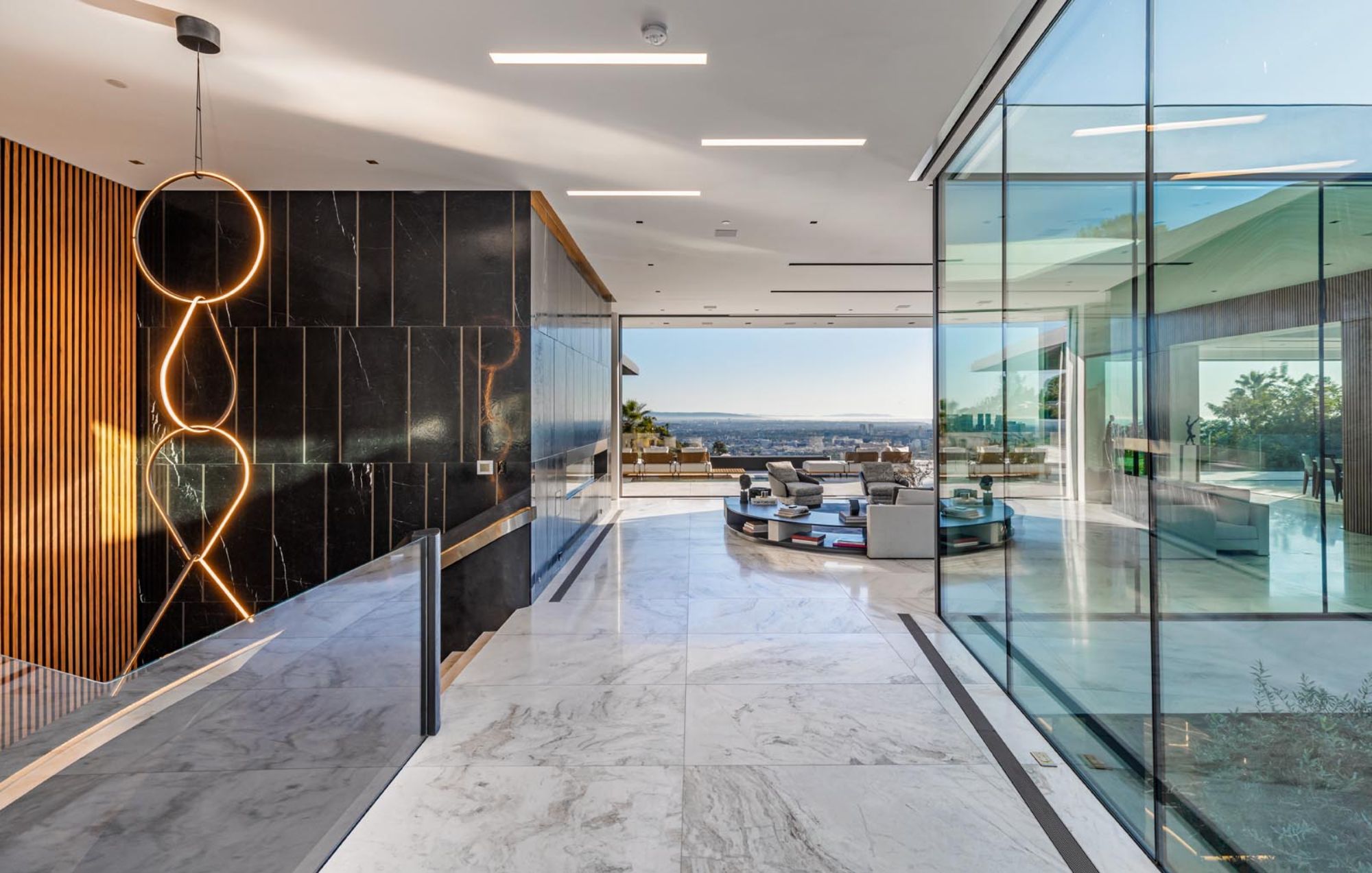Iconic architectural home designed by Luxford Group and world-renowned SAOTA. This 18,000+ SF masterpiece boasts the only permitted daylight basement in Trousdale Estates. Modern stone bridge leads you over water & into a dramatic foyer. The great room, with marble details inspired by the rhythmic keys of a piano, introduces you to the first of many panoramic views. Main kitchen includes state-of-the-art Gaggenau appliances, Dada cabinetry, and 14ft leathered marble island. Butlers' kitchen, with separate entrance, has 16 burner Viking stove. Primary Suite offers custom finishes, dual baths, designer closet & stunning views from private deck. Additional 6 ensuite bedrooms create endless space for family/guests to relax. Down the Venetian plastered spiral staircase a 20ft cascading water wall is the background to a 150yr old Mediterranean Olive Tree from Italy. A 2,000 bottle wine cellar, wellness center & gym, office, and home theater make this an entertainer's paradise. This home is the epitome of luxury and is set in one of the most exclusive enclaves of Beverly Hills.