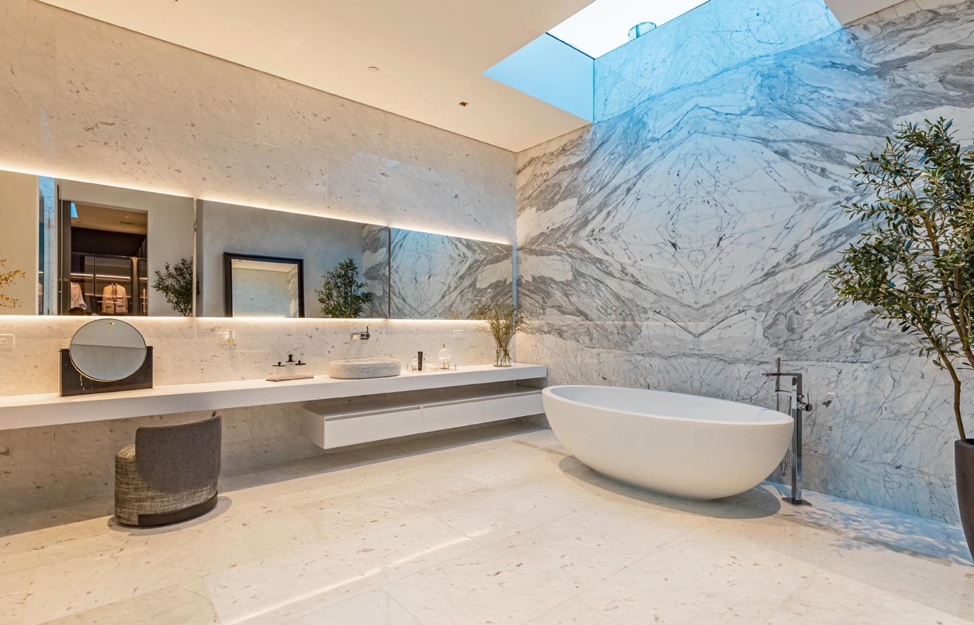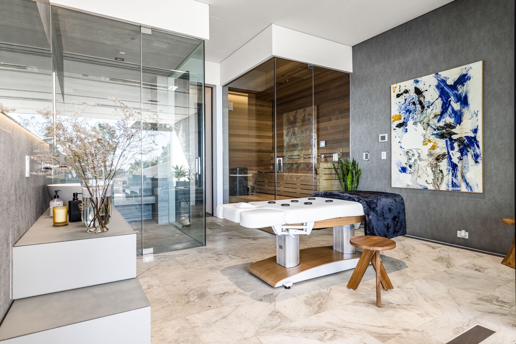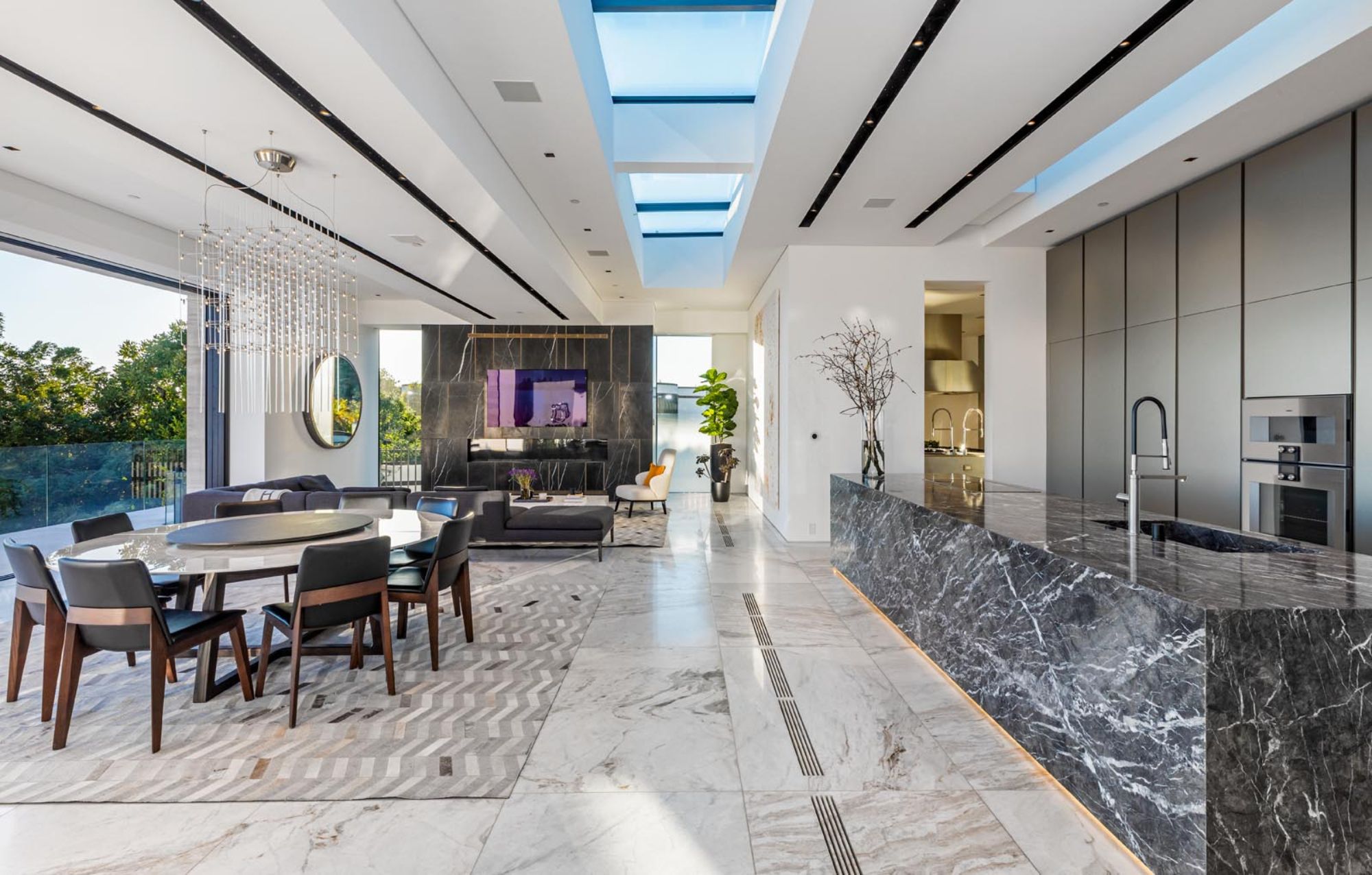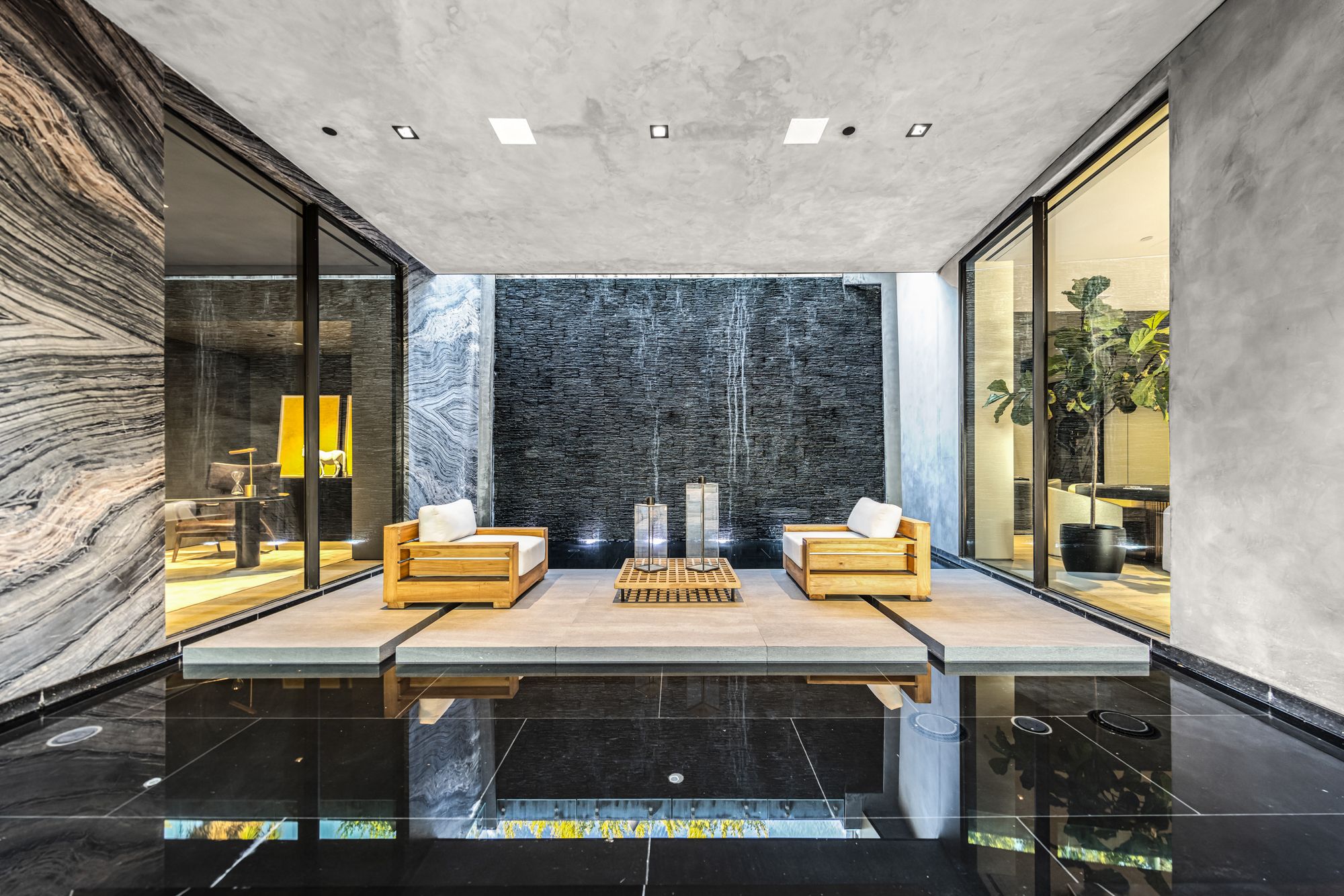 Iconic architectural home designed by Luxford Group and world-renowned SAOTA. This 18,000+ SF masterpiece boasts the only permitted daylight basement in Trousdale Estates. Modern stone bridge leads you over water & into a dramatic foyer. The great room, with marble details inspired by the rhythmic keys of a piano, introduces you to the first of many panoramic views. Main kitchen includes state-of-the-art Gaggenau appliances, Dada cabinetry, and 14ft leathered marble island. Butlers' kitchen, with separate entrance, has 16 burner Viking stove. Primary Suite offers custom finishes, dual baths, designer closet & stunning views from private deck. Additional 6 ensuite bedrooms create endless space for family/guests to relax. Down the Venetian plastered spiral staircase a 20ft cascading water wall is the background to a 150yr old Mediterranean Olive Tree from Italy. A 2,000 bottle wine cellar, wellness center & gym, office, and home theater make this an entertainer's paradise. This home is the epitome of luxury and is set in one of the most exclusive enclaves of Beverly Hills.