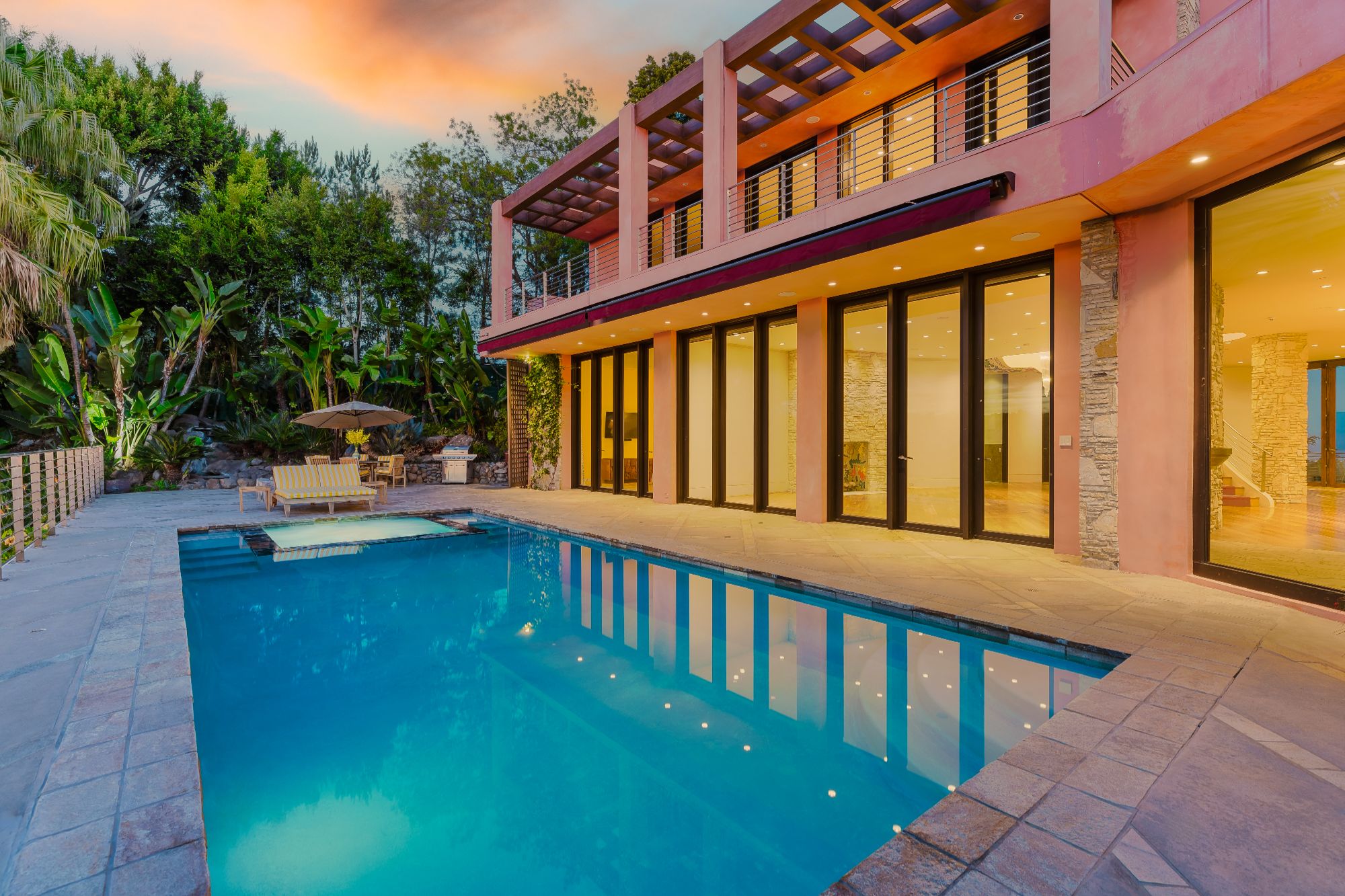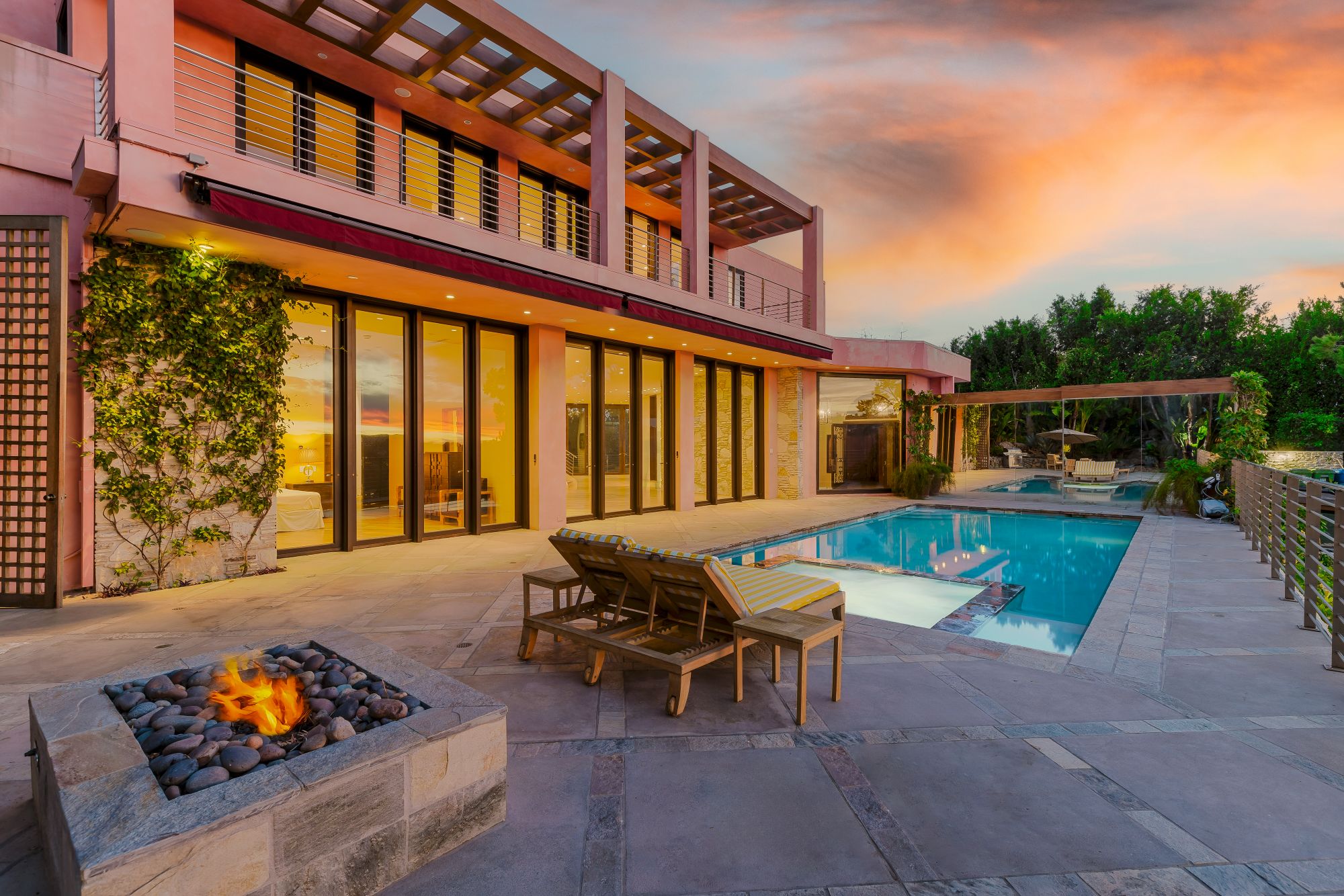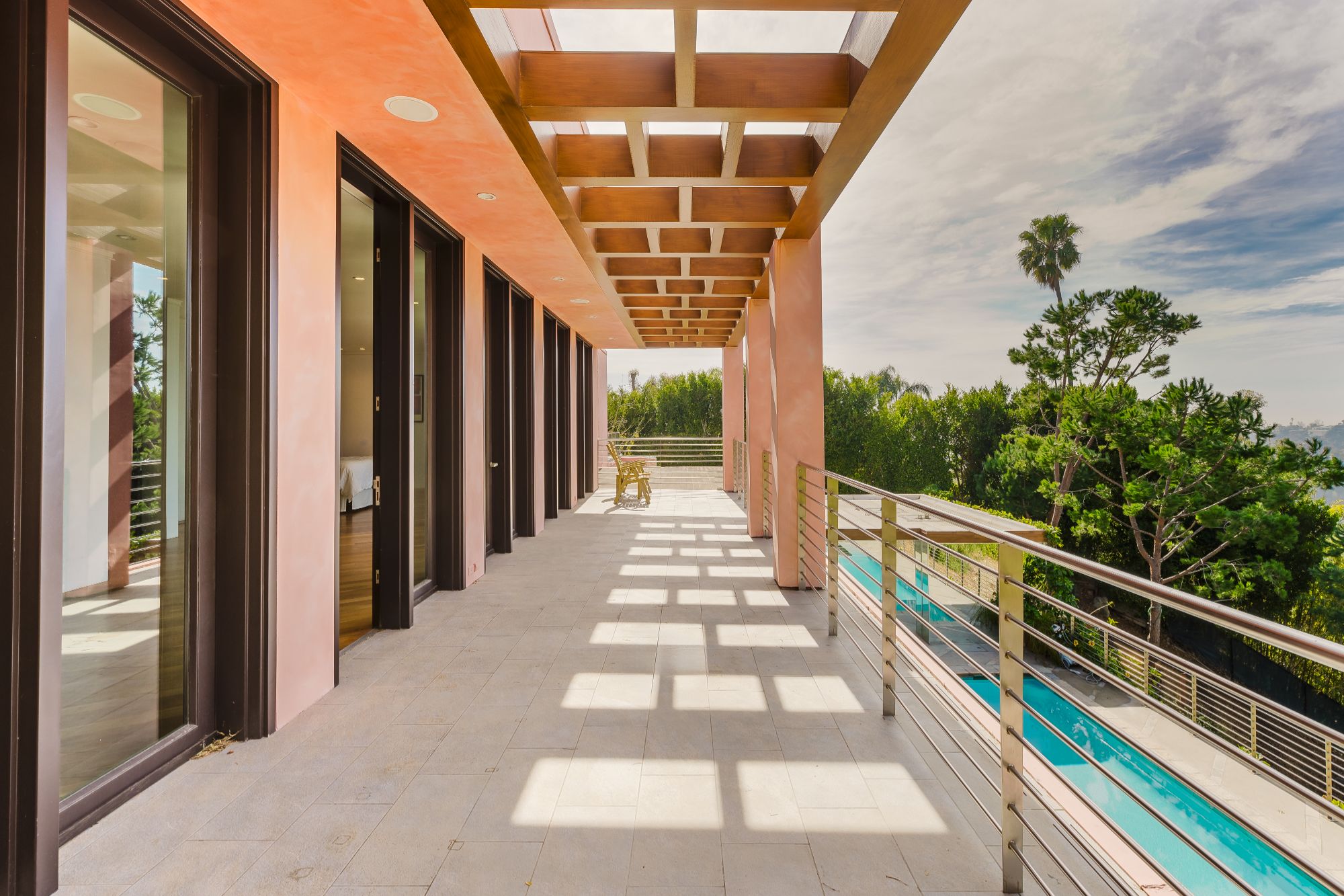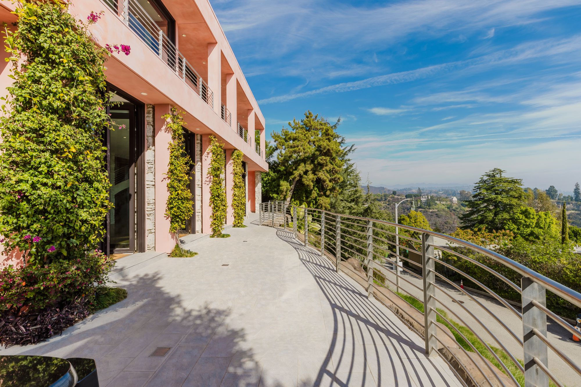 1111 Bel Air Place is an architectural masterpiece designed by the acclaimed Gus Duffy. Perched atop a private, gated cul-de-sac, spanning 6,446 square feet on an expansive 38,782-square-foot lot, this exceptional residence commands breathtaking panoramic views stretching from the canyons to the city skyline and Catalina Island beyond. Designed with soaring 10- to 12-foot ceilings and expansive walls of mahogany-framed glass, the home seamlessly integrates its surroundings while maintaining a striking sense of scale and openness. The main level features an opulent chef's kitchen with top-tier appliances, an elegant dining room, and a spacious family room, all opening to a front-facing balcony. Two en-suite bedrooms, a guest/maid's quarters, and a laundry room complete this level. A sculptural staircase leads to the upper floor, where the primary suite offers a private retreat with a sitting area, fireplace, dual walk-in closets, and two spa-like bathrooms, each with a walk-in shower and access to a rear-facing balcony with dramatic downtown views. An additional en-suite bedroom completes the second level. The outdoor spaces are designed for both serenity and entertaining, featuring a heated pool with an automated canopy, spa, waterfall, gas fire pit, and an outdoor kitchen with a built-in BBQ and pizza oven. Surrounded by lush landscaping, mature fruit trees, and vegetable gardens, this secluded oasis is both tranquil and self-sustaining. Additional amenities include an elevator, a state-of-the-art smart home system, surround sound, recessed lighting, a backup generator, a central vacuum system, and a secured stainless steel entry gate. A spacious four-car garage provides ample parking. A rare offering in one of the world's most iconic neighborhoods, 1111 Bel Air Place is a statement of refined living, where striking architecture and unrivaled views converge in perfect harmony.