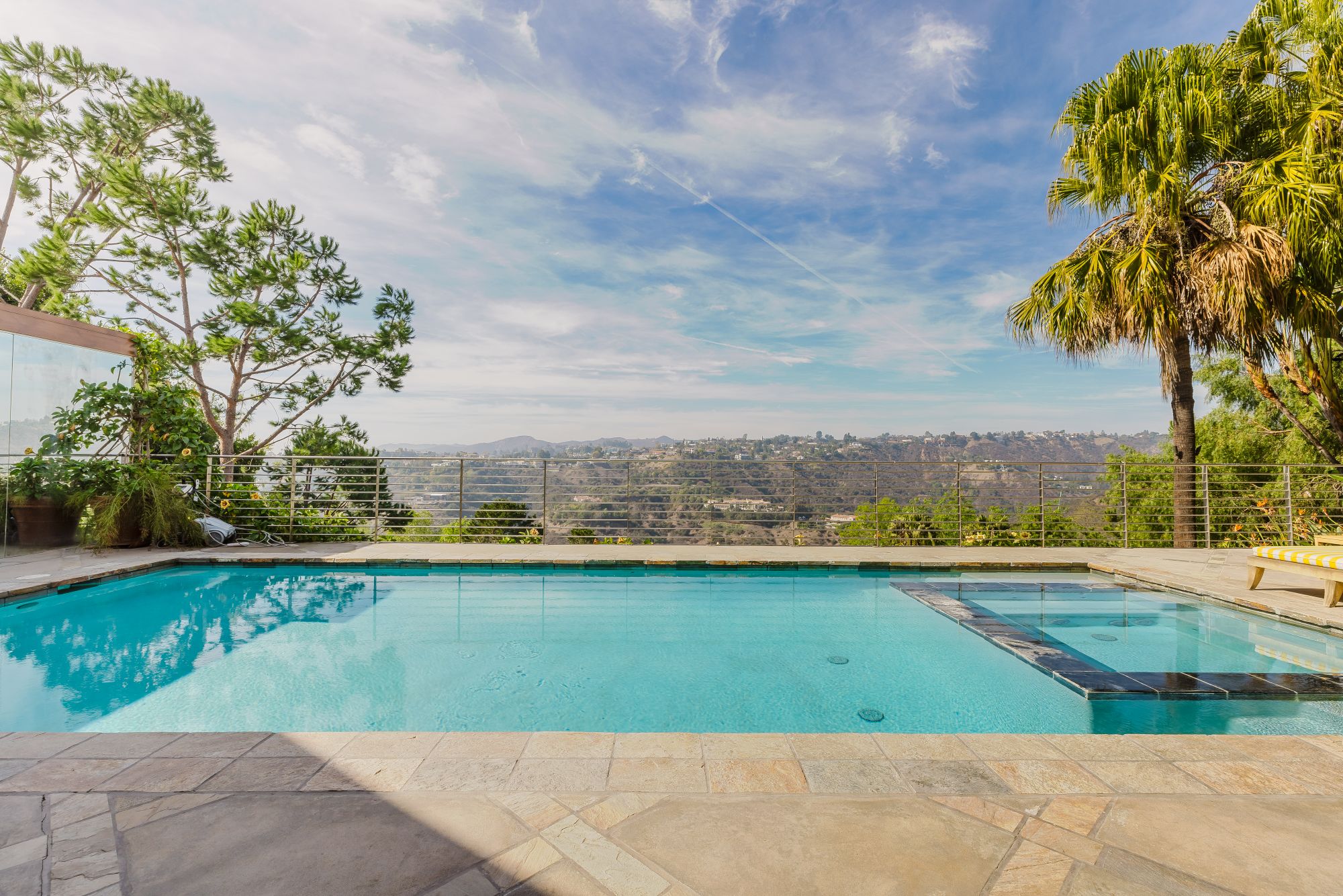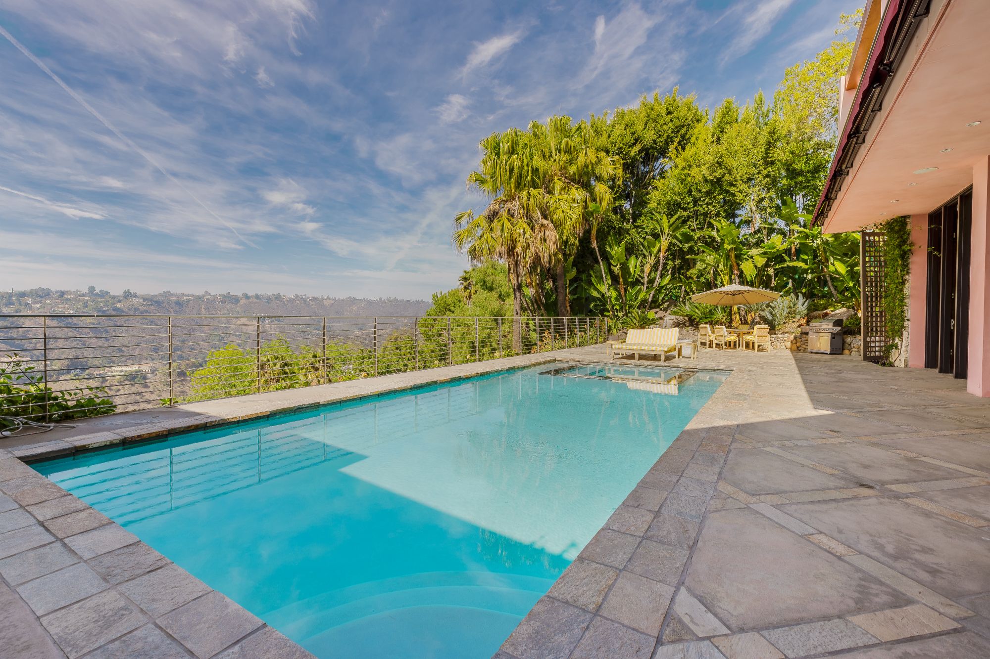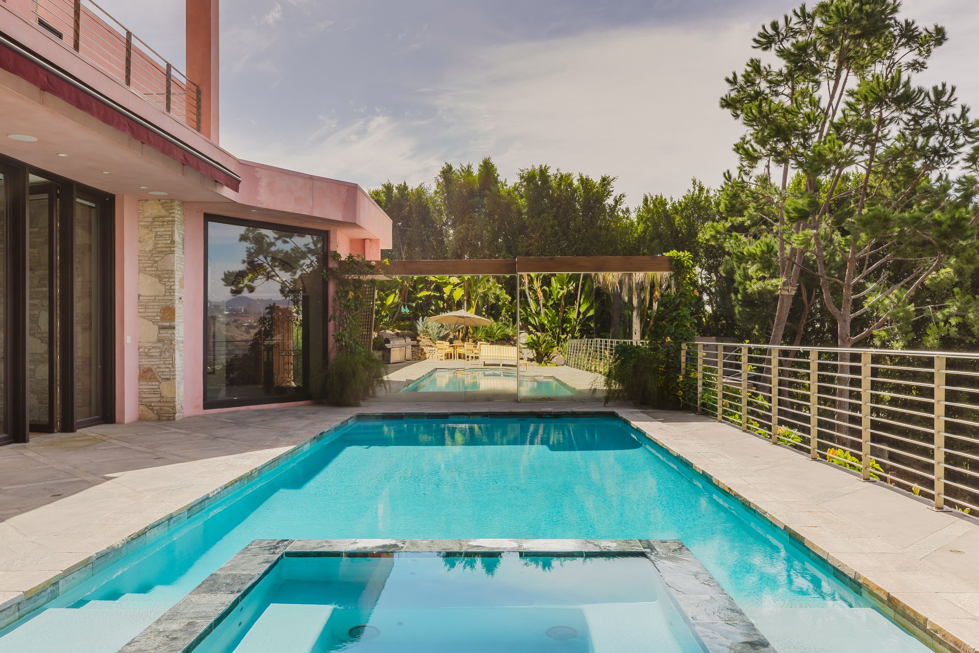 1111 Bel Air Place is an architectural masterpiece designed by the acclaimed Gus Duffy. Perched atop a private, gated cul-de-sac, spanning 6,446 square feet on an expansive 38,782-square-foot lot, this exceptional residence commands breathtaking panoramic views stretching from the canyons to the city skyline and Catalina Island beyond. Designed with soaring 10- to 12-foot ceilings and expansive walls of mahogany-framed glass, the home seamlessly integrates its surroundings while maintaining a striking sense of scale and openness. The main level features an opulent chef's kitchen with top-tier appliances, an elegant dining room, and a spacious family room, all opening to a front-facing balcony. Two en-suite bedrooms, a guest/maid's quarters, and a laundry room complete this level. A sculptural staircase leads to the upper floor, where the primary suite offers a private retreat with a sitting area, fireplace, dual walk-in closets, and two spa-like bathrooms, each with a walk-in shower and access to a rear-facing balcony with dramatic downtown views. An additional en-suite bedroom completes the second level. The outdoor spaces are designed for both serenity and entertaining, featuring a heated pool with an automated canopy, spa, waterfall, gas fire pit, and an outdoor kitchen with a built-in BBQ and pizza oven. Surrounded by lush landscaping, mature fruit trees, and vegetable gardens, this secluded oasis is both tranquil and self-sustaining. Additional amenities include an elevator, a state-of-the-art smart home system, surround sound, recessed lighting, a backup generator, a central vacuum system, and a secured stainless steel entry gate. A spacious four-car garage provides ample parking. A rare offering in one of the world's most iconic neighborhoods, 1111 Bel Air Place is a statement of refined living, where striking architecture and unrivaled views converge in perfect harmony.