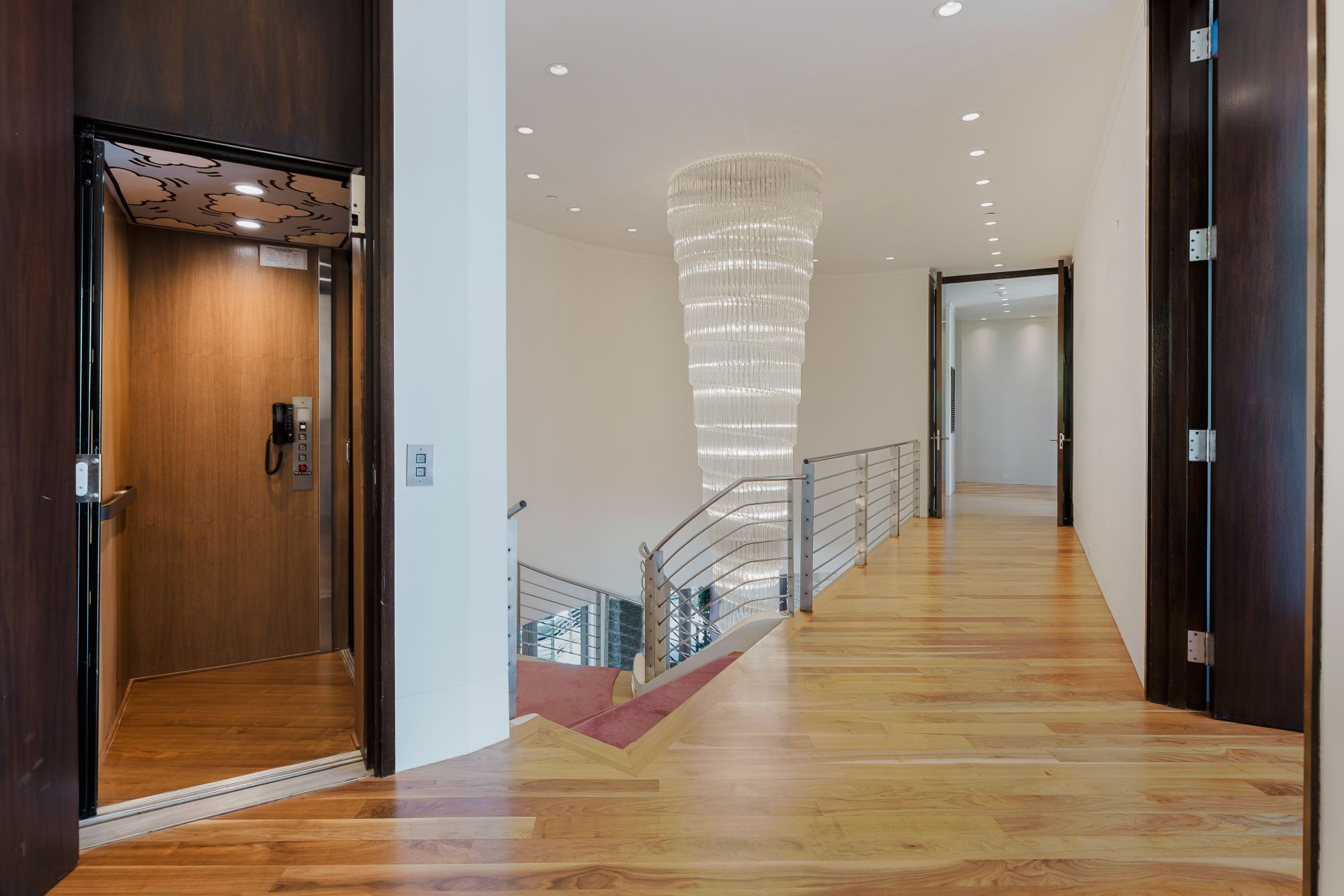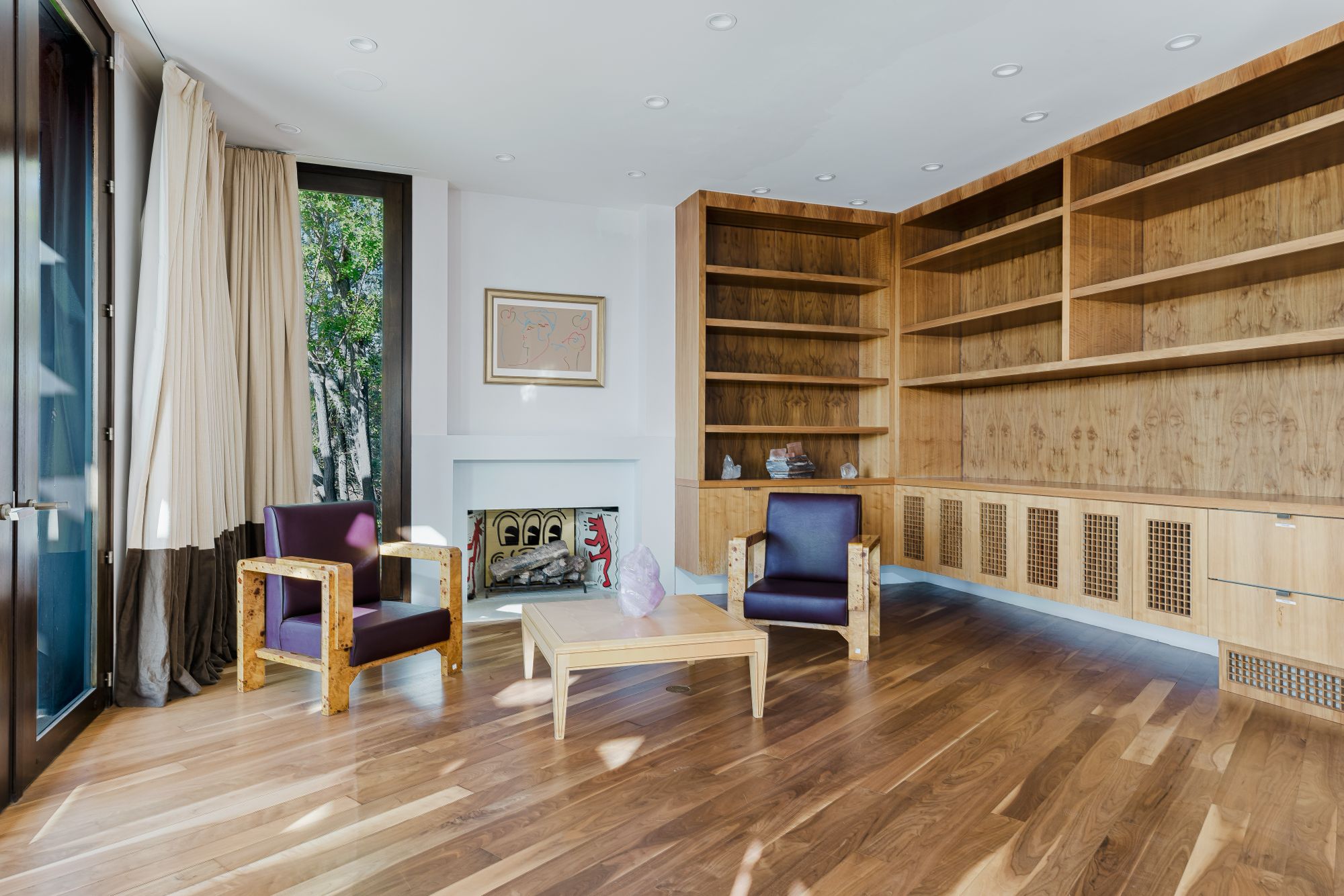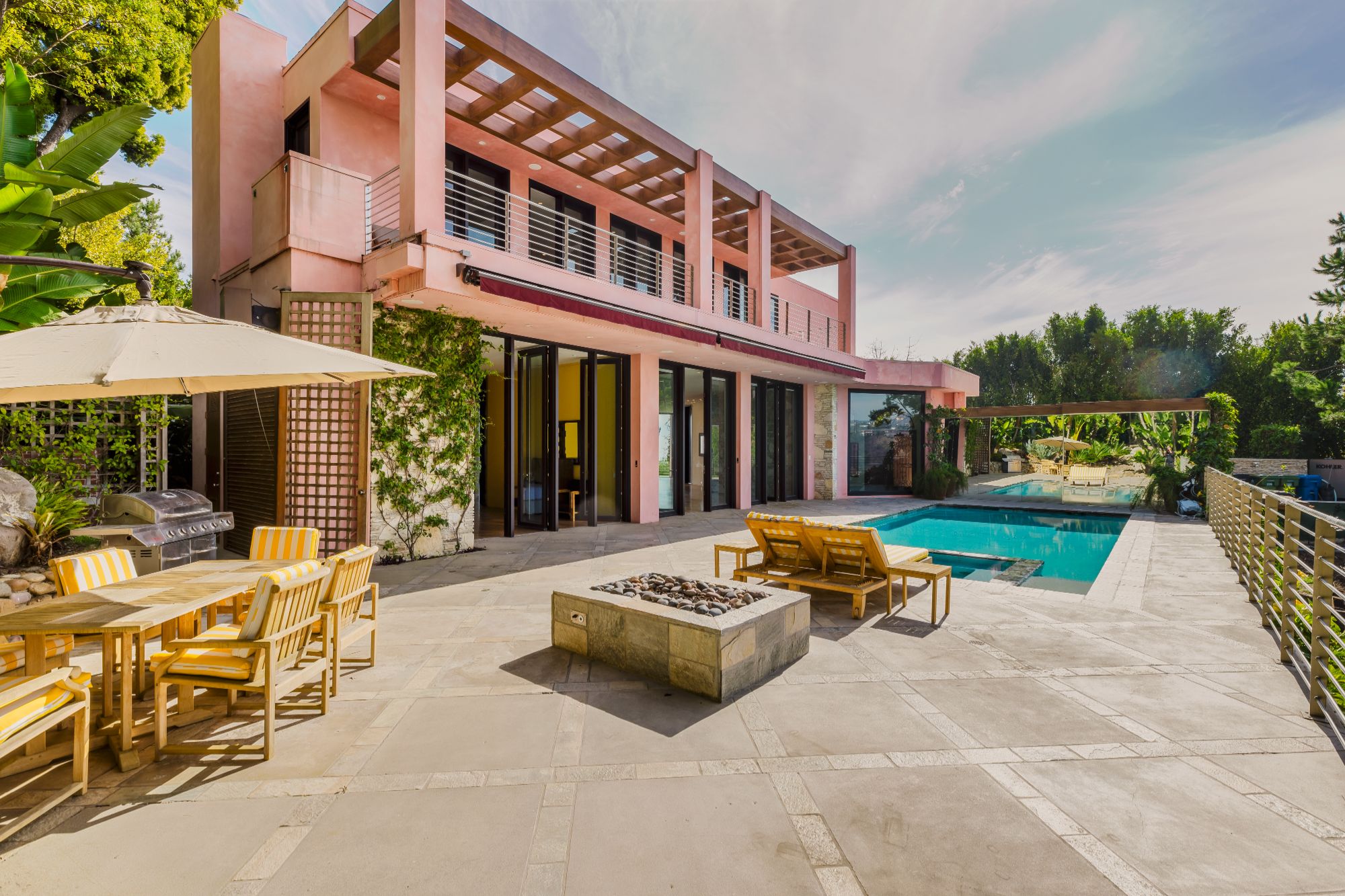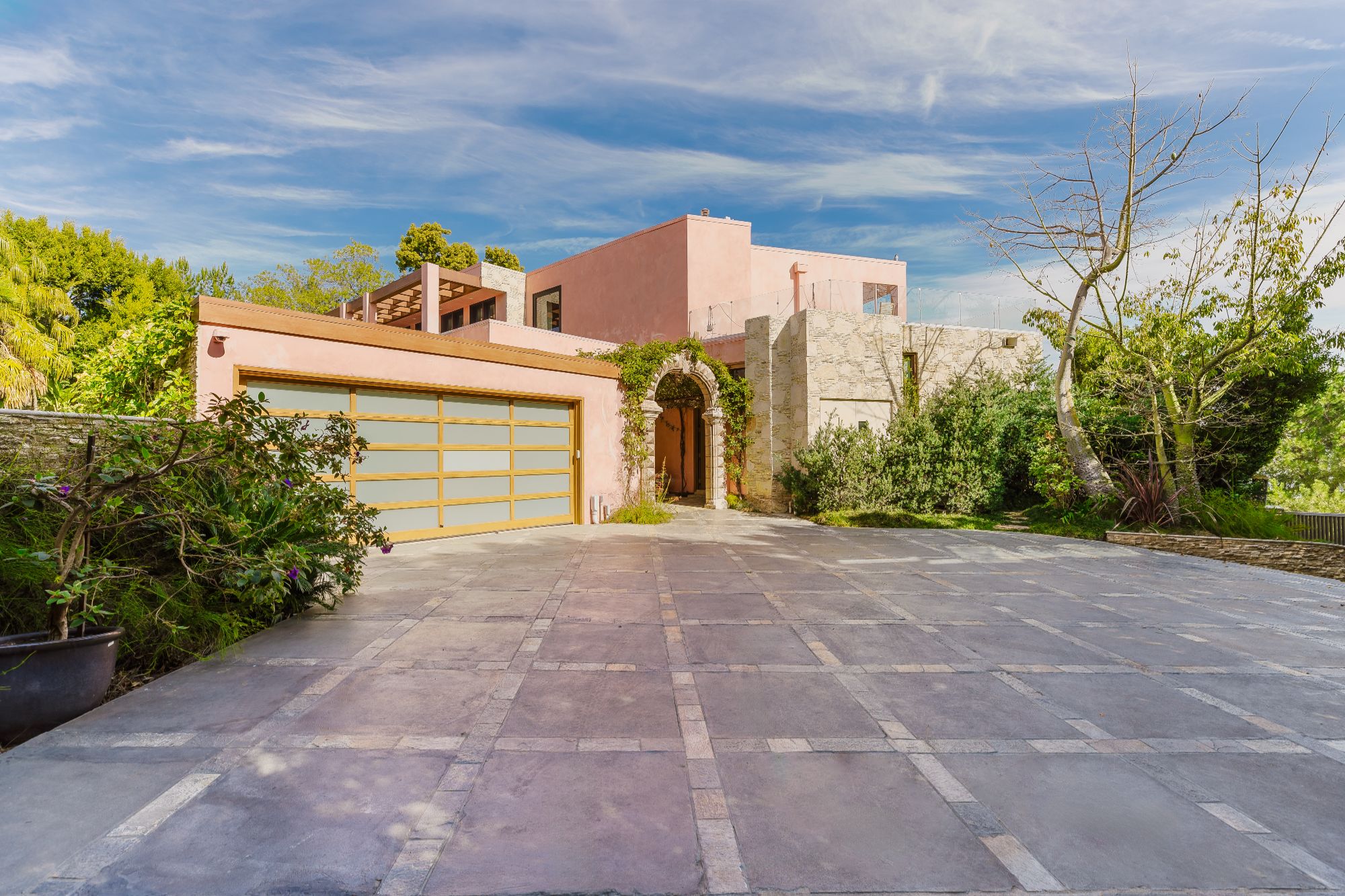 1111 Bel Air Place is an architectural masterpiece designed by the acclaimed Gus Duffy. Perched atop a private, gated cul-de-sac, spanning 6,446 square feet on an expansive 38,782-square-foot lot, this exceptional residence commands breathtaking panoramic views stretching from the canyons to the city skyline and Catalina Island beyond. Designed with soaring 10- to 12-foot ceilings and expansive walls of mahogany-framed glass, the home seamlessly integrates its surroundings while maintaining a striking sense of scale and openness. The main level features an opulent chef's kitchen with top-tier appliances, an elegant dining room, and a spacious family room, all opening to a front-facing balcony. Two en-suite bedrooms, a guest/maid's quarters, and a laundry room complete this level. A sculptural staircase leads to the upper floor, where the primary suite offers a private retreat with a sitting area, fireplace, dual walk-in closets, and two spa-like bathrooms, each with a walk-in shower and access to a rear-facing balcony with dramatic downtown views. An additional en-suite bedroom completes the second level. The outdoor spaces are designed for both serenity and entertaining, featuring a heated pool with an automated canopy, spa, waterfall, gas fire pit, and an outdoor kitchen with a built-in BBQ and pizza oven. Surrounded by lush landscaping, mature fruit trees, and vegetable gardens, this secluded oasis is both tranquil and self-sustaining. Additional amenities include an elevator, a state-of-the-art smart home system, surround sound, recessed lighting, a backup generator, a central vacuum system, and a secured stainless steel entry gate. A spacious four-car garage provides ample parking. A rare offering in one of the world's most iconic neighborhoods, 1111 Bel Air Place is a statement of refined living, where striking architecture and unrivaled views converge in perfect harmony.