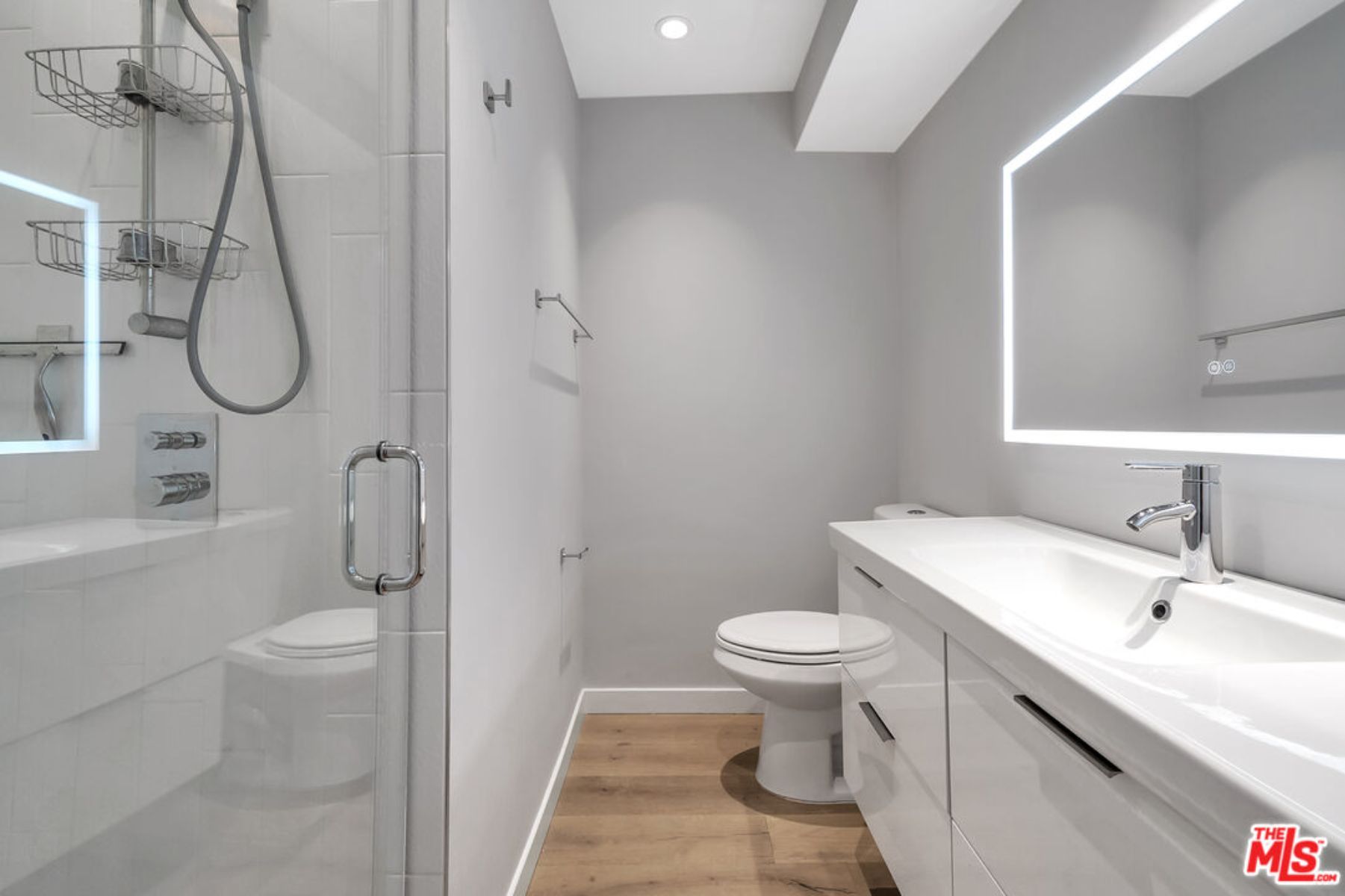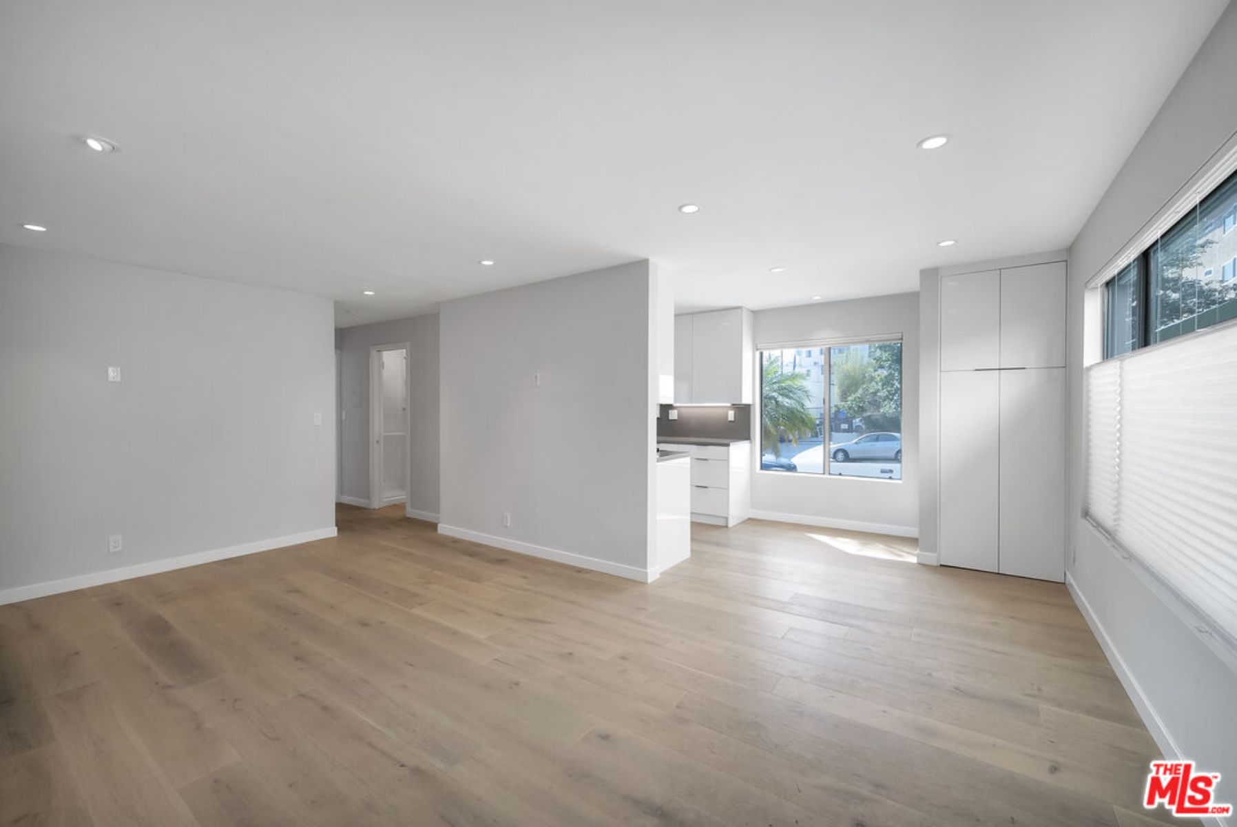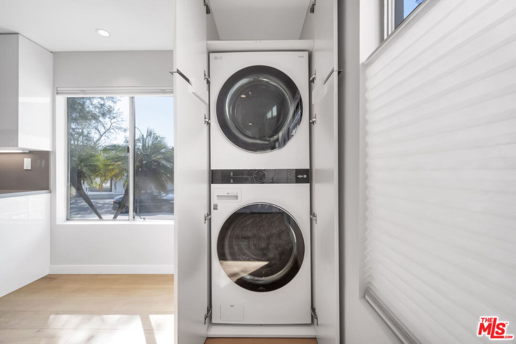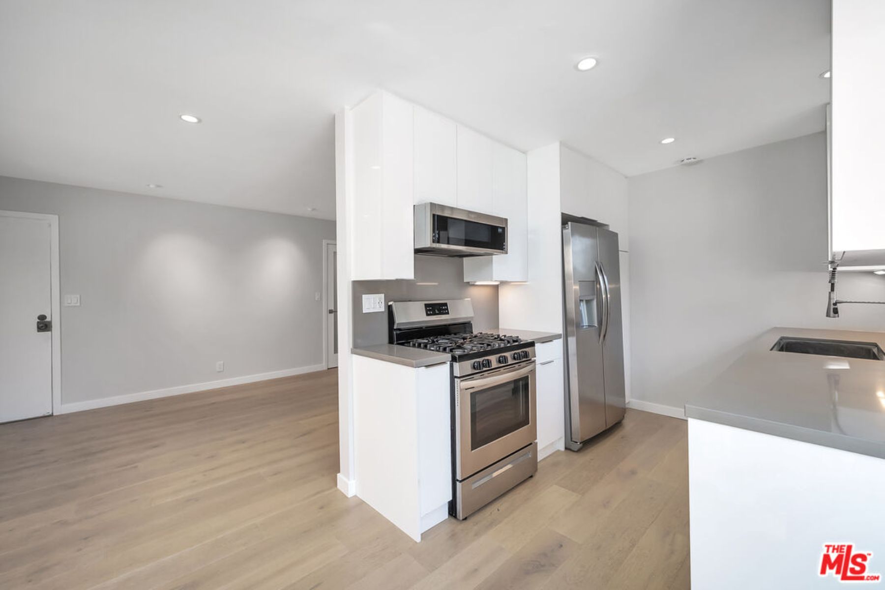 Designer 2 bedroom 2 full baths with washer & dryer in one of West Hollywood's prime most sought-after neighborhoods. Short term lease available. New remodel with hardwood floors, recessed lighting and solid core opaque glass panel doors for a modern element. Front west facing end unit flooded with natural light. Windows on three sides providing great cross ventilation and light exposure. Galley kitchen with new white lacquer cabinets, quartz countertop and backsplash. Gas stove and microwave. Ceiling fans in both bedrooms. New Wifi full size washer and dryer in unit. Both full bathrooms completely remodeled with under vanity lighting, one bathroom with full tub and other with shower only. Primary bath has double vanity. Gated parking for one car and permit street parking available. Extra storage over car in garage. Small 8 unit gated secured complex. Just a few steps to world famous restaurants, shops and nightlife on Santa Monica, La Cienega and Sunset Boulevard. Walker's paradise 94/100 Score.
