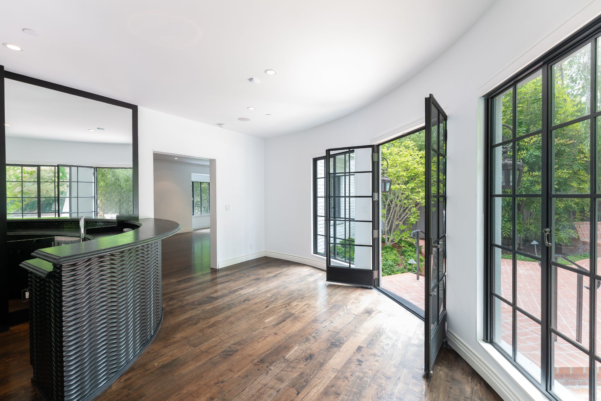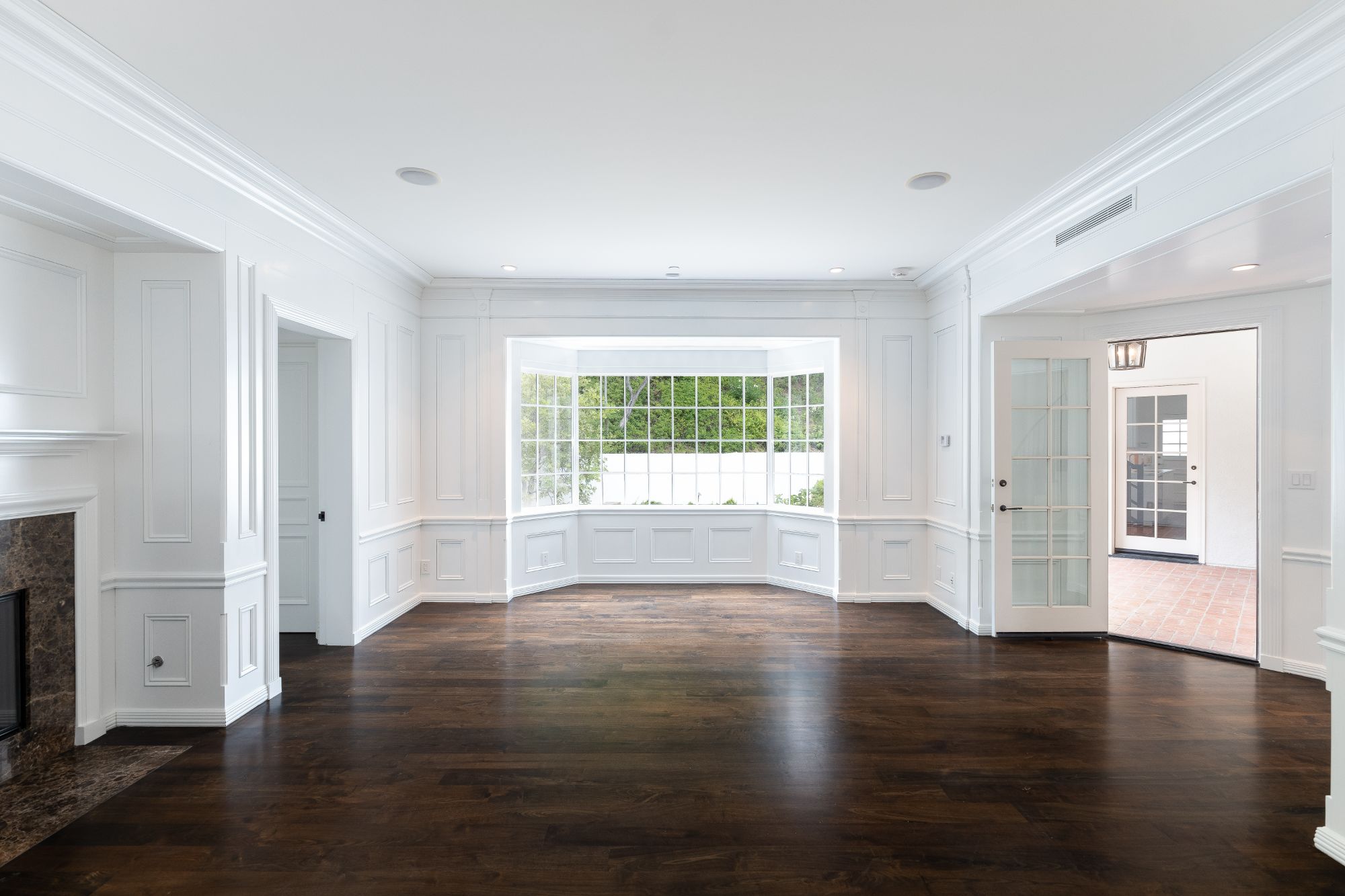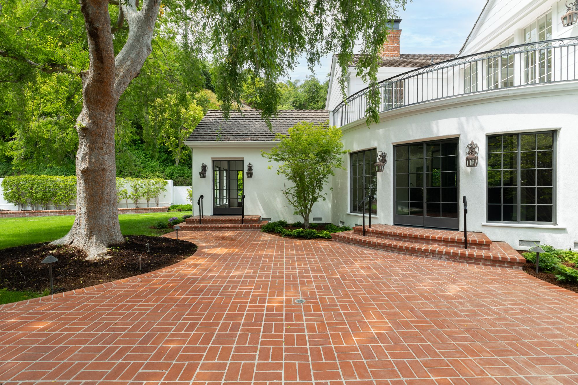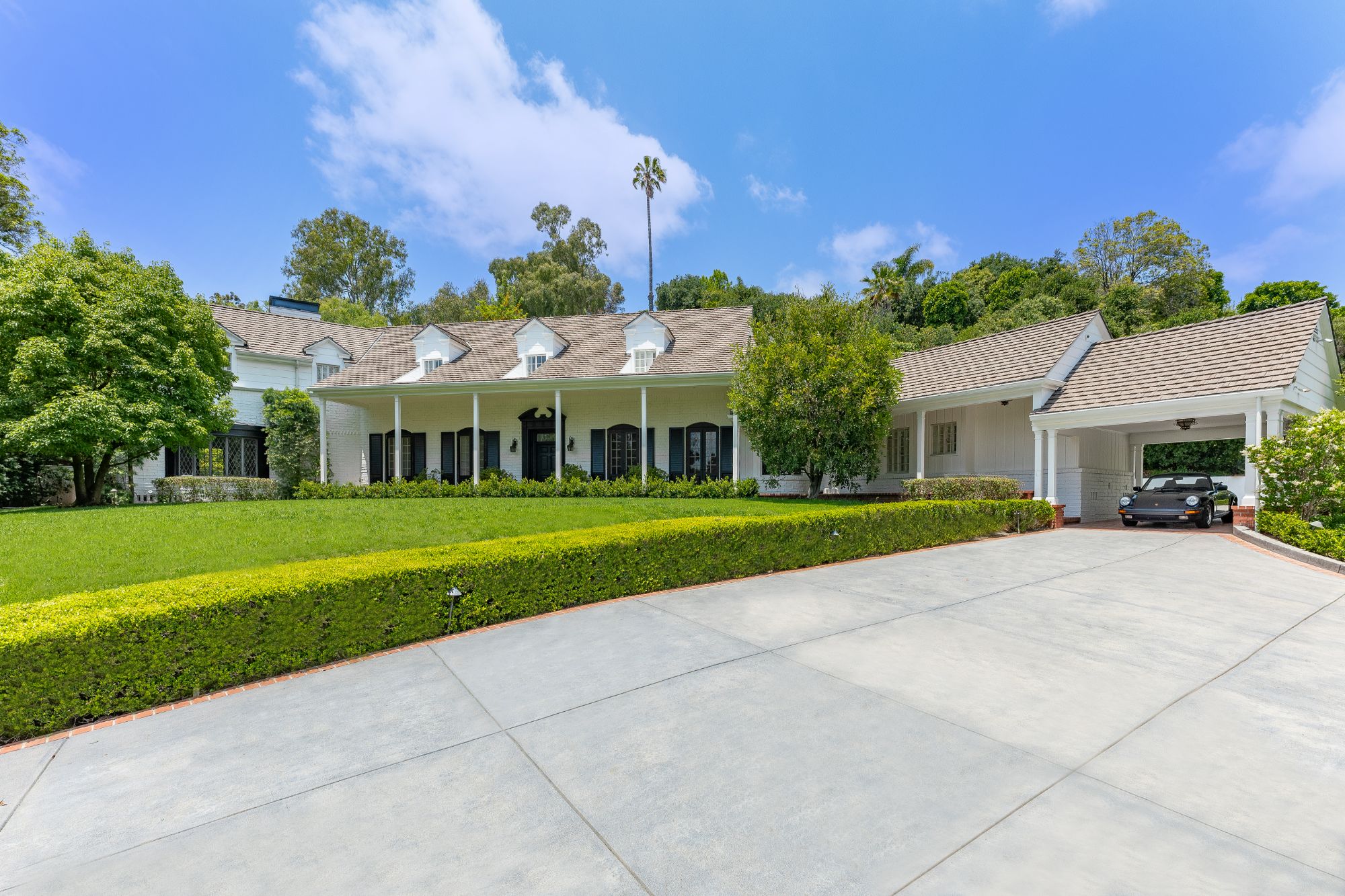 A stunning Beverly Hills estate on approx 1 acre lot, completely rebuilt from the ground up, taking inspiration from the owners original 1930s C. S. Arganbright home. Arrive to a large motor court that is set beside a large grassy front lawn. Original features including the home's front door, numerous bricks, and millwork details were used in the new build to retain the historic charm, while the latest and greatest amenities were added for modern living. Beautiful details and finishes throughout the home include wide-plank hardwood floors, a double-height entry hall with a sweeping curved staircase, high ceilings, and gorgeous woodwork. The rooms are spacious and light-filled and create a warm and welcoming atmosphere. Primary suite offers fireplace, walk-in closet, and private balcony overlooking the backyard. French door on main level open to a expansive backyard with spacious patio with fire pit, multiple seating areas, flat grassy lawn, and unique curved pool with cabana. Set in prime Beverly Hills, this rare estate seamlessly blends traditional style with the ultimate modern comforts and is perfect for indoor/outdoor living and entertaining.