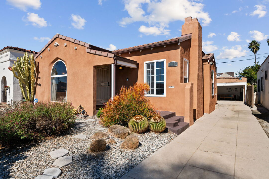 PRISTINE SPANISH GEM. Experience the perfect blend of modern living and historic charm in this remodeled 1929 Spanish jewel. Featuring 2 bedrooms, 1 bath, a versatile den, and a cozy fireplace, this home is designed for comfort. No detail has been overlooked. The fully equipped kitchen and in-unit washer and dryer offer convenience, while the large detached 2-car garage, basement, and sunny backyard provide ample space for entertainment and storage. Conveniently located near shopping, banking, worship, and dining, and easy access to public transportation and the 110 Fwy. The Vermont Knolls Historic District is significant as a large, intact concentration of Period Revival (predominantly Spanish Colonial Revival) houses and as a subdivision representing the planning practices of noted developer Walter H. Leimert.