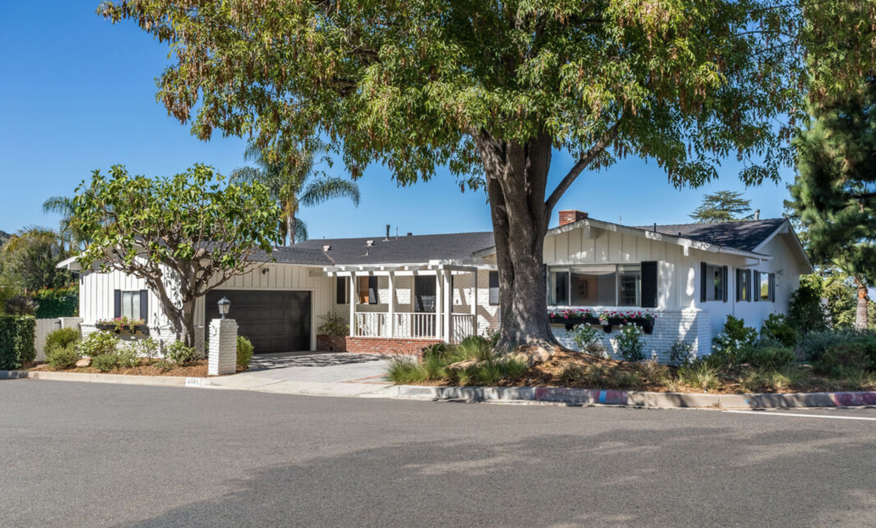 Stylish and sprawling 60's Ranch on one level, high in the Studio City Hills. Adjacent to Wooded hiking trails, yet close to the Hip shops and eateries of Ventura Blvd. Carpenter Community Charter. There are 4 bedrooms, 3 on one side of the house, and a guest Suite on the other. United by a Comfy family room with built-in Bar between. The glorious Primary suite has 3 large wardrobes and a delicious bath with Sunken tub, granite counters, a sit down vanity and double sinks. And, yet another closet. Elegant dark Chocolate wood floors throughout. The country kitchen has a Cozy breakfast area with mountain Views. And, there's also a Formal dining room. A sexy pool and spa have been remodeled with new equipment, replete with a sunken bbq pit and swim up Eating Shelf. All floating peacefully in the Hills, at the top of the Donas, as close to the Sunset Strip as to Ventura Blvd. Yet a million miles away.
