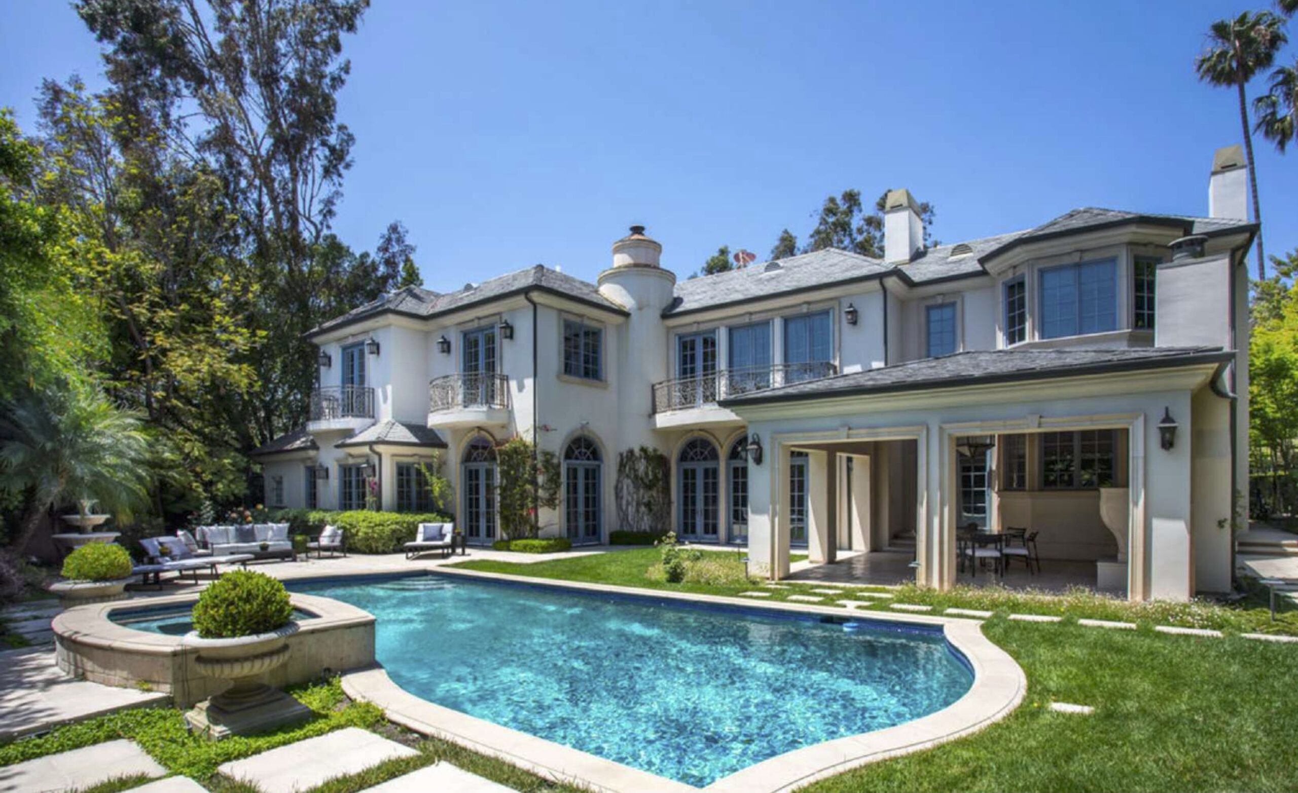 Situated in the prestigious estate section of Beverly Hills north of Sunset Boulevard, this stately European-inspired Traditional offers over 8,000 square feet of living space on nearly half an acre of land. With 7 bedrooms and 10 bathrooms, the home is thoughtfully designed for both everyday living and grand entertaining, blending timeless design with exceptional scale. You enter into a dramatic double-height entry, crowned by a soaring skylight which floods the home with natural light and sets the tone for the refined interiors beyond. The main level features a handsome library with rich millwork, expansive formal and informal living rooms that open to the beautifully landscaped yard, pool, outdoor living room, and a spacious family room adjacent to the chef's kitchen, outfitted with top-of-the-line appliances. Also on the main level are two guest bedrooms, a maid's room, and an oversized gym with abundant skylights and a large steam room. Upstairs, the generous primary suite includes a massive walk-in closet and a luxurious bath where the soaking tub is perfectly positioned to capture glistening views of the Century City skyline. Three additional family bedrooms complete the upper level, each with en suite baths and walk-in closets. Additional highlights include a three-car garage, large motor court, and elegant architectural details throughout. This is the estate you have been waiting for!
