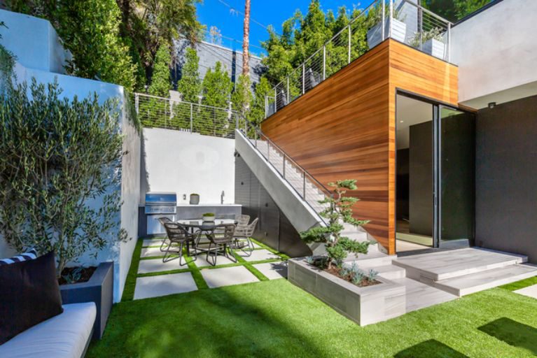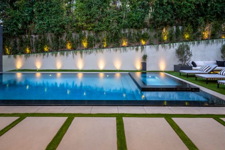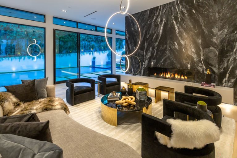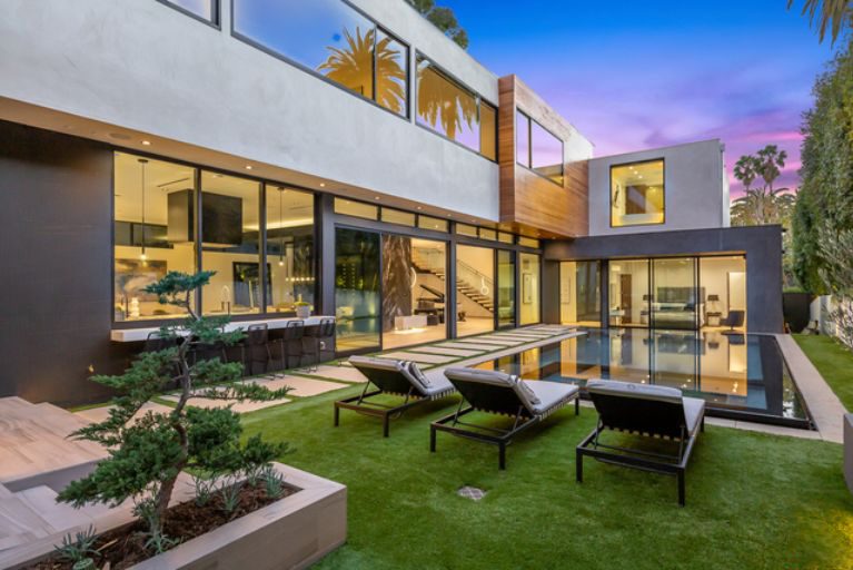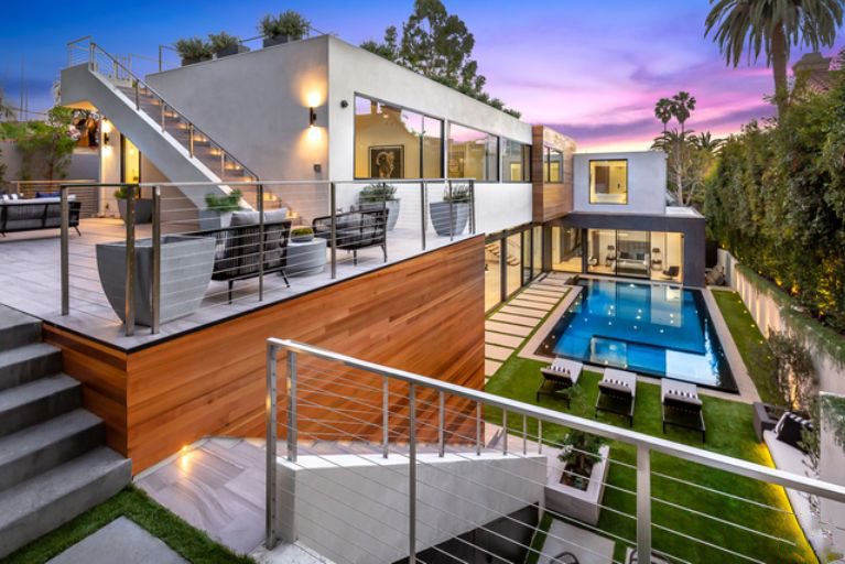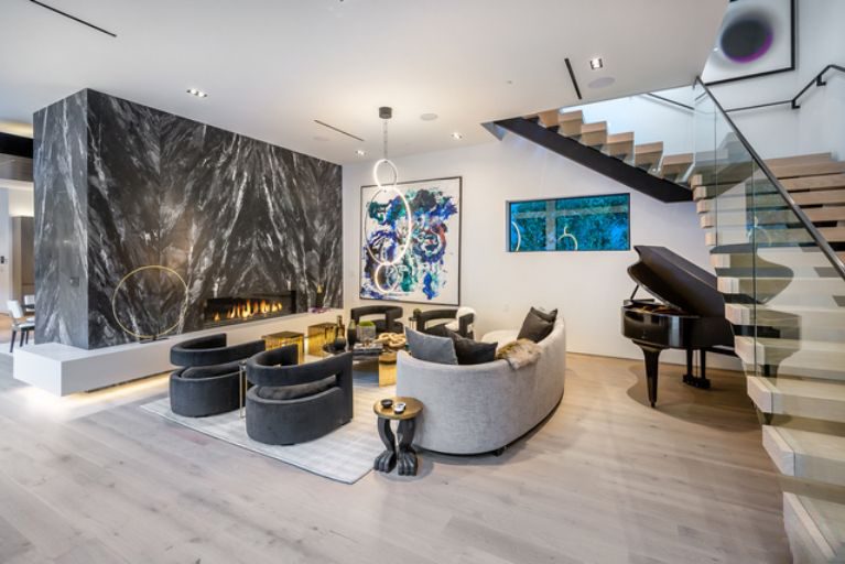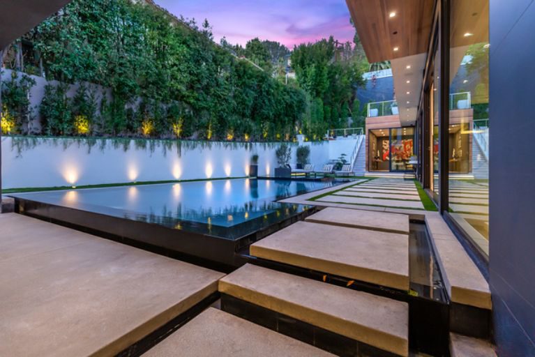Just above Sunset, in the exclusive Lower Bird Streets, rises this remarkable architectural masterpiece, a symphony of light, water, glass, & Italian stone. As you enter the great room, you are greeted with a cascading zero edge pool, 12' floor to ceiling glass doors, & black Italian marble, all perfectly balanced w/ warm European oak floors. The all Miele kitchen is an entertainer's fantasy, w/ double ovens, espresso bar, & formal dining w/temp controlled wine display. A floating staircase leads to the remarkable 2nd floor featuring an epic master suite w/ its own living room, showroom closet, & wrap around balcony. The spa-like master bath showcases Brizo fixtures, dual showers, dual toilets, heated floors, & a soaker tub overlooking your entire domain. Finally, ascend to the 1,000 SF roof deck where guests can lounge at the built-in bar, or soak in jacuzzi jets, all while enjoying a sea of lights from Downtown to WeHo. Fully automated, C4 smart home, leaves no detail untouched.