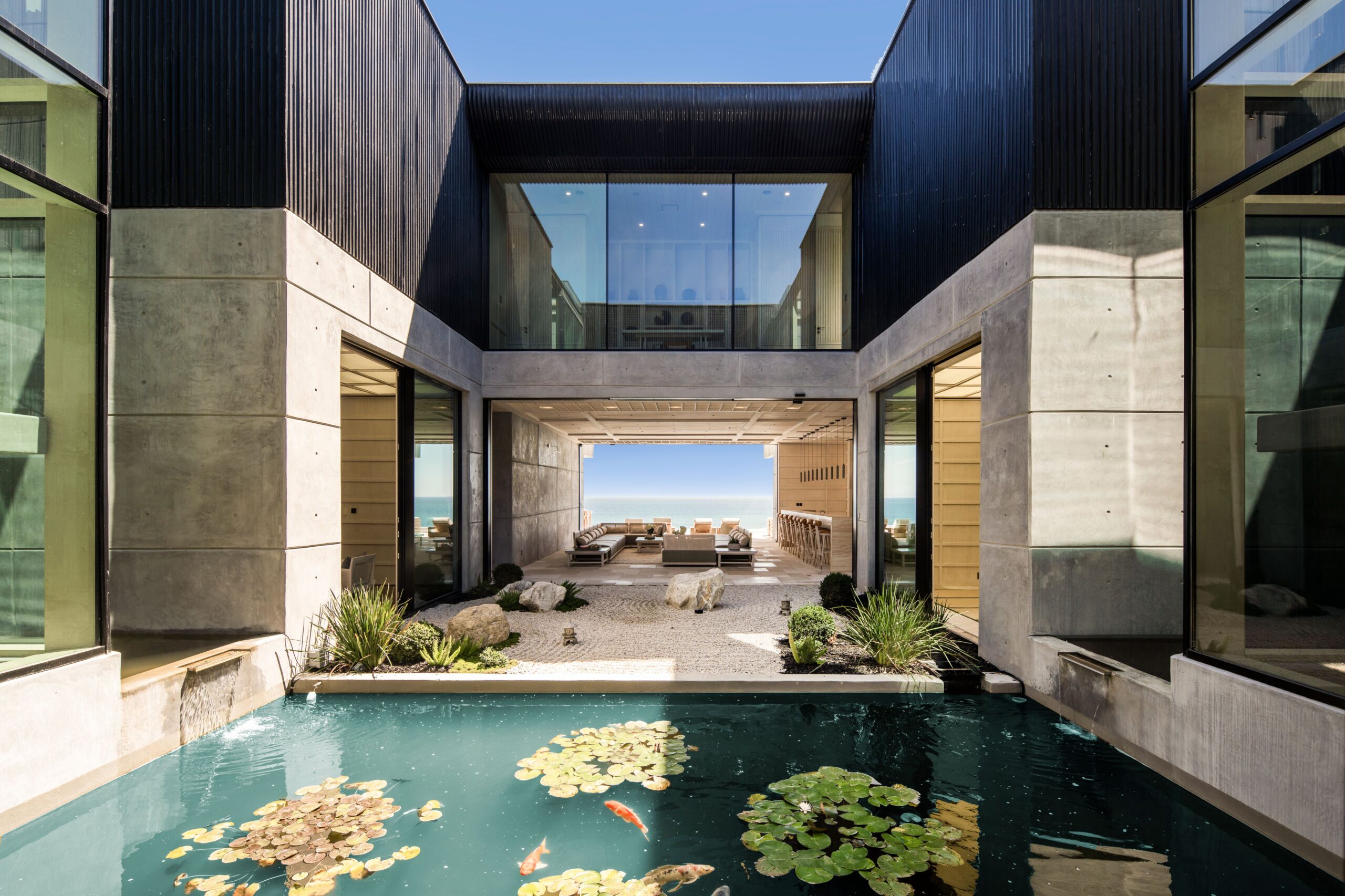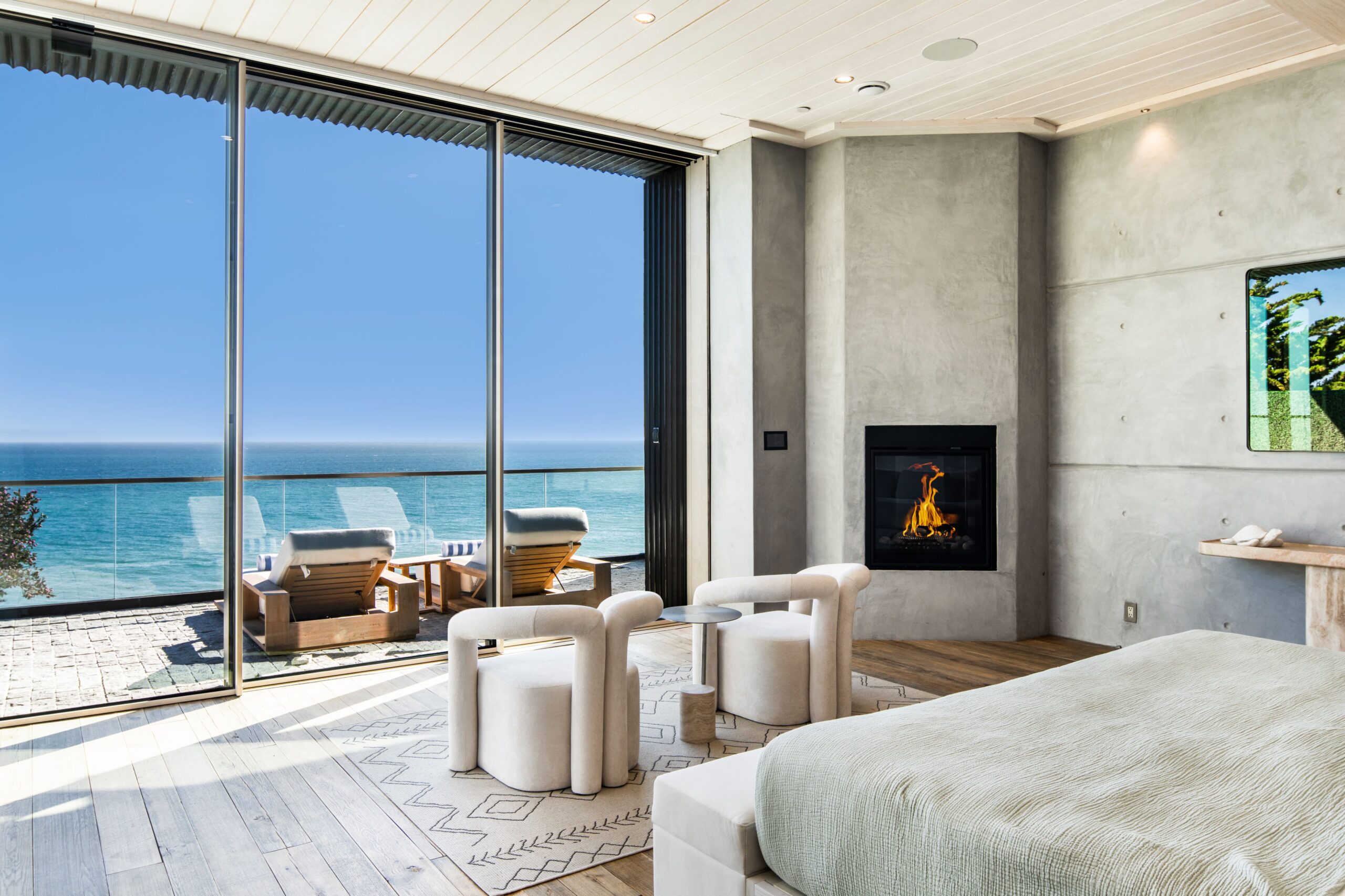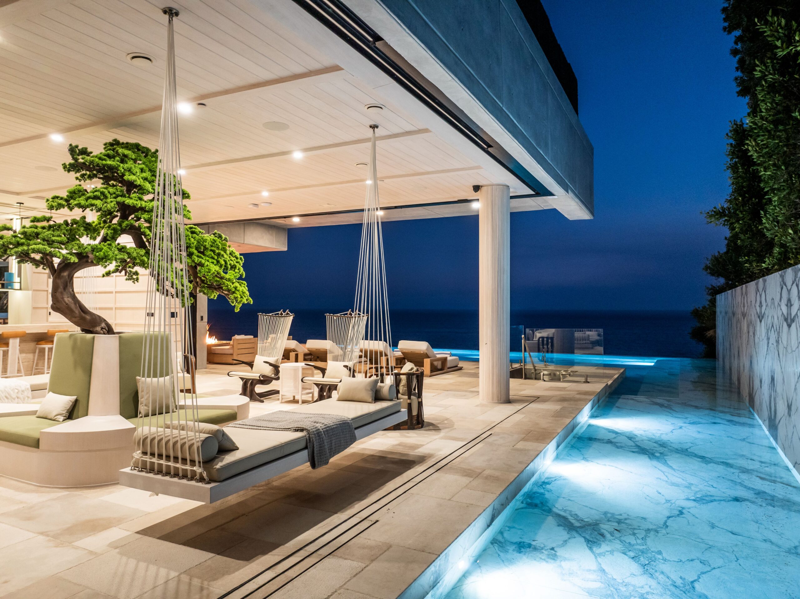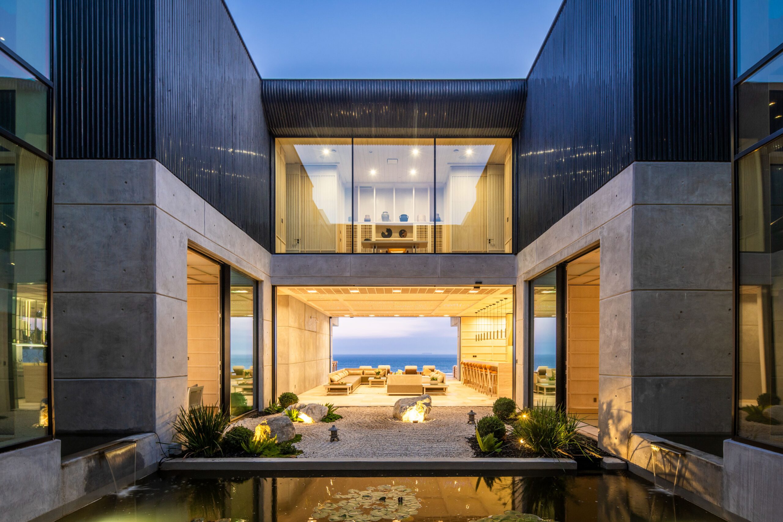 There are homes you live in and there are homes that live forever. Welcome to Simka Malibu - an awe-inspiring creation by "God's Architect" Kris Halliday. Thirty thousand square feet of architectural permanence rising from the bluffs of the Pacific, conceived as both fortress and sanctuary. A location chosen with the foresight of a thousand years thoughtfully positioned, engineered, and constructed with resilience in mind - designed to meet the challenges of fire, earthquake, tsunami, mudslide, and storm erosion. Built with over 7,300 cubic yards of super-reinforced concrete, Simka is a monument to permanence. Every line, every proportion, every material was shaped by one mind, one vision, one creation. The result is not just architecture, but a living work of art. Defined by bold lines of concrete and glass, softened by sculptural landscaping and curated natural stones from around the world, the estate embodies GA's philosophy of Brutality Vitality - where strength is balanced by serenity, and concrete itself is reimagined into a velvet-like presence. Entry unfolds through a secondary gated entry into a tranquil zen courtyard and stone pathway, revealing interiors where floor-to-ceiling glass dissolves the boundary between home and horizon. Simka is a sanctuary - built on Divine Masculinity, created to protect, nurture, and heal. Life here unfolds through sublime experiences: a 176-foot multi-level vein-matched stone pool with swim-up bar, sunken lounge, and dramatic viewing window merging seamlessly with the Pacific horizon. A world-class theater with a 235-inch LED screen, Dolby Atmos sound, and Atelier Italian leather recliners rivals the world's finest private cinemas. A Japanese tea room - a sanctuary within the sanctuary - offers profound quiet. The full commercial kitchen easily supports gourmet cooking for up to 200 guests, complemented by terraces for al fresco dining, shaded loggias, and an outdoor kitchen for endless gatherings. Throughout, water and nature flow: Japanese gardens, waterfalls, meditation courts, koi ponds, and pathways that weave stillness into daily life. Swinging daybeds, a circular fire lounge, and open-air courtyards transform relaxation into ritual. For wellness and longevity, Simka offers a full spa, cold plunge, sauna, treatment rooms, and a state-of-the-art gym with underwater pool windows. A nightclub, private guest suites, and an underground 10-car garage complete the lifestyle offering. The 1,800 sq ft primary suite is a private sanctuary suspended above the waves, with its own hot tubs, fireplace lounge, and spa-inspired bath. Additional suites echo this intimacy, blending organic textures, curated furnishings, and panoramic ocean views. Every detail, down to marble-clad powder rooms designed as art, speaks to permanence and intention. With 10 bedrooms, 20 bathrooms, and seamless indoor-outdoor living, Simka is monumental yet intimate - enduring yet ethereal. Not built for a decade or a generation, but for centuries. Simka Malibu - architecture for eternity.