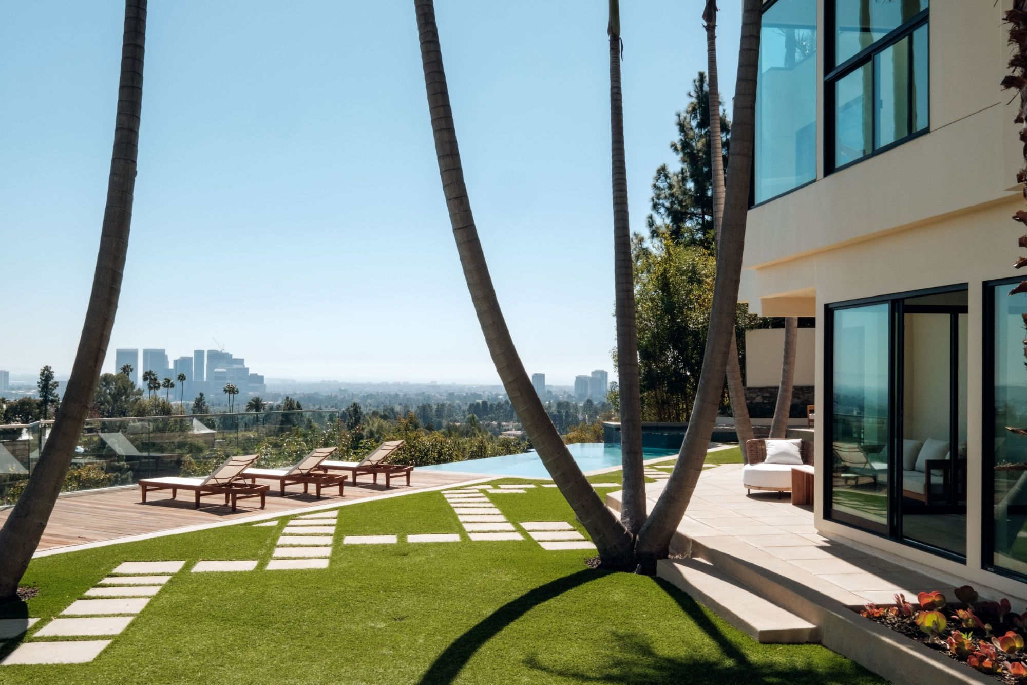 Introducing The Palm at Loma Linda -- an extraordinary sanctuary nestled on a quiet cul-de-sac in the heart of Beverly Hills Proper, where sweeping panoramic views and lush, resort-like grounds transport you to your very own Palm Springs-inspired oasis. Perched on over half an acre of land, this sophisticated contemporary estate captures breathtaking city to ocean vistas from every room, blending the serenity of a private retreat with the prestige of a coveted neighborhood surrounded by $40M+ estates, a true testament to its exceptional long term value. Designed for effortless indoor-outdoor living, this 5 bed/6 bath estate features an airy, open floor plan anchored by a striking central atrium that bathes the formal living spaces in natural light. The expansive living and dining areas flow seamlessly into a chef's kitchen featuring dual islands and top of the line appliances perfect for grand scale entertaining or intimate gatherings. Outdoors, a flat grassy yard, infinity-edge pool, spa, and outdoor kitchen are framed by uninterrupted views and mature palms, creating a setting that feels worlds away yet just minutes from the best of Beverly Hills. Whether you move right in or reimagine and elevate the estate further, The Palm on Loma Linda offers a rare opportunity to craft a dream compound in one of Beverly Hills' most private and sought after enclaves.
