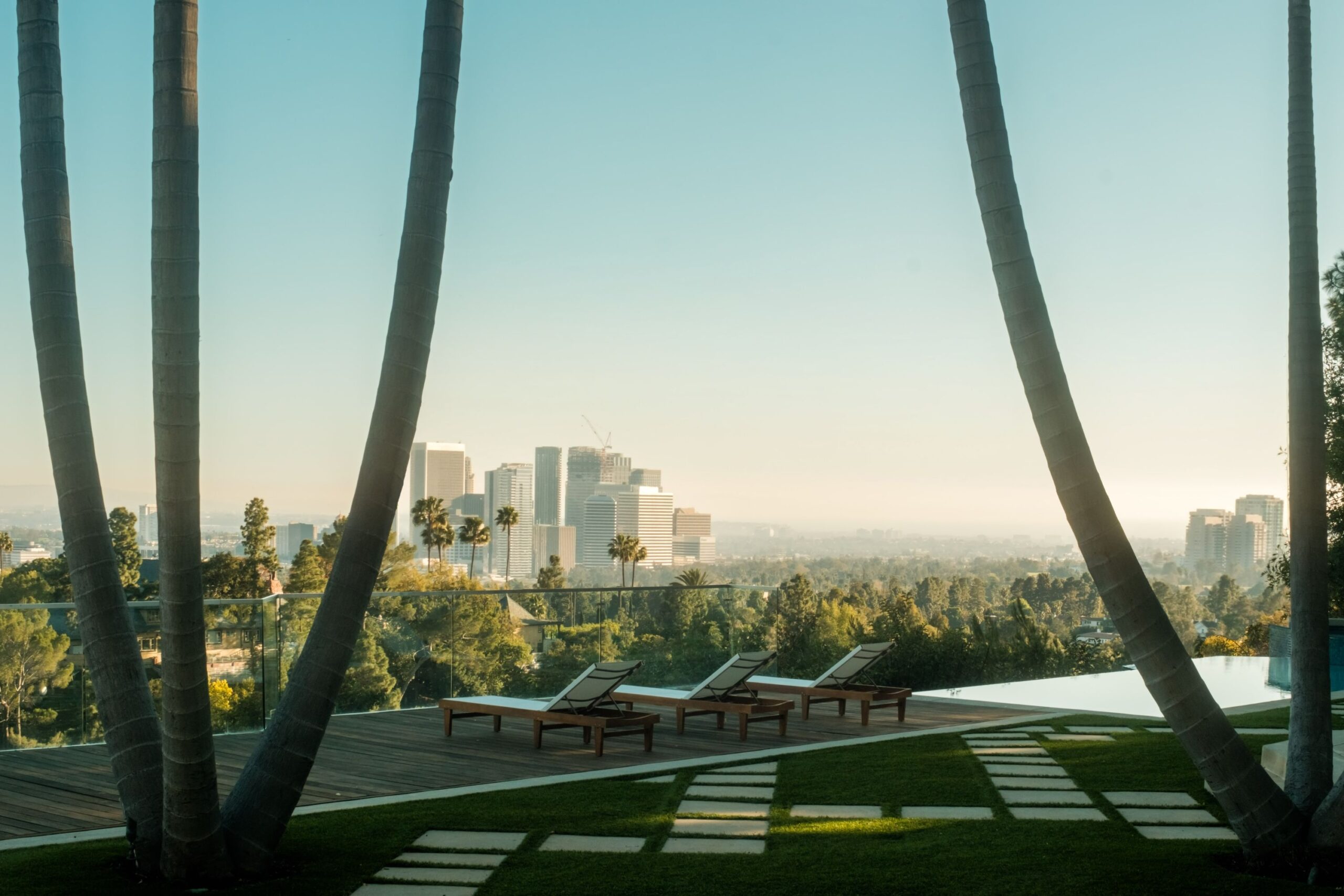 Introducing The Palm at Loma Linda -- an extraordinary sanctuary nestled on a quiet cul-de-sac in the heart of Beverly Hills Proper, where sweeping panoramic views and lush, resort-like grounds transport you to your very own Palm Springs-inspired oasis. Perched on over half an acre of land, this sophisticated contemporary estate captures breathtaking city to ocean vistas from every room, blending the serenity of a private retreat with the prestige of a coveted neighborhood surrounded by $40M+ estates, a true testament to its exceptional long term value. Designed for effortless indoor-outdoor living, this 5 bed/6 bath estate features an airy, open floor plan anchored by a striking central atrium that bathes the formal living spaces in natural light. The expansive living and dining areas flow seamlessly into a chef's kitchen featuring dual islands and top of the line appliances perfect for grand scale entertaining or intimate gatherings. Outdoors, a flat grassy yard, infinity-edge pool, spa, and outdoor kitchen are framed by uninterrupted views and mature palms, creating a setting that feels worlds away yet just minutes from the best of Beverly Hills. Whether you move right in or reimagine and elevate the estate further, The Palm on Loma Linda offers a rare opportunity to craft a dream compound in one of Beverly Hills' most private and sought after enclaves.