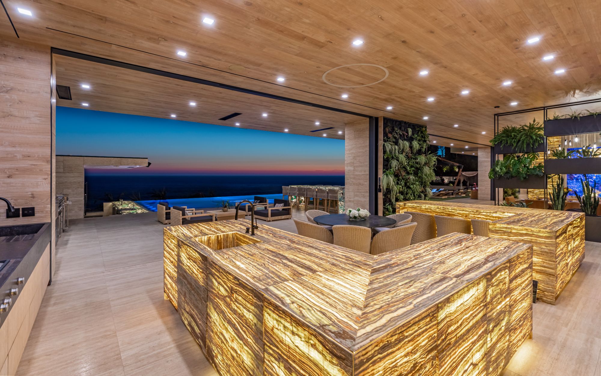 Set on over 1 acre, this Malibu Masterpiece boasts an impressive 95' tiled pool with panoramic, unobstructed views of the Pacific. Built in 2022, this magnificent compound sits at the end of a long-gated driveway for ultimate privacy. Every room will take your breath away! Automated floor-to-ceiling frameless glass pocket doors open to enjoy in the sweeping views and ocean breeze. Custom designed details throughout the home include hand-carved stone and wood walls throughout, a 2,000-gallon aquarium, backlit Onyx, live walls, and a koi pond. This home offers 6 BD, each with their own private outdoor terrace. Additional amenities include Dolby Atmos home theater, game room, piano, 2 interior bars, a swim-up bar, and a seating area with a firepit in the center of the pool. Two spacious 4-car garages with electric car charging and ample parking for guests. This is the perfect house to escape from the city, relax, and entertain. Conveniently located a few miles from OXR airport for those who prefer to fly private. Available for long or short term. Price varies depending on lease terms and seasons.