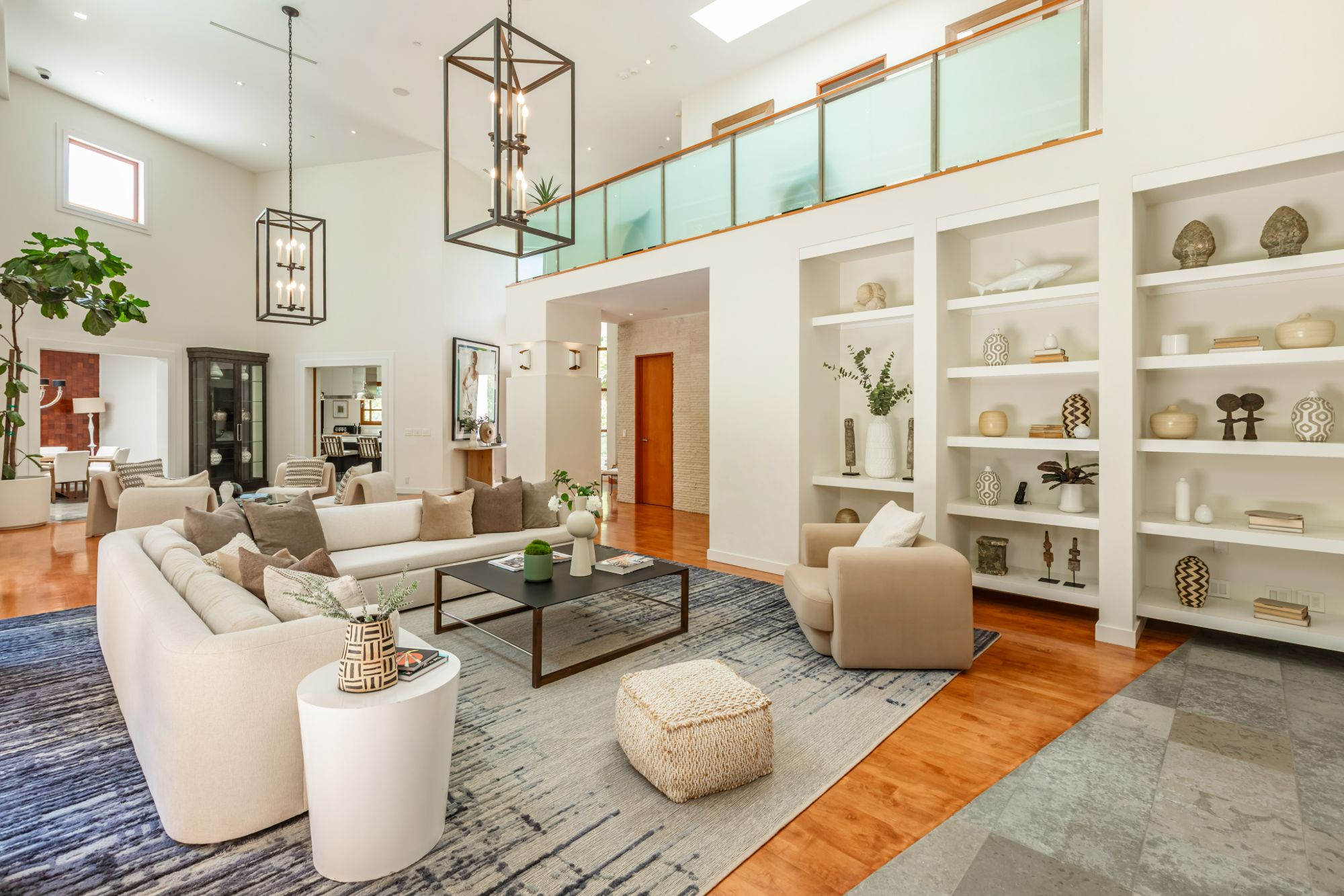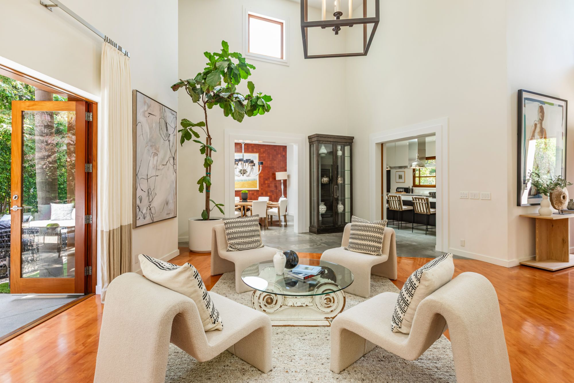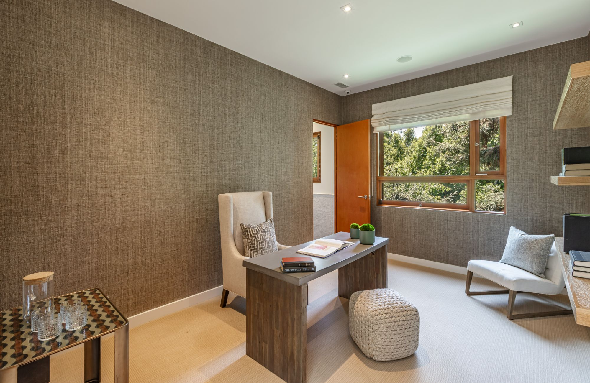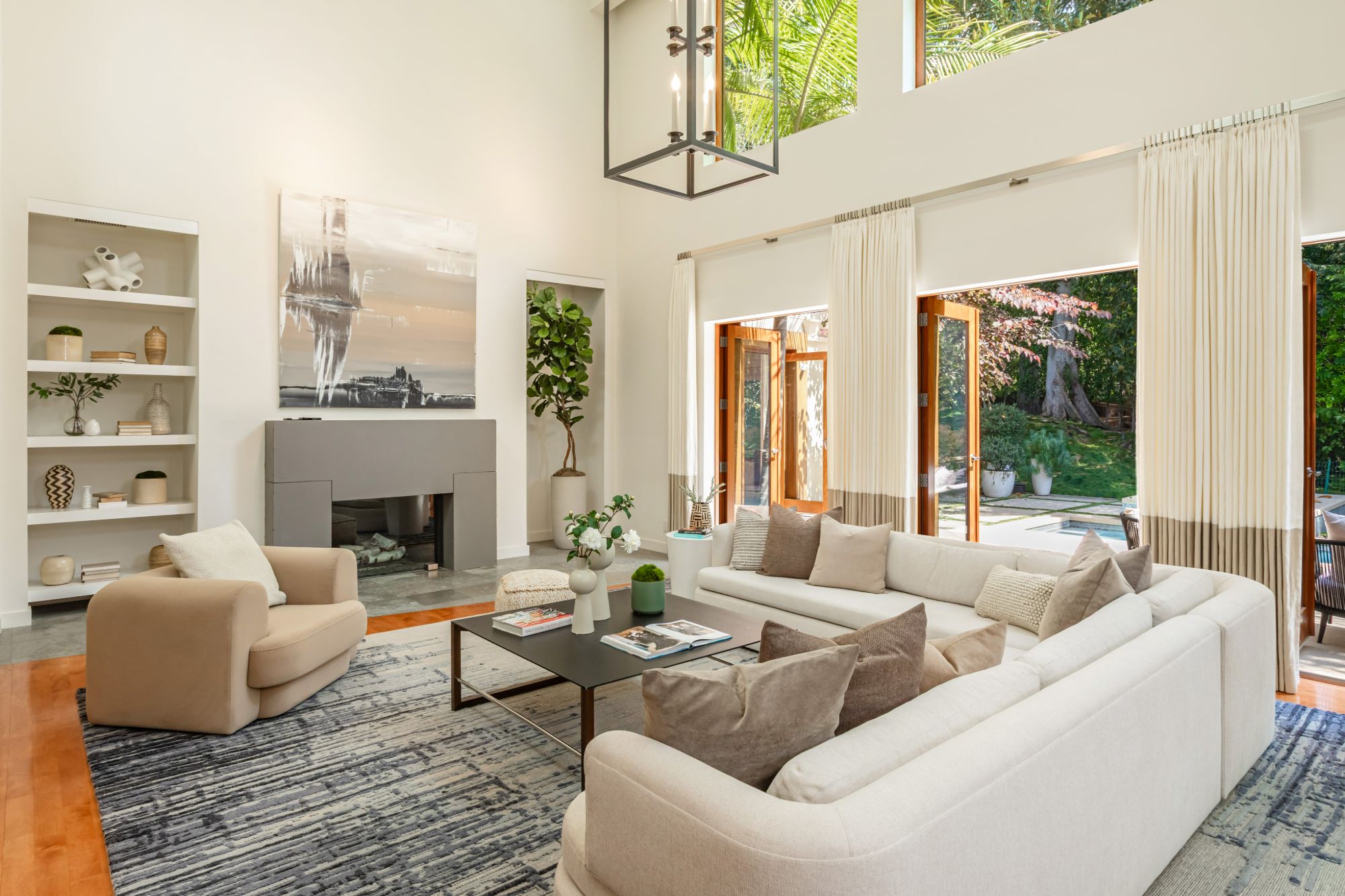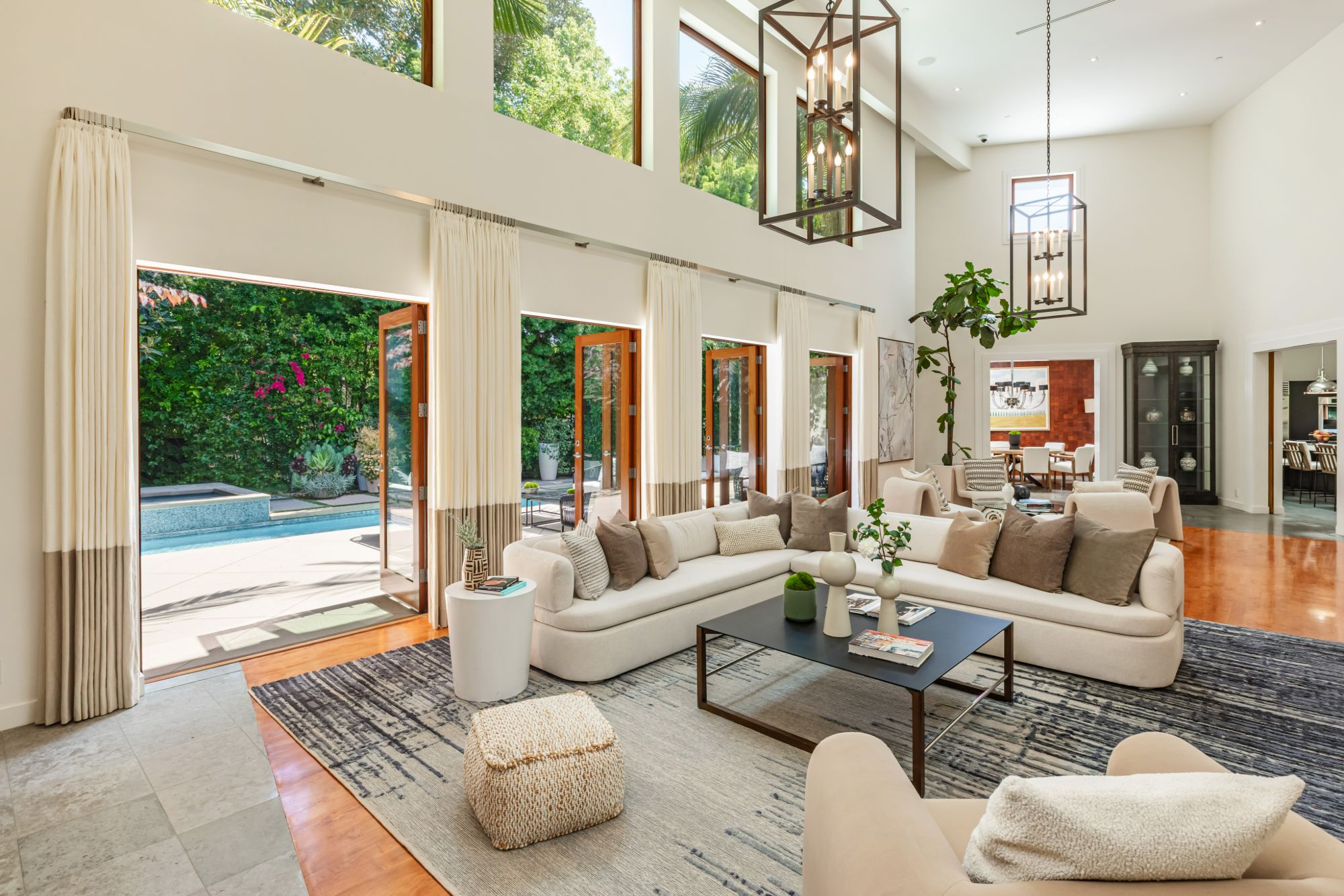 A contemporary estate nestled behind a long, gated driveway in prestigious Holmby Hills. This architectural home opens to a two-story living room with gallery lighting, skylights, and floor-to-ceiling windows framing lush, park-like grounds with pool, spa, and large deck on half an acre. The open floor plan seamlessly connects the dining room, family room, and sleek chef's kitchen with top-tier appliances. Upstairs, the primary suite offers a fireplace, a spacious balcony, a walk-in closet, and a spa-like bath. 5 bedrooms and 5.5 baths offer ample space for family and friends. Thoughtful details throughout include jade and Jerusalem stone, maple floors, and textured walls. House is equipped with a full-house generator, top of the line window break protection on all glass doors and windows, plus shutters that close at night. Large motor court and 3 car garage offer plenty of parking space. Ideally located near Harvard-Westlake Middle School, offering convenience and prestige. Also available for lease $49,500/month.
