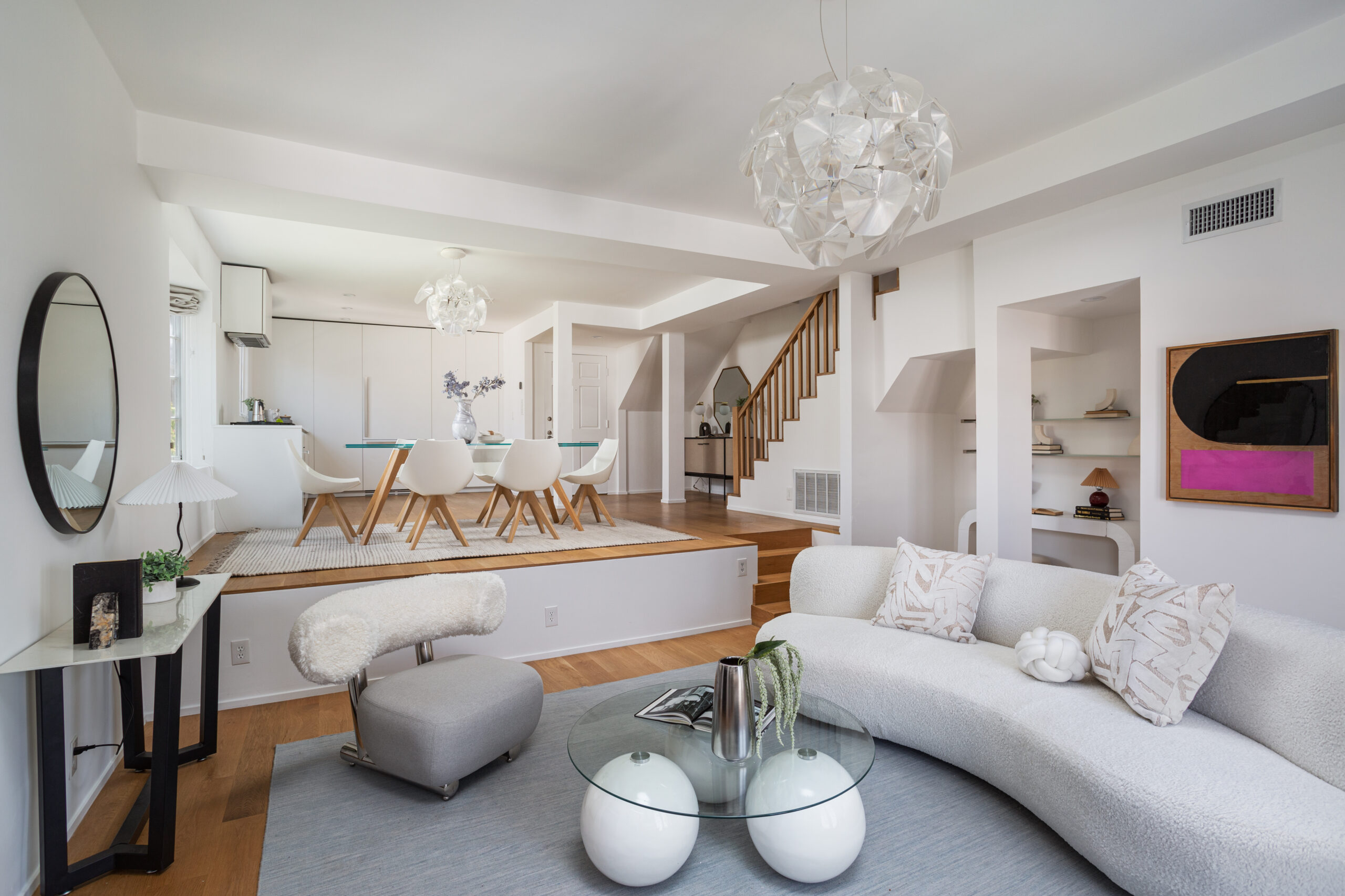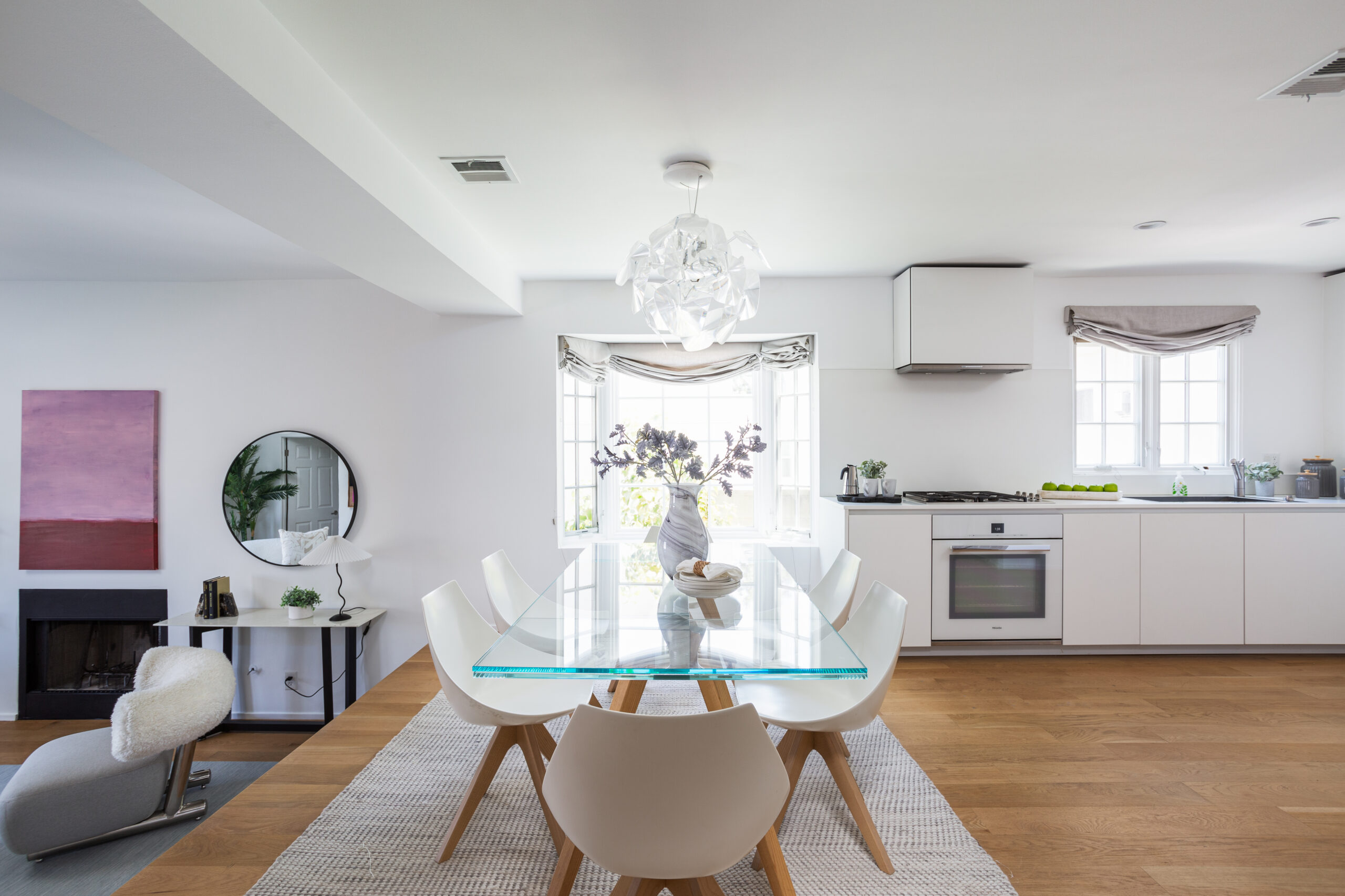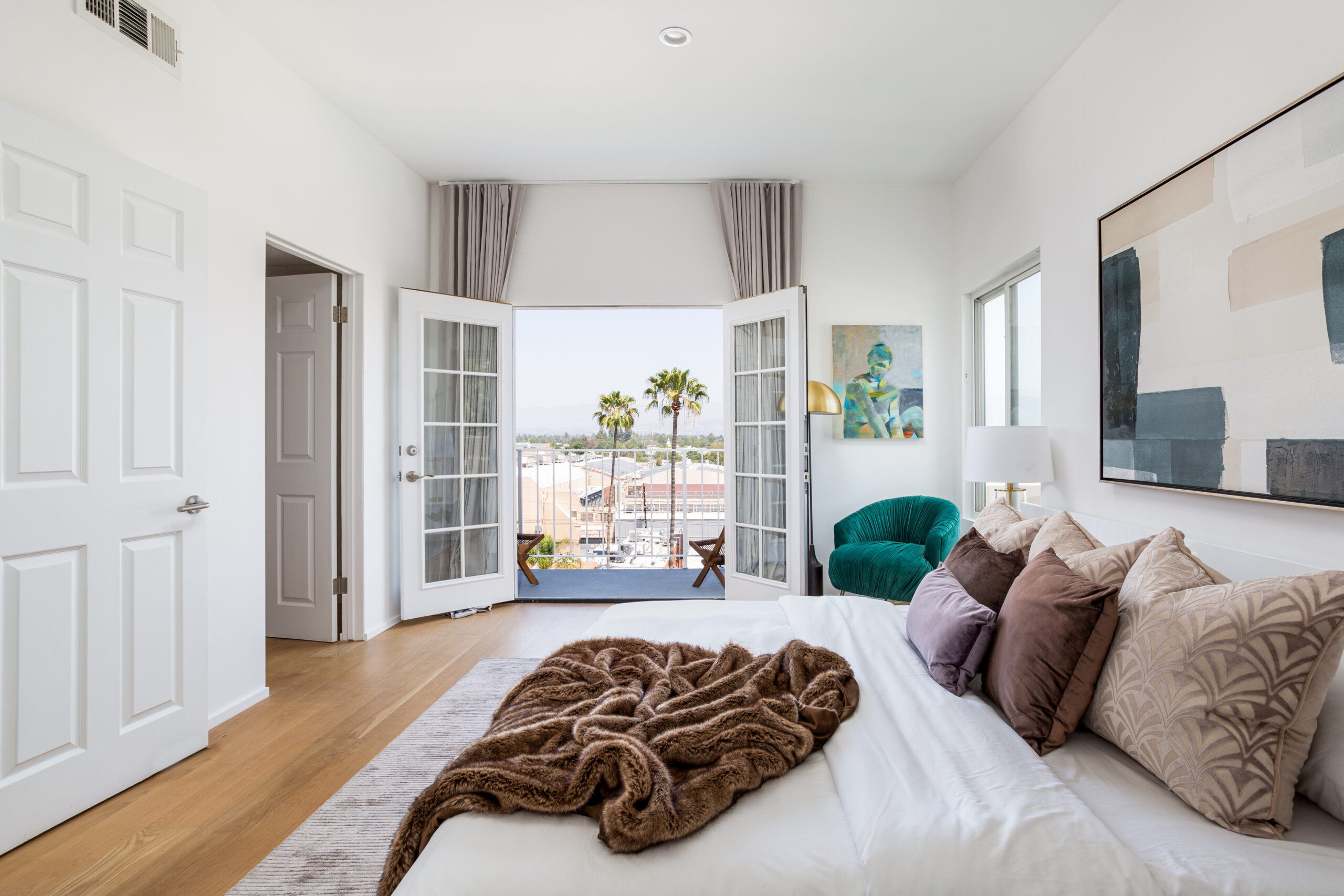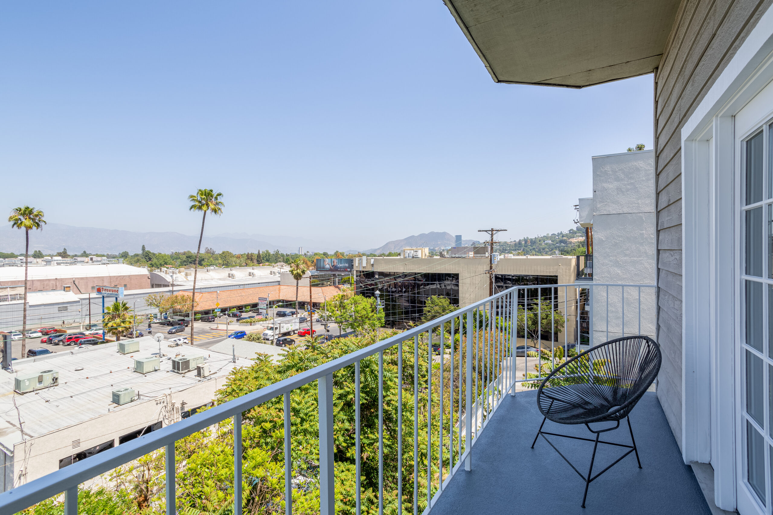 A pristine retreat in the heart of Studio City. Perched on the coveted south side of Ventura Blvd, this elegantly remodeled townhome offers breathtaking city and mountain views. Spanning two stories, it features two ensuite bedrooms, an additional half-bathroom, and private balconies on each level to take in the stunning vistas. Inside, soaring ceilings, select white oak hardwood floors, and a sleek fireplace create an inviting atmosphere. The open-concept kitchen is a masterpiece, outfitted with custom Boffi cabinetry and top-of-the-line Miele appliances. The primary suite boasts double doors, a spacious walk-in closet, a private balcony, and a spa-like bath with a luxurious tub/shower combo. The secondary suite offers its own ensuite bath, expansive windows, and abundant natural light. High-end finishes, including Anne Sacks tiles and modern Italian fixtures, elevate every space. Convenience meets sophistication with an in-unit washer/dryer, a rooftop deck, two tandem parking spaces in a gated subterranean garage, and a dedicated storage room. Situated in the sought-after Carpenter school district and just moments from Ventura Boulevard's premier dining, shopping, coffee spots, and farmers market, this home seamlessly blends tranquility with urban convenience.