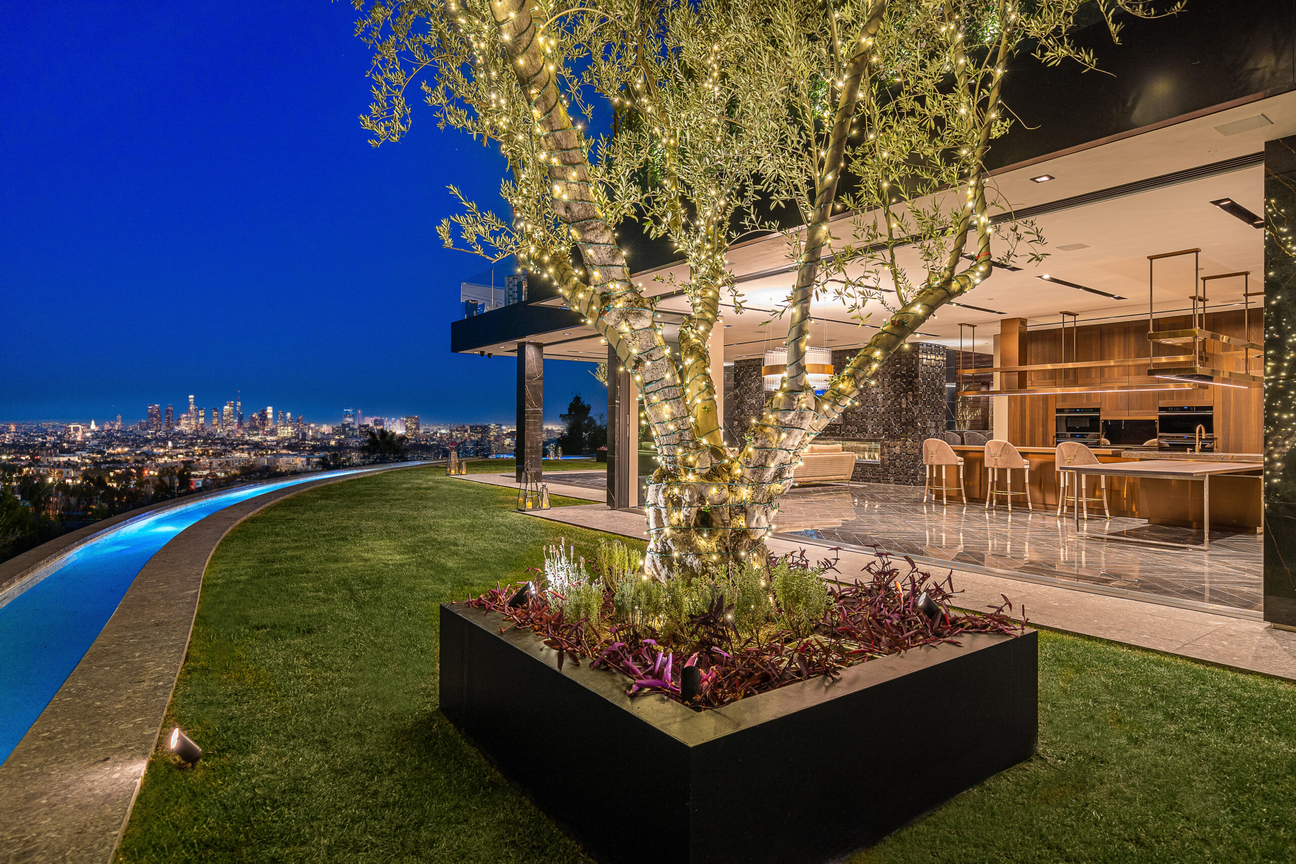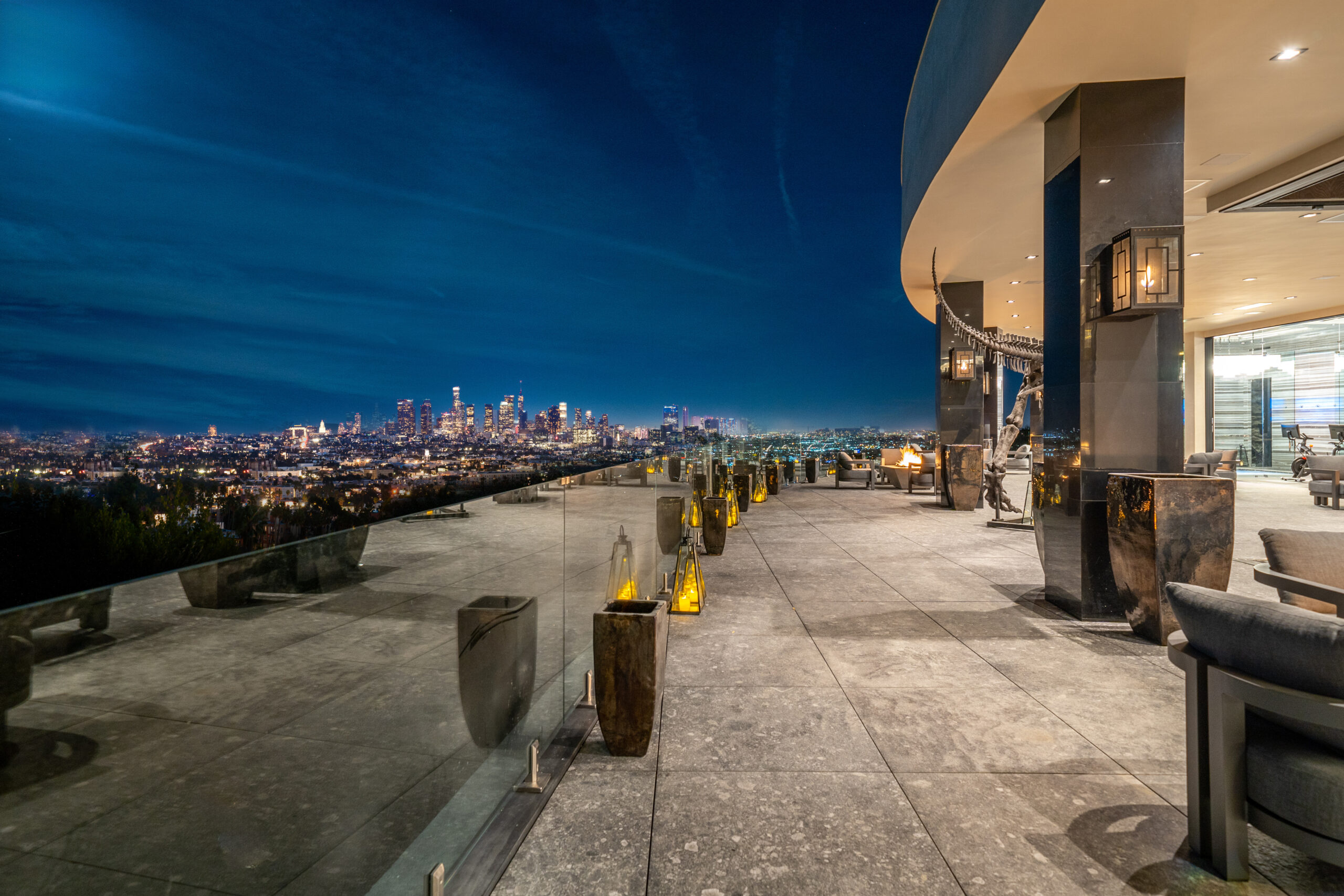 Seller accepts crypto! Experience the pinnacle of lavish splendor and quiet comfort at La Fin, or The End, aptly named as the ultimate, final example of modern decadence and refinement; the be-all and end-all experience in one of the world's most famous and exclusive enclaves. Sited on a two-acre parcel, this magnificent residence offers 12 spacious bedrooms, 17 bathrooms, remarkable amenities, and brilliant panoramic views of Los Angeles. Just beyond the gated motor court, proceed down to the oversized glass entryway to one of the most beautiful and opulent homes the globe over. A spiral staircase surrounds a stunning 44-foot chandelier made of 55,000 crystals, a showstopping centerpiece yet just one of the impressive custom lighting sculptures throughout the home. The main level features a custom stone bar that flows into the formal living area with a massive hand-carved stone latticework fireplace. All furniture was custom-made for La Fin by Italian luxury brand La Contessina. Motorized Fleetwood pocket doors open to the infinity-edge pool with a striking 23-foot LED screen that rises at the touch of a button and a 30-person lounge area with fire pit. The lower level provides a 6,000-square-foot entertainment area with lofty 18-foot ceilings, custom bar, commercial-grade catering facilities, 1,000-bottle wine cellar, cigar lounge, ice-cold vodka tasting room, and a jaw-dropping automated six-car vehicle elevator display. Additional amenities on the lower level include an outdoor lounge area, luxury fitness center with rock climbing wall, spa, steam room with backlit onyx, massage room, and sound-proof cinema. The second level features a grand primary suite with Italian hand-crafted floor-to-ceiling oak cladding, lounge area, coffee bar, spa-like bathroom with Calacatta Gold marble, massive 100-square-foot shower, solid marble vanity, dual showroom-style walk-in closets, and private wraparound balcony with sweeping views, spa, fire pit, and TV. The rooftop deck offers additional outdoor/entertainment space with built-in seating, fire table, video screen, elevated spa, and even more incredible vistas. Staff residences and a detached guest suite offer ample space. Fingerprint technology and security command center provide the utmost privacy and safety. The meticulously designed and curated La Fin is a once-in-a-lifetime Bel Air estate that can only be admired but never replicated.