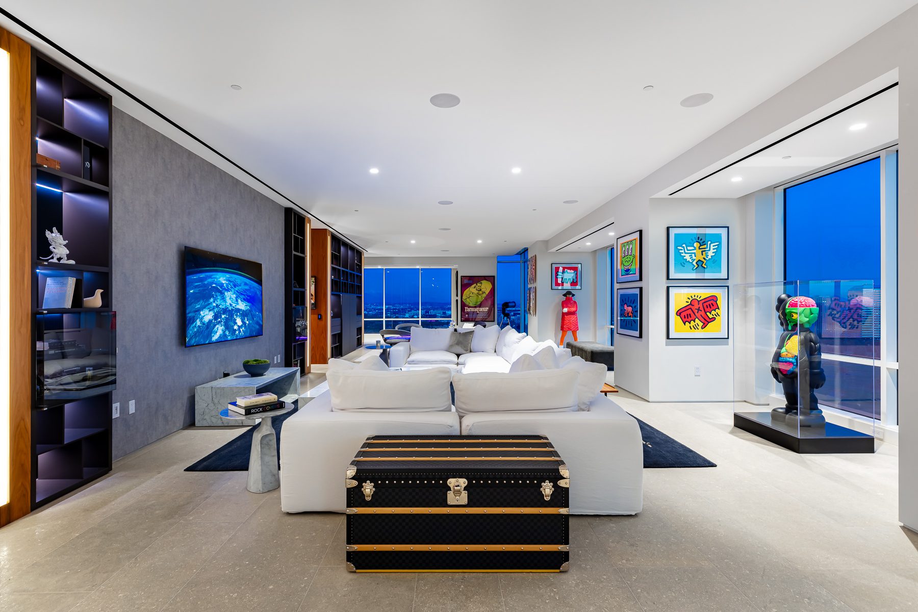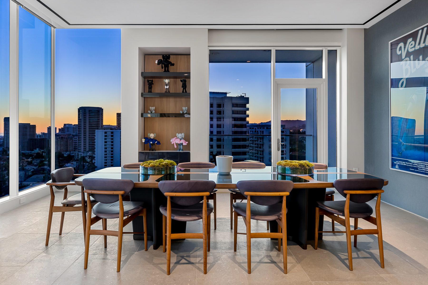 In one of the most exclusive buildings on the Wilshire corridor sits Penthouse 18, at the Beverly West. With the best value of all Penthouses and spanning an entire floor with approximately 8,000 square feet of living space, 360 jet-liner views of the Hollywood Hills, Bel-Air, the Los Angeles Country Club, and as far as Downtown Los Angeles to the Pacific Ocean. Views like this simply do-not get much better. This truly beautiful unit features a private state-of-the-art chef's kitchen, entertainment bar with a stunning TV-Wall comprising of 4x65" televisions totaling 130" of viewing pleasure. Imagine a dinner with friends and family looking out at a beautiful sunset over the Pacific Ocean, or hosting cocktails overlooking Bel-Air and one of the most exclusive Country Clubs in the country. All four bedrooms are stunning, the finishes are easily a work of art with only the best materials and designs coming together to give comfort and luxury. The master bedroom features a grand and lavish bathroom with the tub framed onto a beautiful view, jewel box steam shower, and powder. Attached to the master bedroom is your own private gym, or space customizable to anything desired. The boutique-style Beverly West offers exclusivity, privacy, security, and ultimate luxury.
