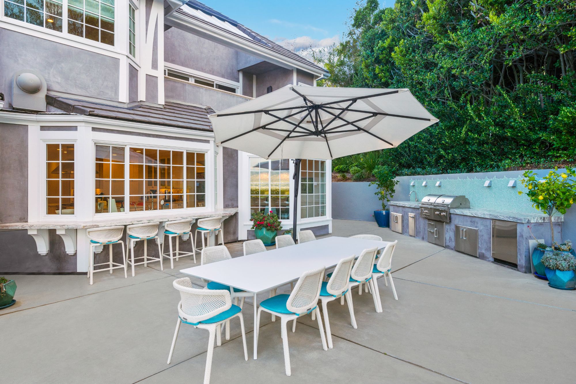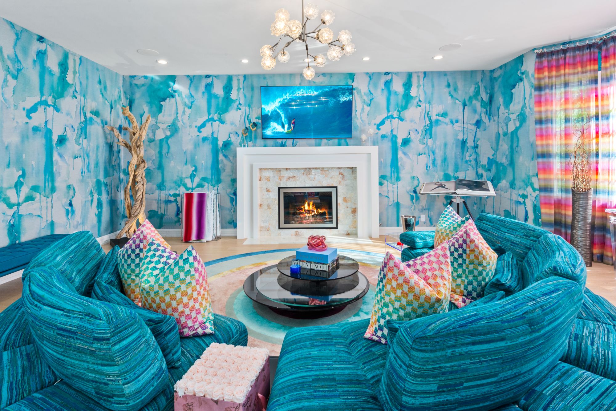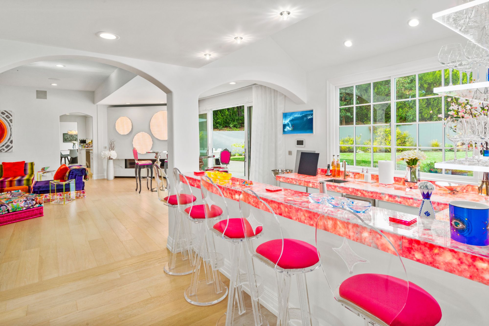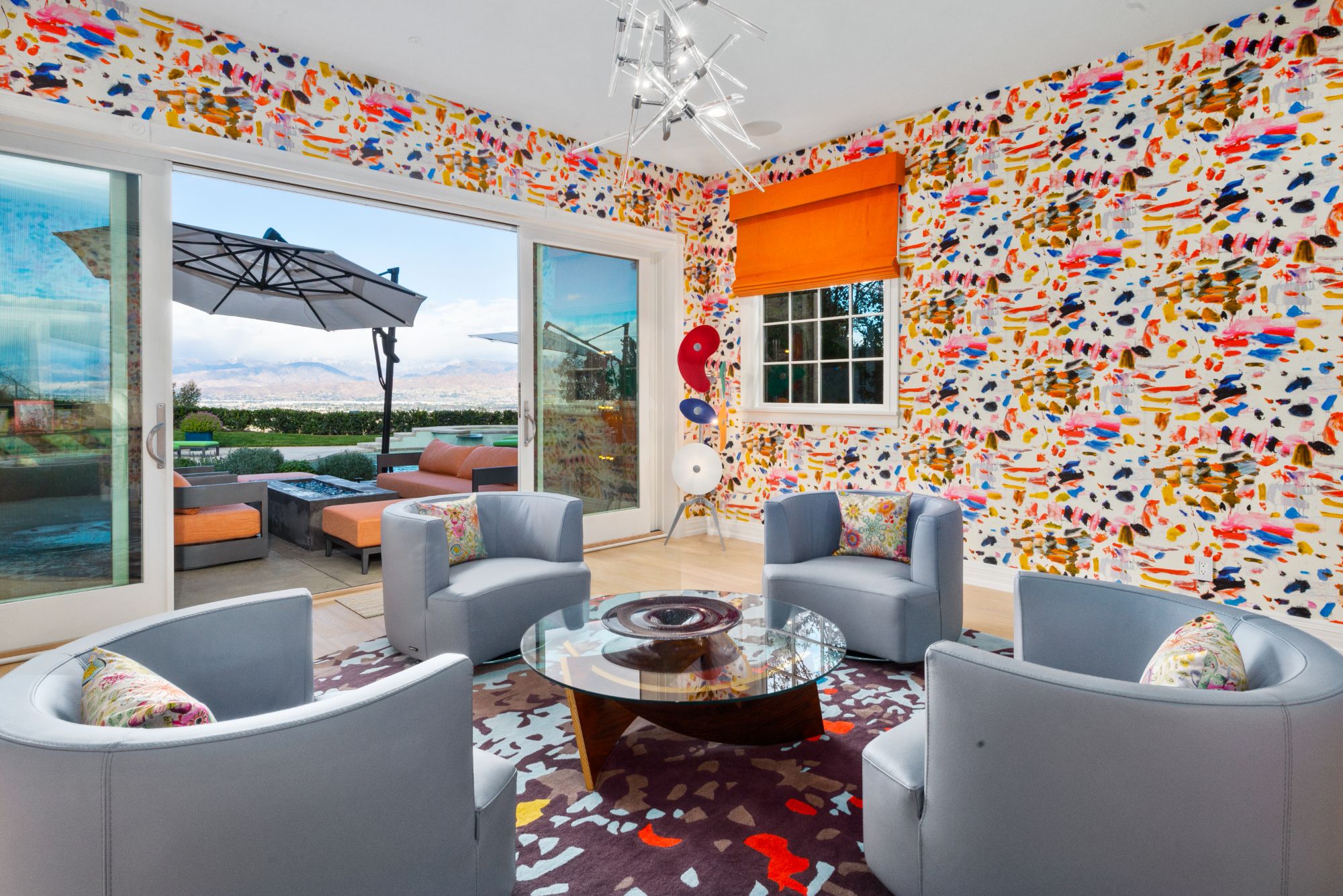 This renovated contemporary Tudor is the ultimate mountainside sanctuary with unrivaled panoramic views spanning from the city to the snowcapped mountains in the guard-gated enclave of The Summit Estates in Beverly Hills on a 34,000 SF flat lot. Beyond a magnificent circular motor court & soaring 25-ft entry, a perfect family and entertainment compound with sophisticated mix of avant-garde & timeless details such as vibrant accent colors, elegant arched openings & oak flooring finishes. Open floor plan features formal living/family/dining rooms and full bar opening up to the oversized, lush backyard. With explosive views, entertainment oasis offers perfect indoor/outdoor living with a saltwater pool, raised spa, BBQ, bar & large lawns. State-of-the-art chef’s kitchen with dining & glass wine room. Upstairs features a 2nd family pajama lounge with fireplace, guestrooms & a lavish primary suite and an exquisite bathroom with soaking tub. No expense was spared everything had to be the best.