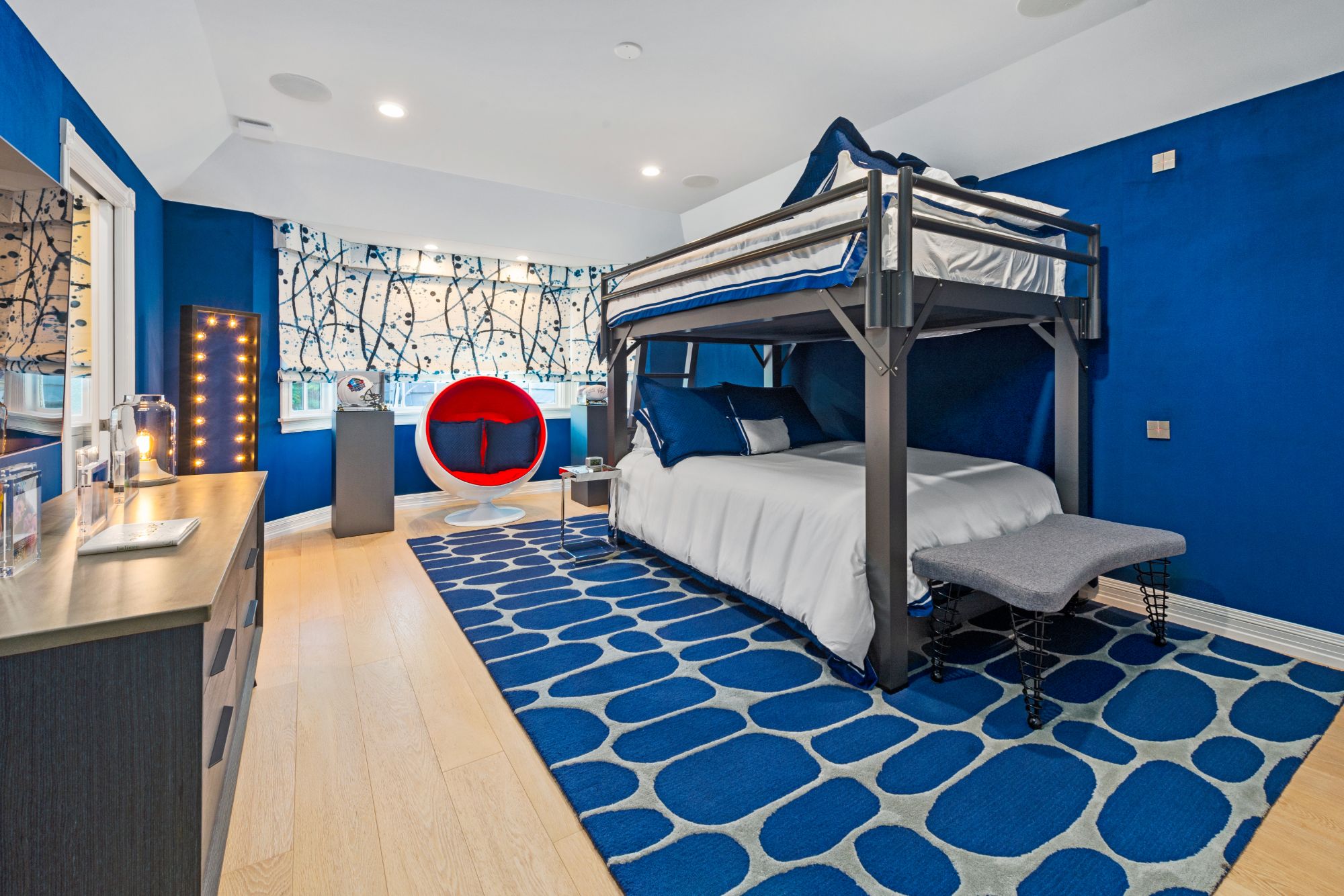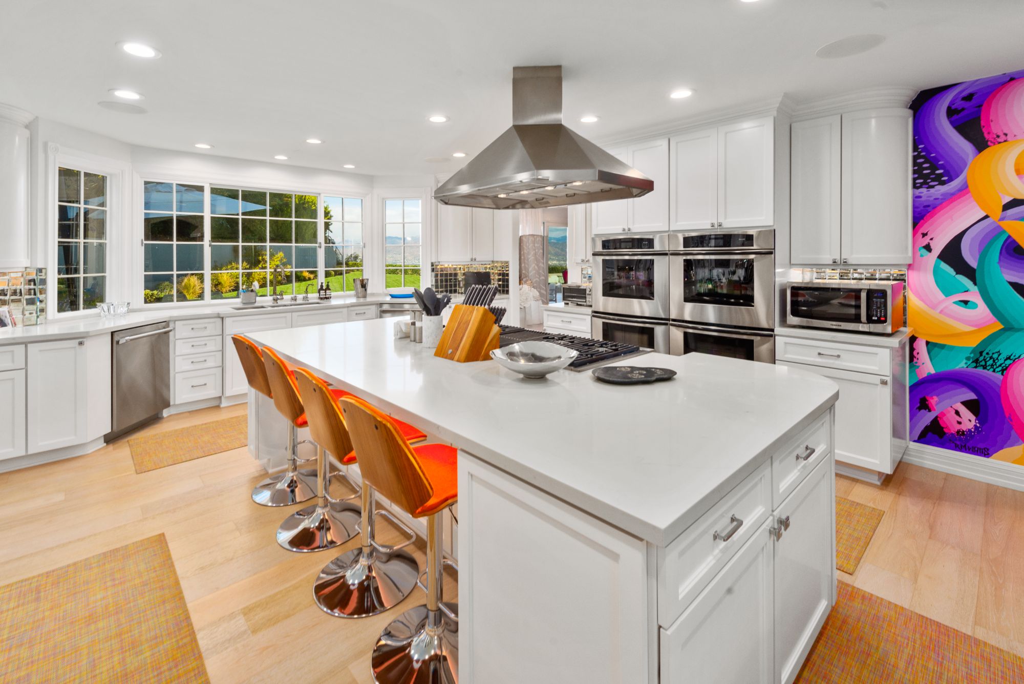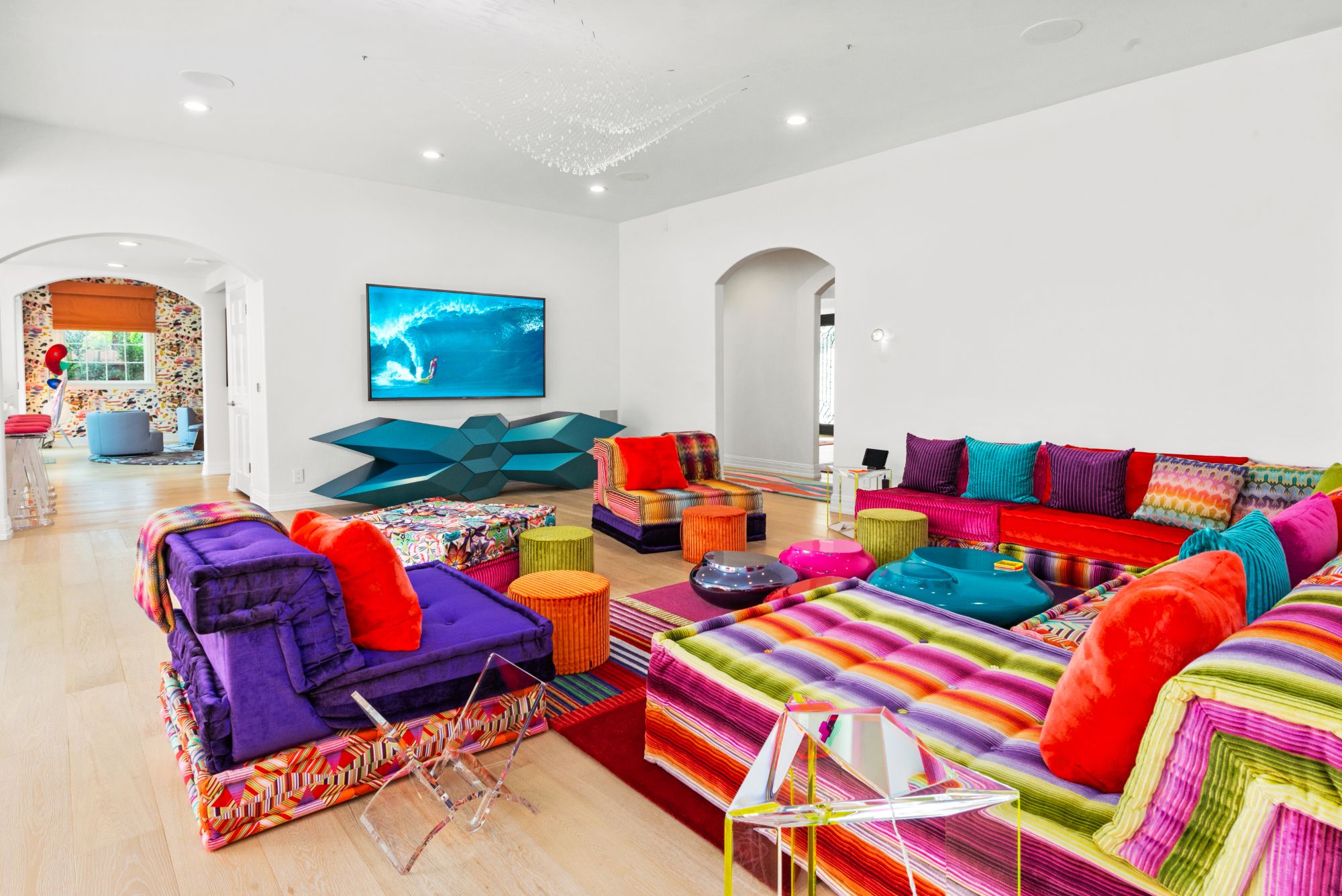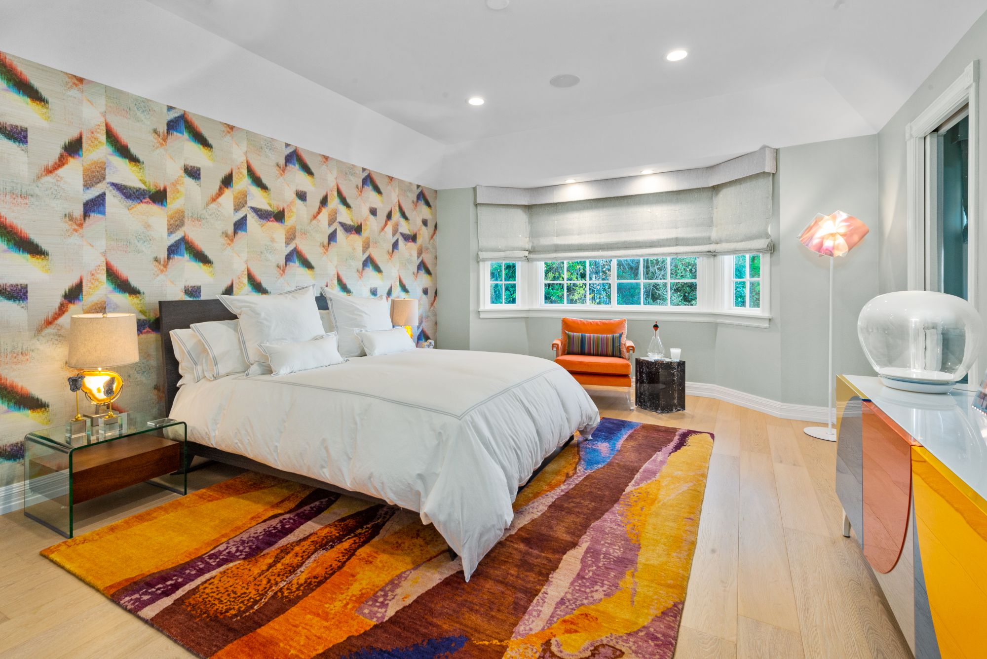 This renovated contemporary Tudor is the ultimate mountainside sanctuary with unrivaled panoramic views spanning from the city to the snowcapped mountains in the guard-gated enclave of The Summit Estates in Beverly Hills on a 34,000 SF flat lot. Beyond a magnificent circular motor court & soaring 25-ft entry, a perfect family and entertainment compound with sophisticated mix of avant-garde & timeless details such as vibrant accent colors, elegant arched openings & oak flooring finishes. Open floor plan features formal living/family/dining rooms and full bar opening up to the oversized, lush backyard. With explosive views, entertainment oasis offers perfect indoor/outdoor living with a saltwater pool, raised spa, BBQ, bar & large lawns. State-of-the-art chef’s kitchen with dining & glass wine room. Upstairs features a 2nd family pajama lounge with fireplace, guestrooms & a lavish primary suite and an exquisite bathroom with soaking tub. No expense was spared everything had to be the best.