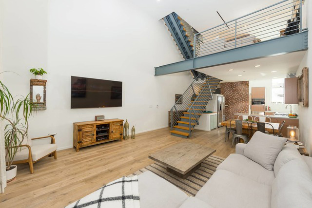 Architectural Loft-Style Townhouse in Desirable West Hollywood. Grand-scale double height ceilings, exposed steel beams and modern finishes make this airy home one of the best values in the heart of West Hollywood. Kitchen with modern finishes opens to the expansive living area complete with wide-plank white oak floors, gallery walls, and Fleetwood sliding doors leading to an outdoor BBQ patio. Loft perched above living area is perfectly suited for an at home office or additional space to entertain guests. Master suite features a large bedroom with ample sized walk-in closet and full bath. The top floor is comprised of an additional en suite bedroom with private terrace taking in amazing view of the Hollywood Hills. Unit includes 2 tandem parking spaces, guest parking, and additional storage space in garage. Combining style, scale, and accessibility this is one of the best offerings in the area.